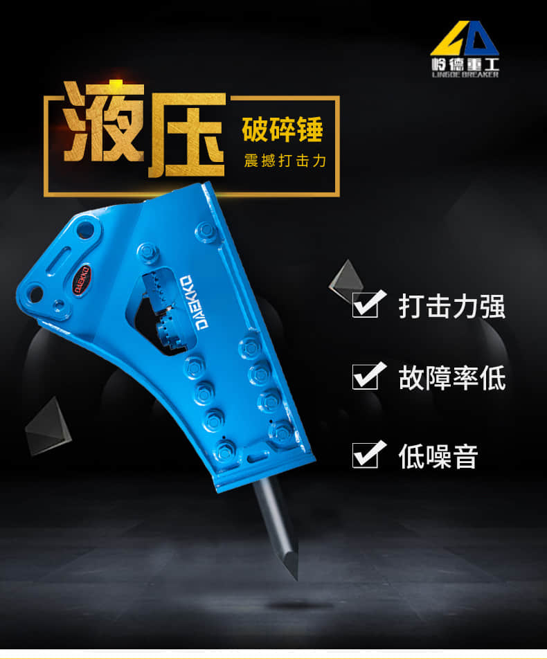 液壓破碎錘簡稱\\\\\\\"破碎錘\\\\\\\"或\\\\\\\"破碎器\\\\\\\",液壓破碎錘的動力來源是挖掘機(jī)、裝載機(jī)或泵站提供的壓力,它能在工程施工中能更有效的破碎石塊和巖石,提高工作效率。選用液壓破碎錘的原則是根據(jù)挖掘機(jī)型號、作業(yè)的環(huán)境來選擇適合的液壓破碎錘。