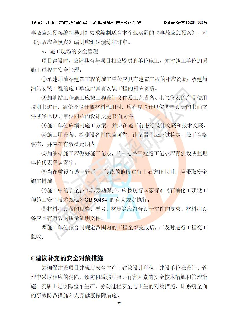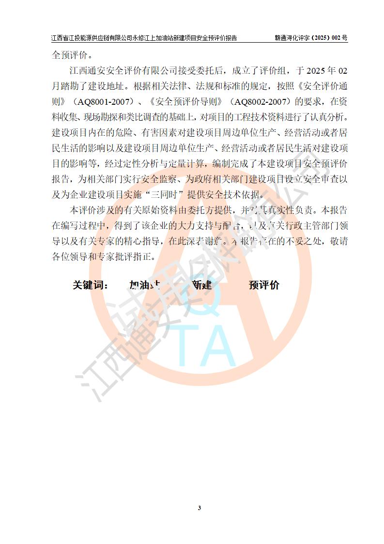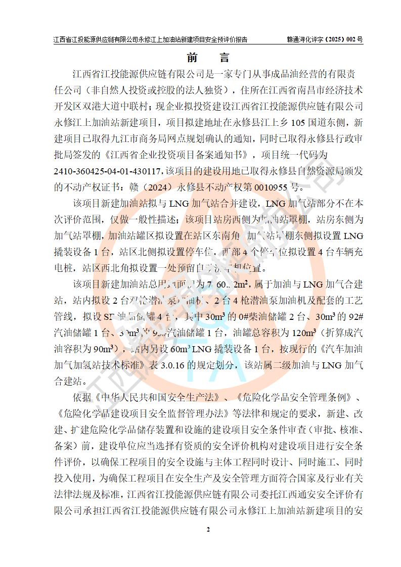 評價報告名稱 | 江西省江投能源供應鏈有限公司永修江上加油站新建項目安全預評價報告 | |||