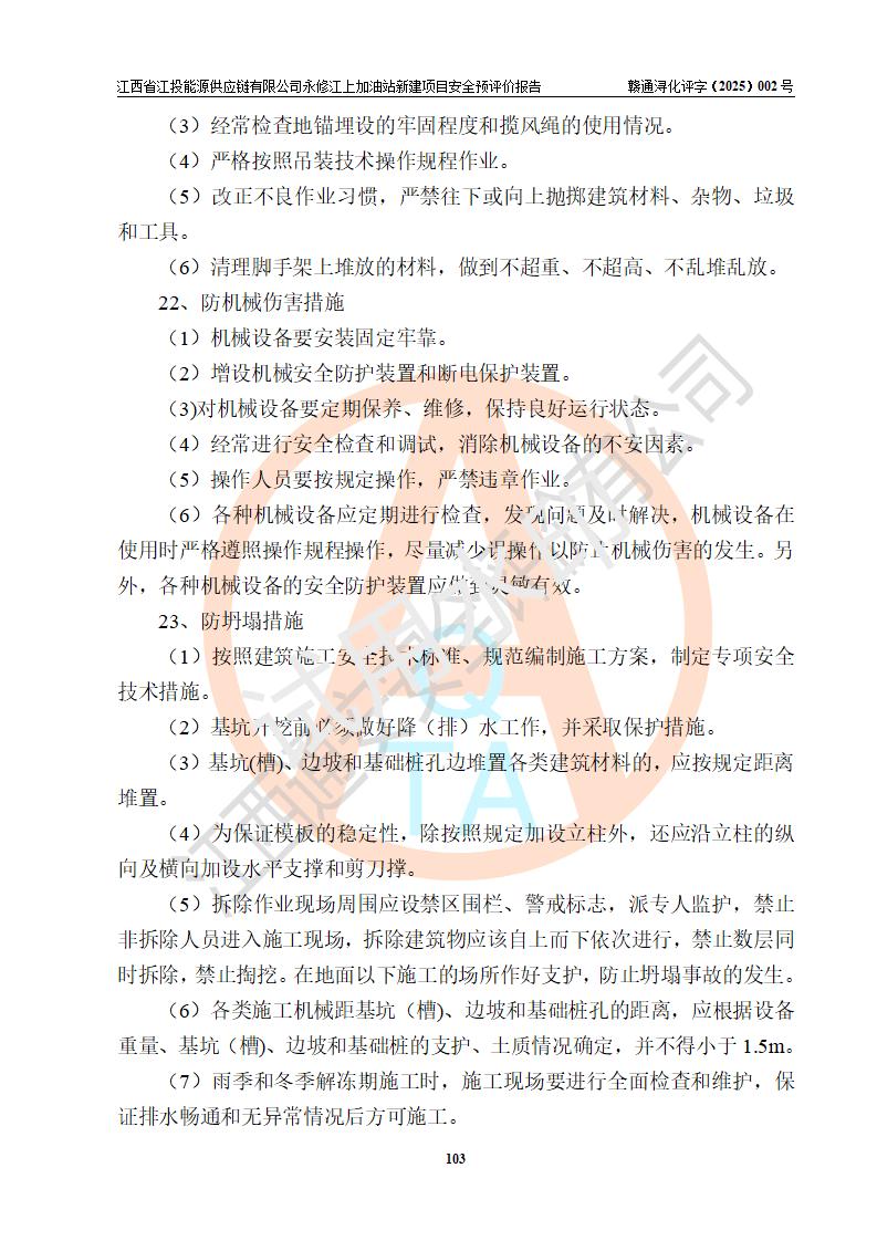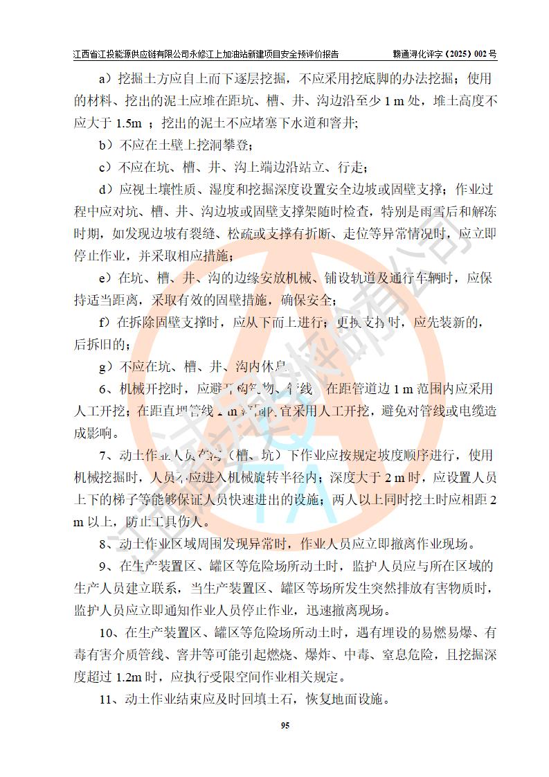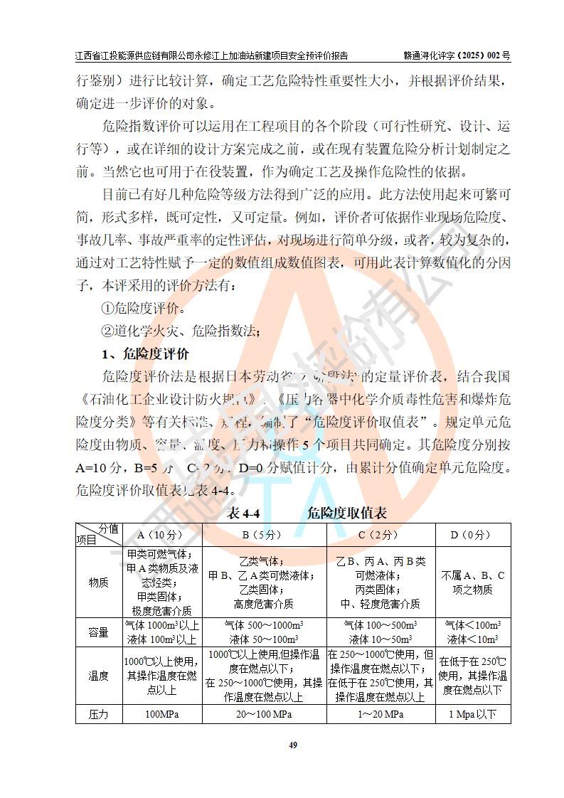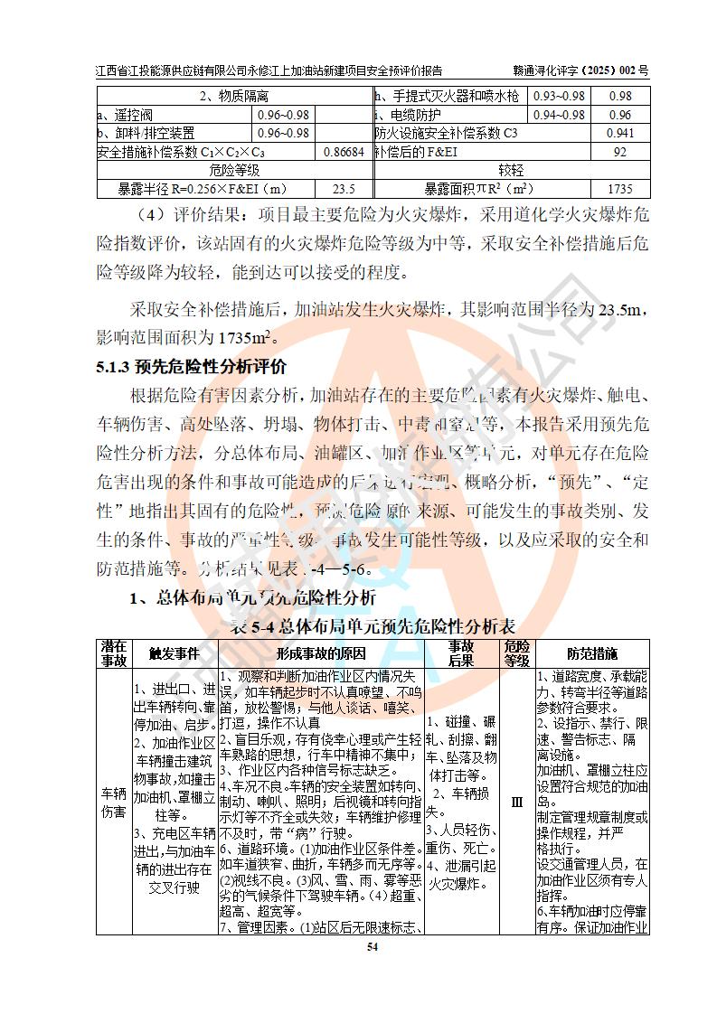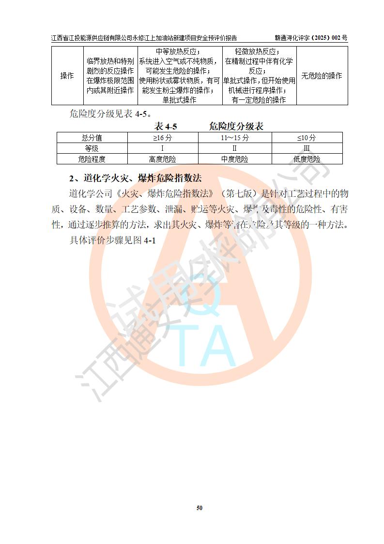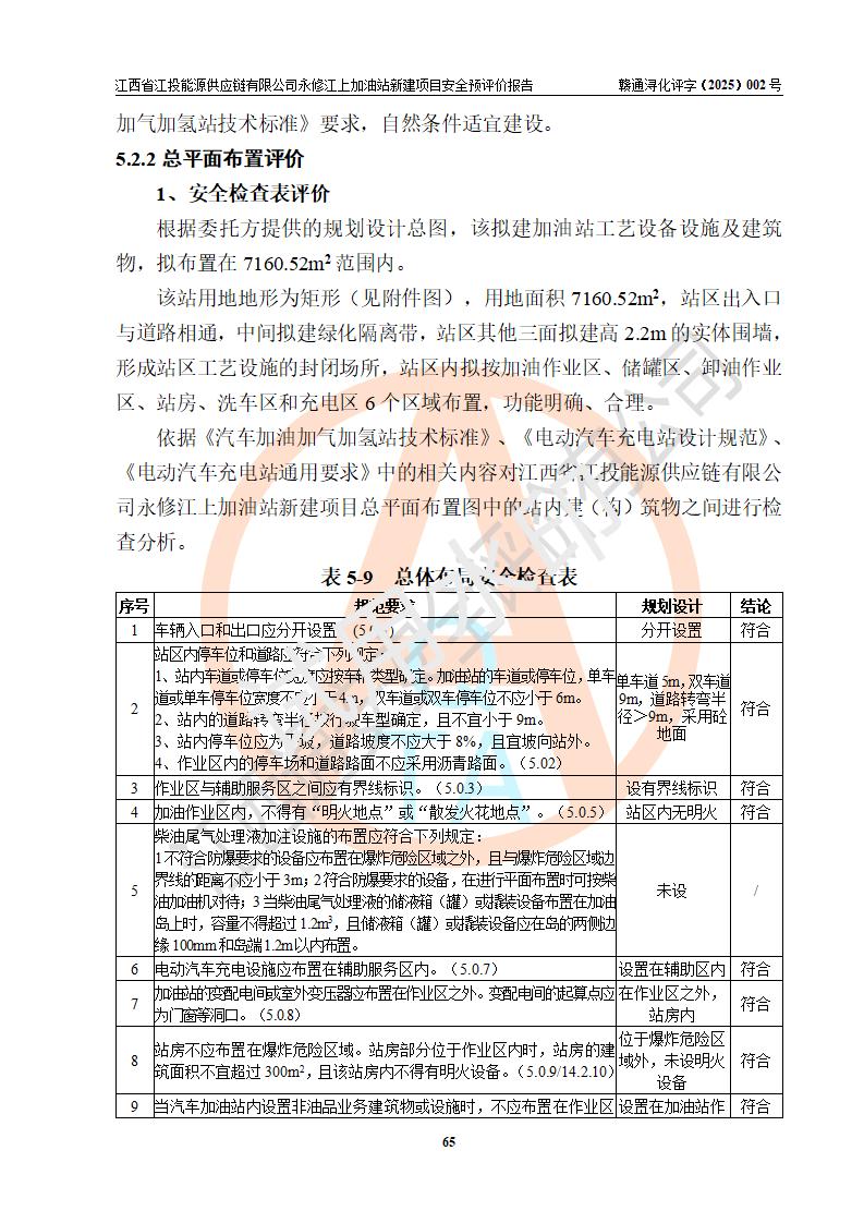 評價結論 | 江西省江投能源供應鏈有限公司永修江上加油站新建項目的選址、自然條件適宜該項目工程的建設;項目規(guī)劃設計中的總體布局方案可行,符合有關法規(guī)、標準要求;項目選擇的工藝過程及設備設施的安全可靠性能達到**法規(guī)、標準規(guī)定要求;項目存在的危險有害因素可控,在落實項目建設方案及評價報告提出的有關安全對策措施后,其危險有害程度能達到可以接受的程度,項目建設能夠實現(xiàn)安全運行的目標。 | |||