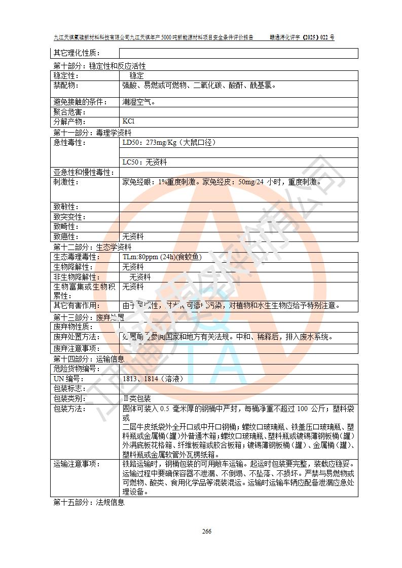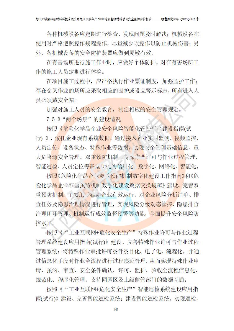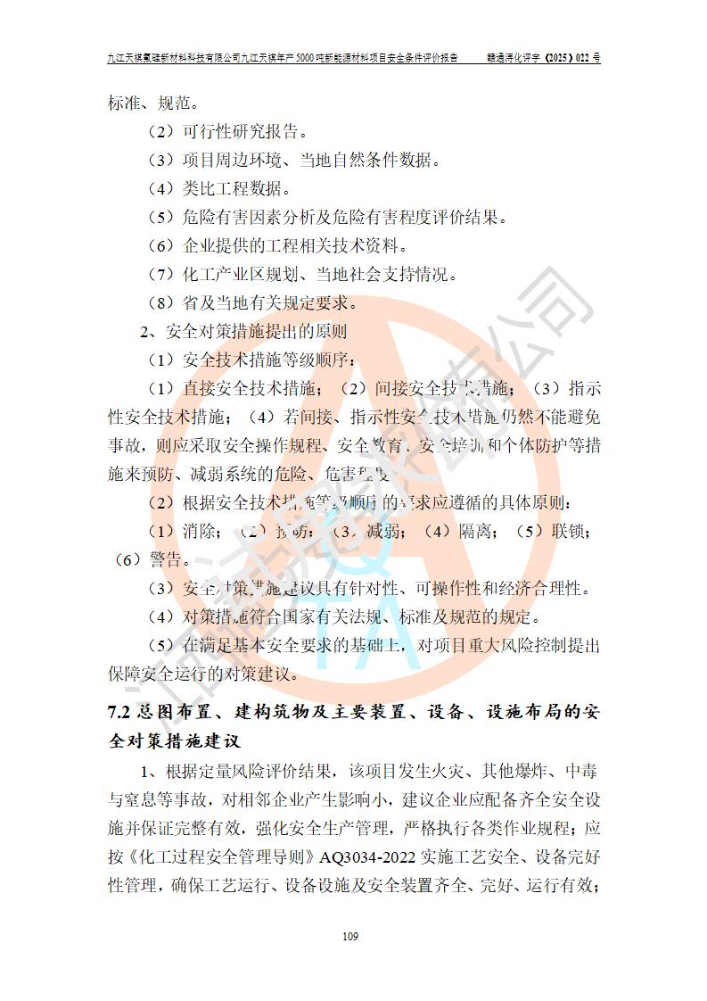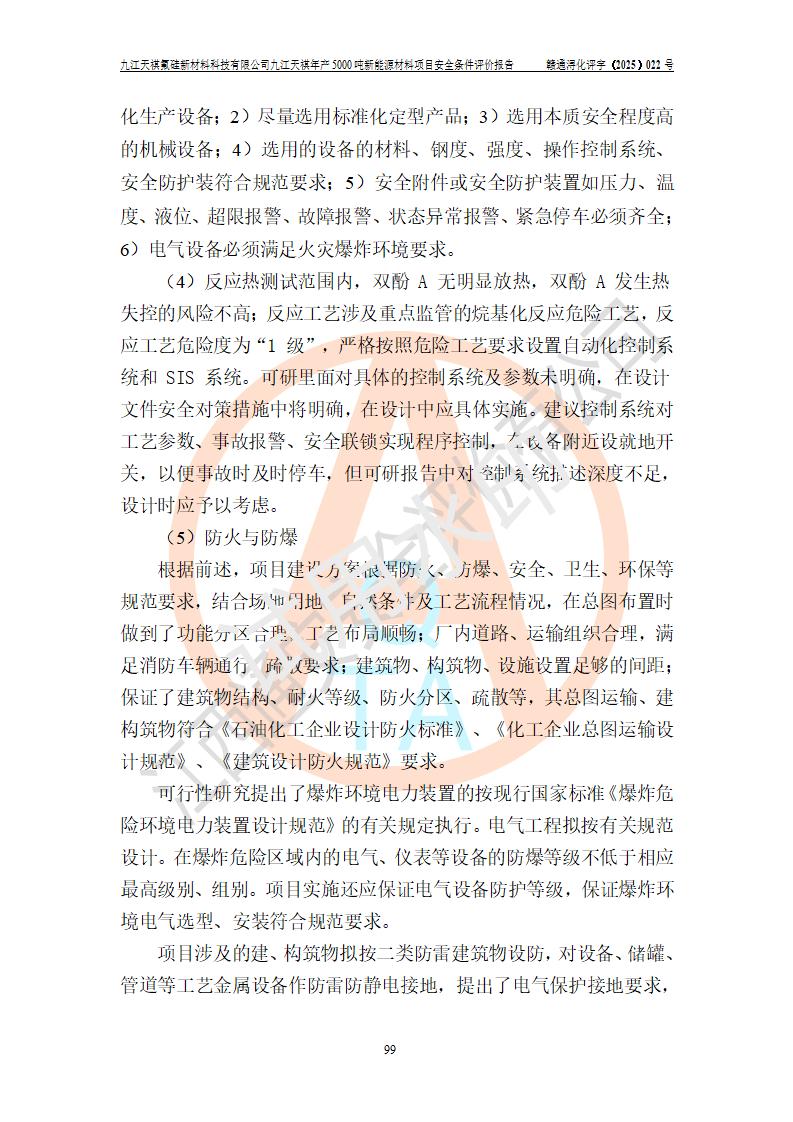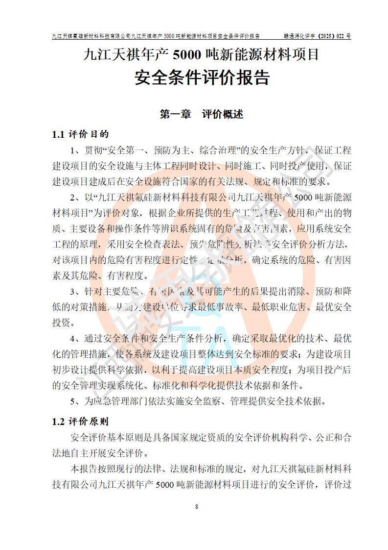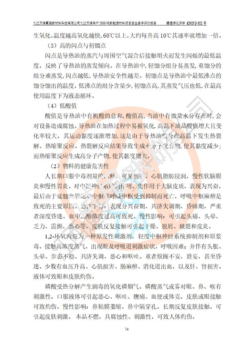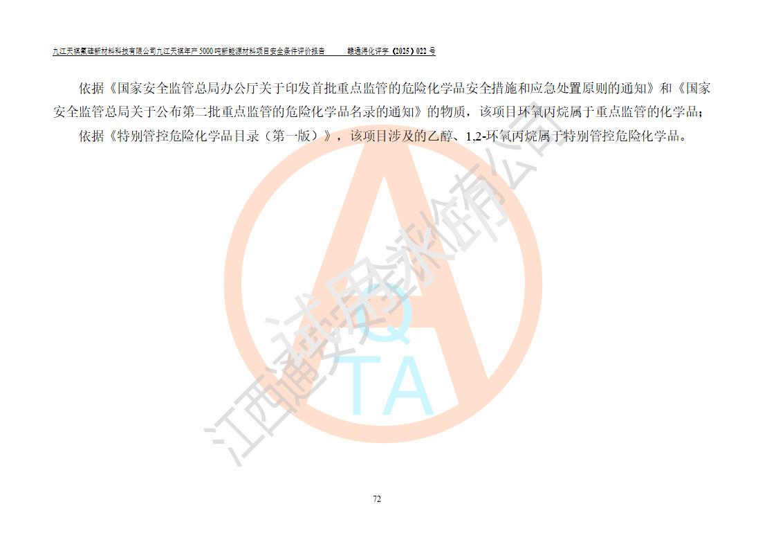 九江天祺氟硅新材料科技有限公司九江天祺年產(chǎn)5000 噸新能源材料項目安全條件評價報告