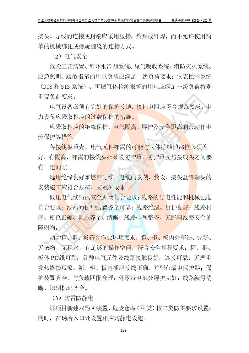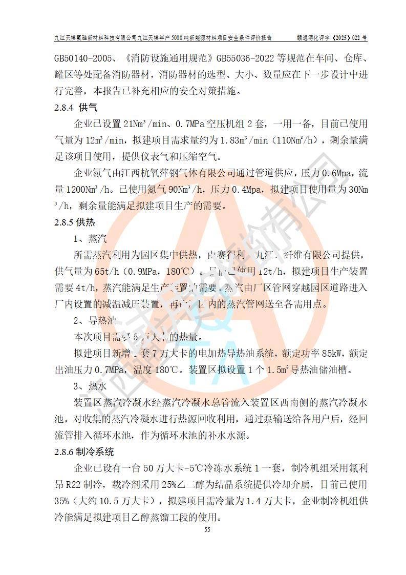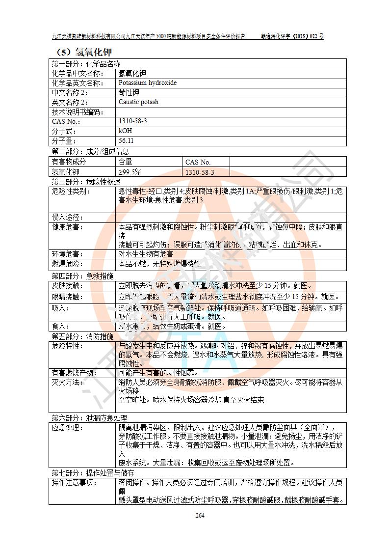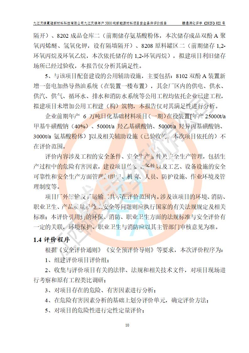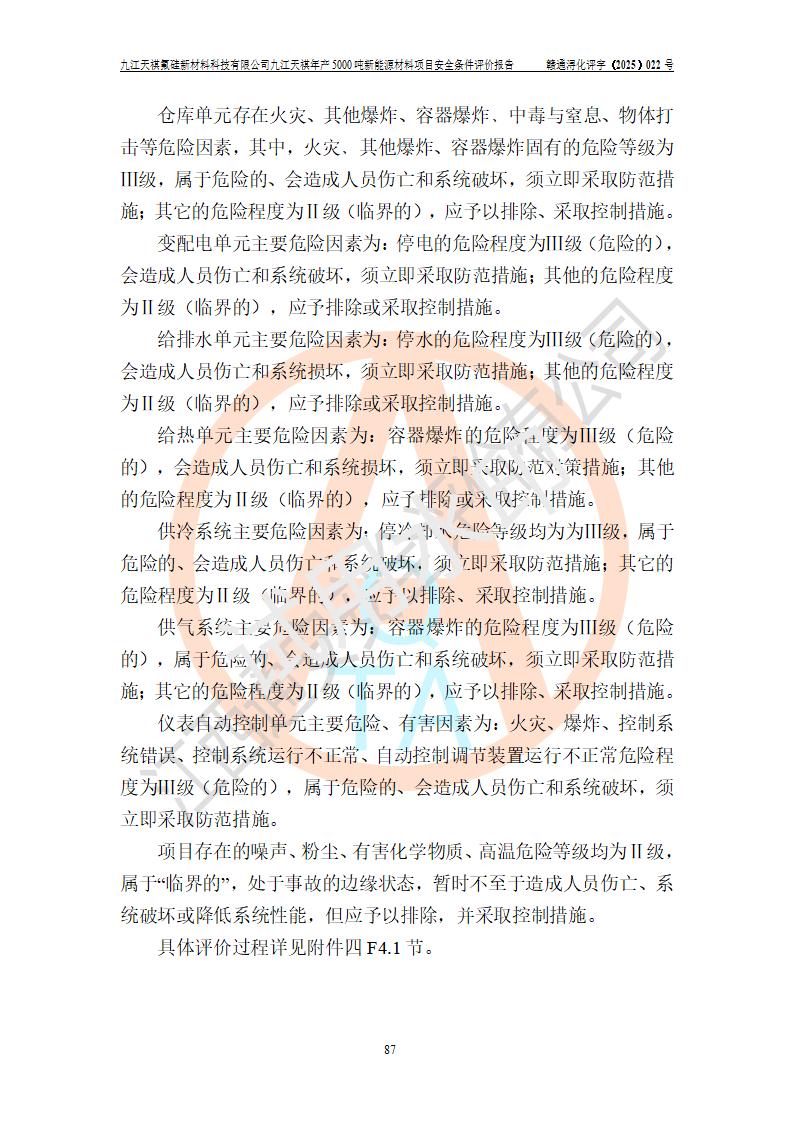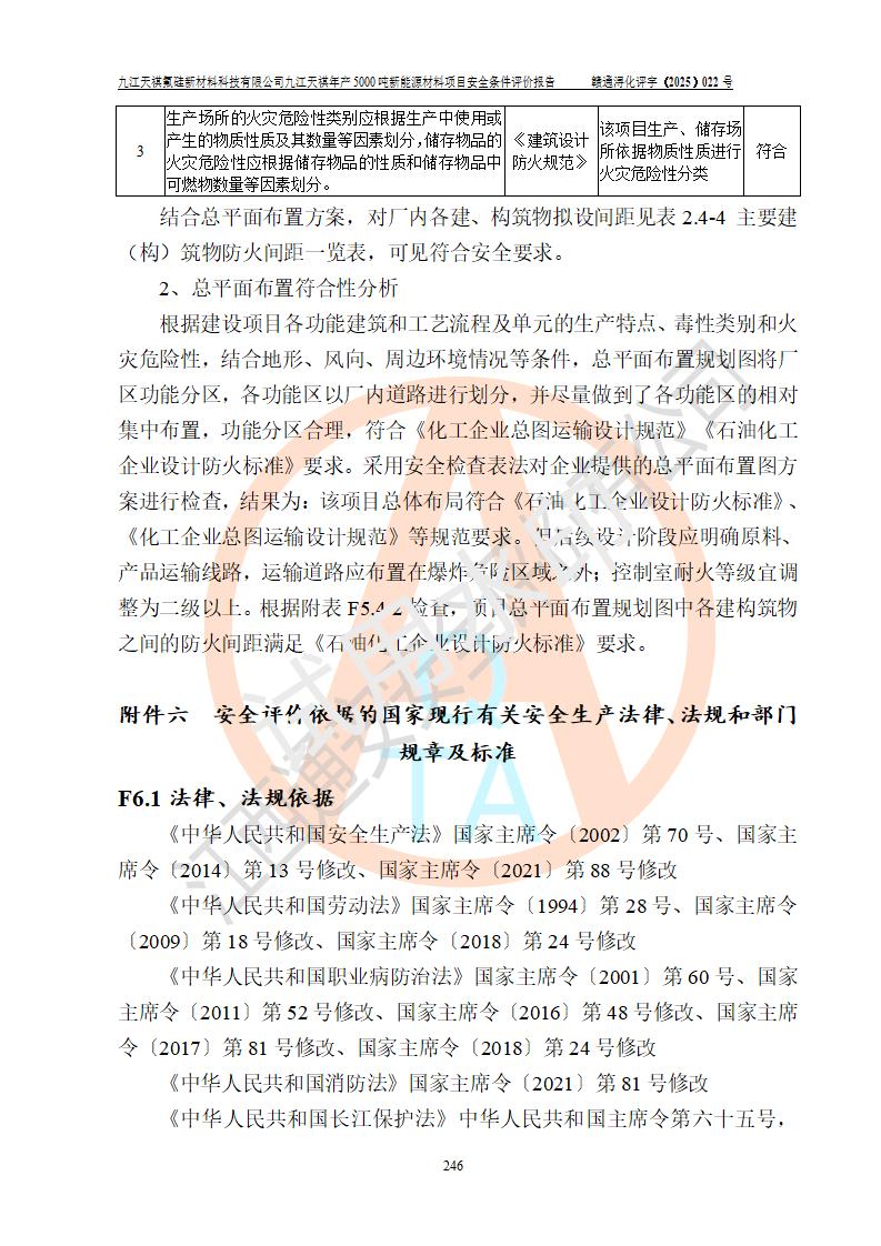 九江天祺氟硅新材料科技有限公司九江天祺年產(chǎn)5000 噸新能源材料項目安全條件評價報告