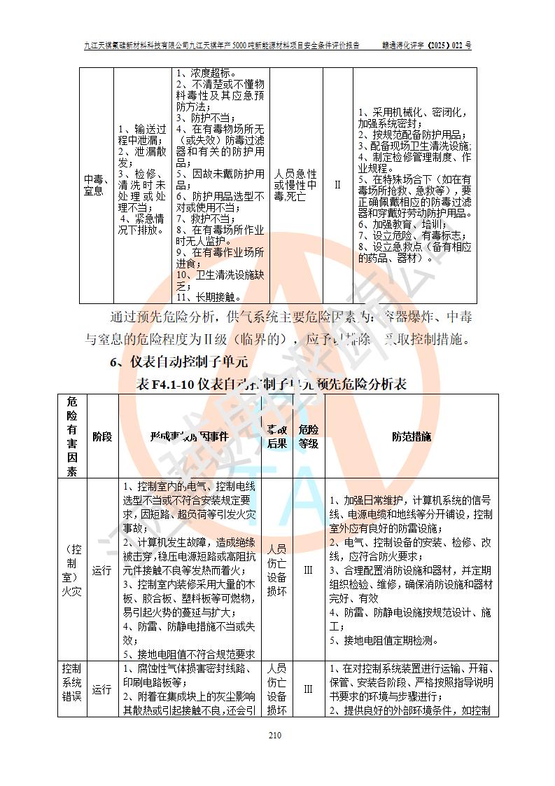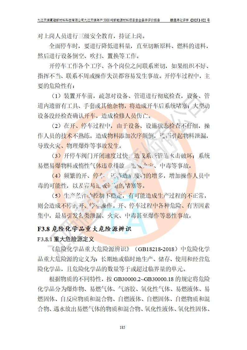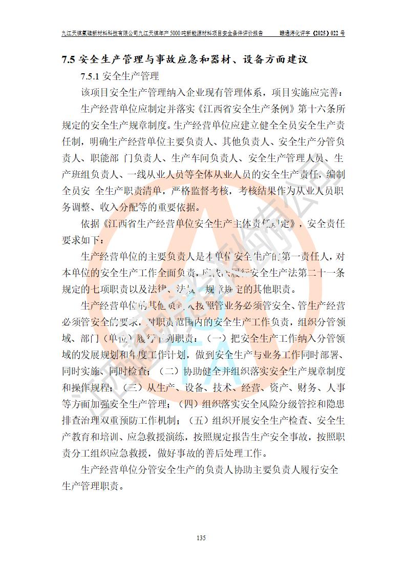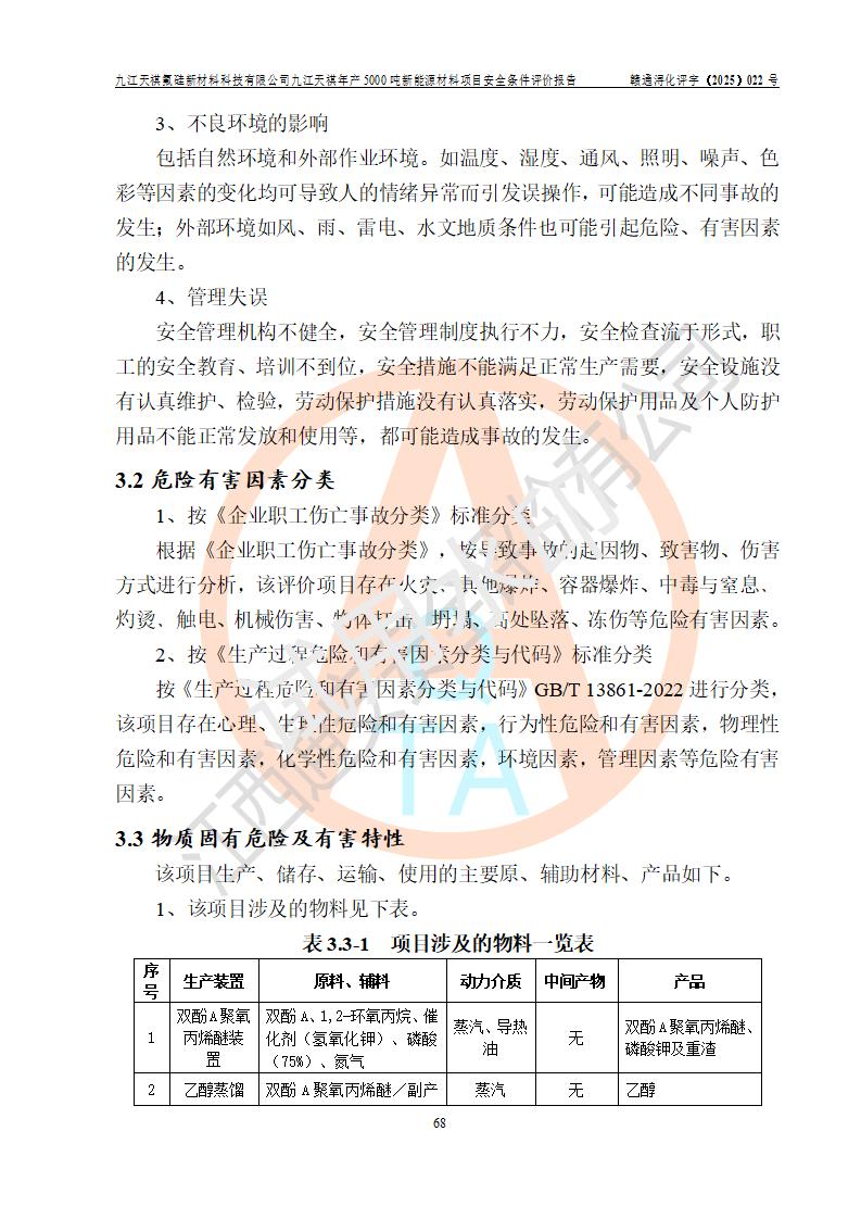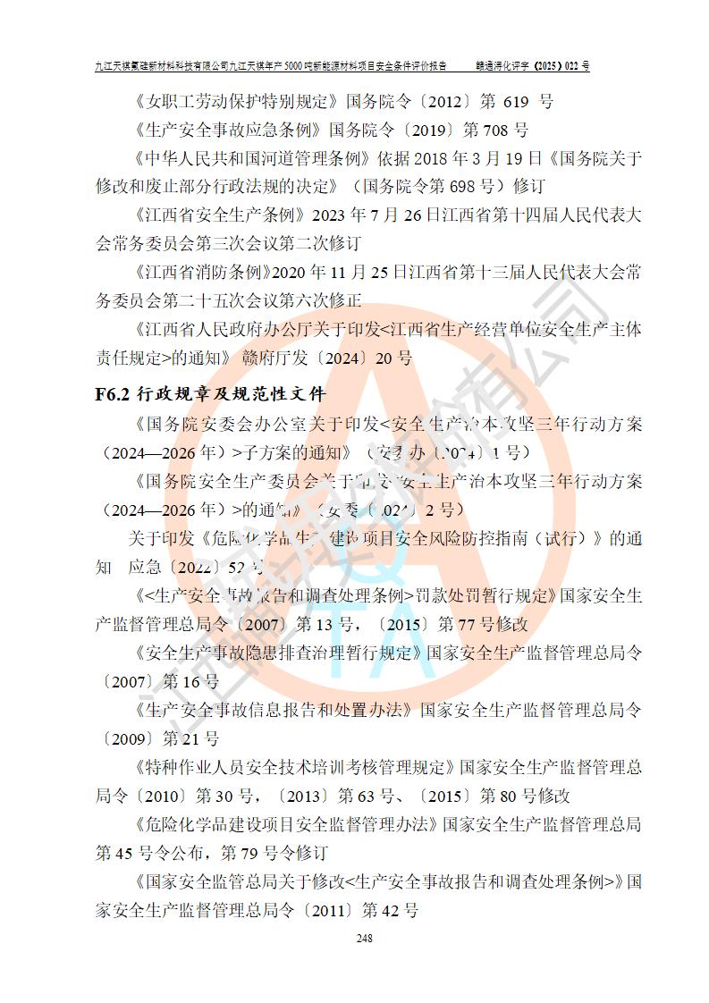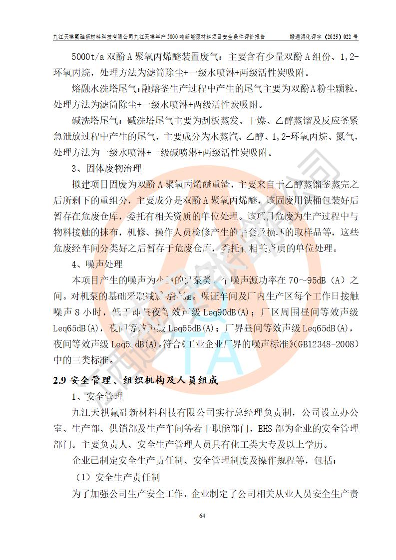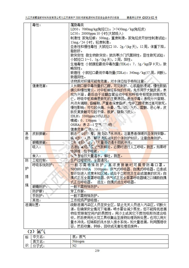 九江天祺氟硅新材料科技有限公司九江天祺年產(chǎn)5000 噸新能源材料項目安全條件評價報告