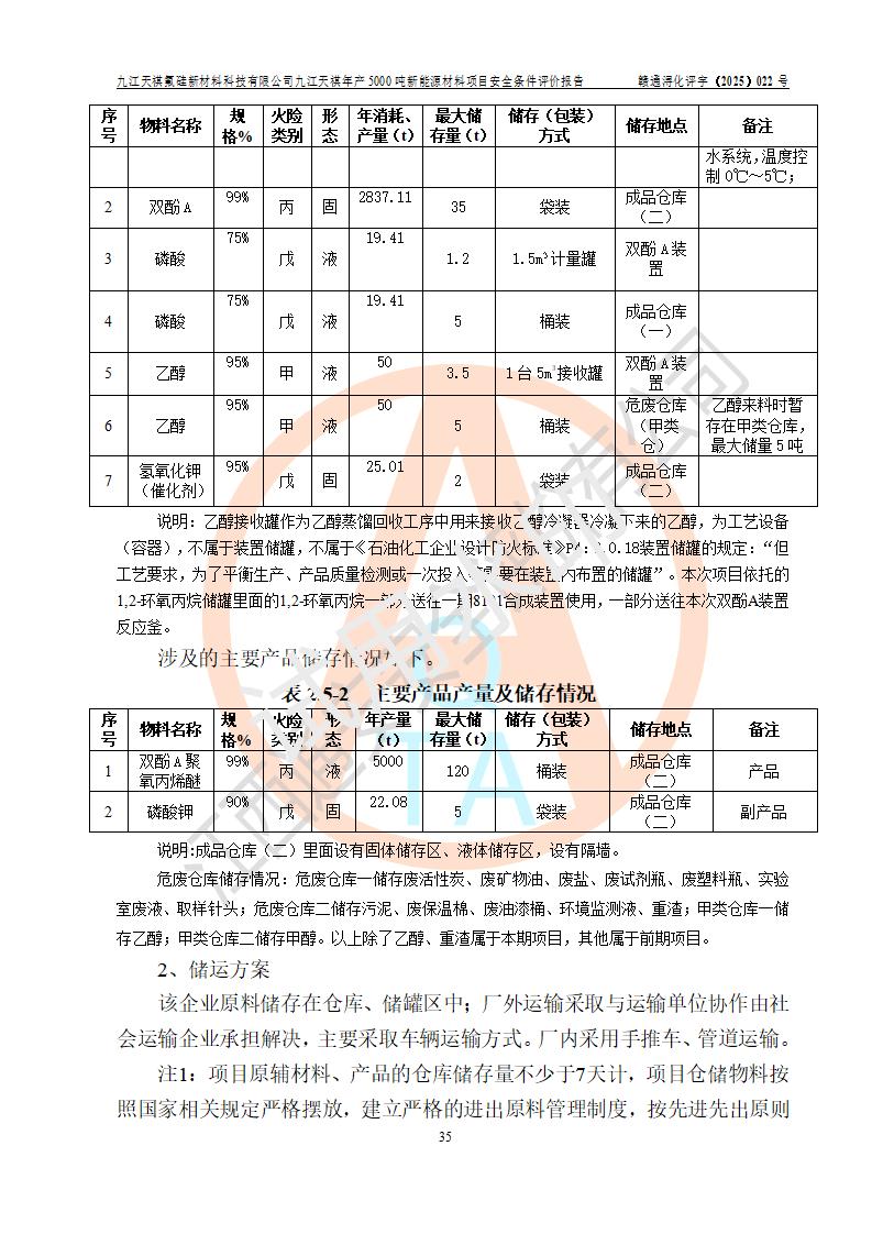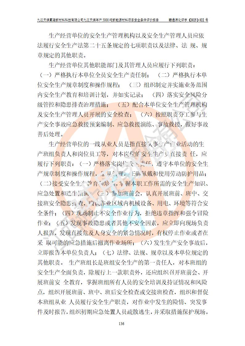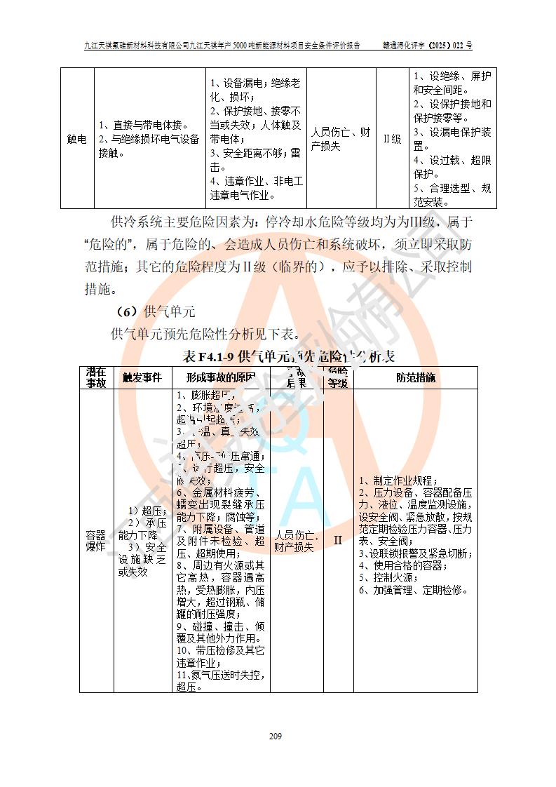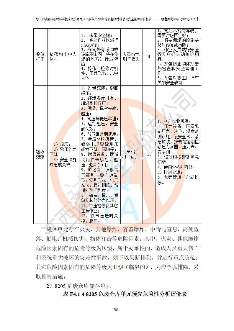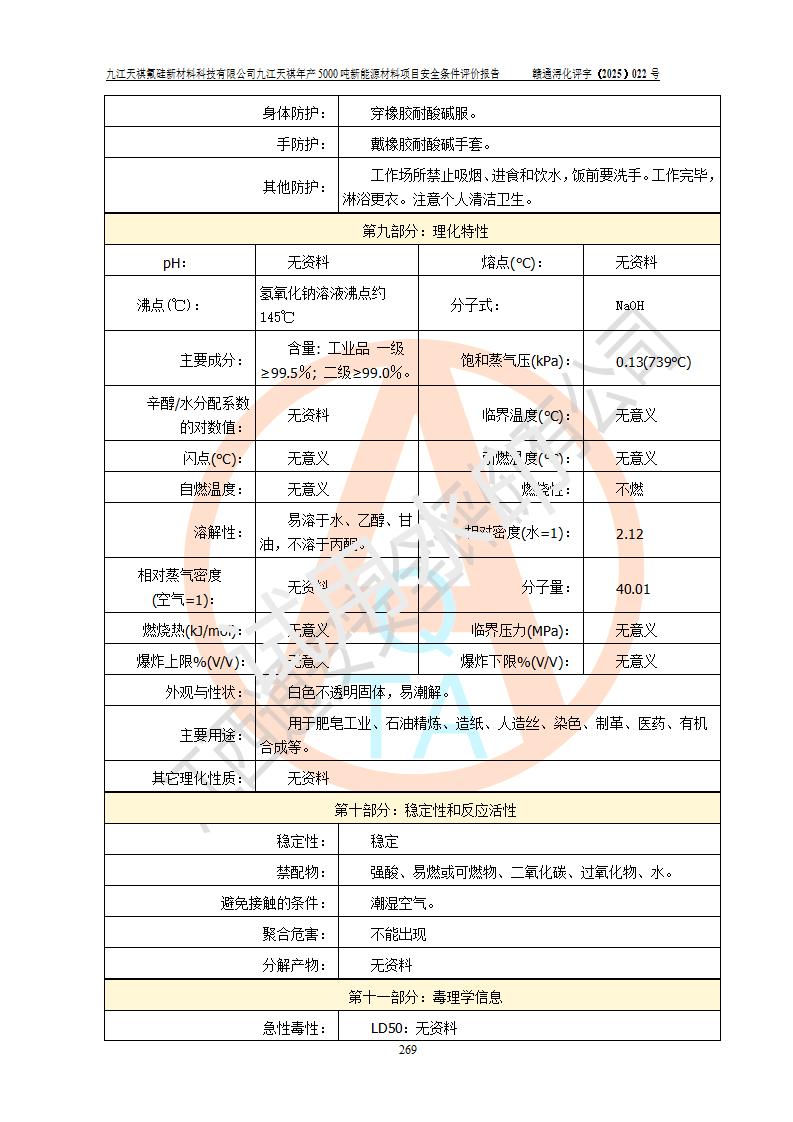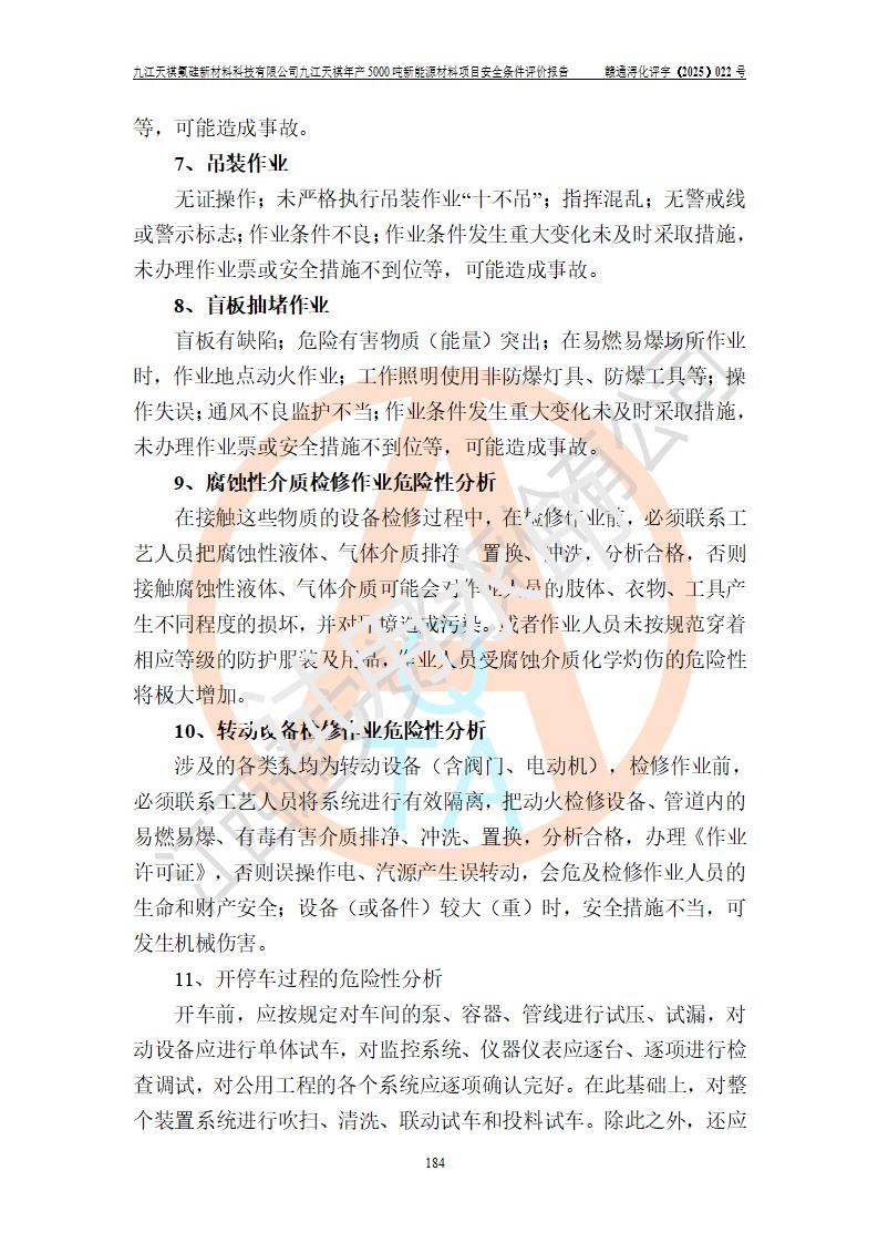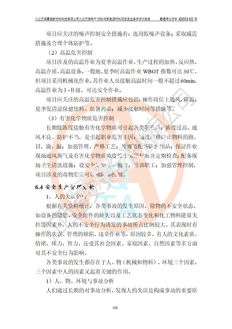 九江天祺氟硅新材料科技有限公司九江天祺年產(chǎn)5000 噸新能源材料項目安全條件評價報告