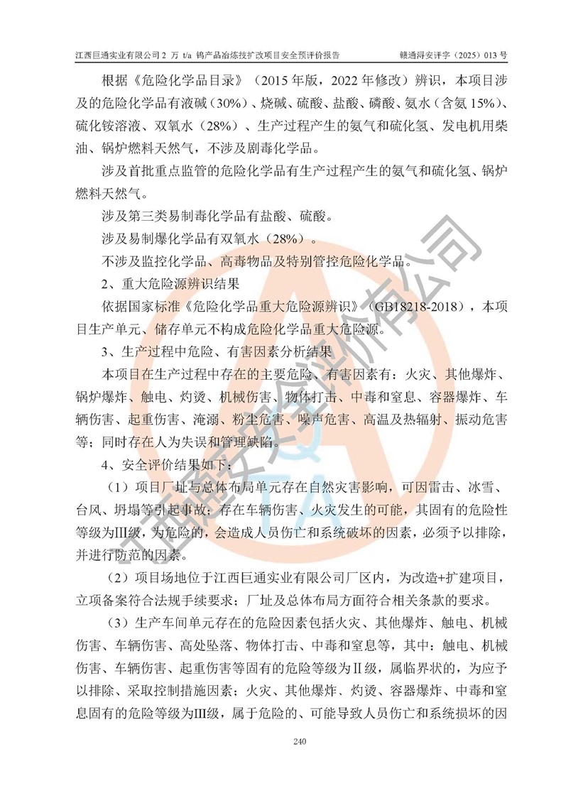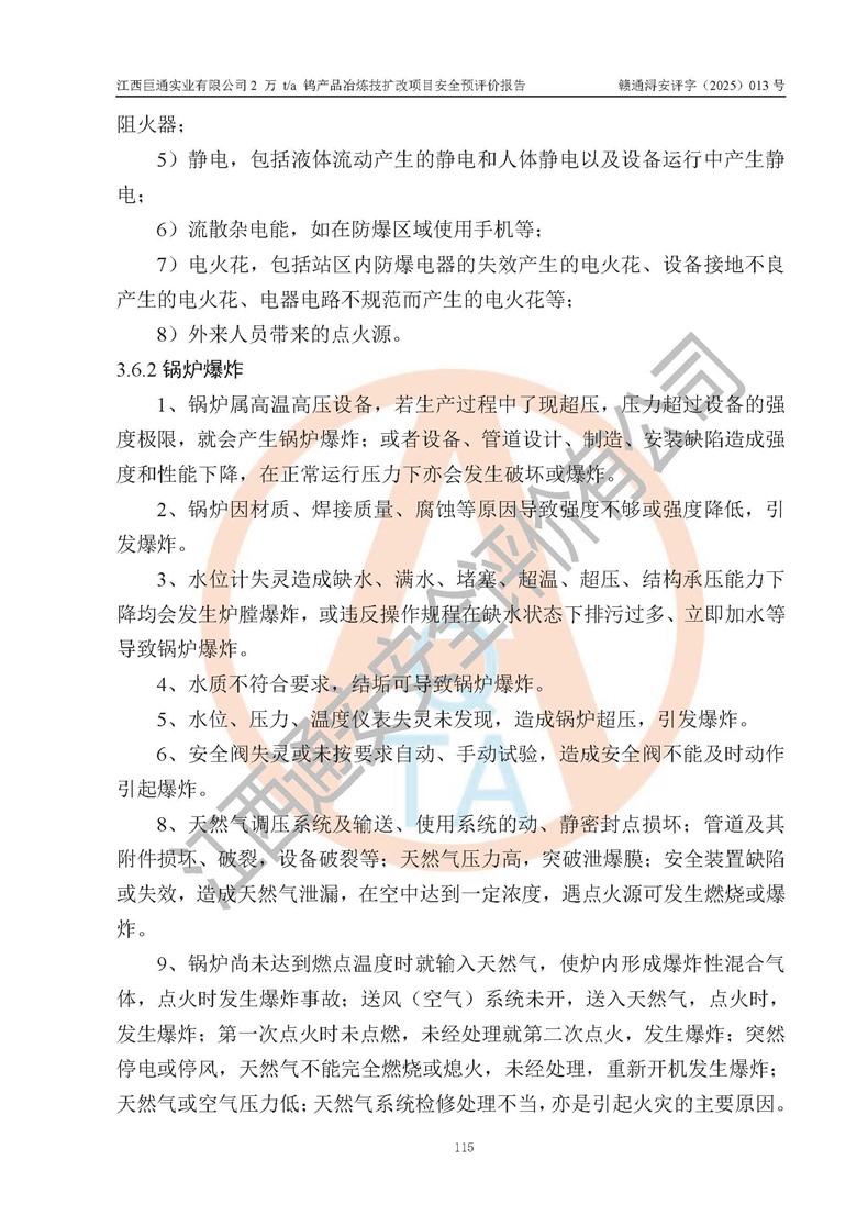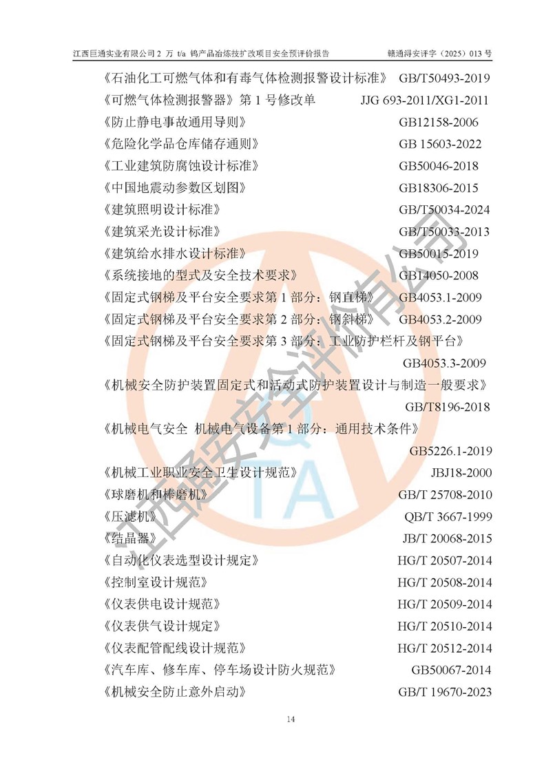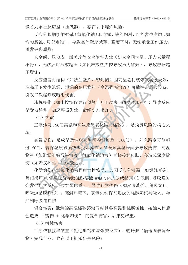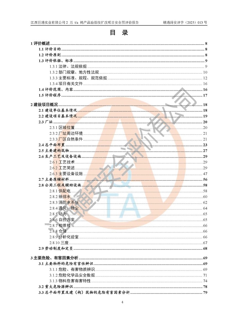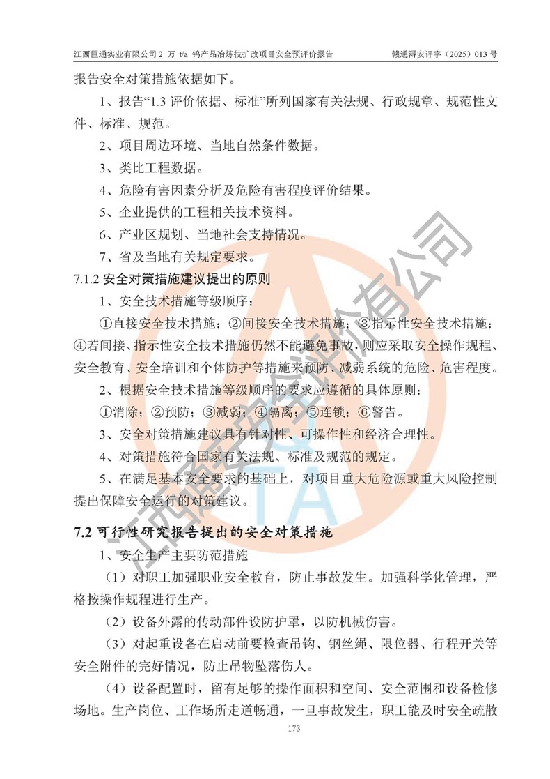 評(píng)價(jià)報(bào)告名稱 | 江西巨通實(shí)業(yè)有限公司2 萬 t/a 鎢產(chǎn)品冶煉技擴(kuò)改項(xiàng)目安全預(yù)評(píng)價(jià)報(bào)告 | |||