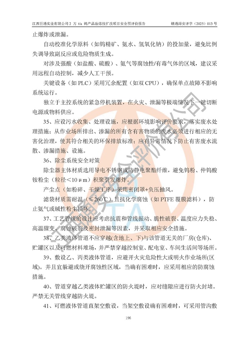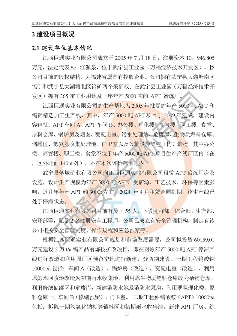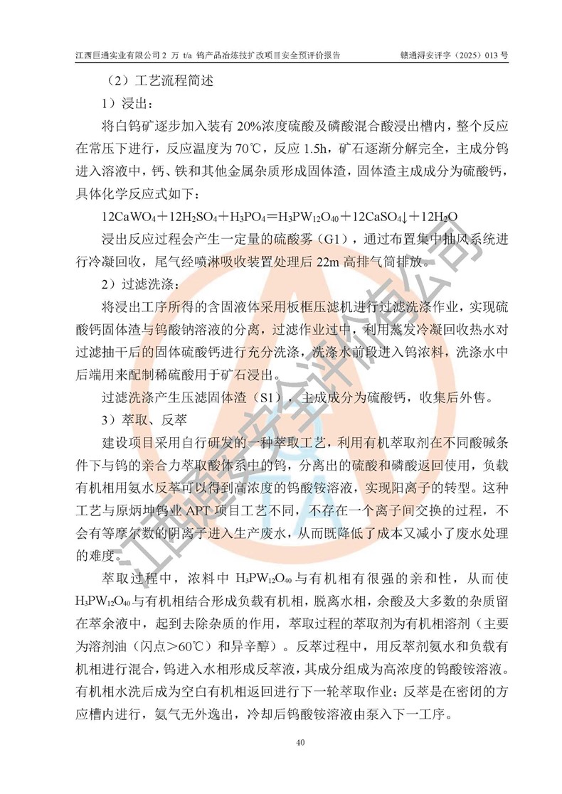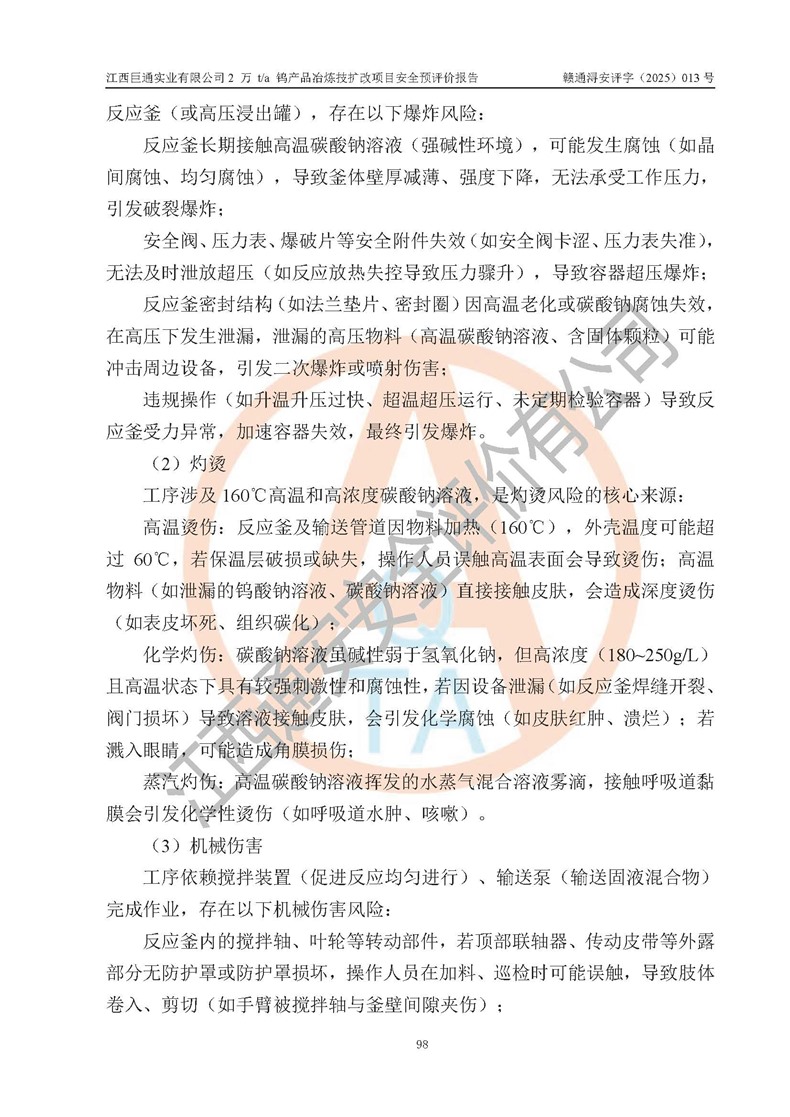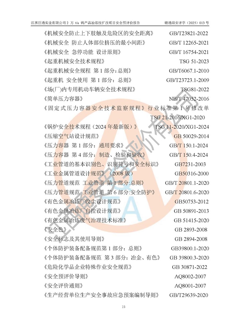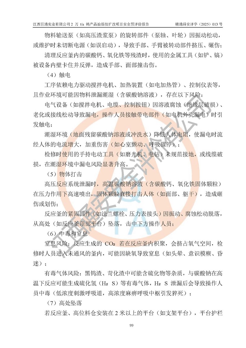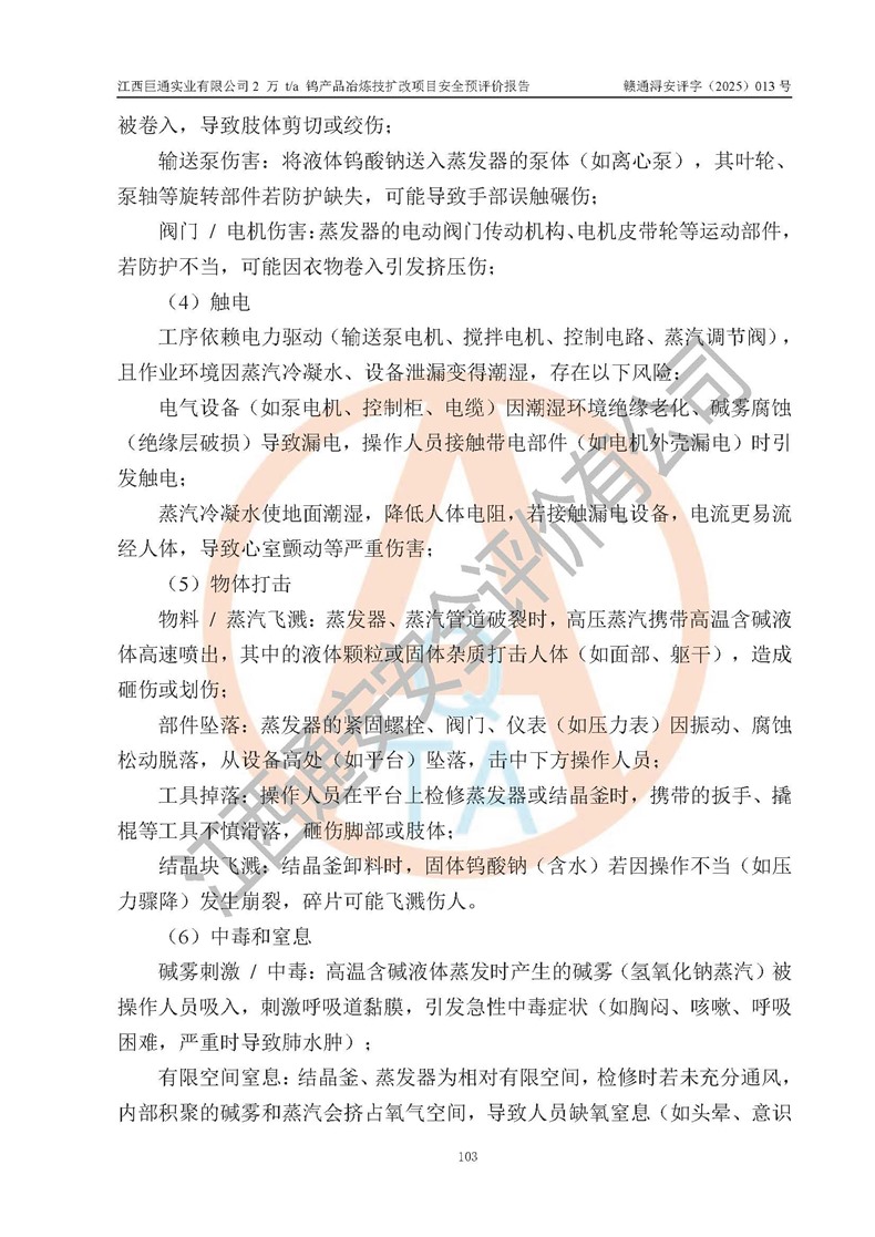 評(píng)價(jià)報(bào)告名稱 | 江西巨通實(shí)業(yè)有限公司2 萬 t/a 鎢產(chǎn)品冶煉技擴(kuò)改項(xiàng)目安全預(yù)評(píng)價(jià)報(bào)告 | |||