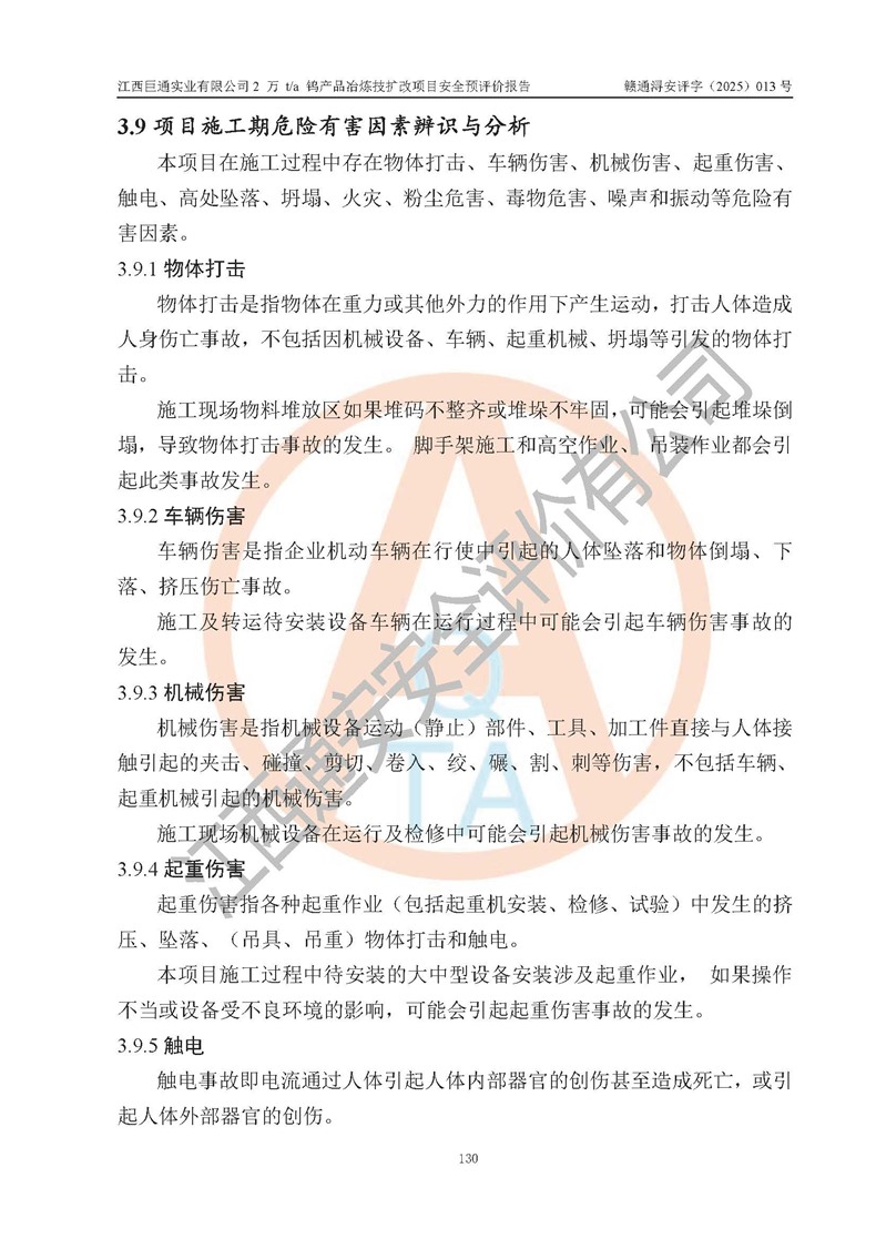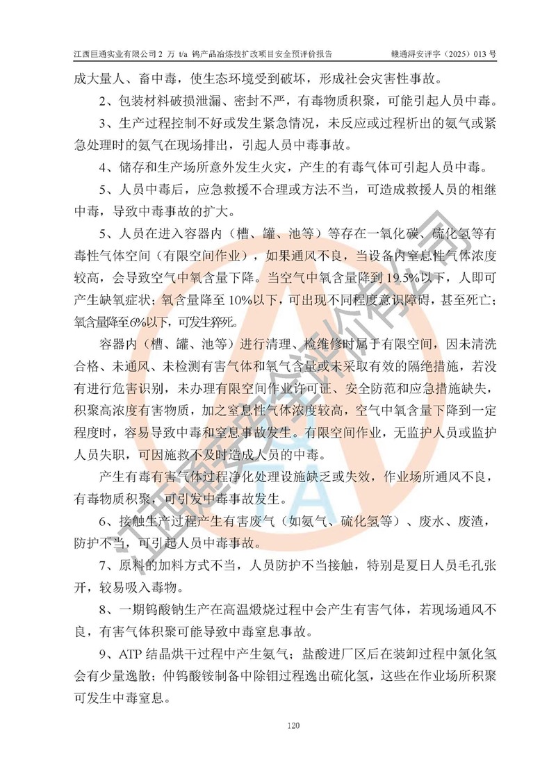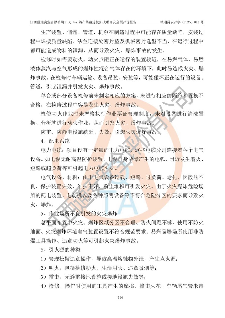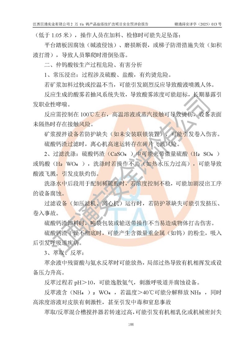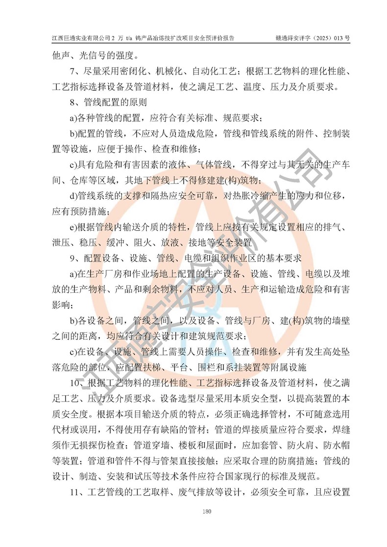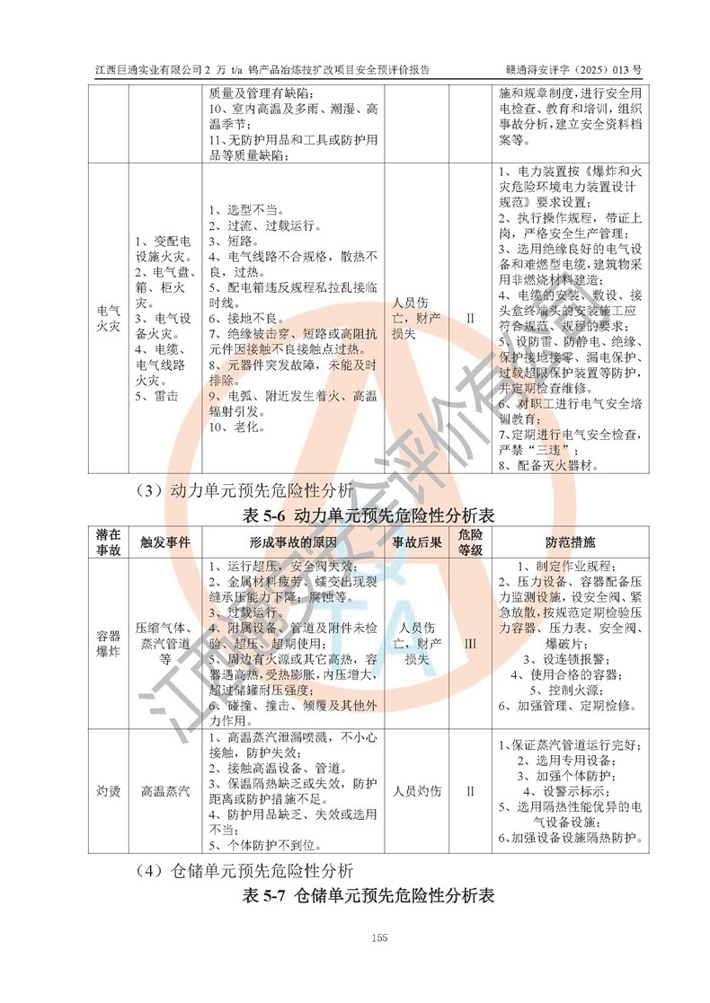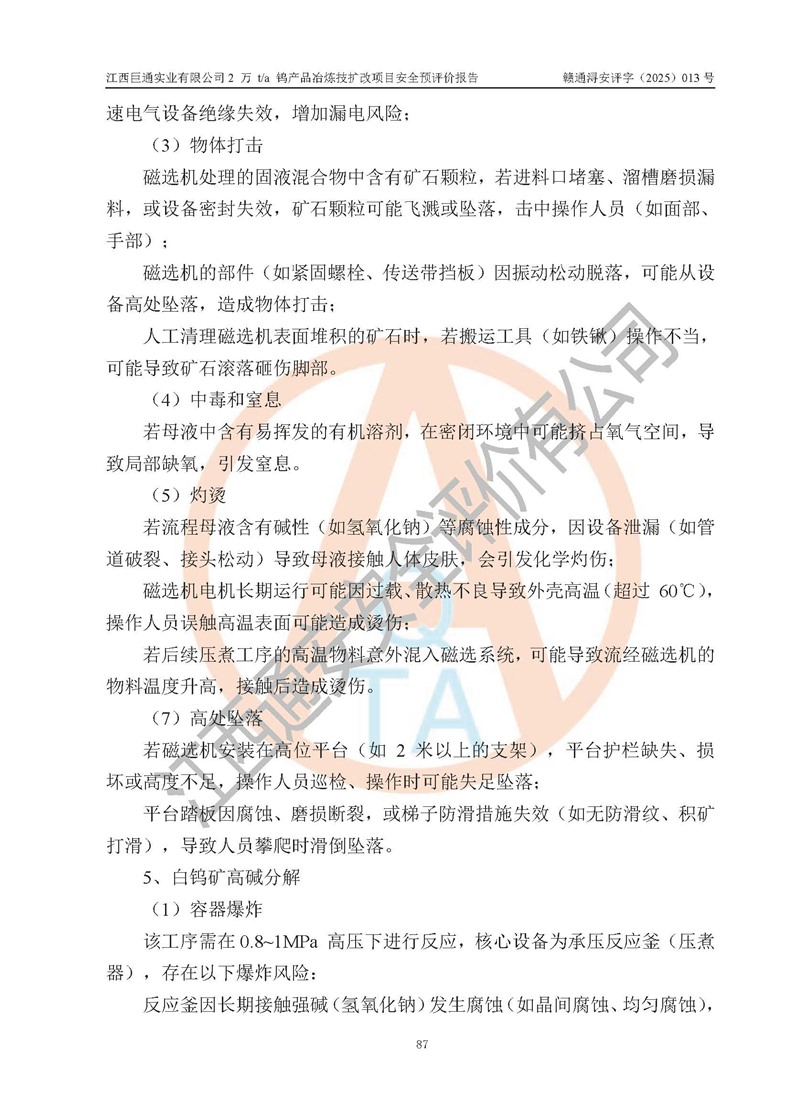 評(píng)價(jià)報(bào)告名稱 | 江西巨通實(shí)業(yè)有限公司2 萬 t/a 鎢產(chǎn)品冶煉技擴(kuò)改項(xiàng)目安全預(yù)評(píng)價(jià)報(bào)告 | |||