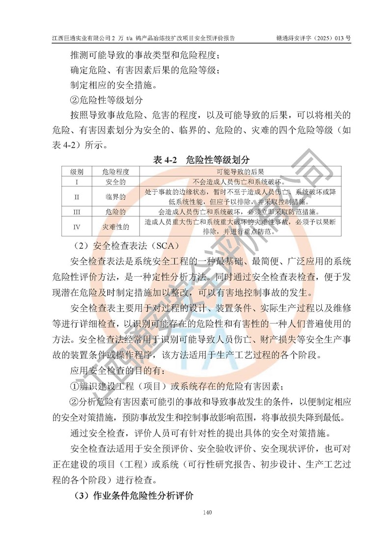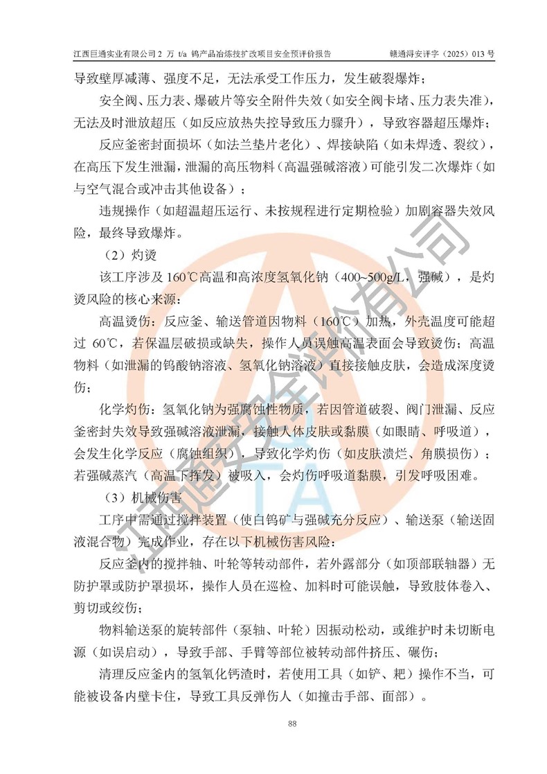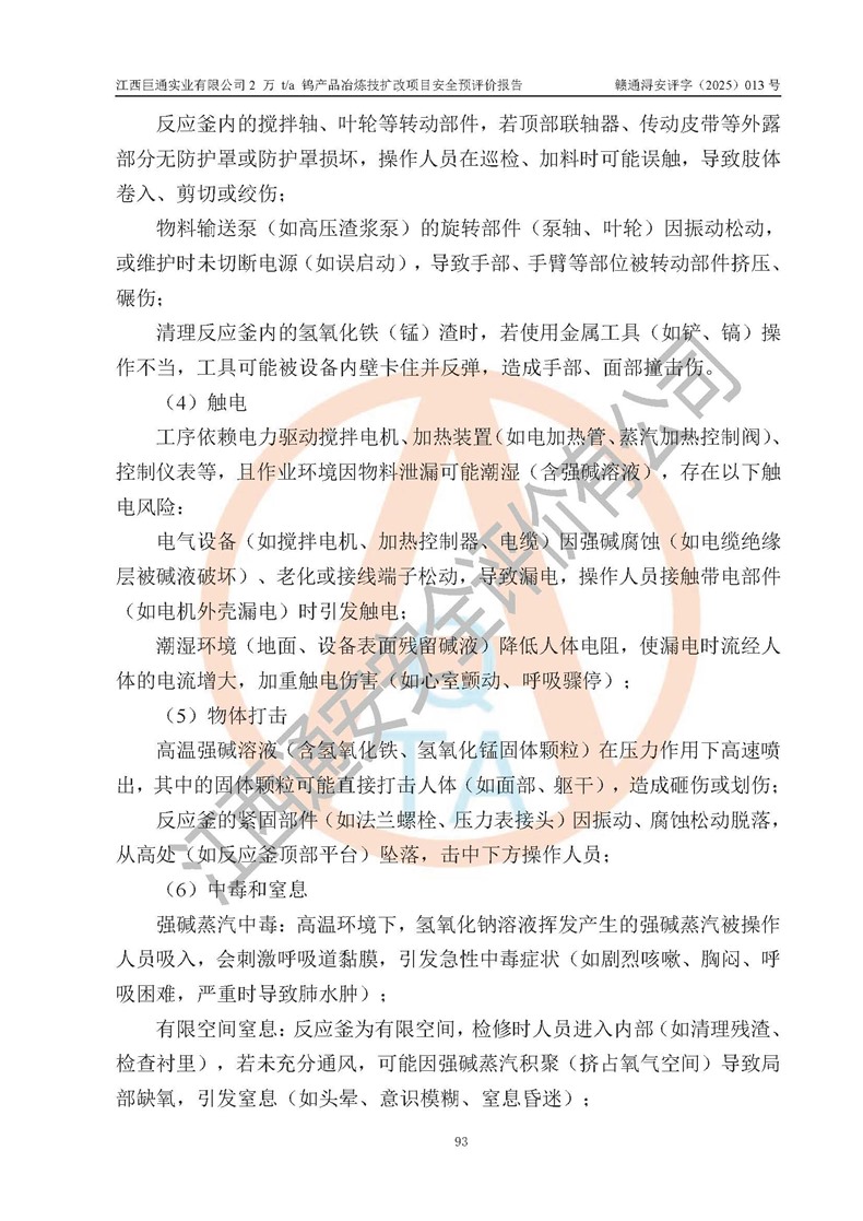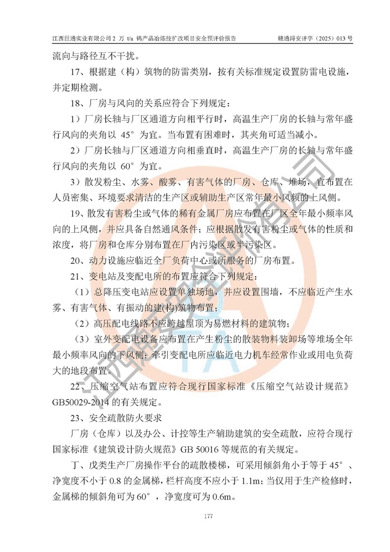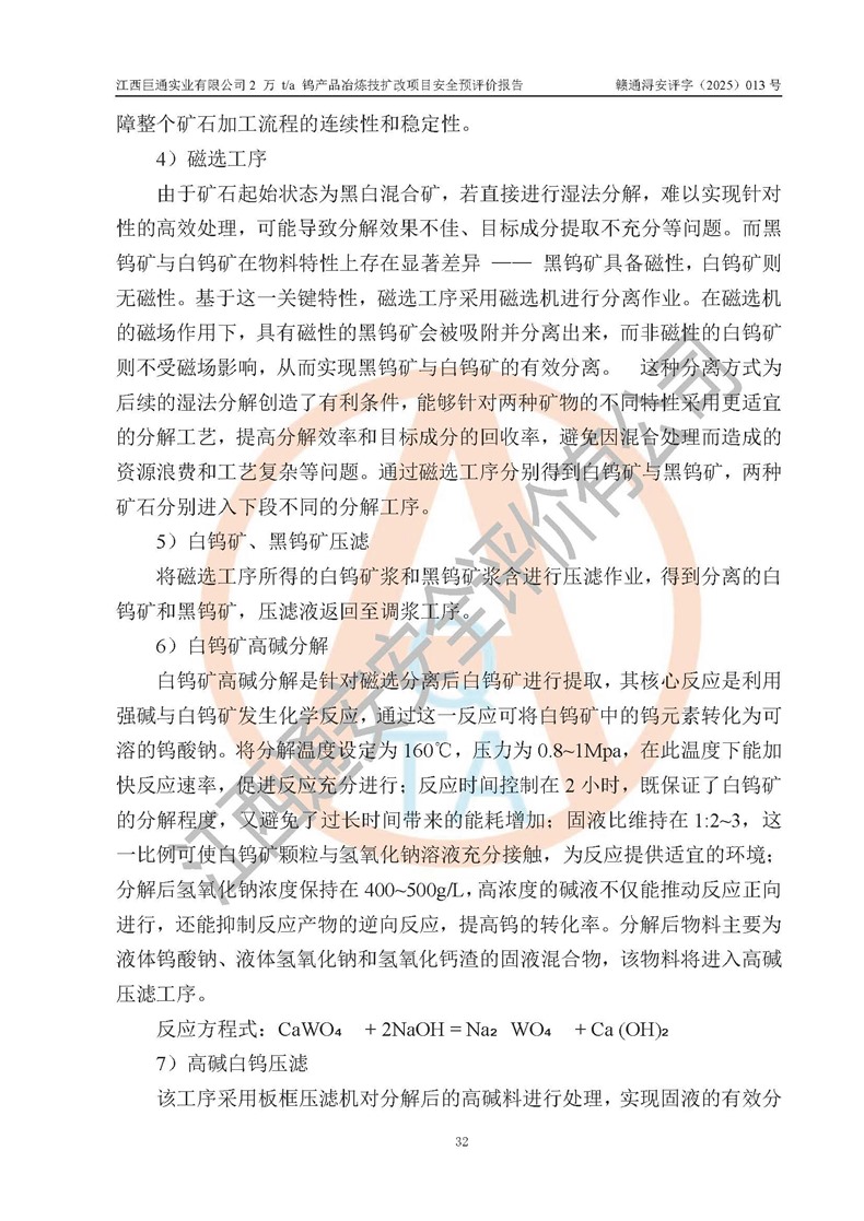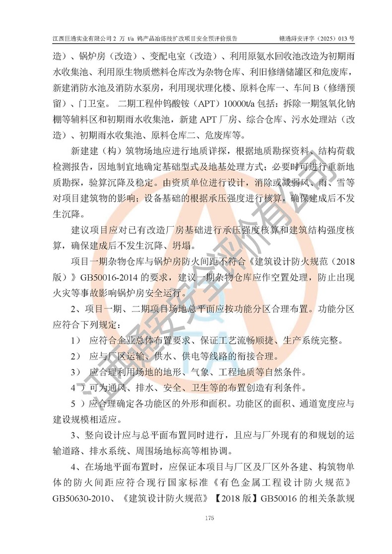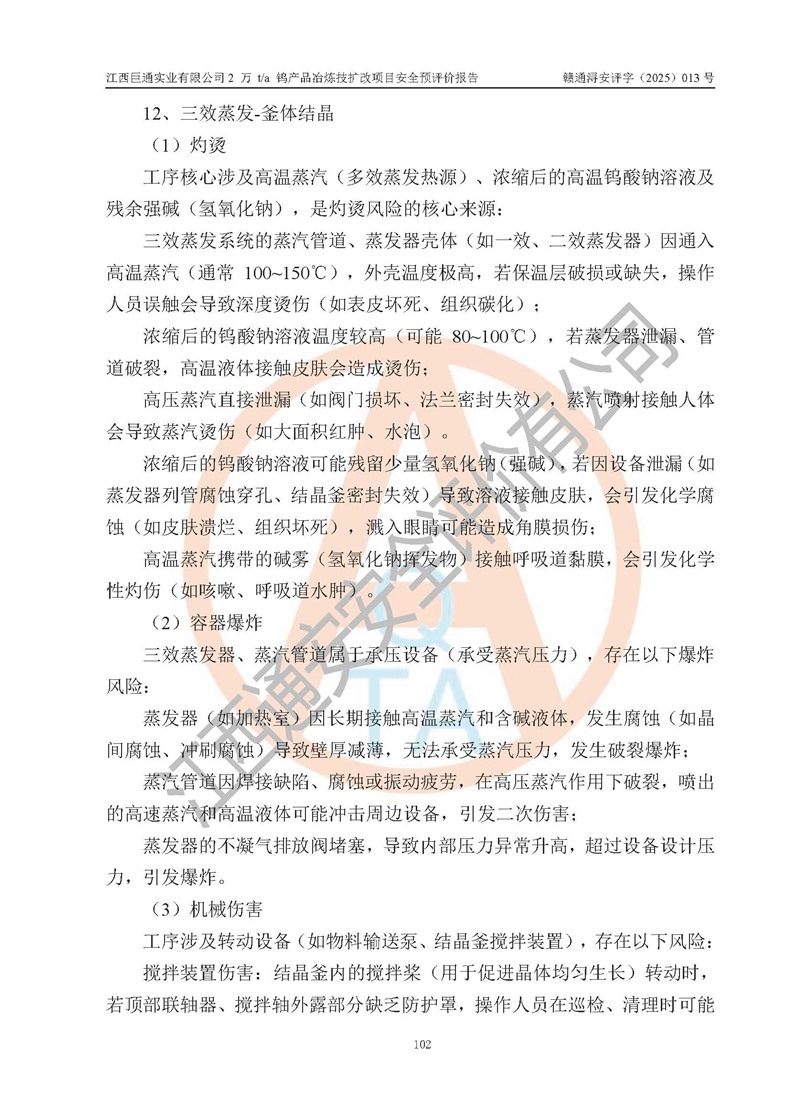 評(píng)價(jià)報(bào)告名稱 | 江西巨通實(shí)業(yè)有限公司2 萬 t/a 鎢產(chǎn)品冶煉技擴(kuò)改項(xiàng)目安全預(yù)評(píng)價(jià)報(bào)告 | |||