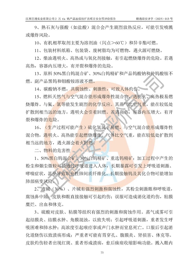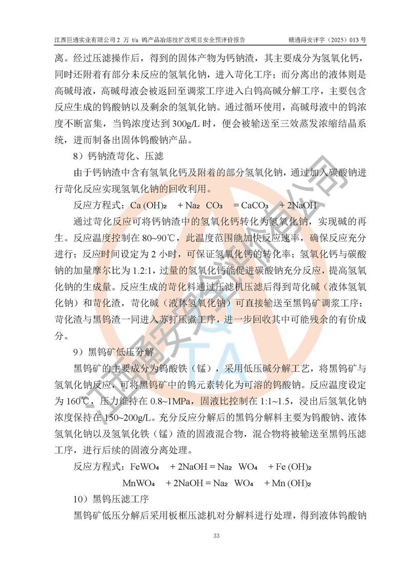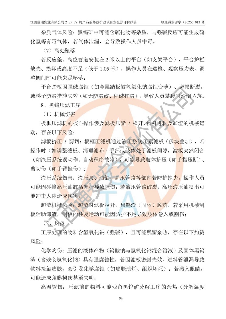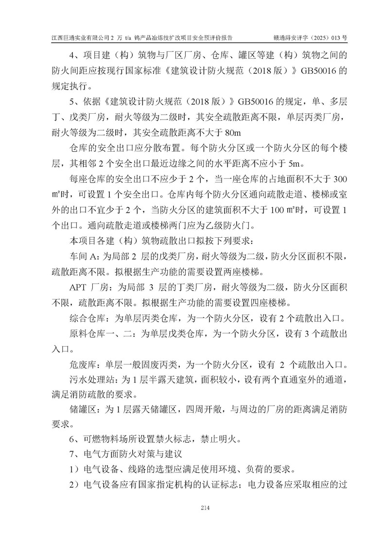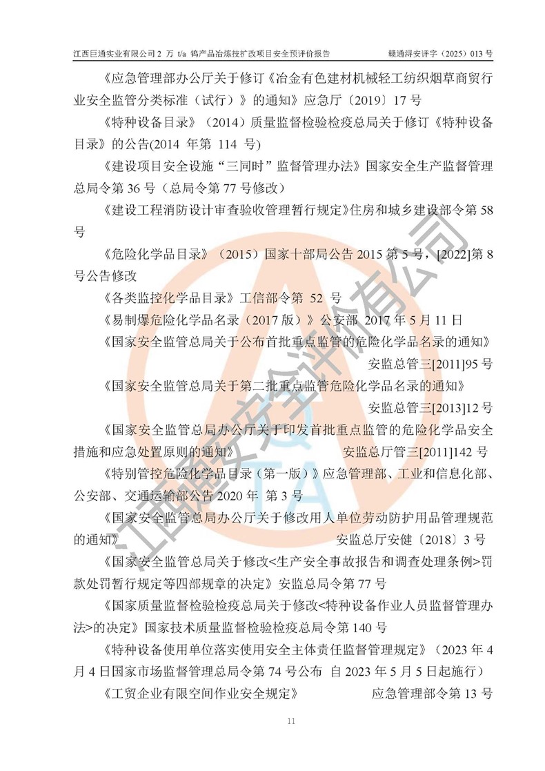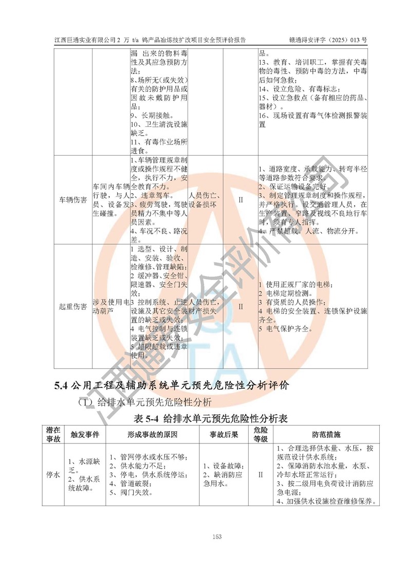 評(píng)價(jià)報(bào)告名稱 | 江西巨通實(shí)業(yè)有限公司2 萬 t/a 鎢產(chǎn)品冶煉技擴(kuò)改項(xiàng)目安全預(yù)評(píng)價(jià)報(bào)告 | |||