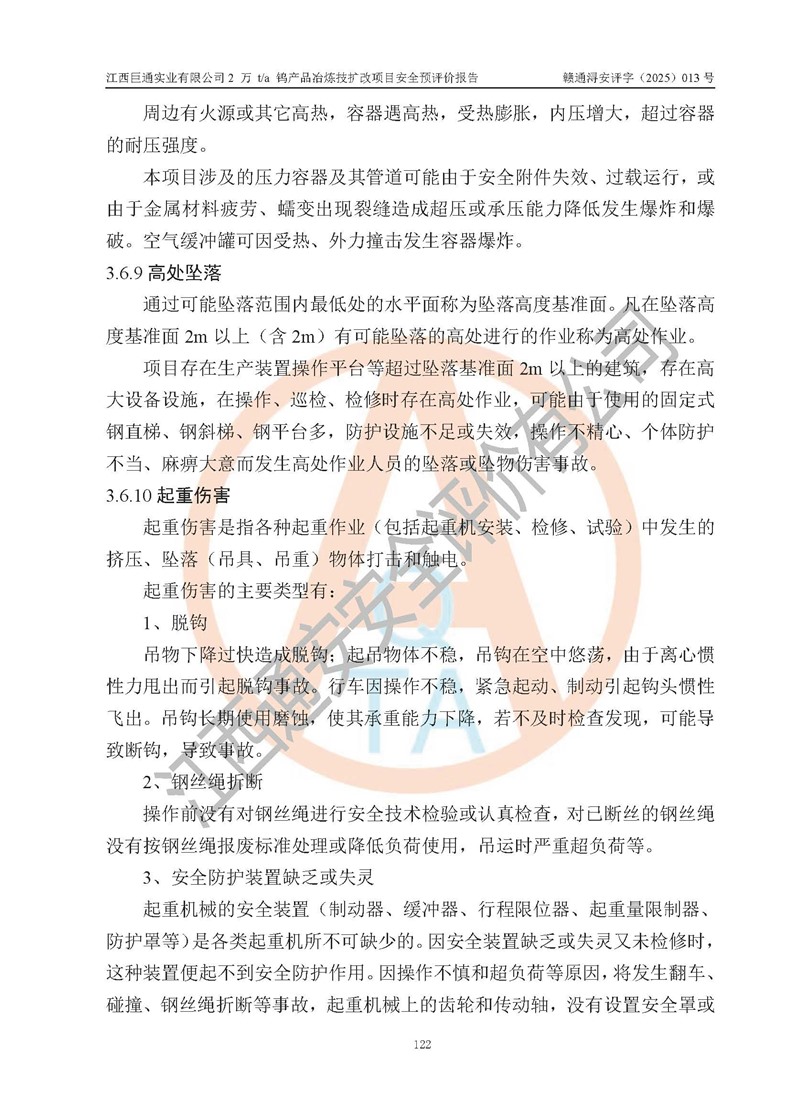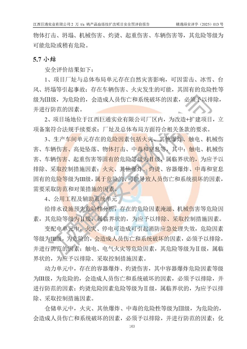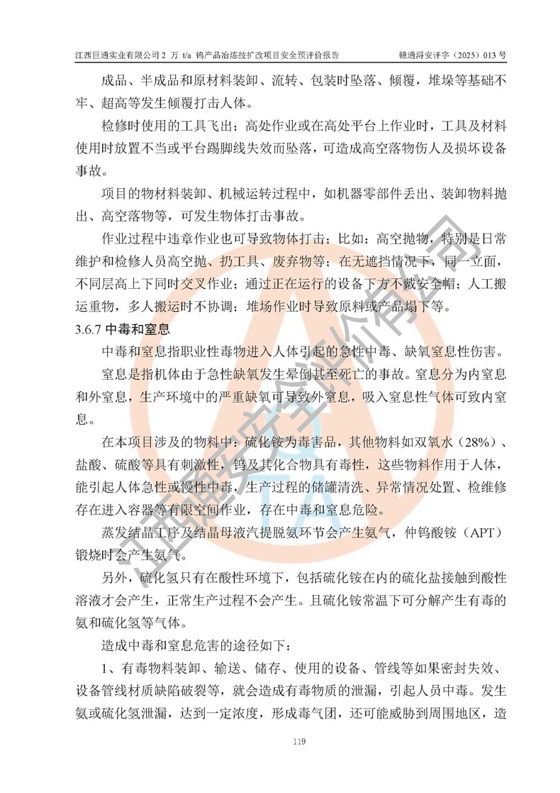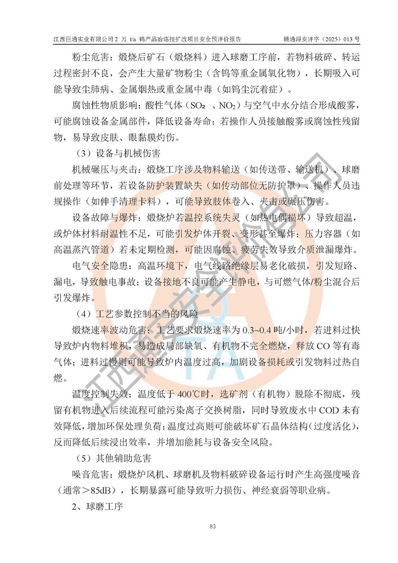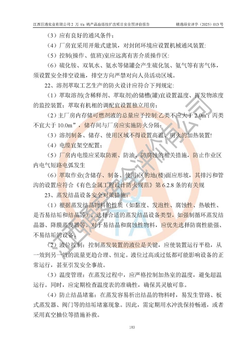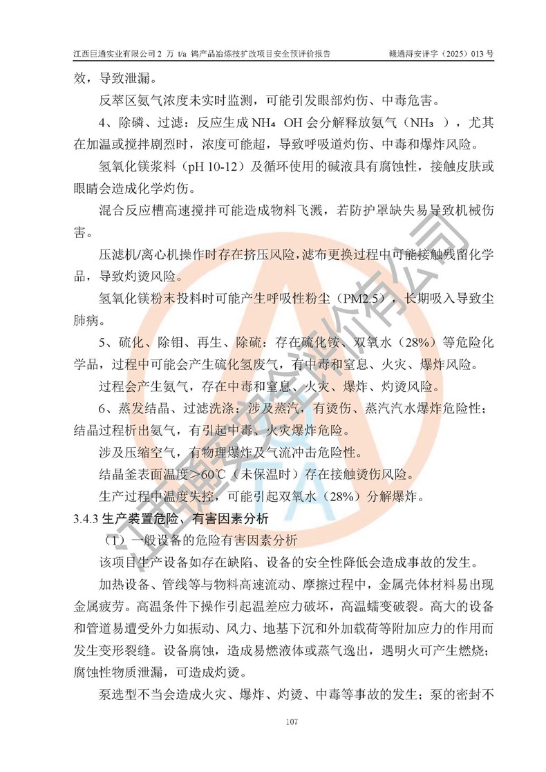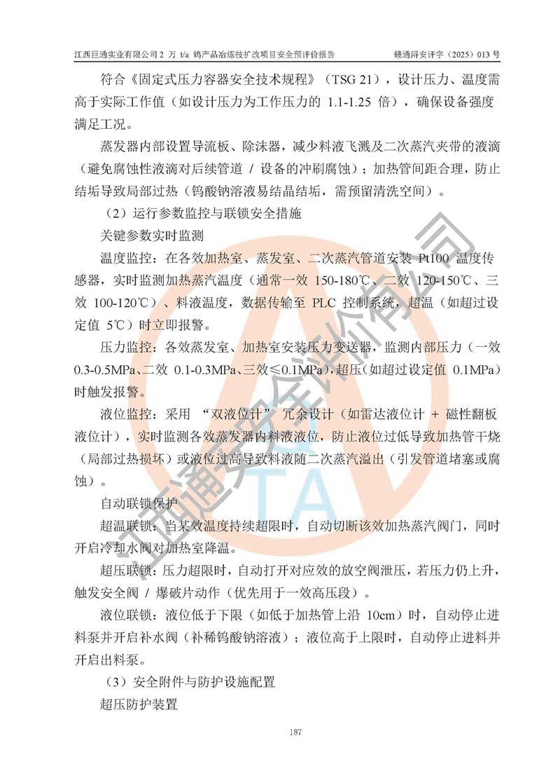 評(píng)價(jià)報(bào)告名稱 | 江西巨通實(shí)業(yè)有限公司2 萬 t/a 鎢產(chǎn)品冶煉技擴(kuò)改項(xiàng)目安全預(yù)評(píng)價(jià)報(bào)告 | |||