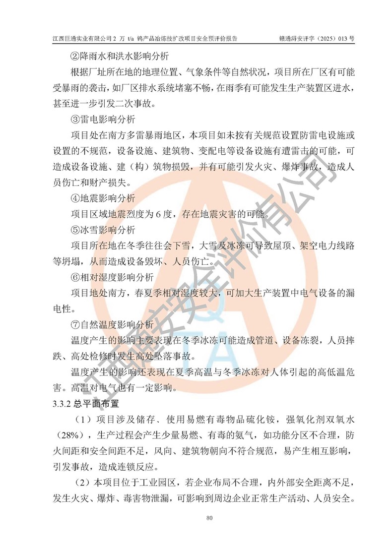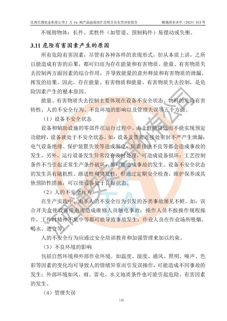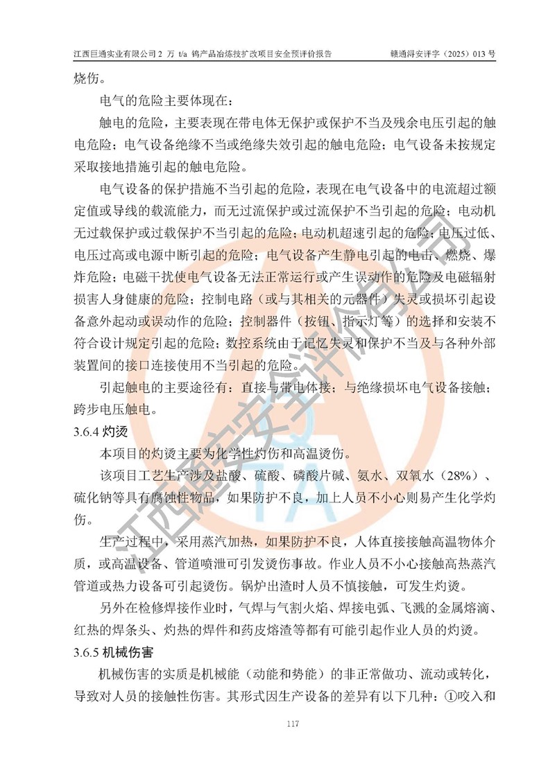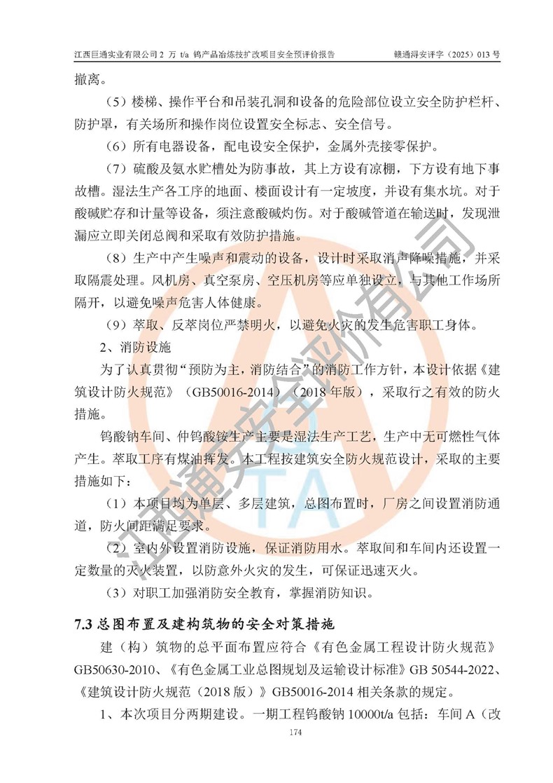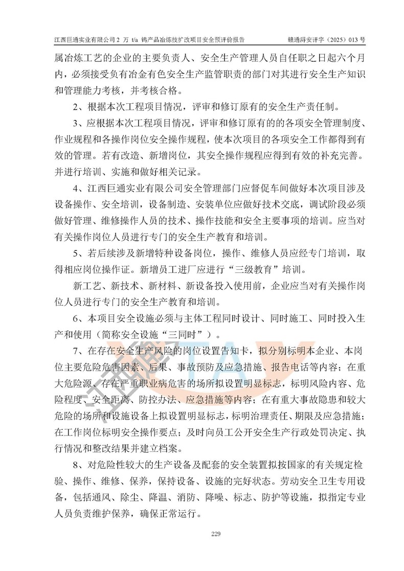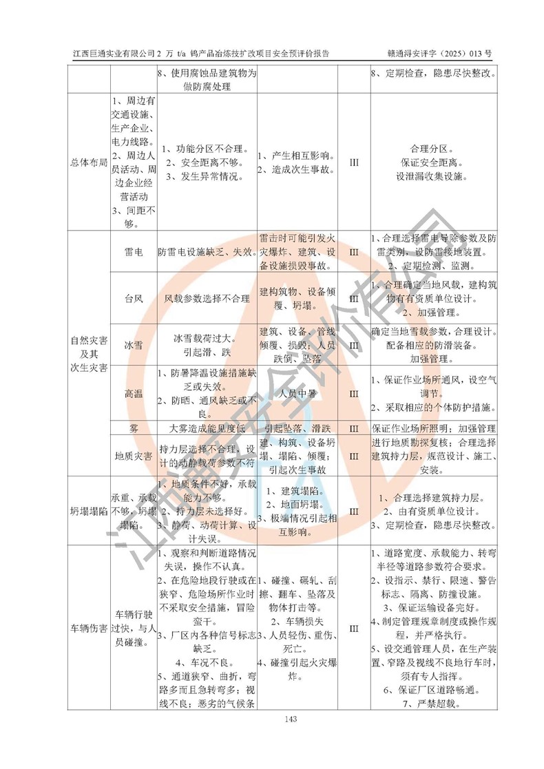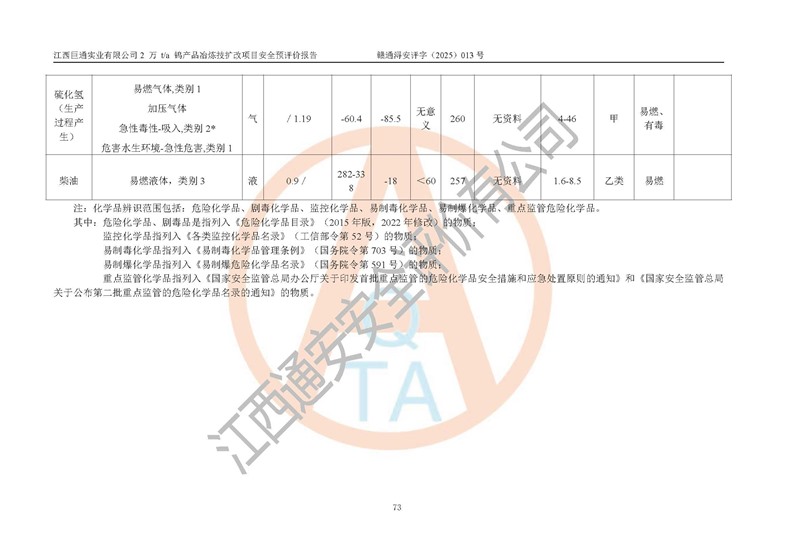 評(píng)價(jià)報(bào)告名稱 | 江西巨通實(shí)業(yè)有限公司2 萬 t/a 鎢產(chǎn)品冶煉技擴(kuò)改項(xiàng)目安全預(yù)評(píng)價(jià)報(bào)告 | |||