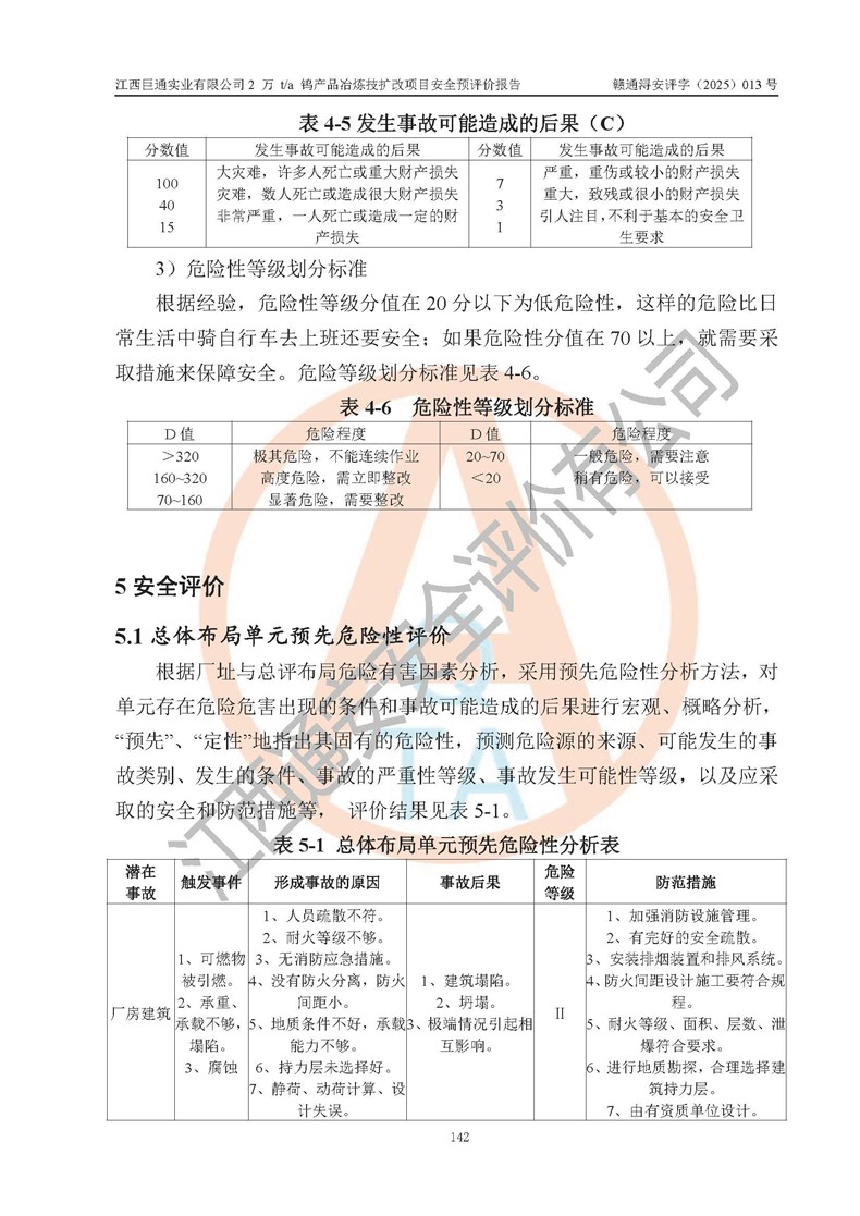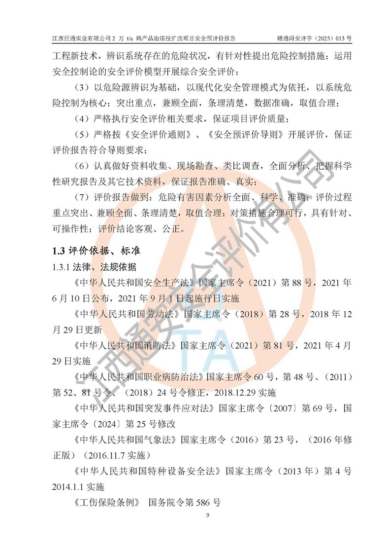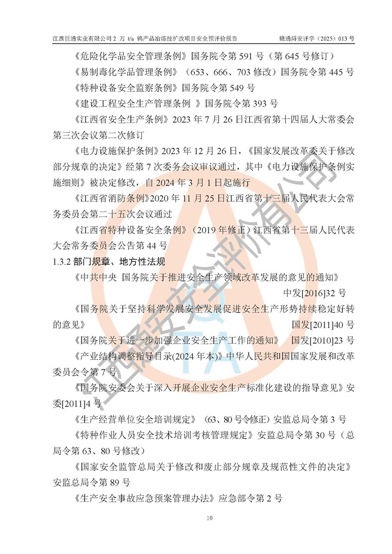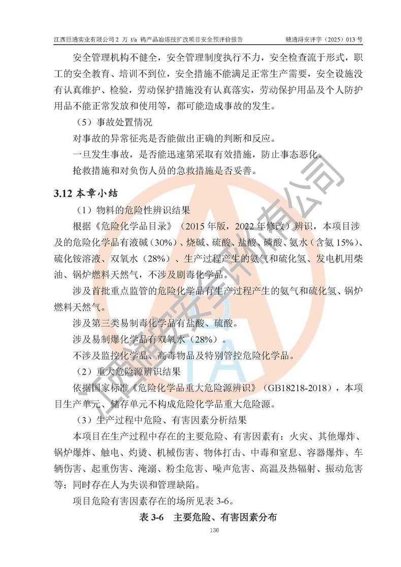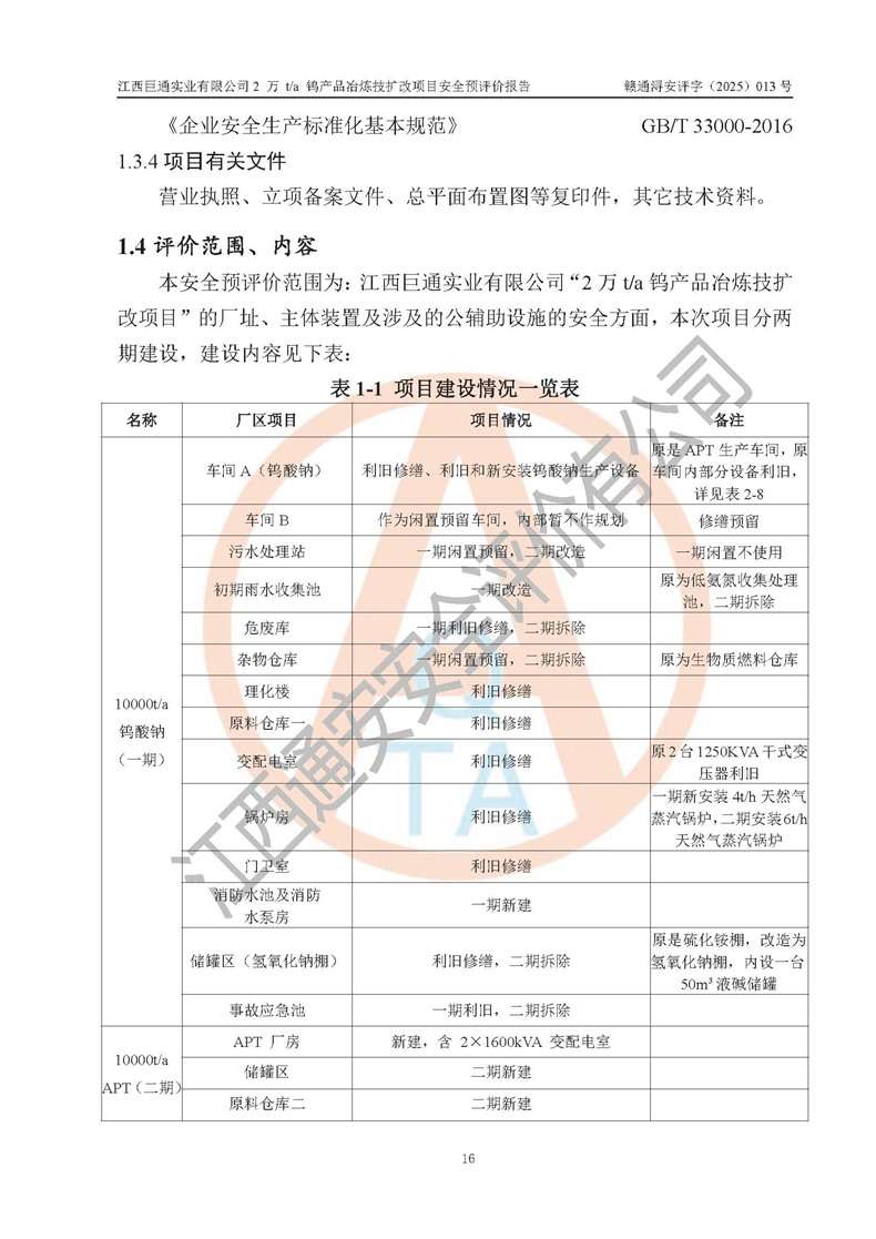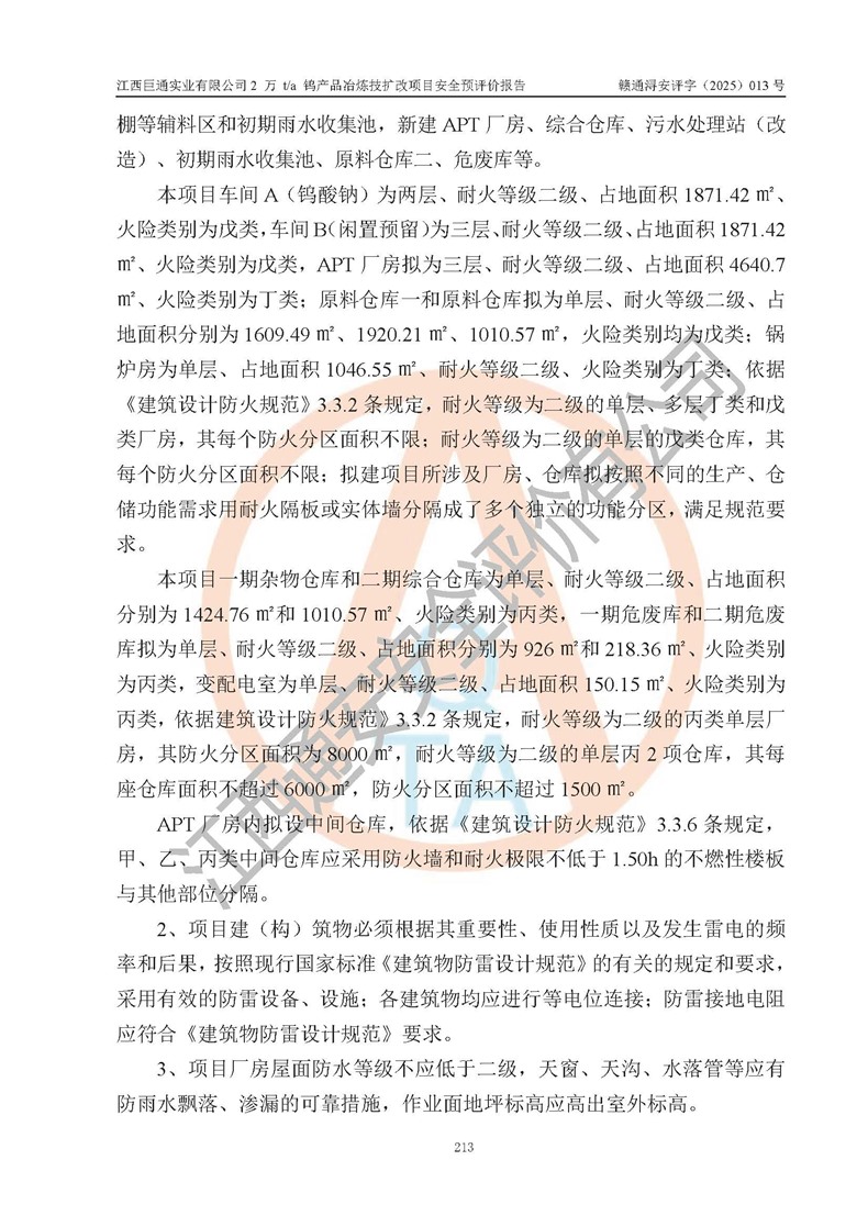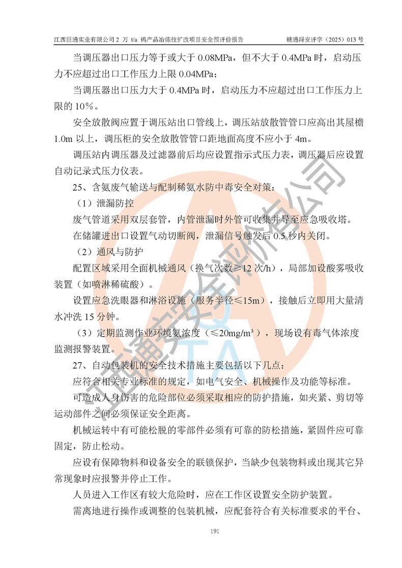 評(píng)價(jià)報(bào)告名稱 | 江西巨通實(shí)業(yè)有限公司2 萬 t/a 鎢產(chǎn)品冶煉技擴(kuò)改項(xiàng)目安全預(yù)評(píng)價(jià)報(bào)告 | |||