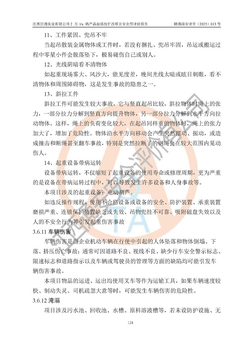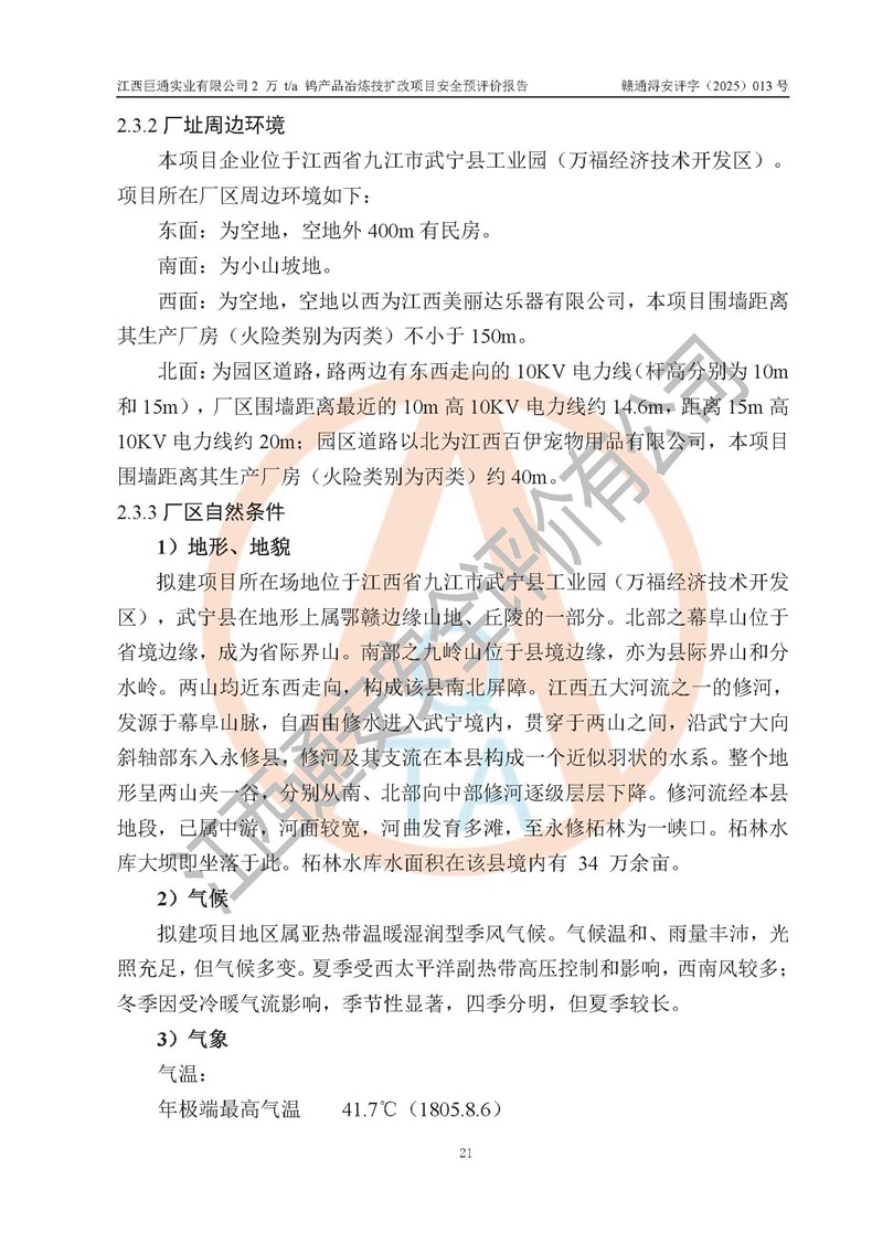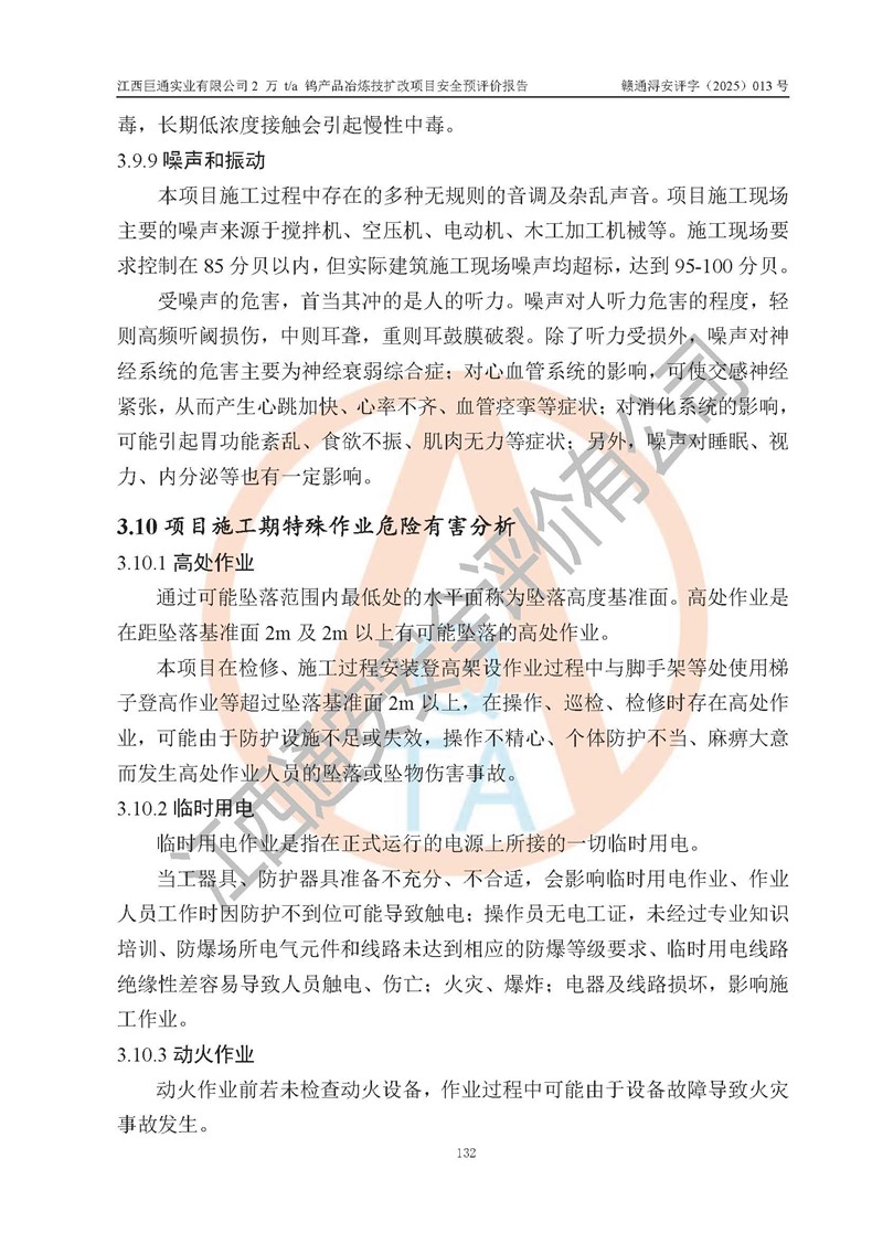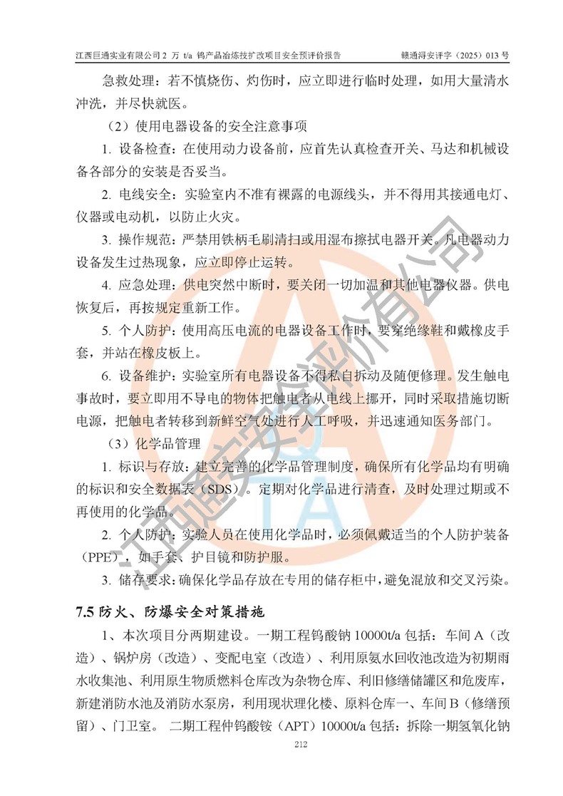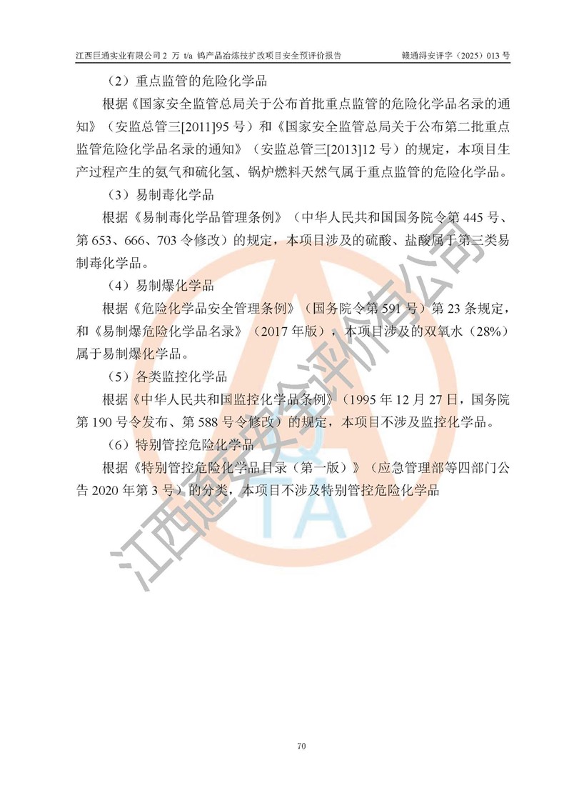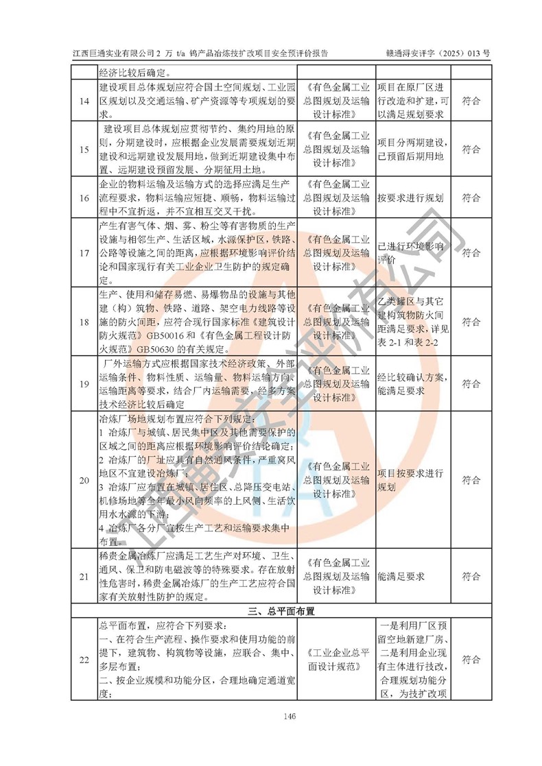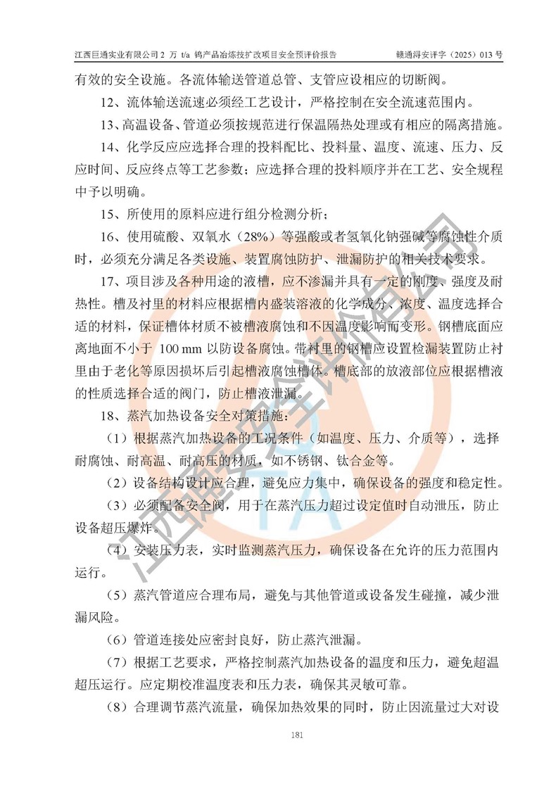 評(píng)價(jià)報(bào)告名稱 | 江西巨通實(shí)業(yè)有限公司2 萬 t/a 鎢產(chǎn)品冶煉技擴(kuò)改項(xiàng)目安全預(yù)評(píng)價(jià)報(bào)告 | |||