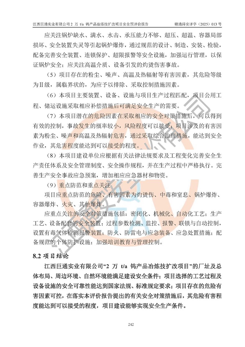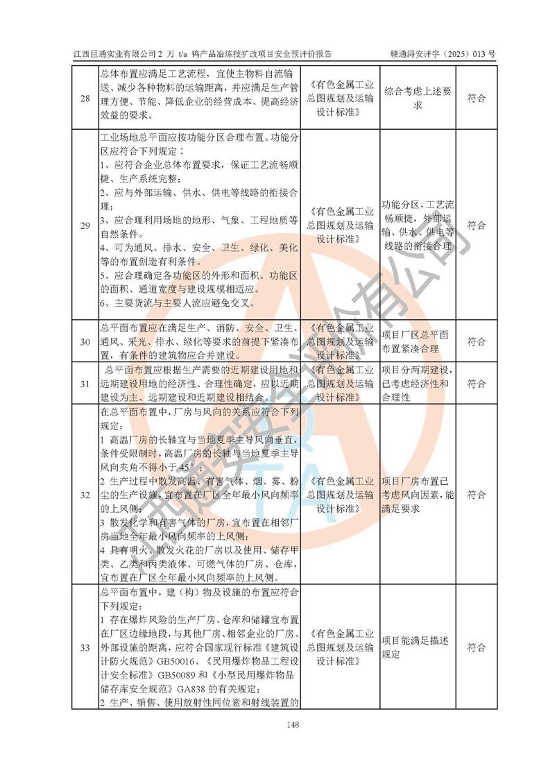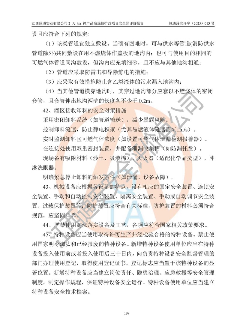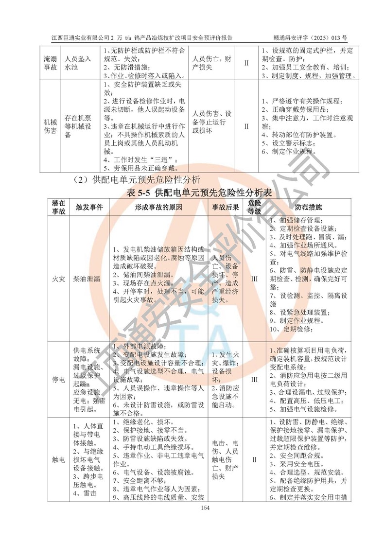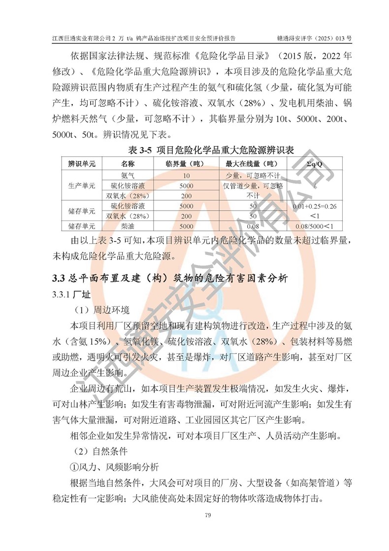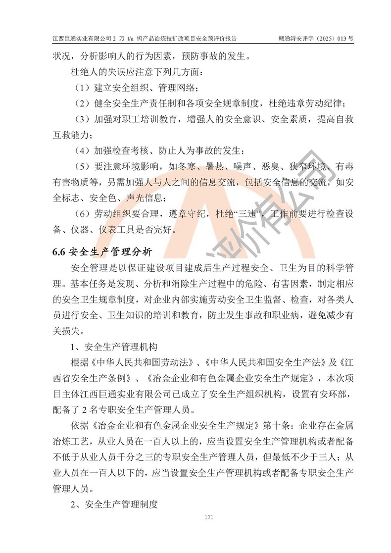 評(píng)價(jià)報(bào)告名稱 | 江西巨通實(shí)業(yè)有限公司2 萬 t/a 鎢產(chǎn)品冶煉技擴(kuò)改項(xiàng)目安全預(yù)評(píng)價(jià)報(bào)告 | |||