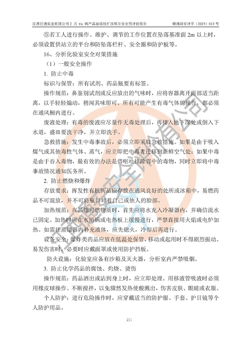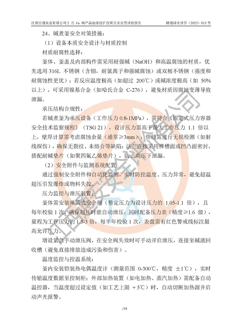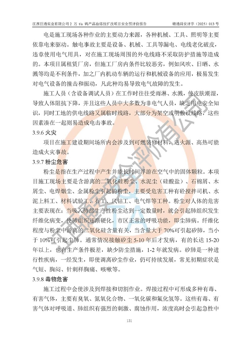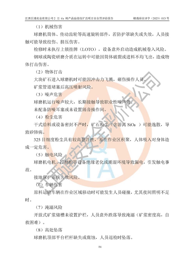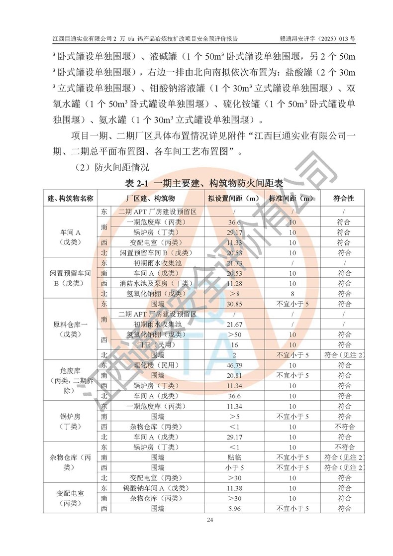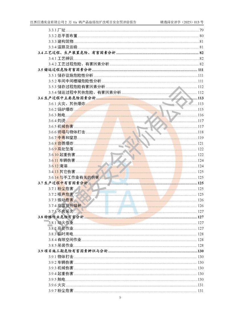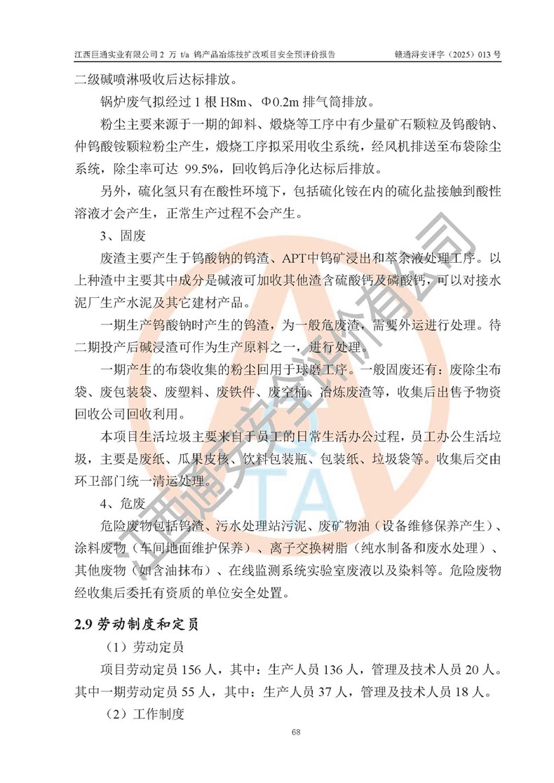 評(píng)價(jià)報(bào)告名稱 | 江西巨通實(shí)業(yè)有限公司2 萬 t/a 鎢產(chǎn)品冶煉技擴(kuò)改項(xiàng)目安全預(yù)評(píng)價(jià)報(bào)告 | |||