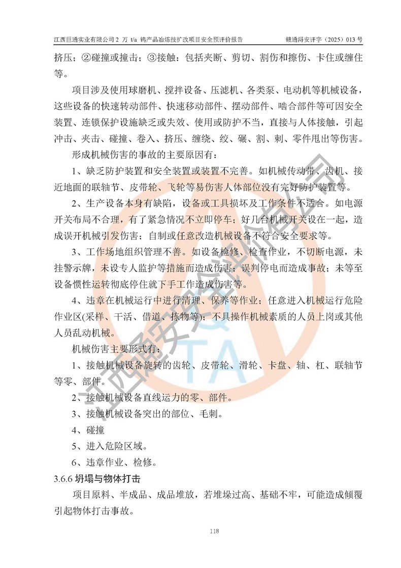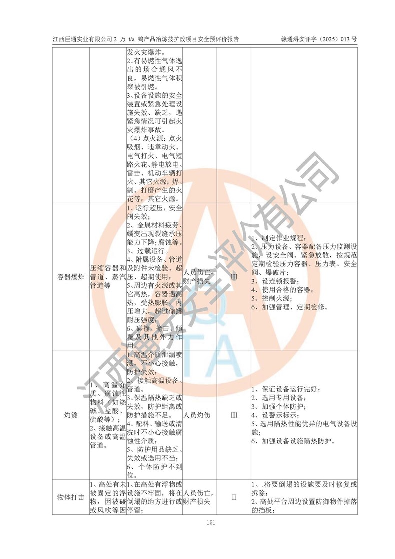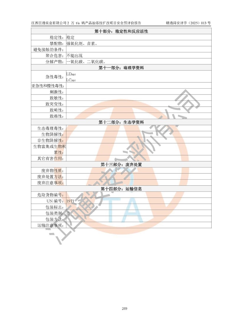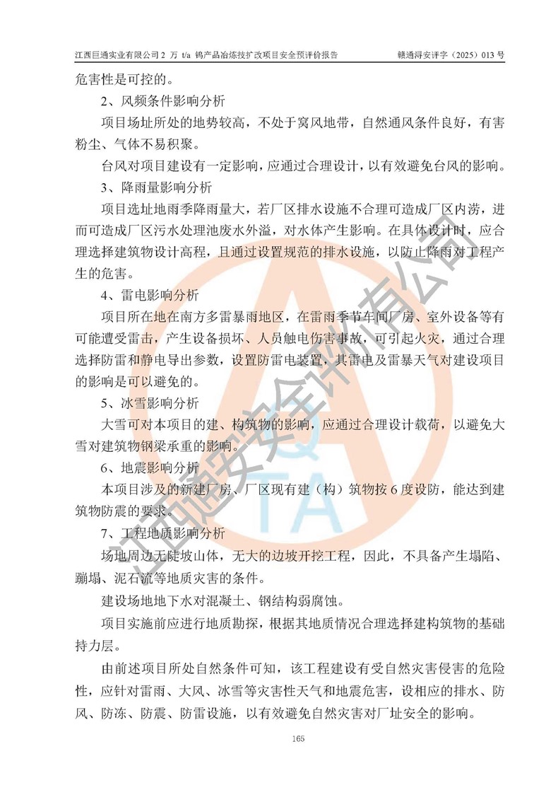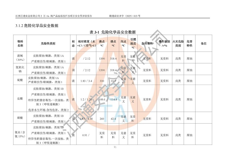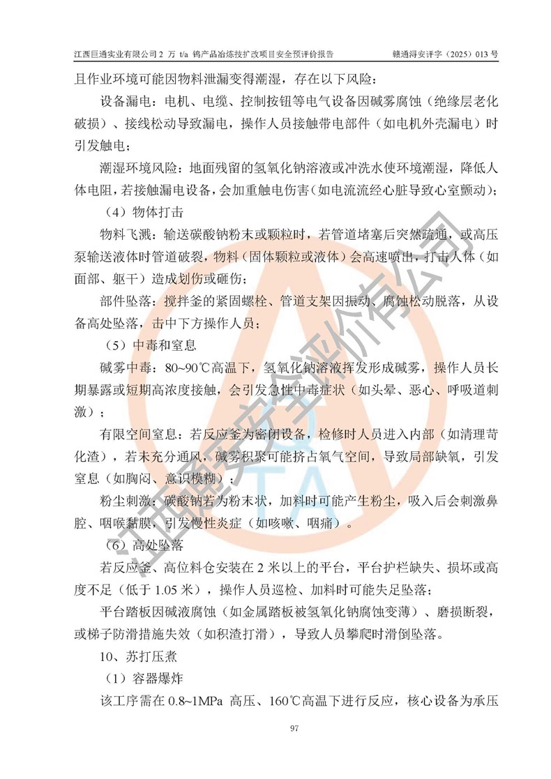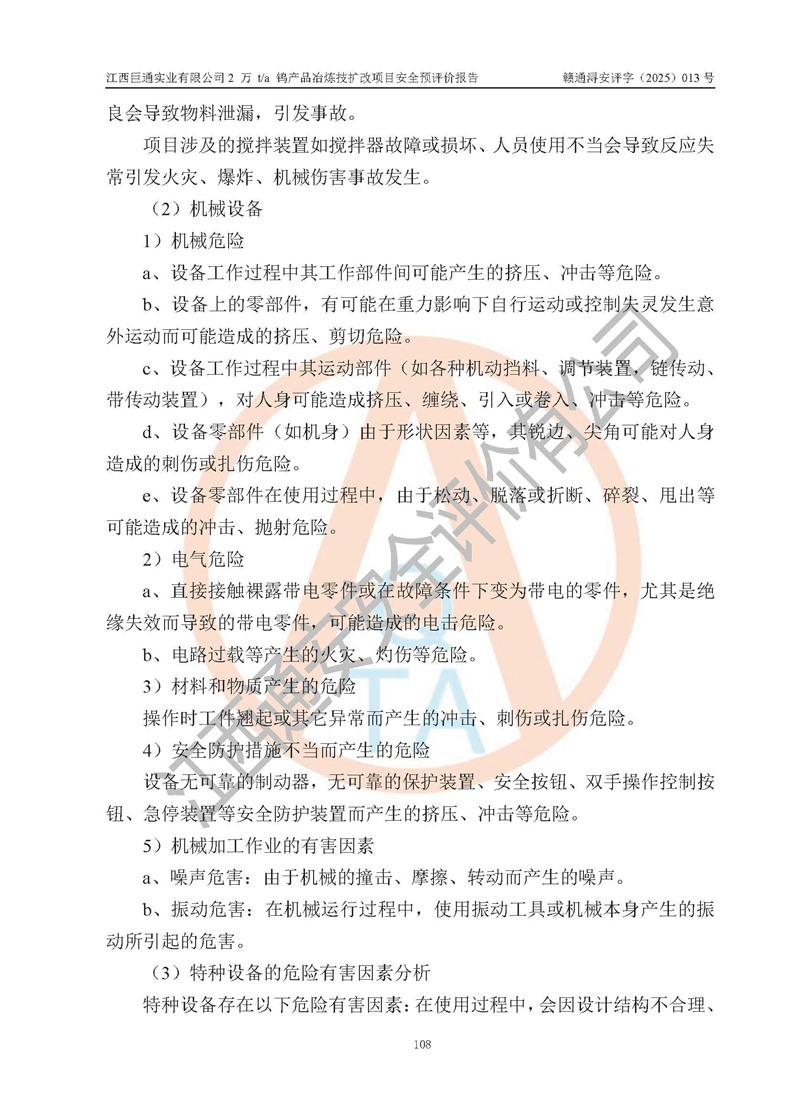 評(píng)價(jià)報(bào)告名稱 | 江西巨通實(shí)業(yè)有限公司2 萬 t/a 鎢產(chǎn)品冶煉技擴(kuò)改項(xiàng)目安全預(yù)評(píng)價(jià)報(bào)告 | |||