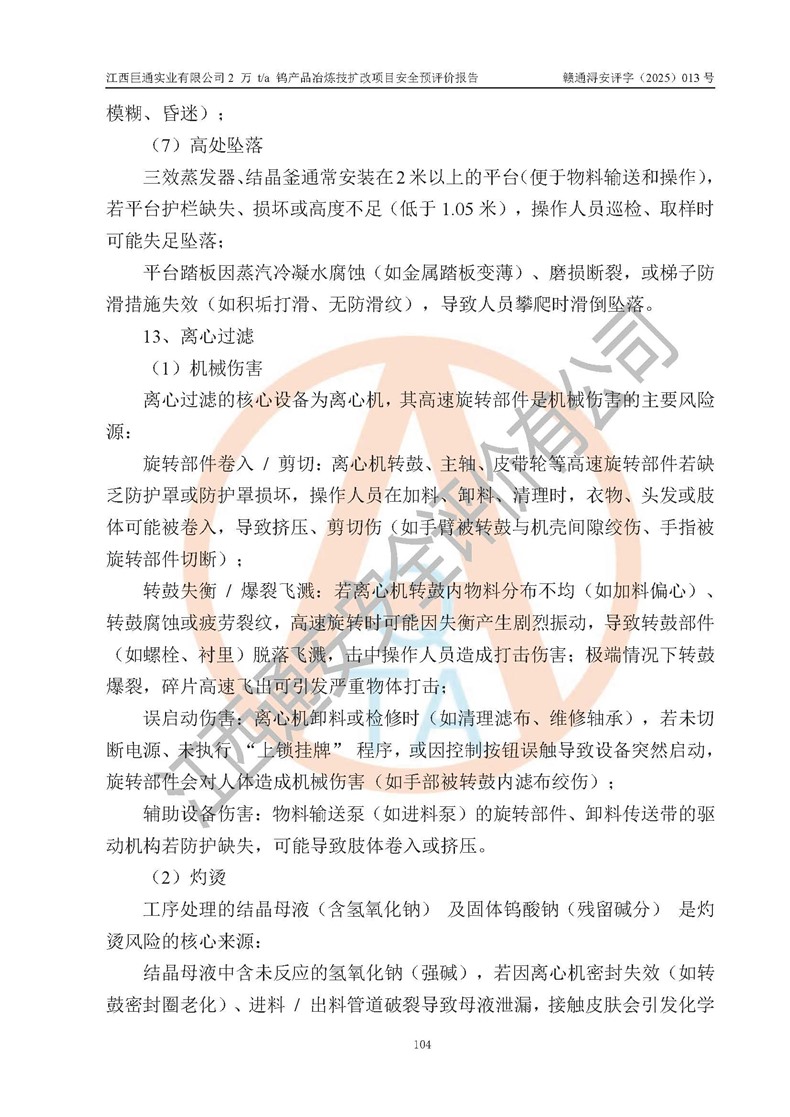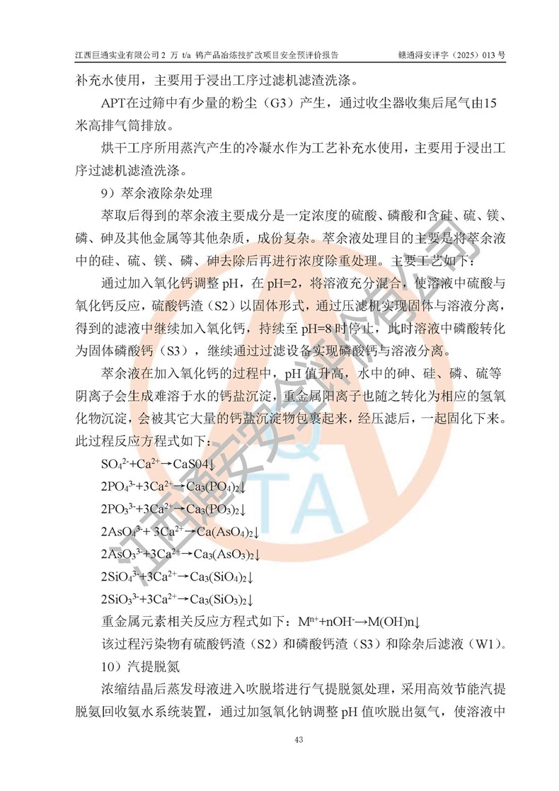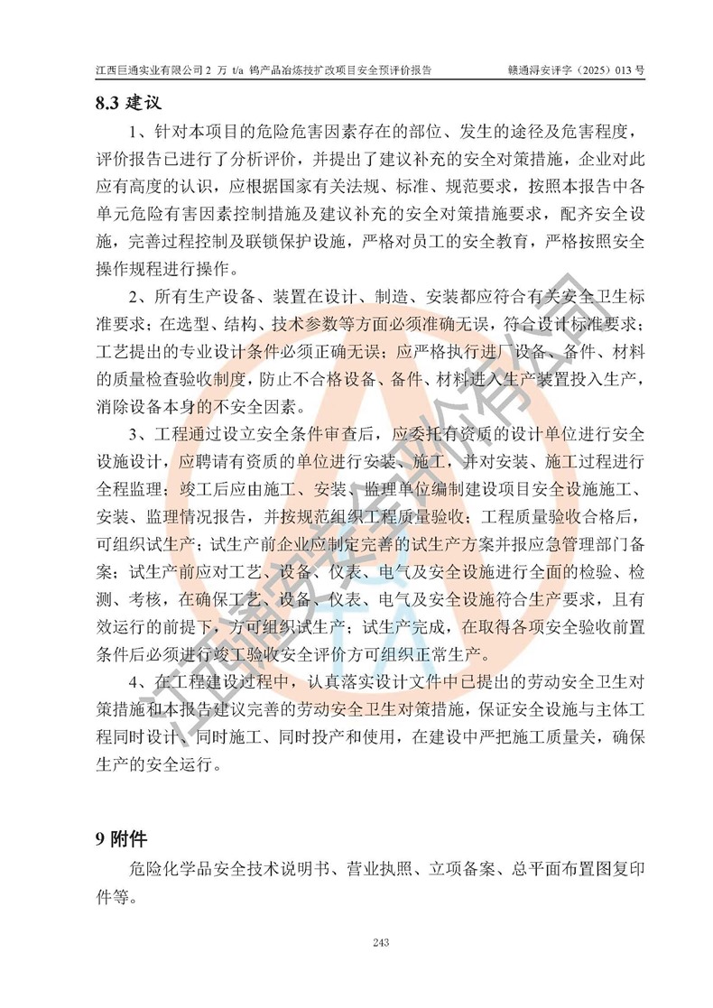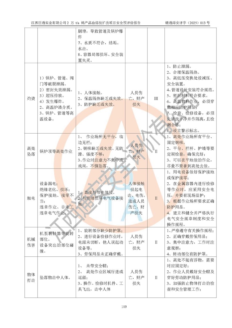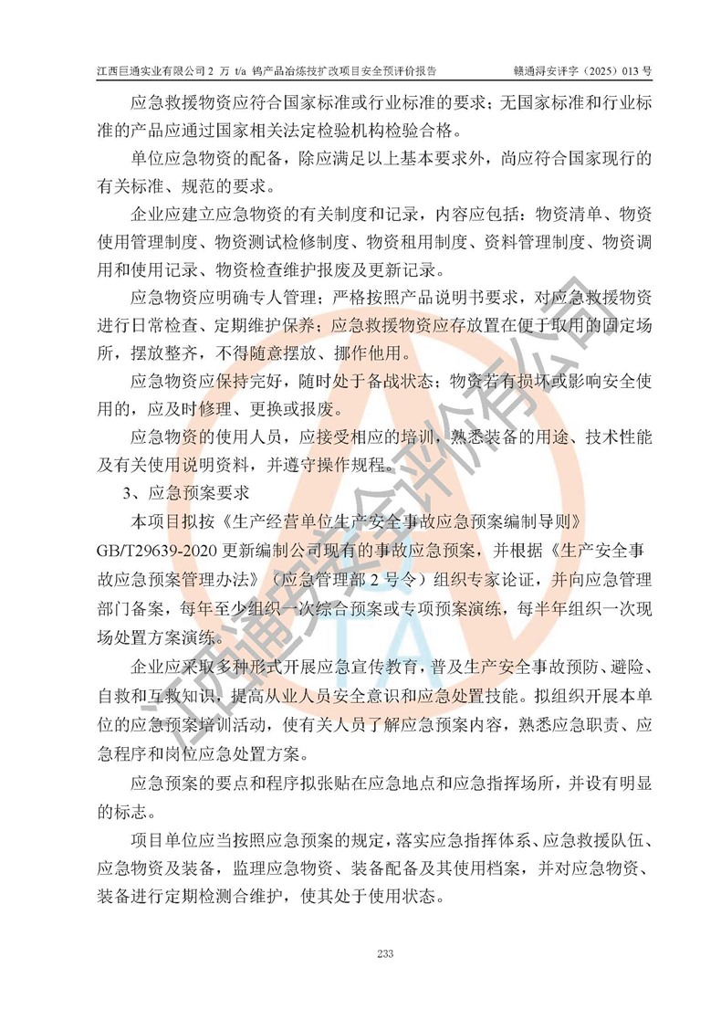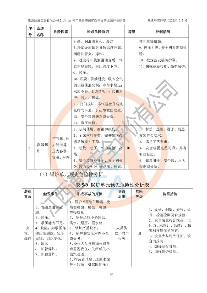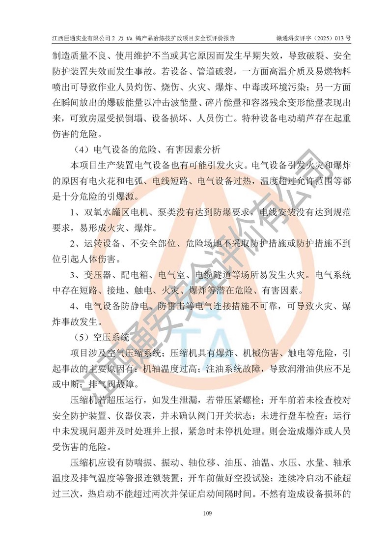 評(píng)價(jià)報(bào)告名稱 | 江西巨通實(shí)業(yè)有限公司2 萬 t/a 鎢產(chǎn)品冶煉技擴(kuò)改項(xiàng)目安全預(yù)評(píng)價(jià)報(bào)告 | |||