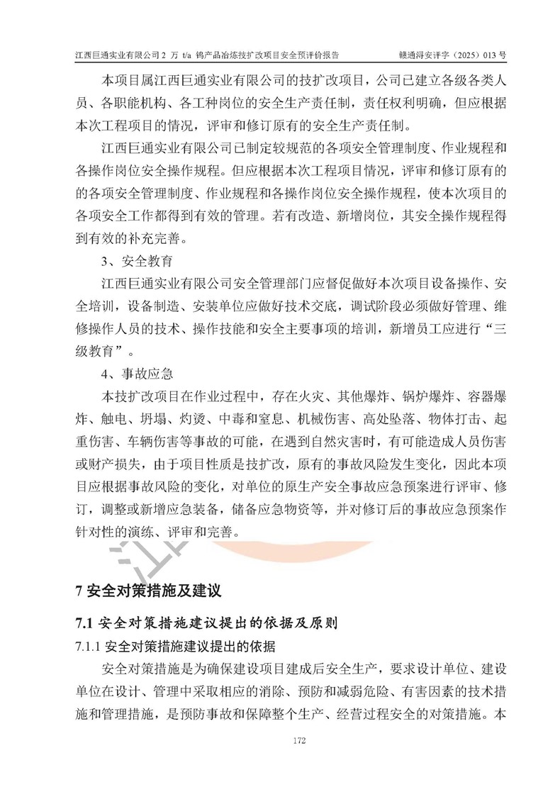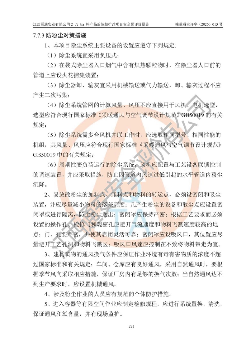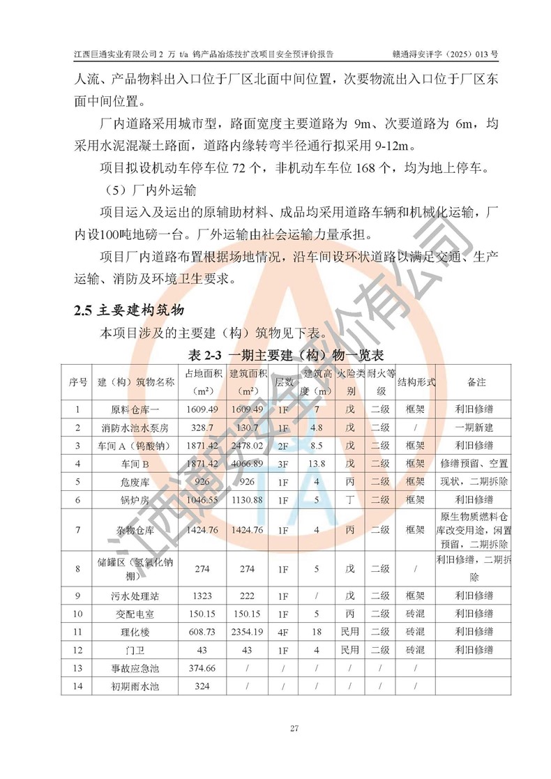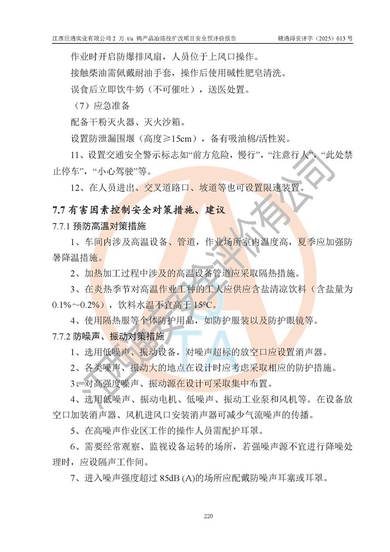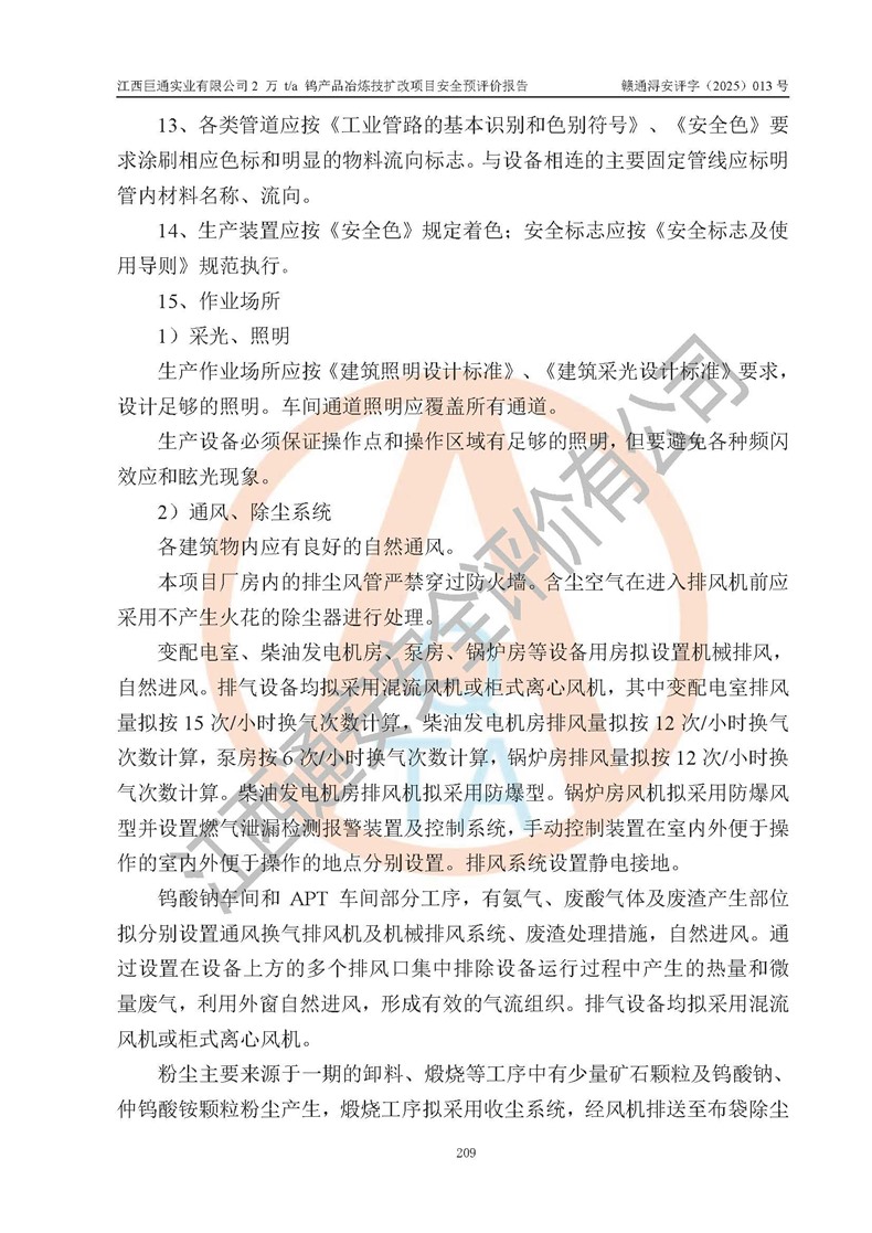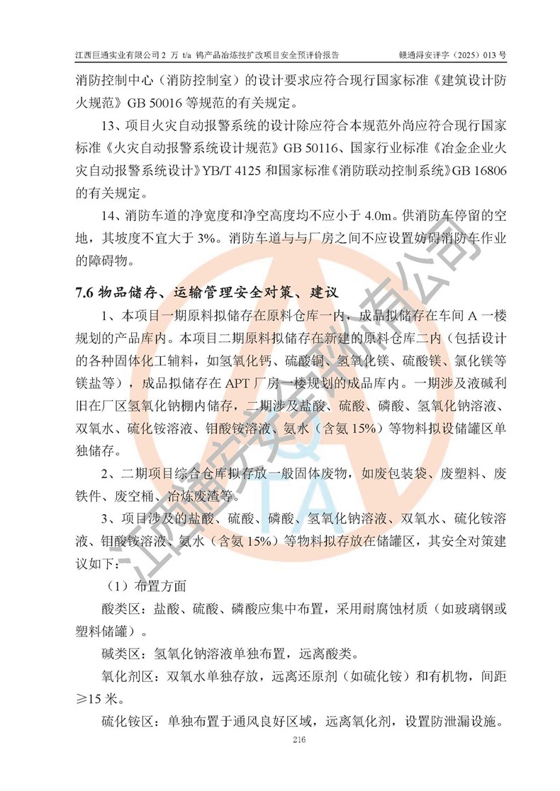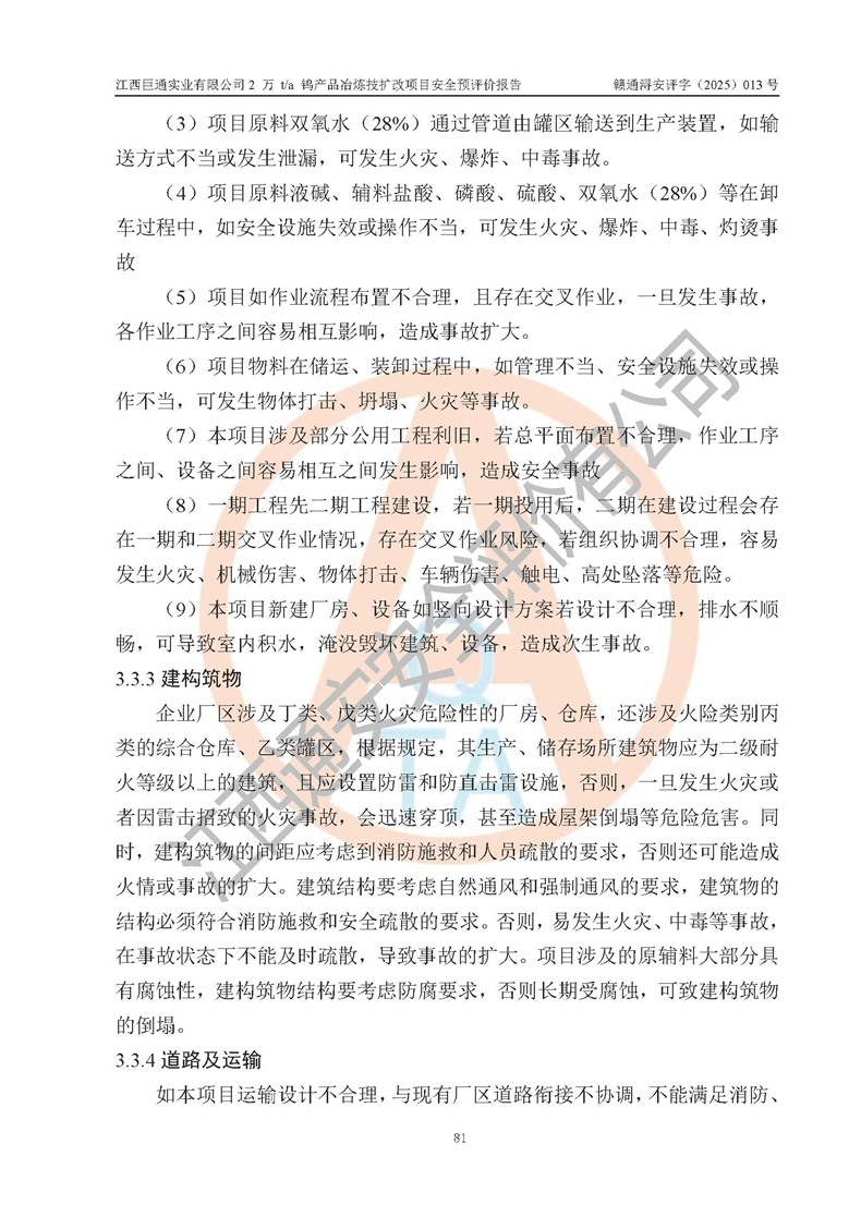 評(píng)價(jià)報(bào)告名稱 | 江西巨通實(shí)業(yè)有限公司2 萬 t/a 鎢產(chǎn)品冶煉技擴(kuò)改項(xiàng)目安全預(yù)評(píng)價(jià)報(bào)告 | |||