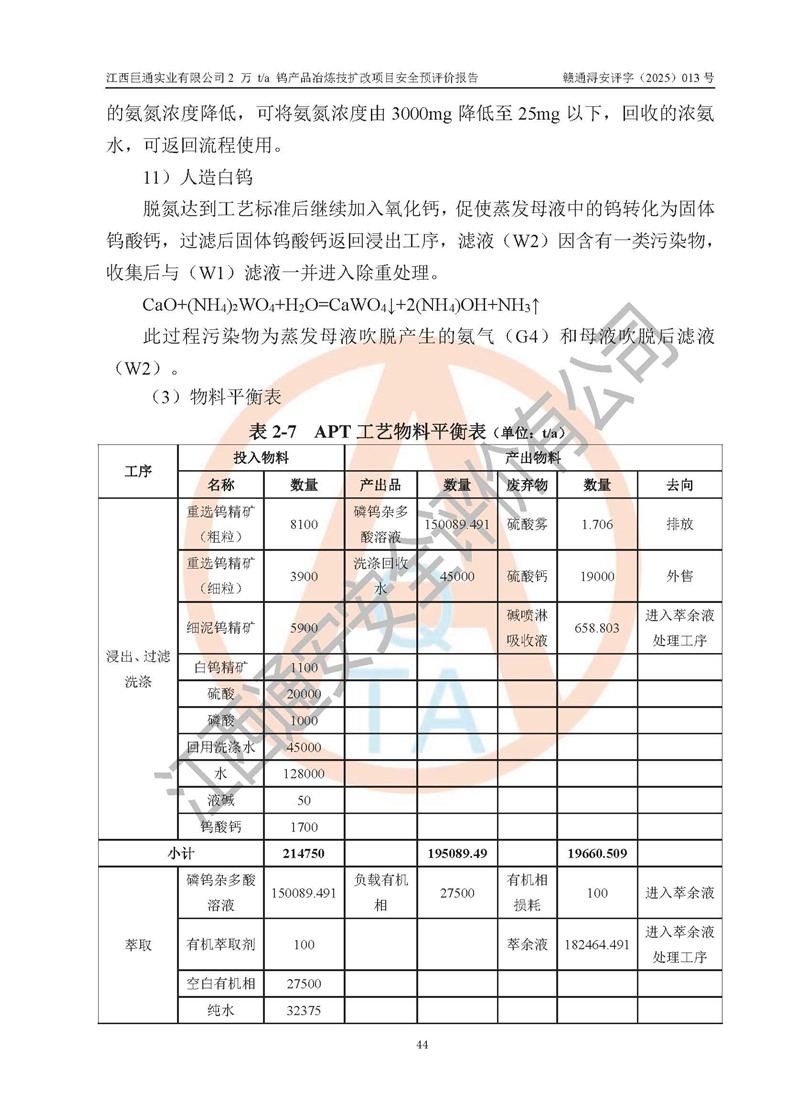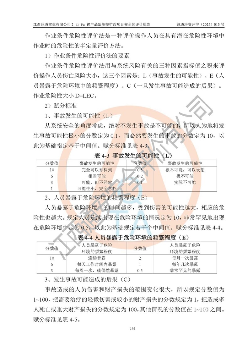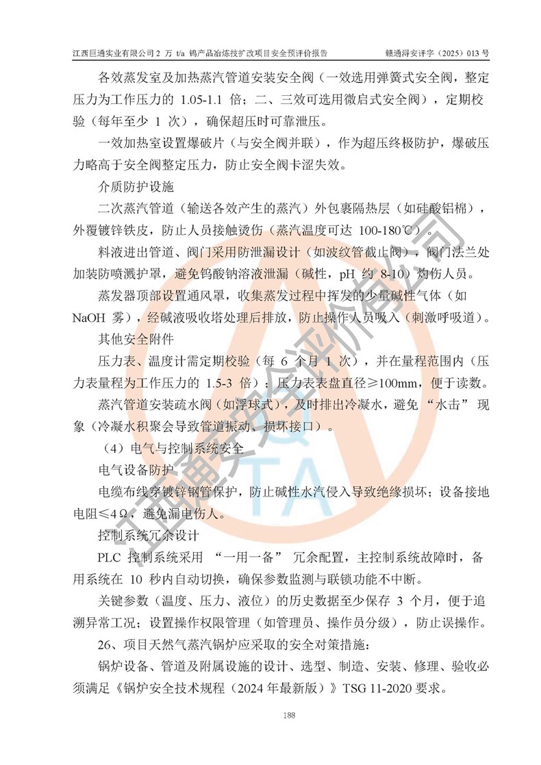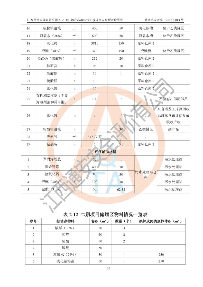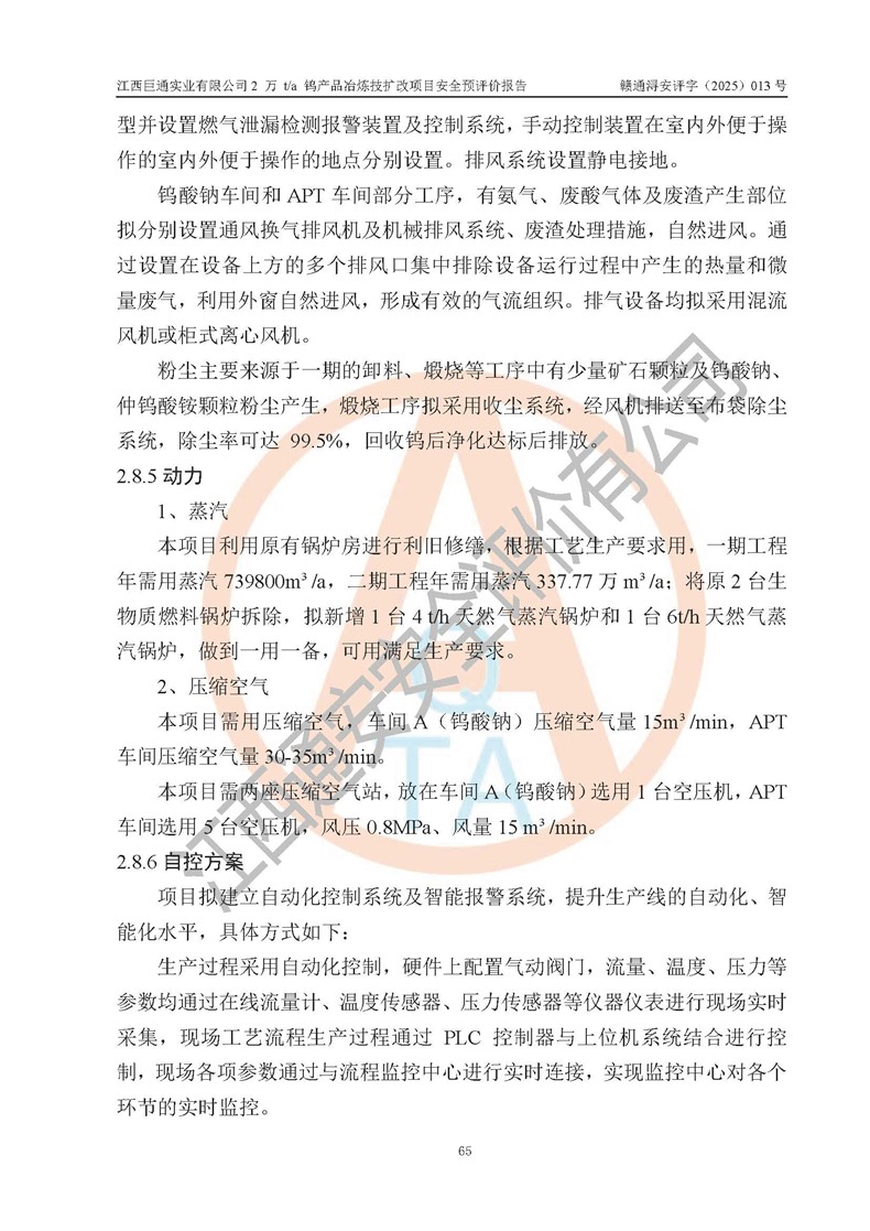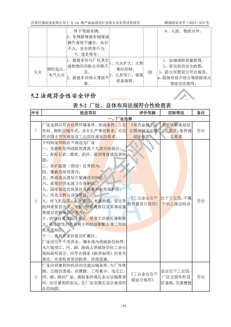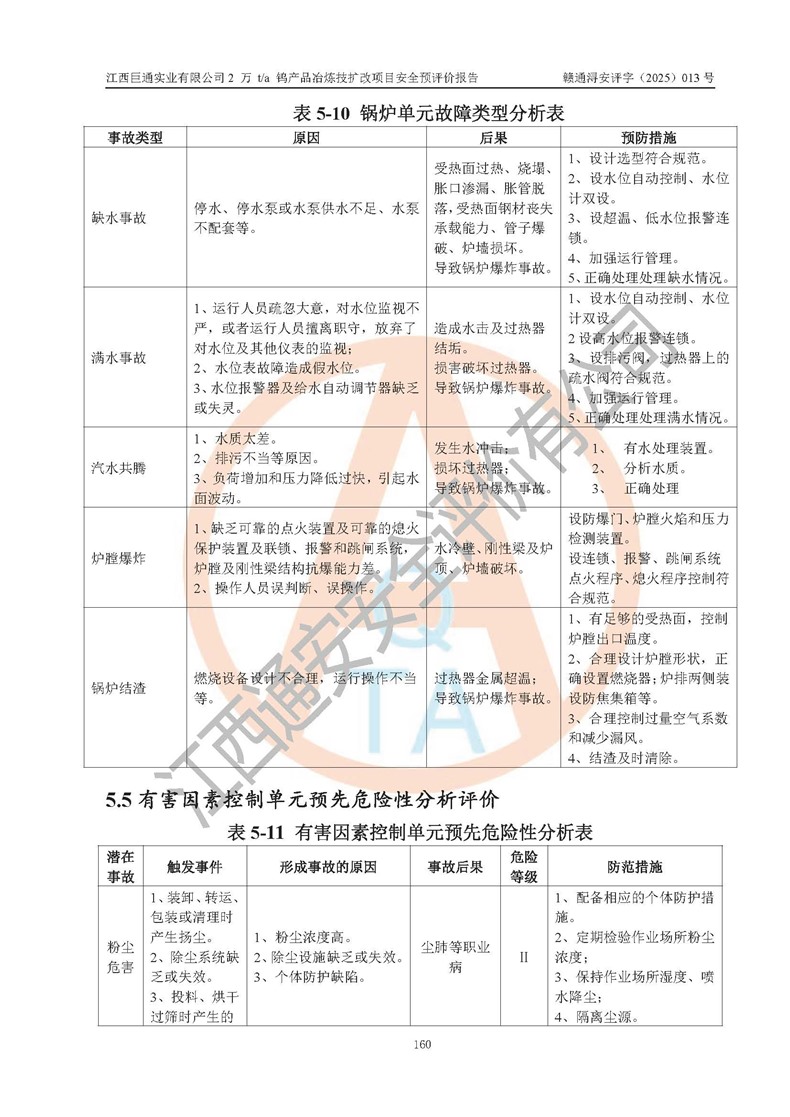 評(píng)價(jià)報(bào)告名稱 | 江西巨通實(shí)業(yè)有限公司2 萬 t/a 鎢產(chǎn)品冶煉技擴(kuò)改項(xiàng)目安全預(yù)評(píng)價(jià)報(bào)告 | |||