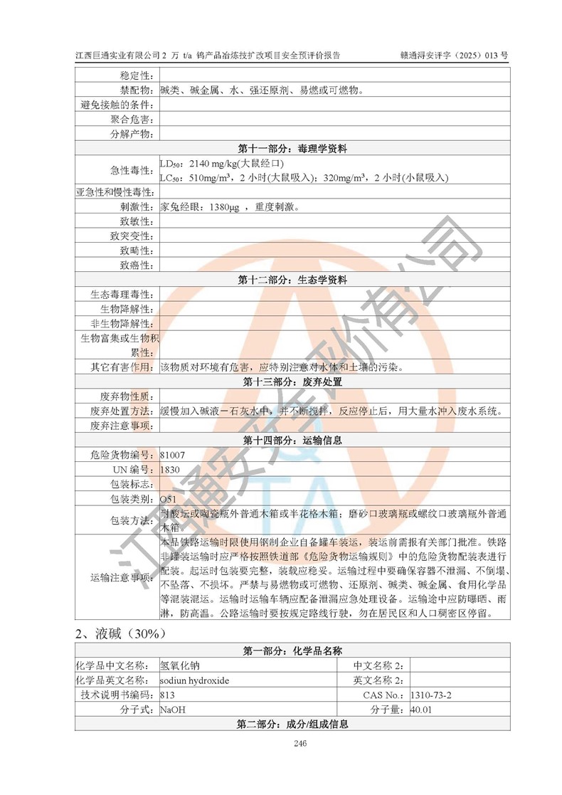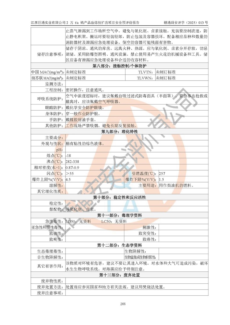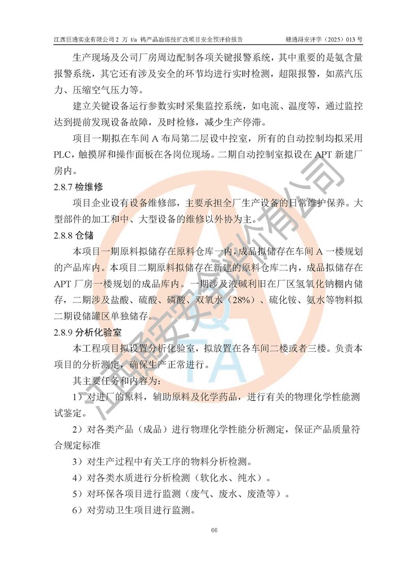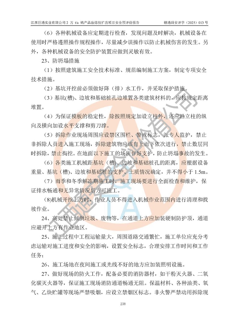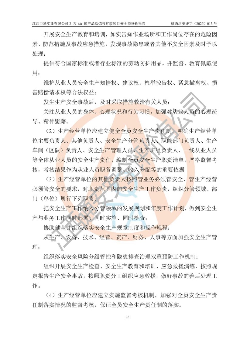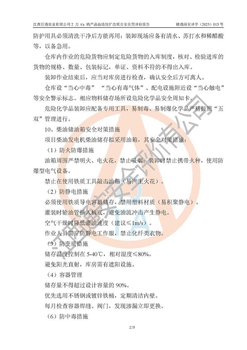 評(píng)價(jià)報(bào)告名稱 | 江西巨通實(shí)業(yè)有限公司2 萬 t/a 鎢產(chǎn)品冶煉技擴(kuò)改項(xiàng)目安全預(yù)評(píng)價(jià)報(bào)告 | |||