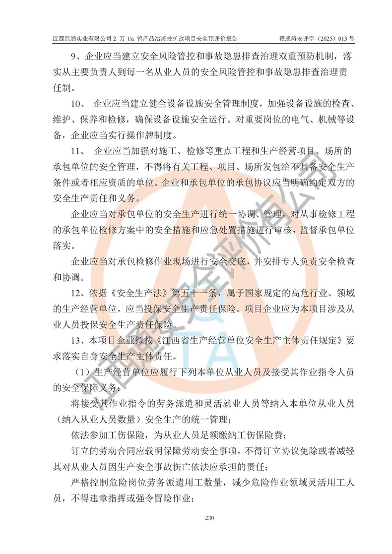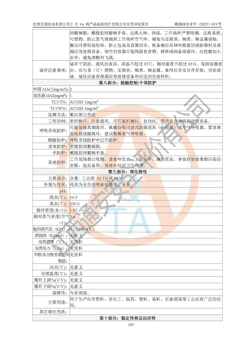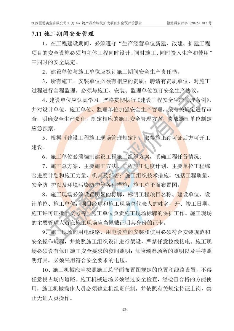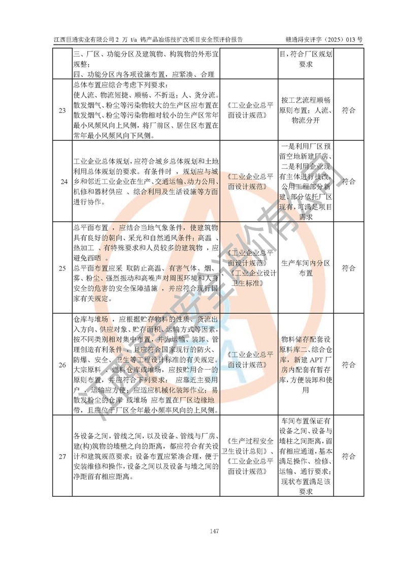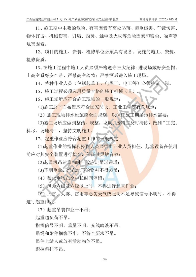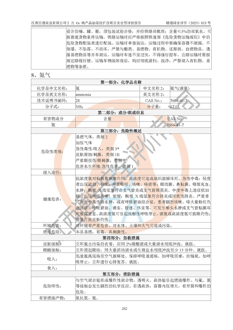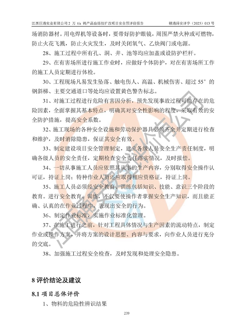 評(píng)價(jià)報(bào)告名稱 | 江西巨通實(shí)業(yè)有限公司2 萬 t/a 鎢產(chǎn)品冶煉技擴(kuò)改項(xiàng)目安全預(yù)評(píng)價(jià)報(bào)告 | |||