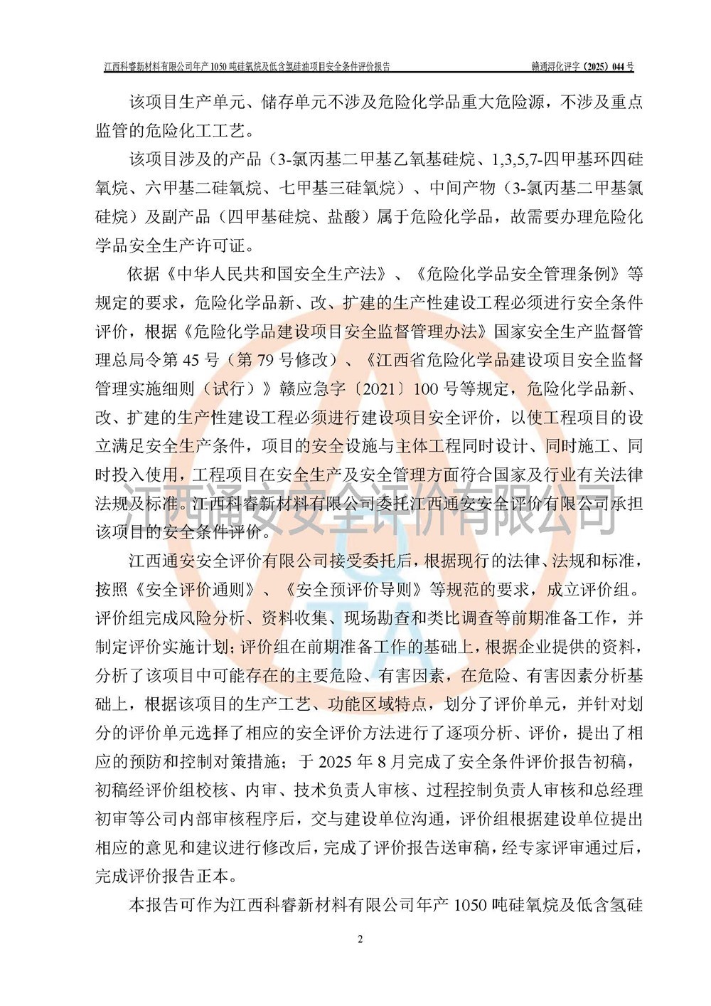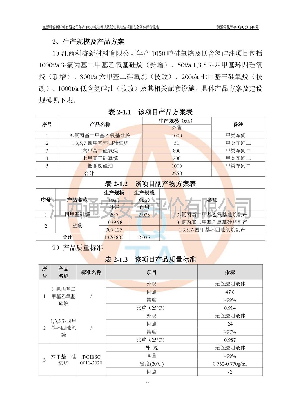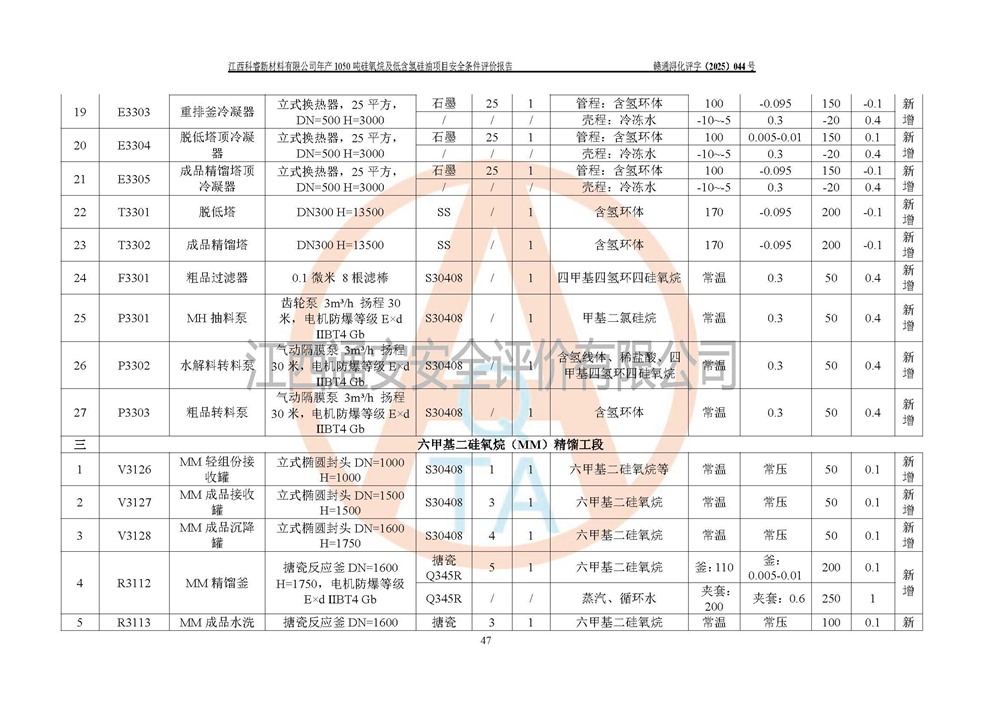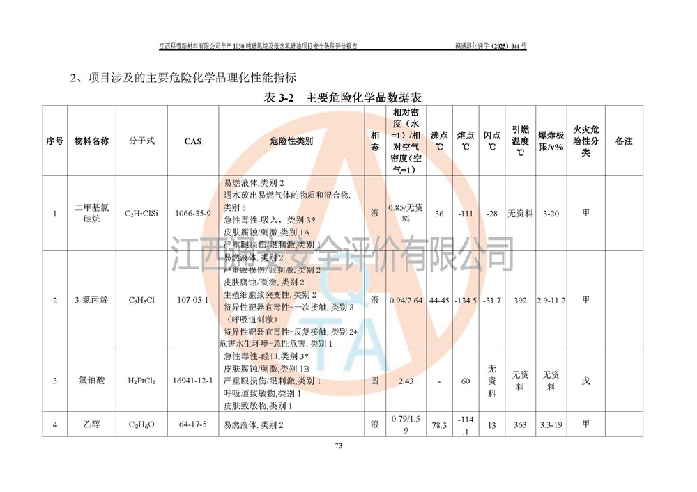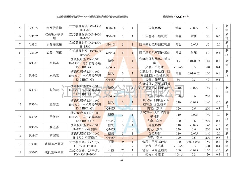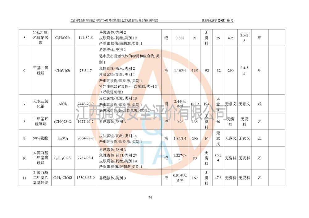 評價報告名稱 | 江西科睿新材料有限公司年產(chǎn)1050噸硅氧烷及低含氫硅油項目安全條件評價 | |||||