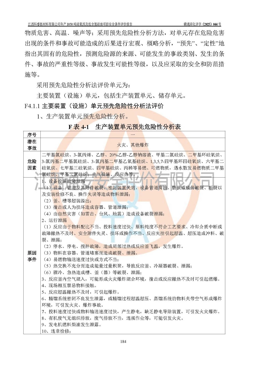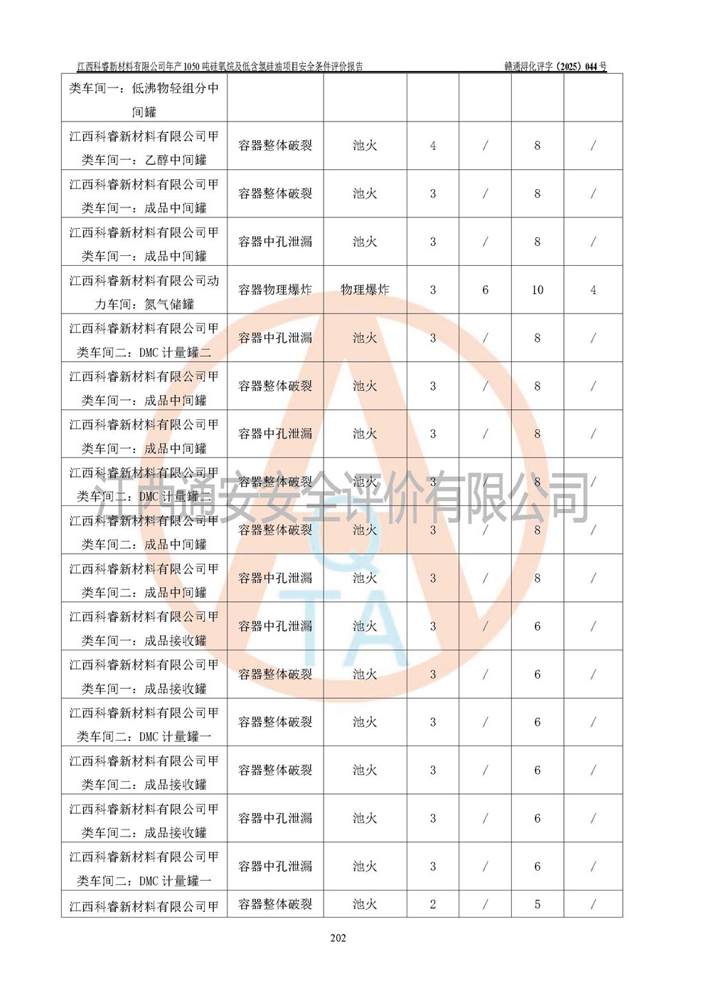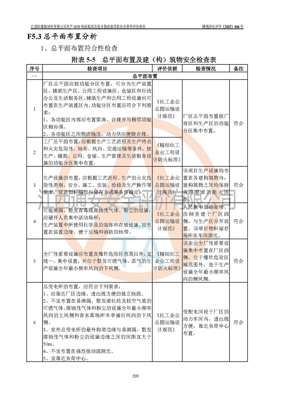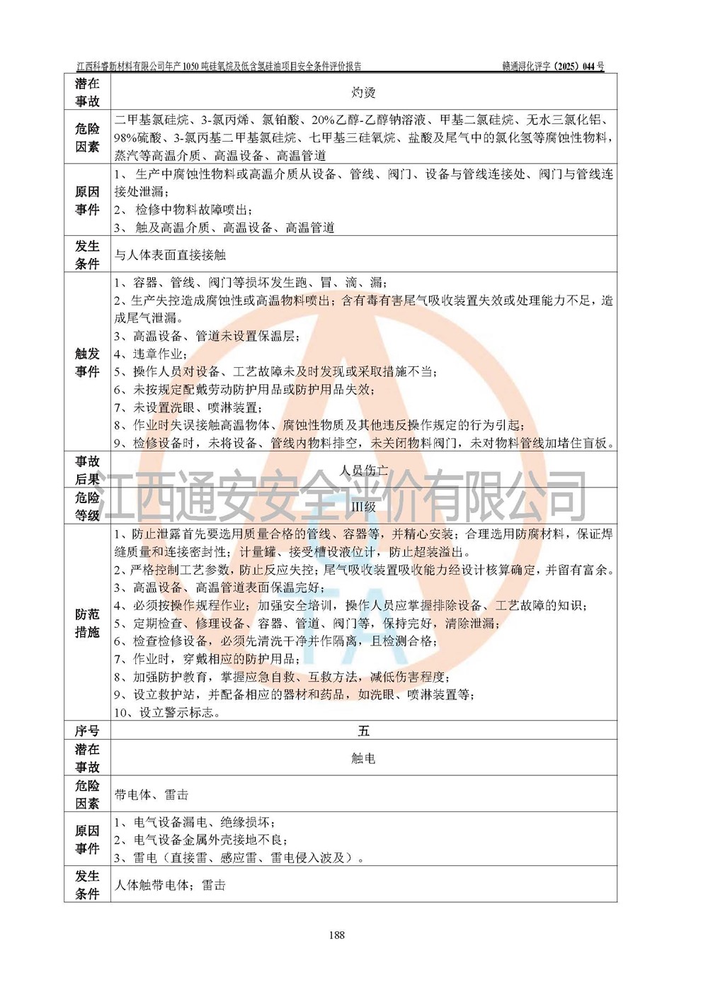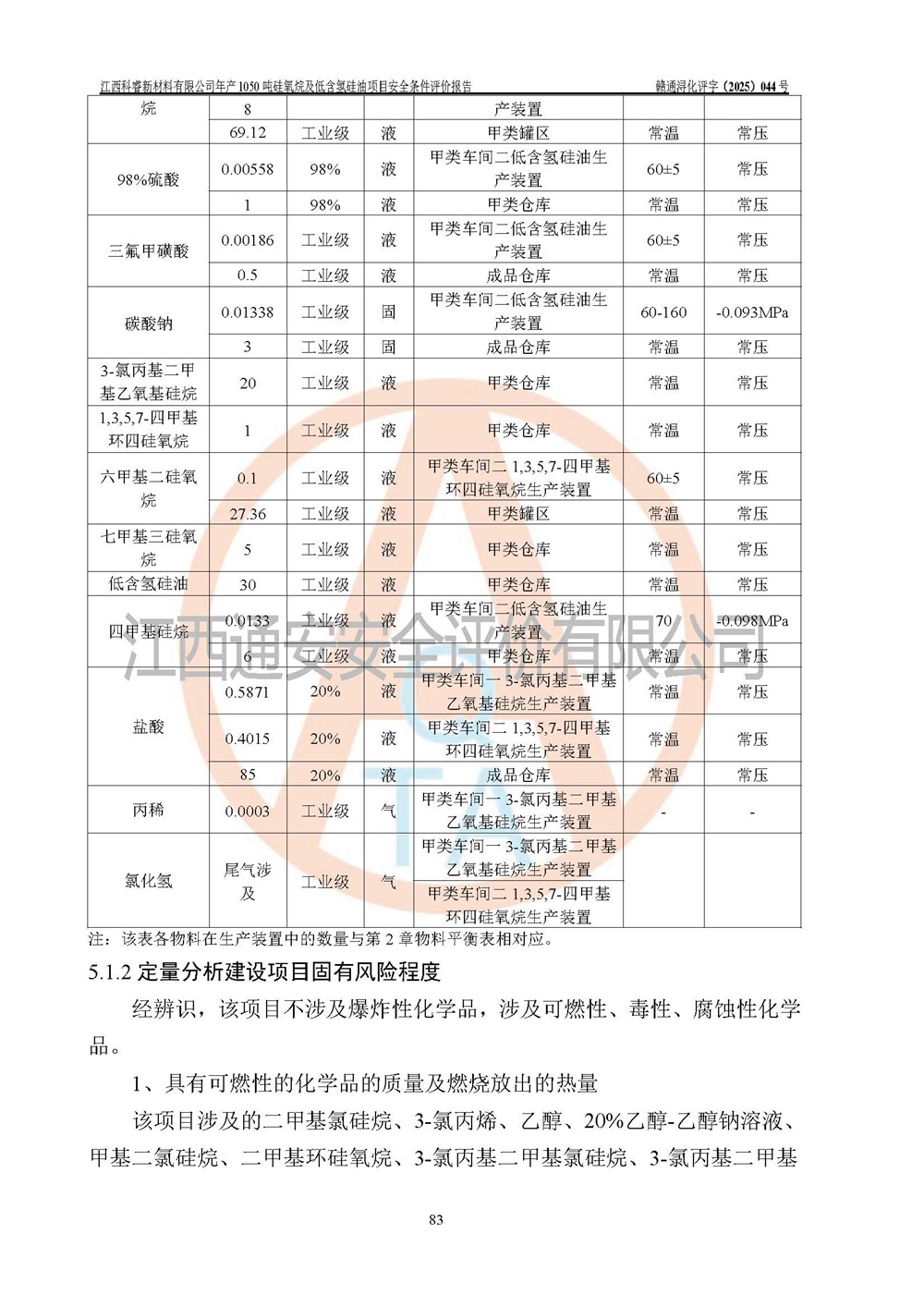 評價結論 | 江西科睿新材料有限公司年產(chǎn)1050噸硅氧烷及低含氫硅油項目的周邊環(huán)境、總體布局、自然環(huán)境能滿足建設安全條件;項目選擇的工藝過程及設備設施的安全可靠性能達到**法規(guī)、標準規(guī)定要求;項目存在的危險有害因素可控,在落實本評價報告提出的有關安全對策措施后,其危險有害程度能達到可以接受的程度,項目建設能夠實現(xiàn)安全運行的目標。 | |||||