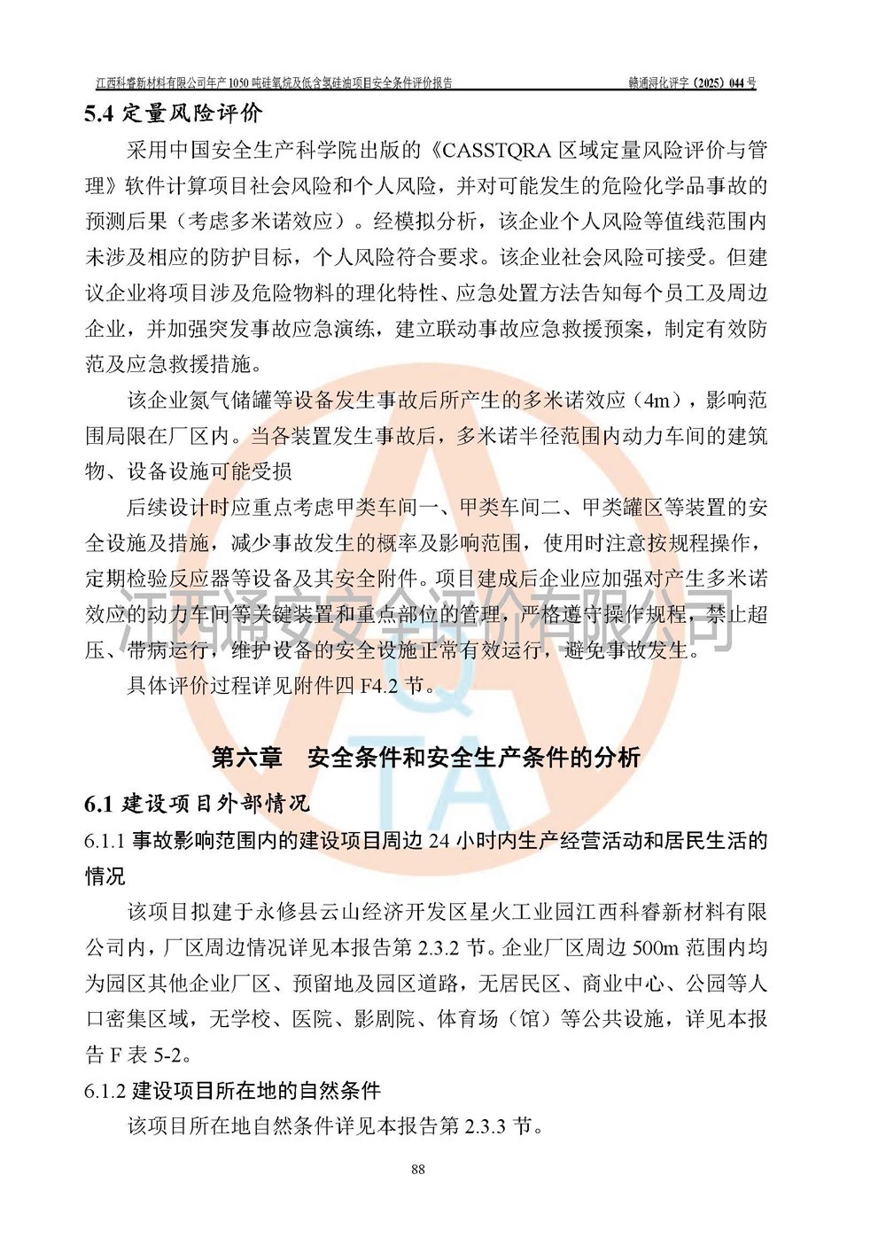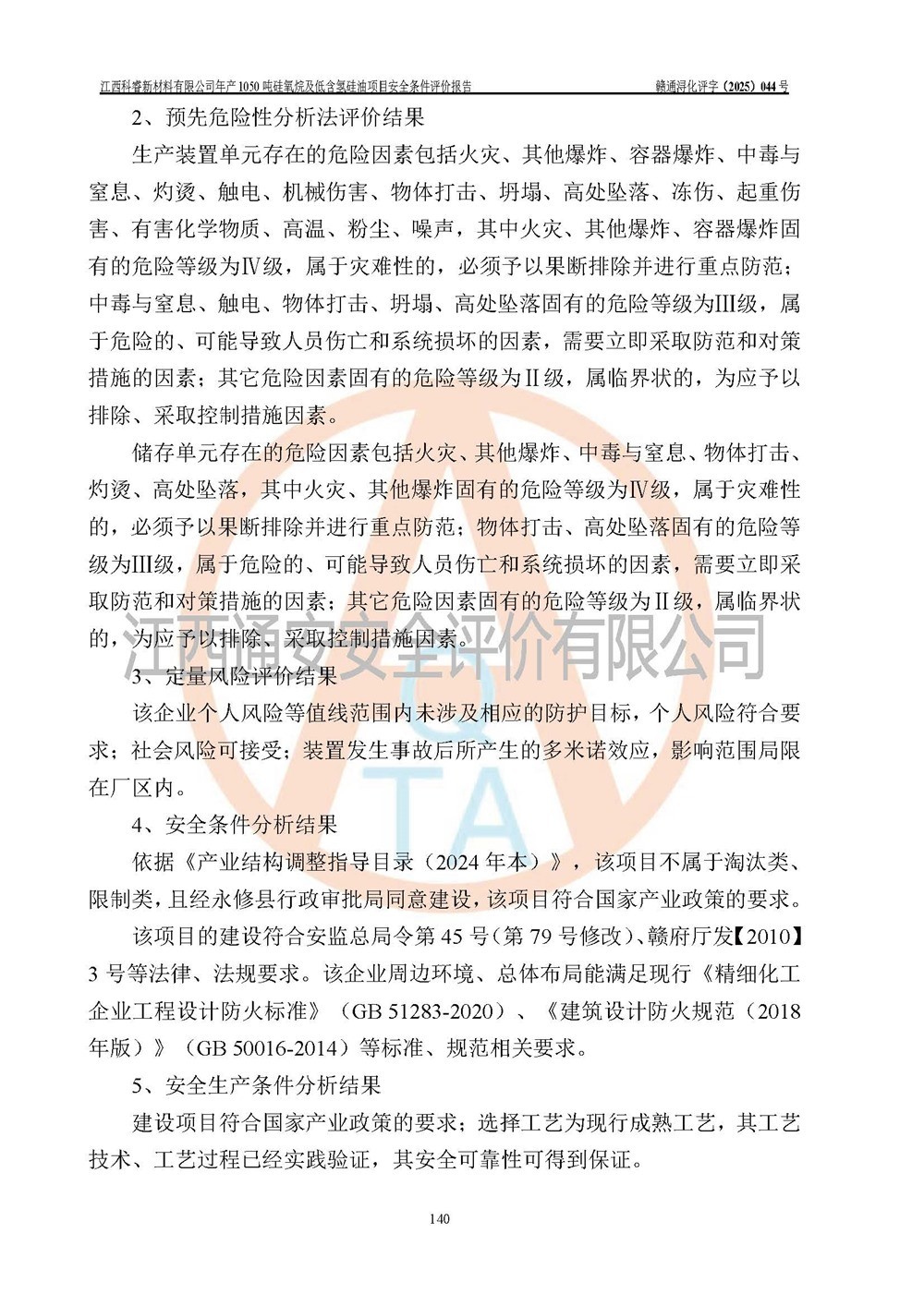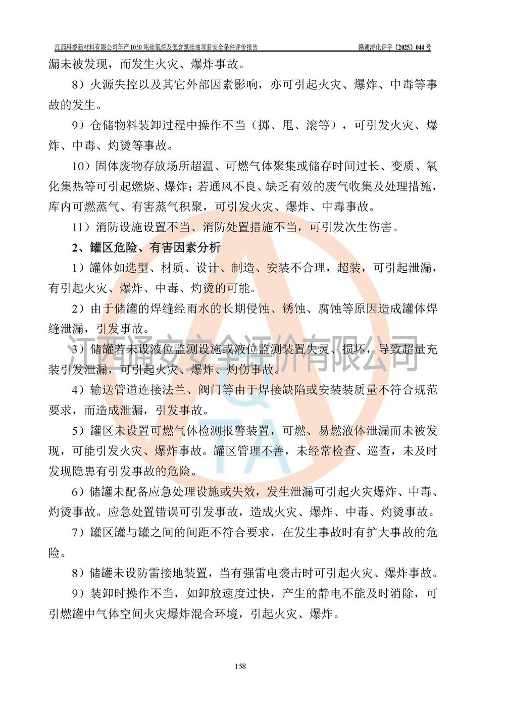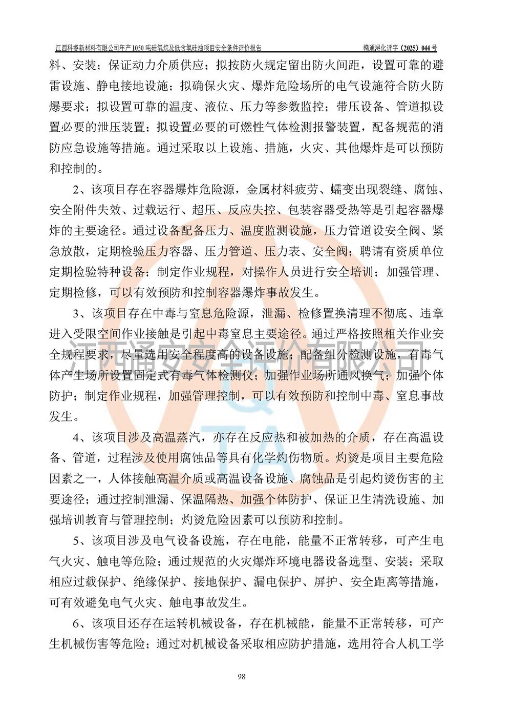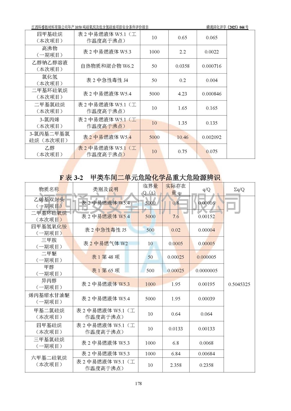評價結論 | 江西科睿新材料有限公司年產(chǎn)1050噸硅氧烷及低含氫硅油項目的周邊環(huán)境、總體布局、自然環(huán)境能滿足建設安全條件;項目選擇的工藝過程及設備設施的安全可靠性能達到**法規(guī)、標準規(guī)定要求;項目存在的危險有害因素可控,在落實本評價報告提出的有關安全對策措施后,其危險有害程度能達到可以接受的程度,項目建設能夠實現(xiàn)安全運行的目標。 | |||||