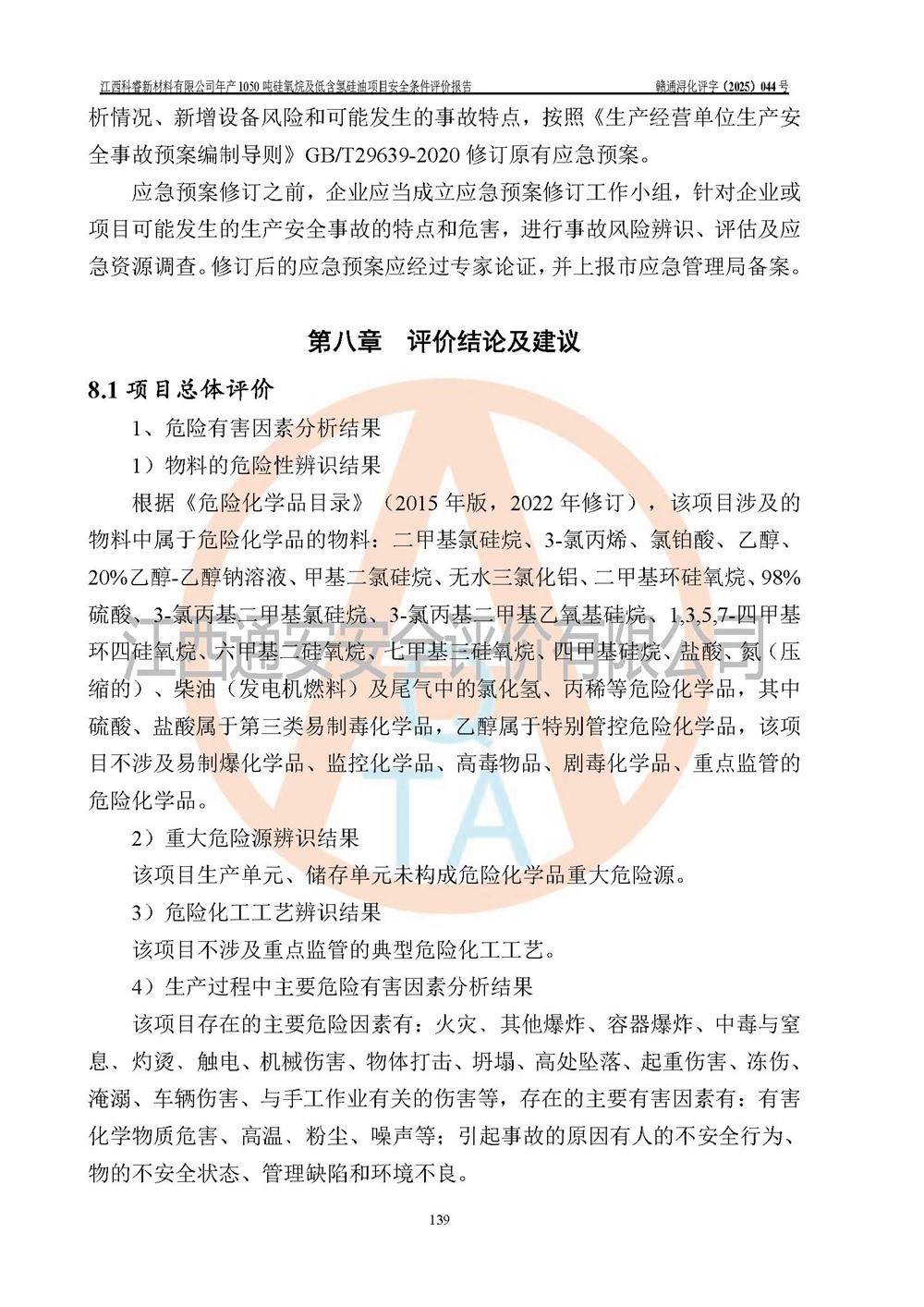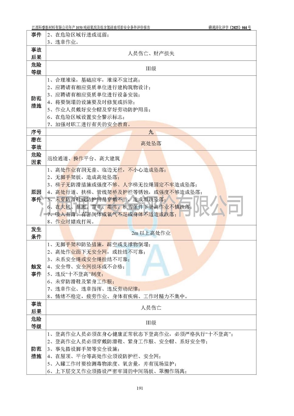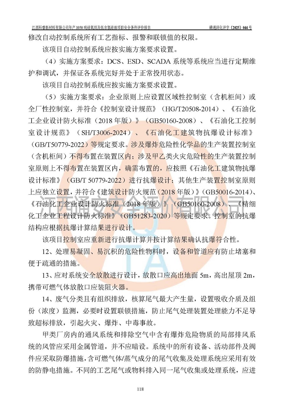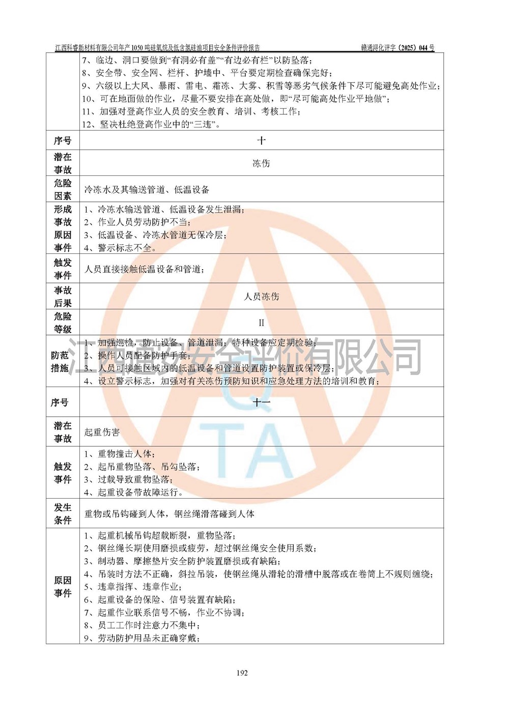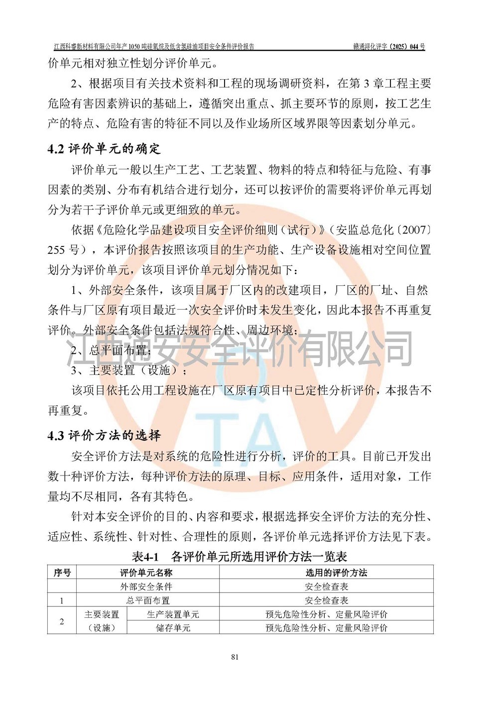 評價結論 | 江西科睿新材料有限公司年產(chǎn)1050噸硅氧烷及低含氫硅油項目的周邊環(huán)境、總體布局、自然環(huán)境能滿足建設安全條件;項目選擇的工藝過程及設備設施的安全可靠性能達到**法規(guī)、標準規(guī)定要求;項目存在的危險有害因素可控,在落實本評價報告提出的有關安全對策措施后,其危險有害程度能達到可以接受的程度,項目建設能夠實現(xiàn)安全運行的目標。 | |||||