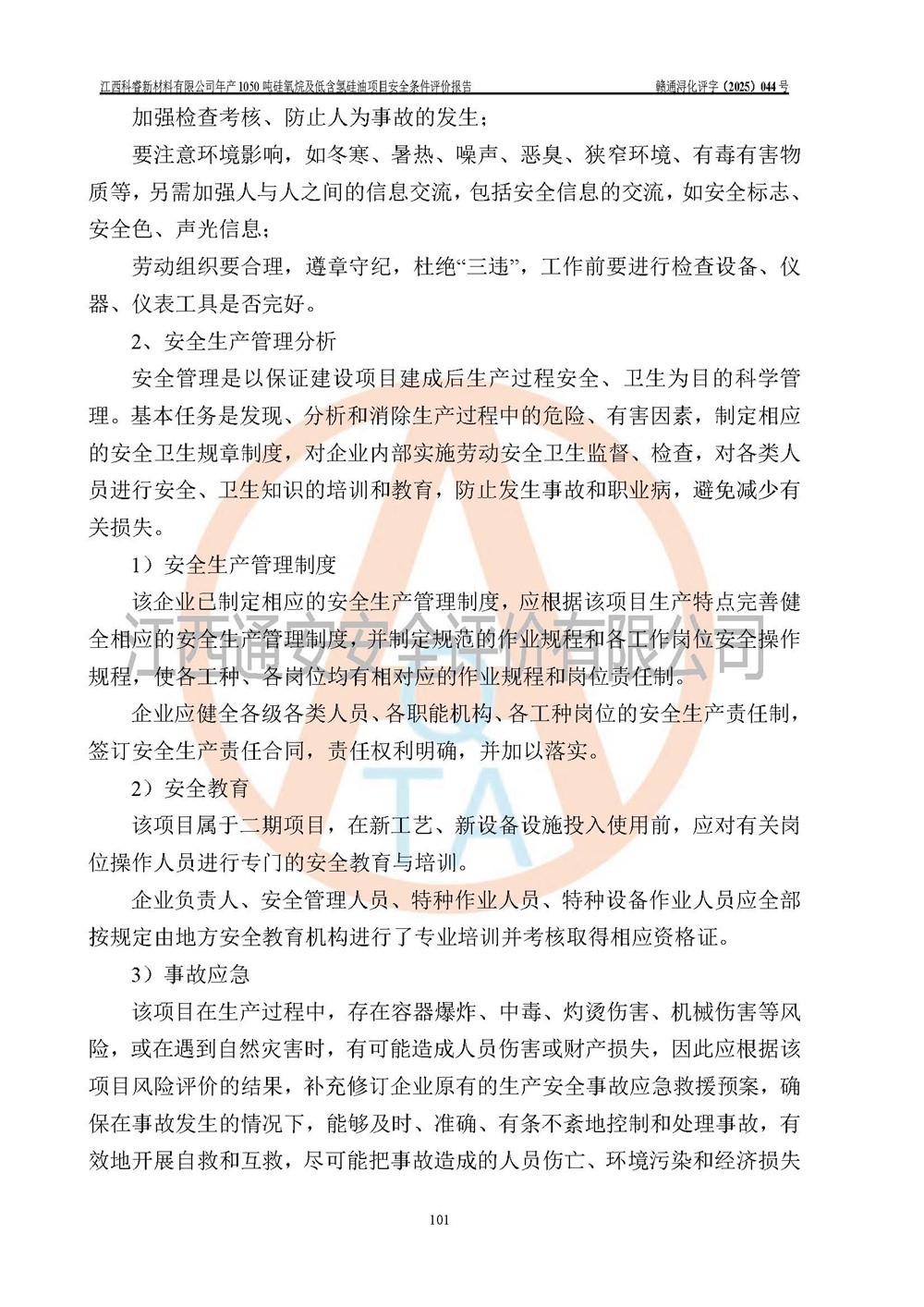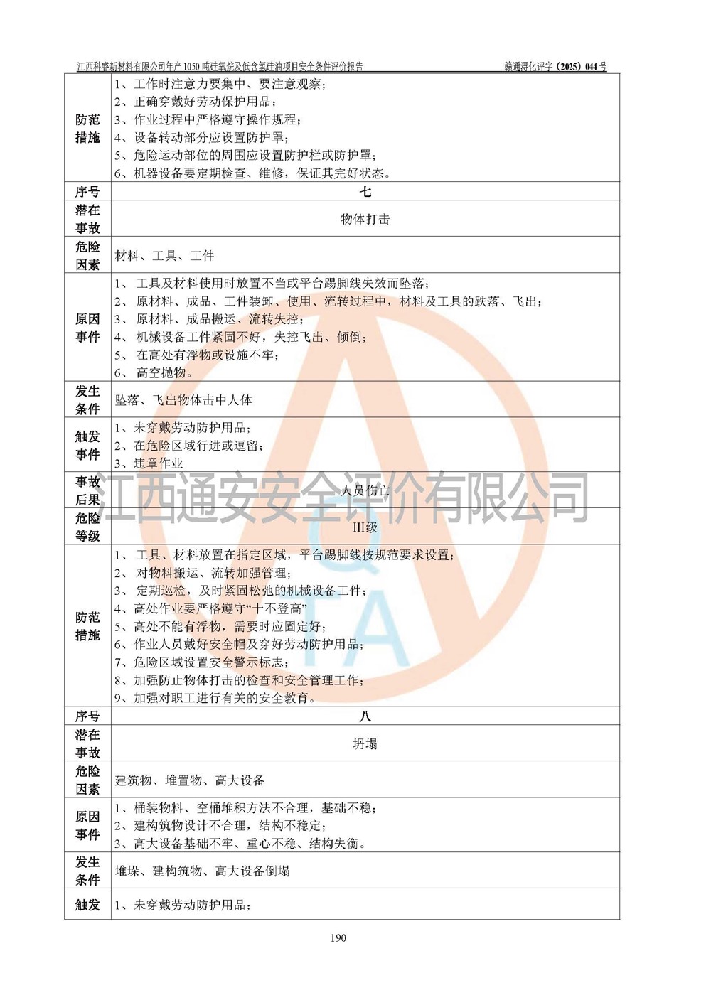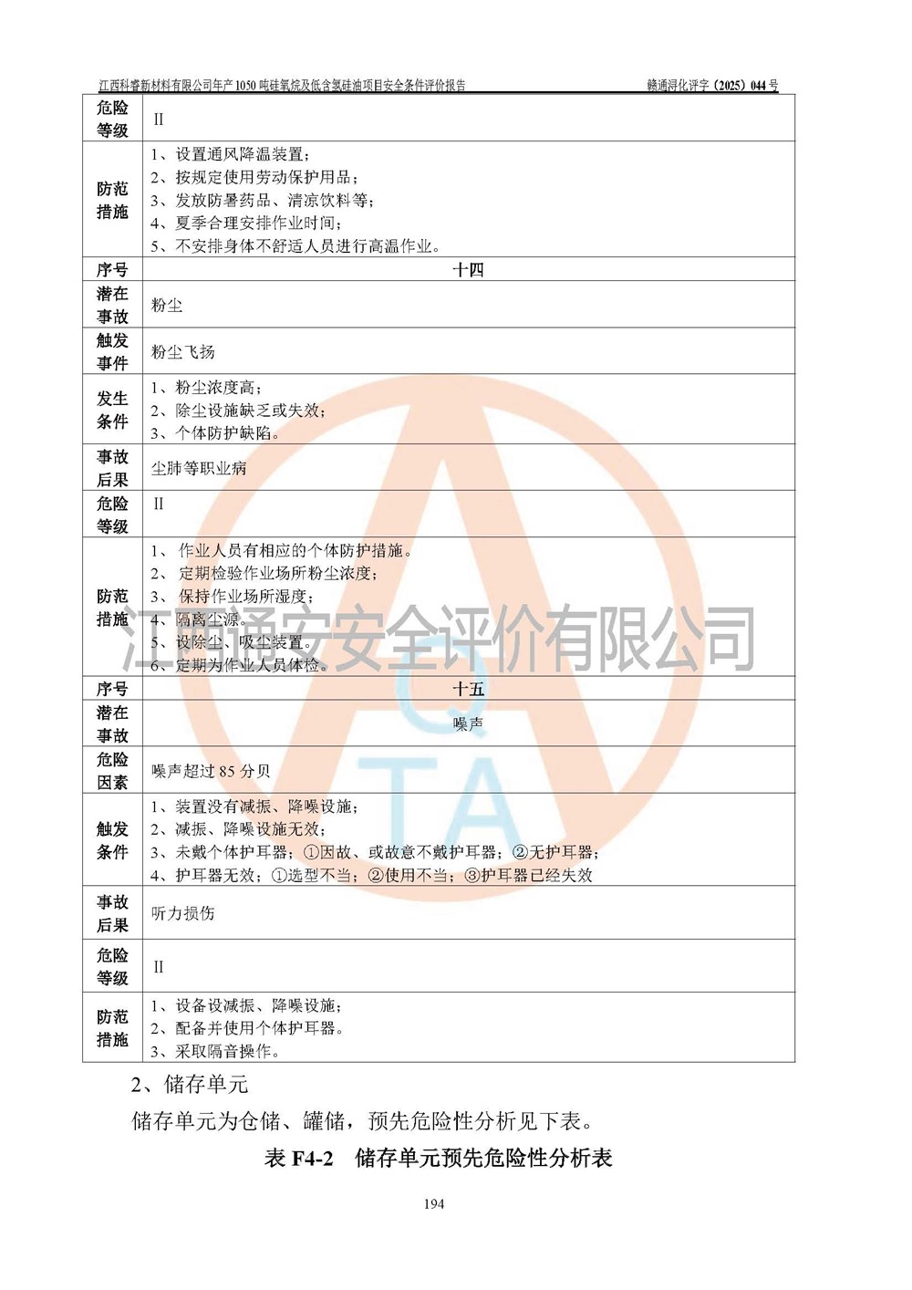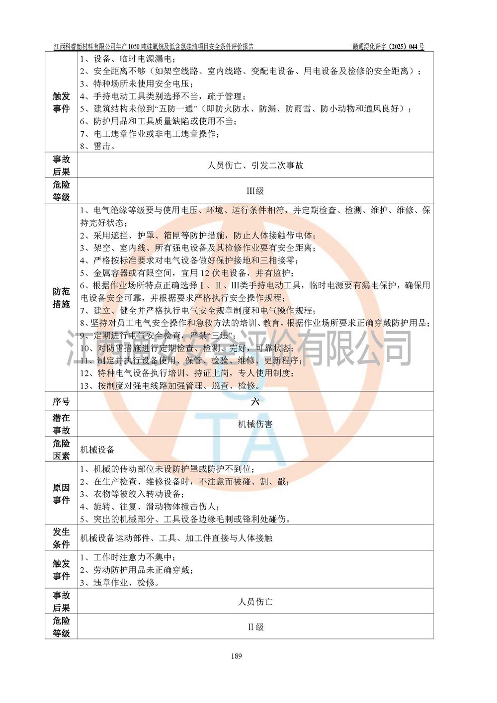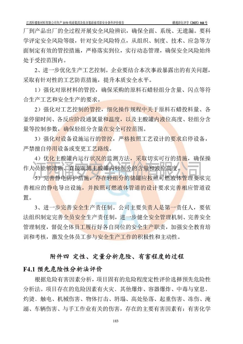 評價結論 | 江西科睿新材料有限公司年產(chǎn)1050噸硅氧烷及低含氫硅油項目的周邊環(huán)境、總體布局、自然環(huán)境能滿足建設安全條件;項目選擇的工藝過程及設備設施的安全可靠性能達到**法規(guī)、標準規(guī)定要求;項目存在的危險有害因素可控,在落實本評價報告提出的有關安全對策措施后,其危險有害程度能達到可以接受的程度,項目建設能夠實現(xiàn)安全運行的目標。 | |||||