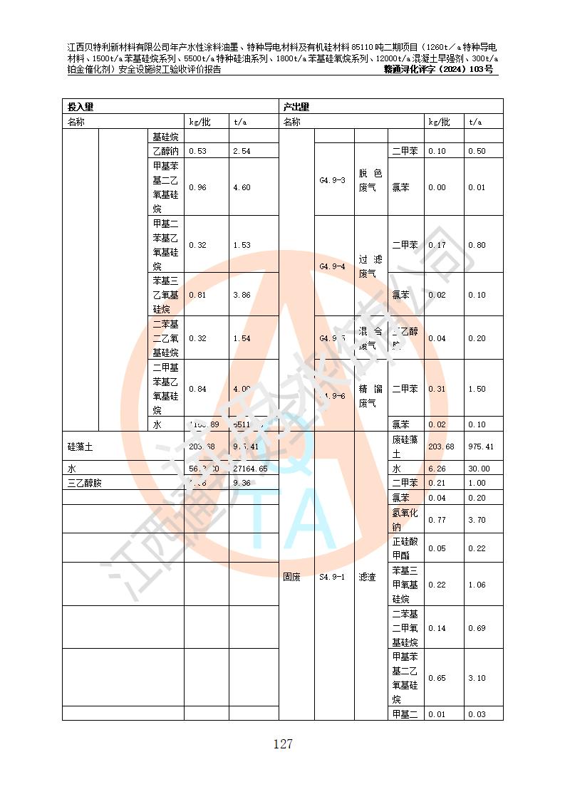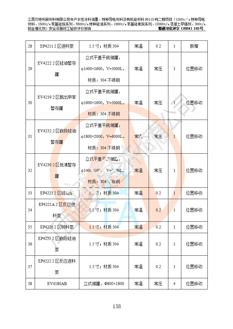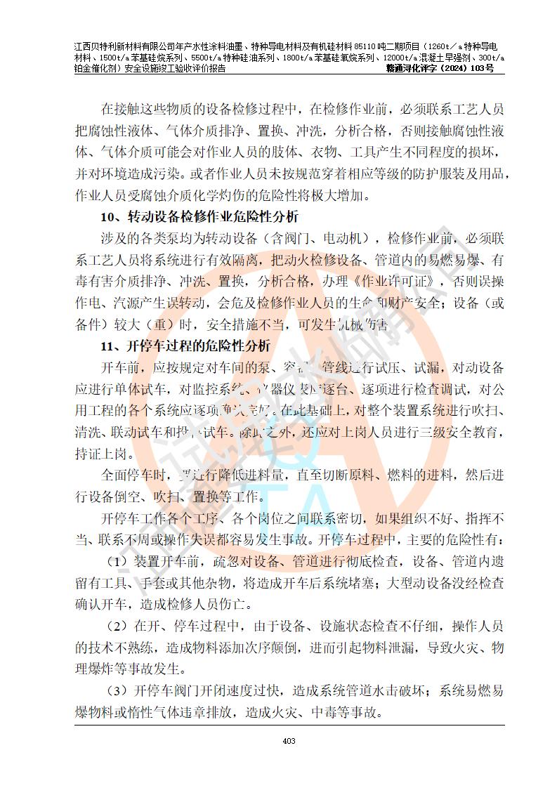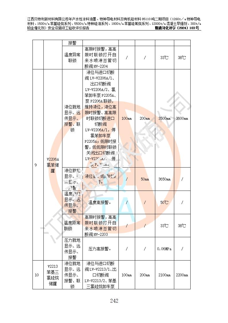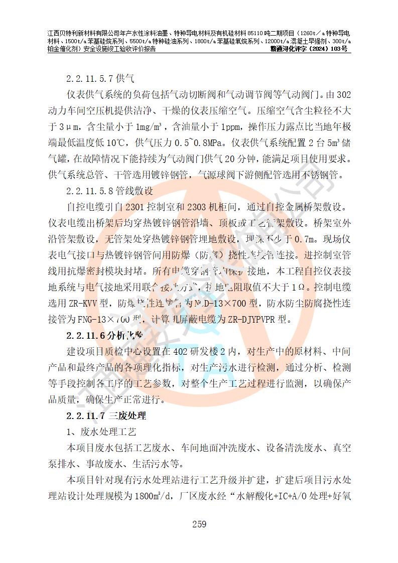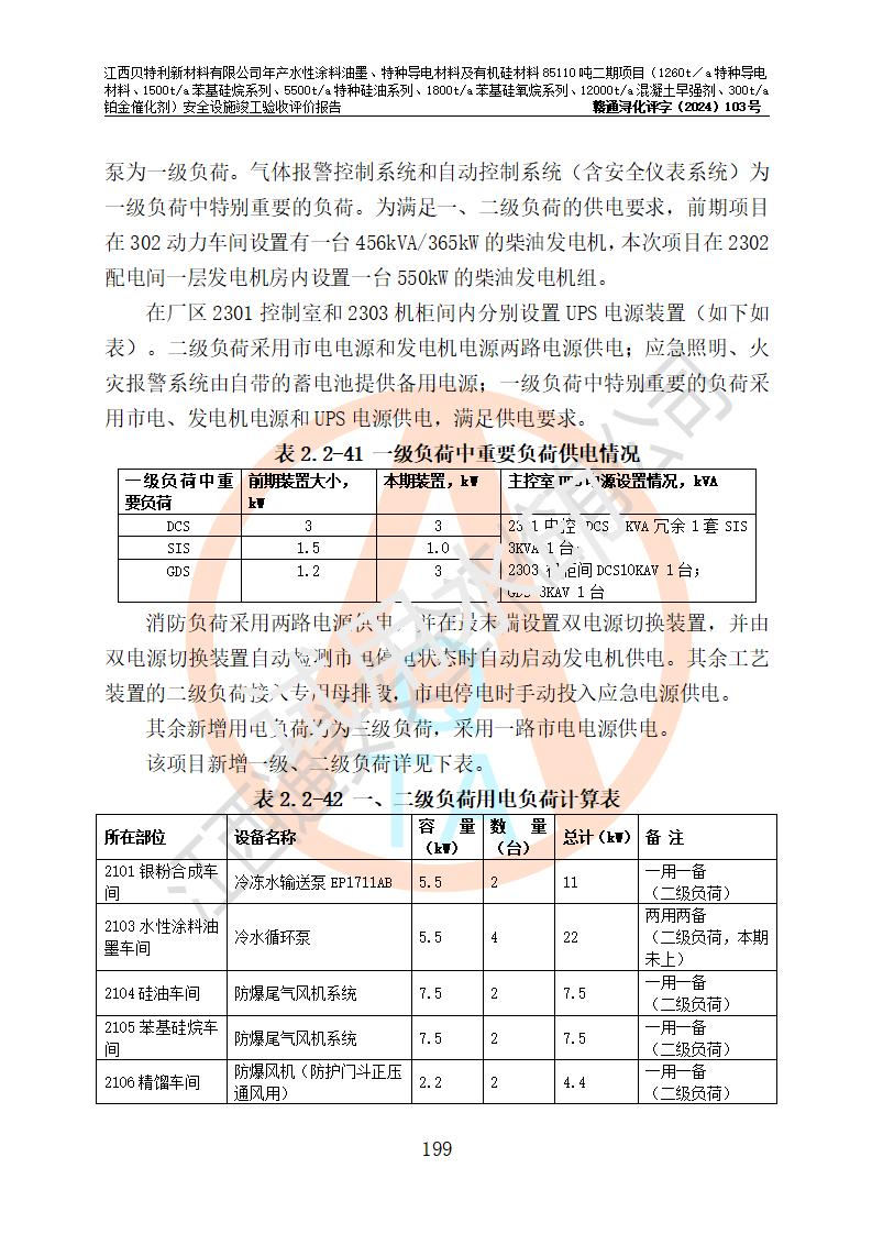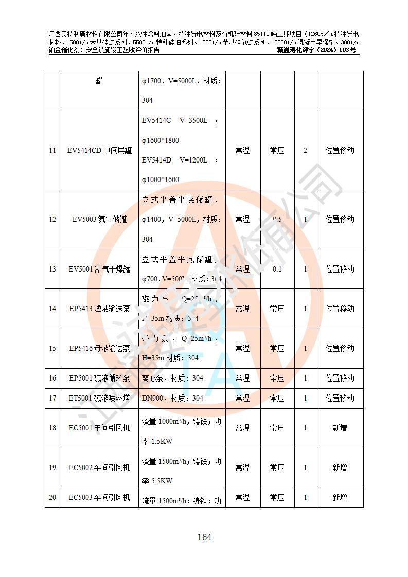 評價報告名稱 | 江西貝特利新材料有限公司年產(chǎn)水性涂料油墨、特種導電材料及有 機硅材料85110噸二期項目(1260t/a特種導電材料、1500t/a苯基硅烷系列、5500t/a特種硅油系列、1800t/a苯基硅氧烷系列、12000t/a混凝土早強劑、300t/a鉑金催化劑)安全設施竣工驗收評價報告 | |||||
