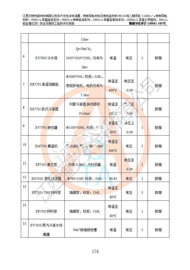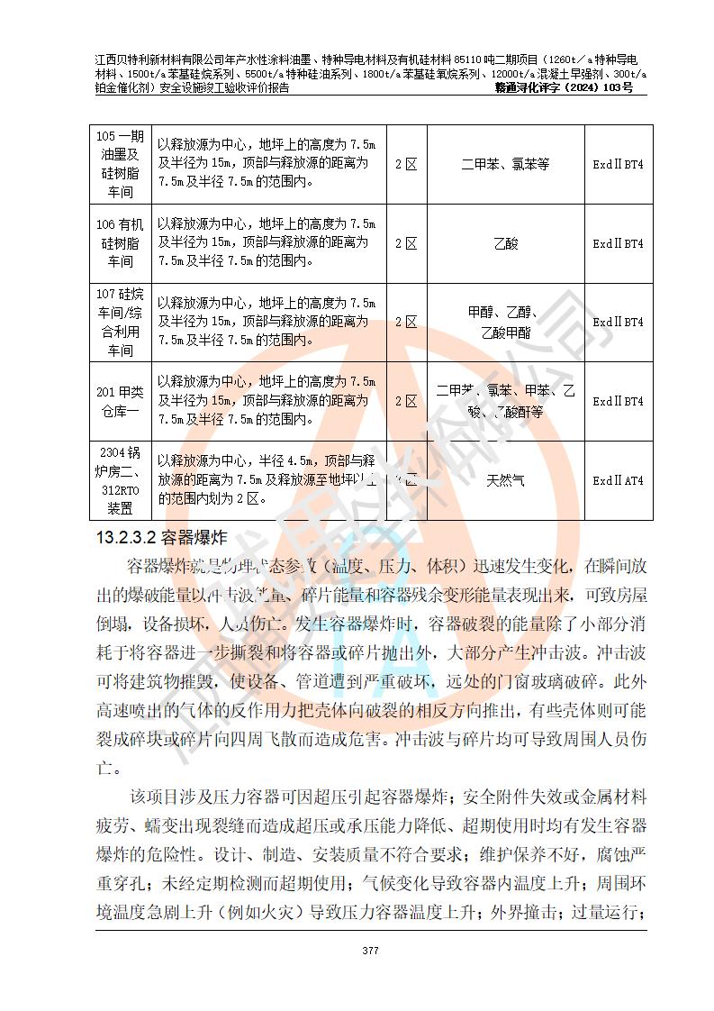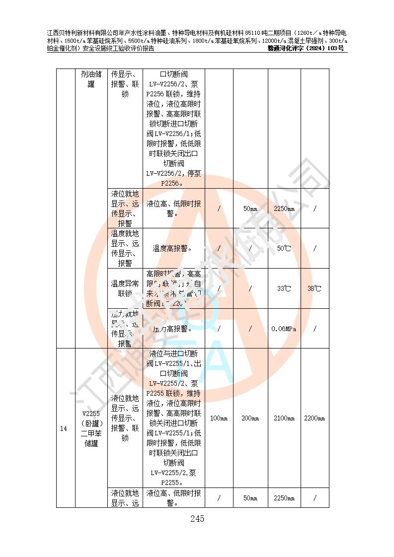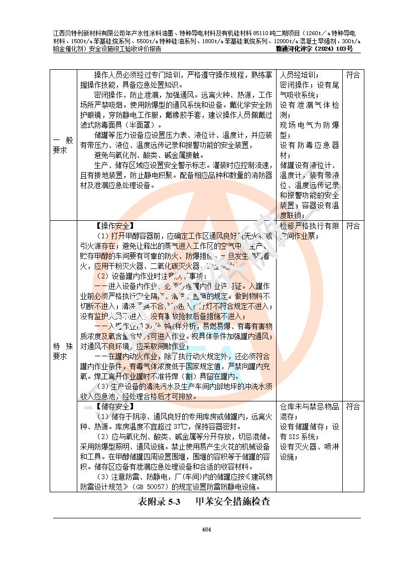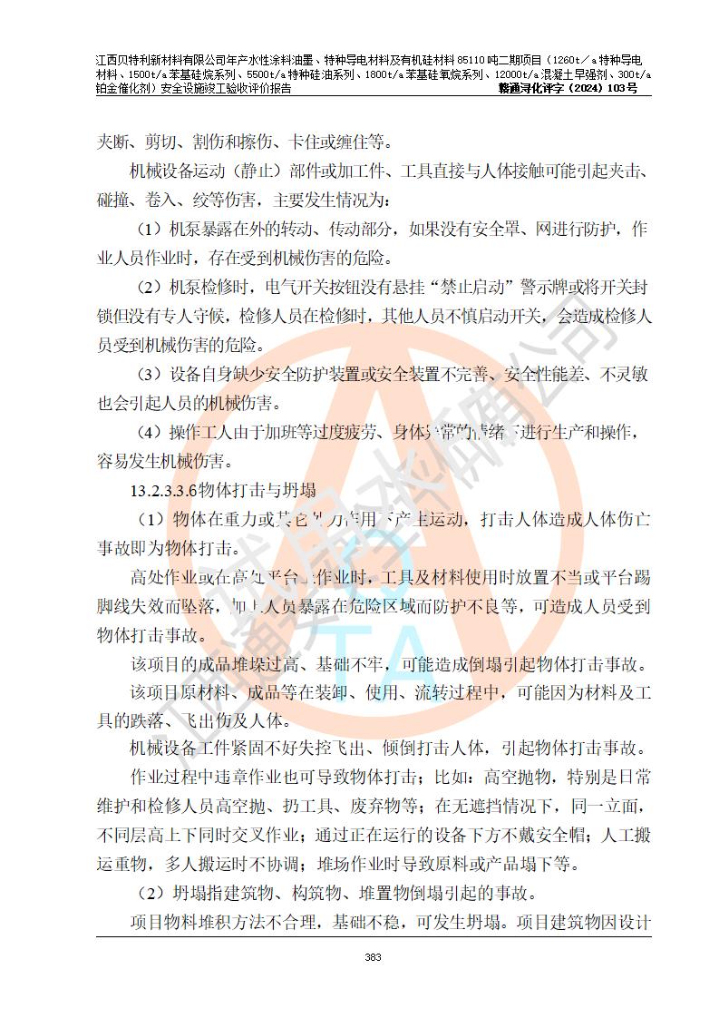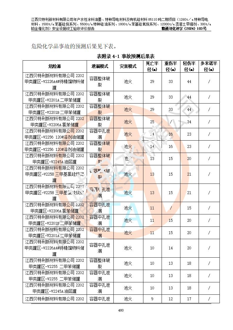 評價報告名稱 | 江西貝特利新材料有限公司年產(chǎn)水性涂料油墨、特種導電材料及有 機硅材料85110噸二期項目(1260t/a特種導電材料、1500t/a苯基硅烷系列、5500t/a特種硅油系列、1800t/a苯基硅氧烷系列、12000t/a混凝土早強劑、300t/a鉑金催化劑)安全設施竣工驗收評價報告 | |||||