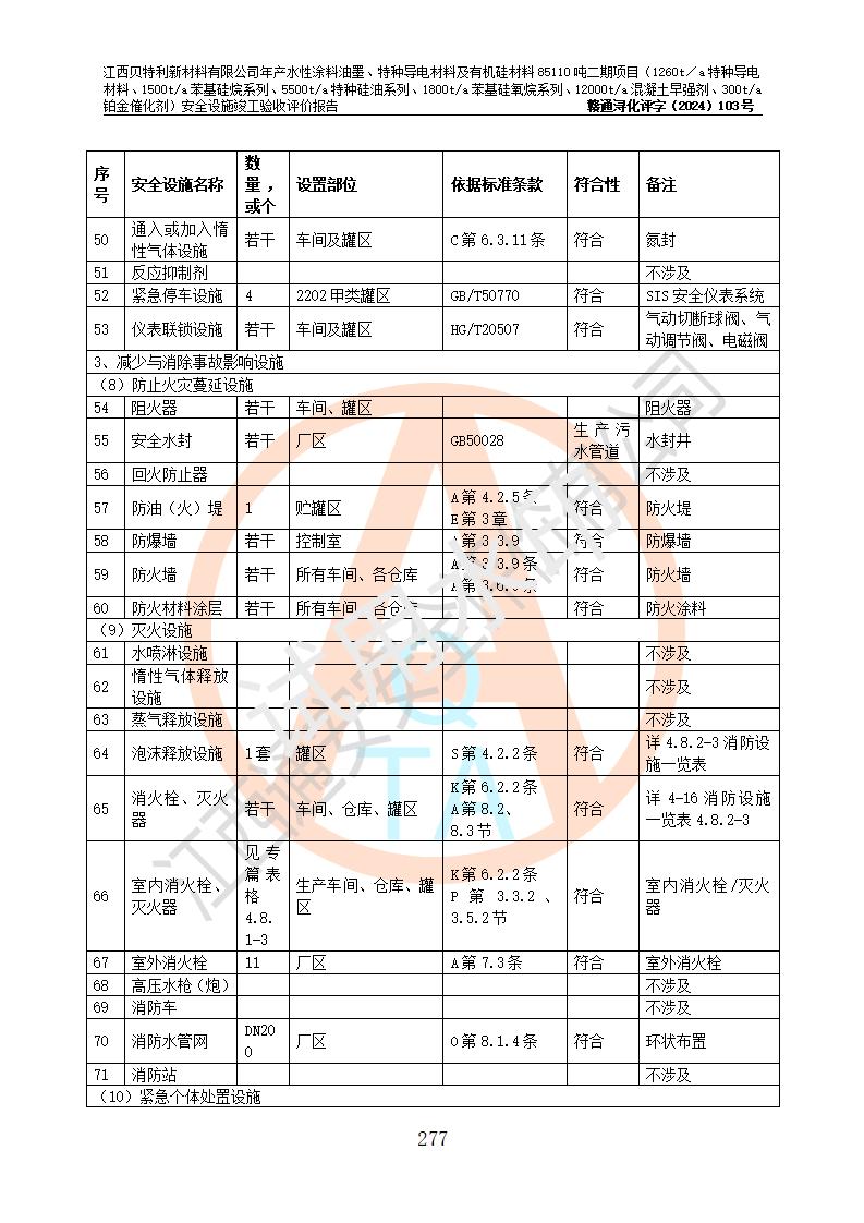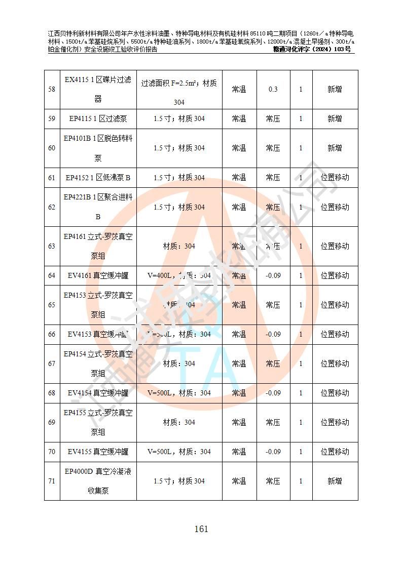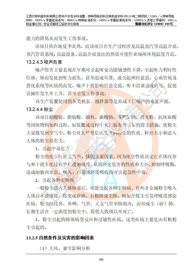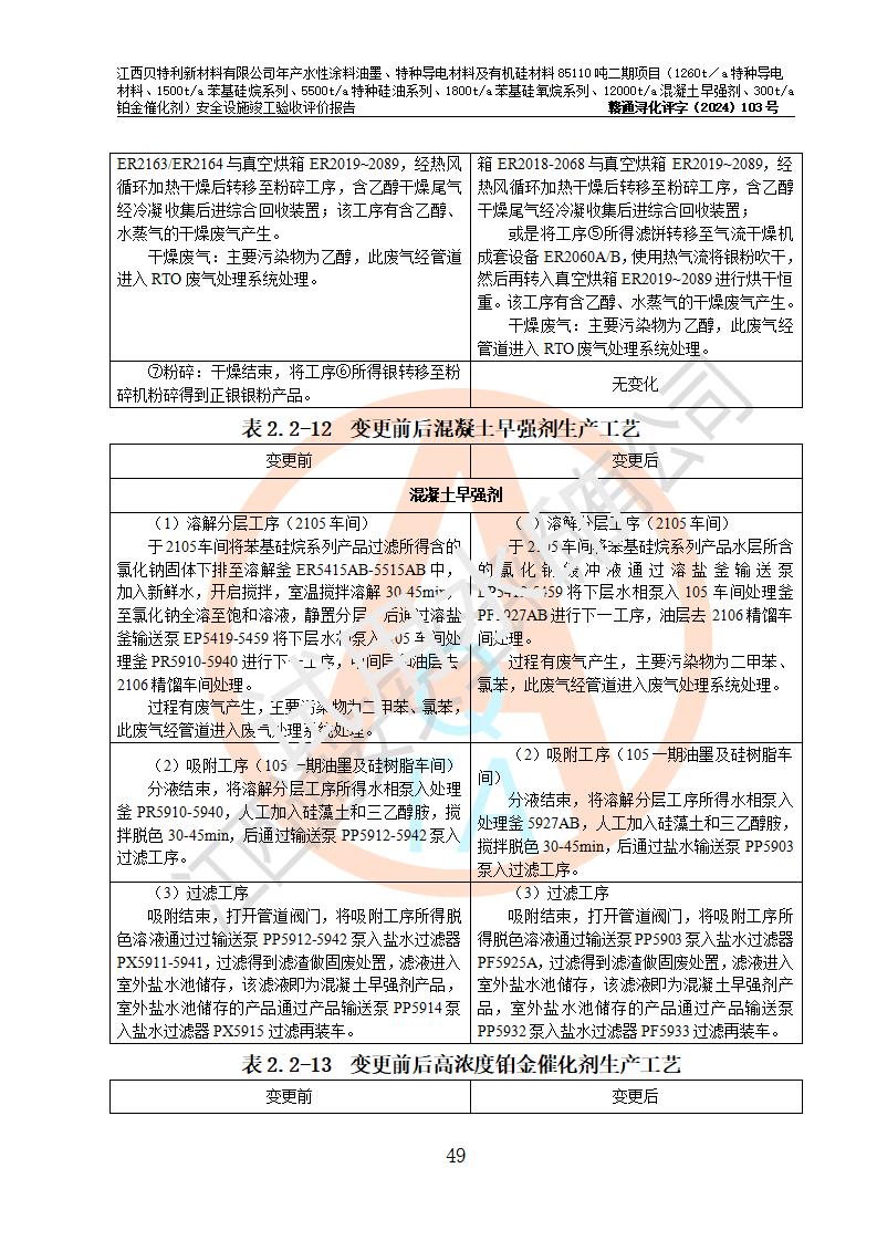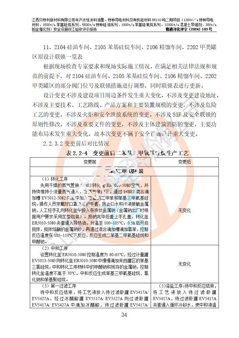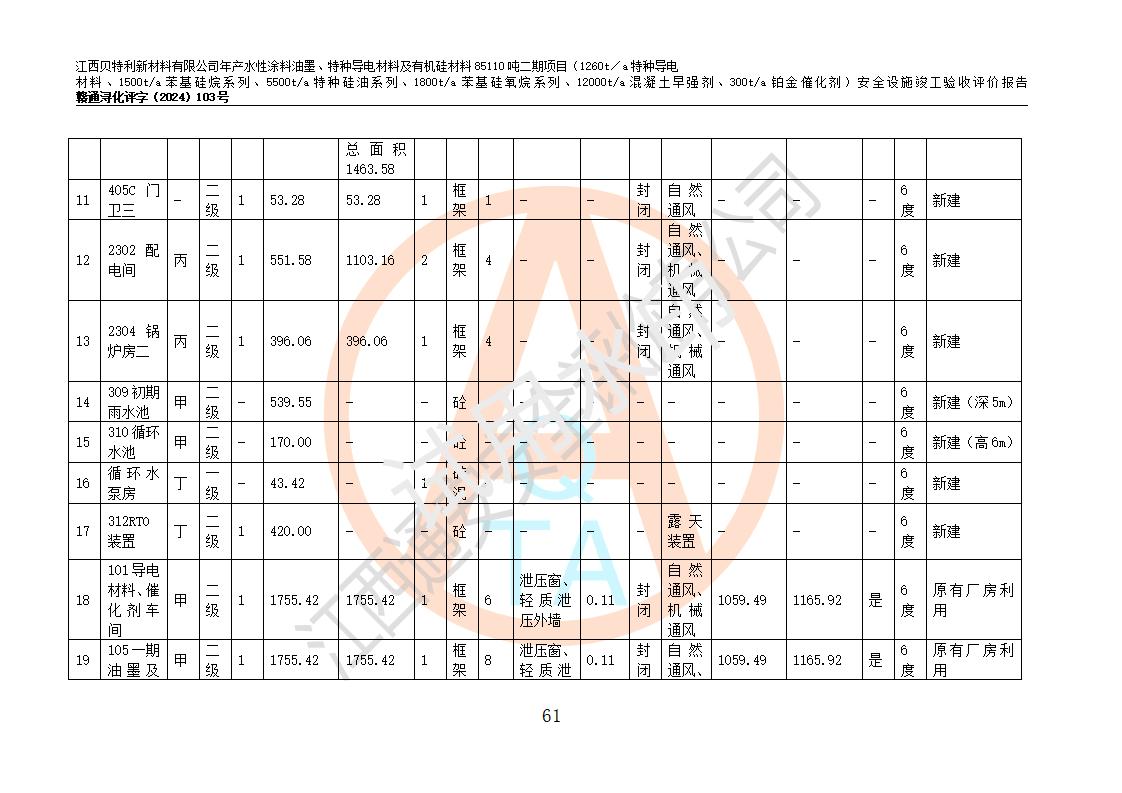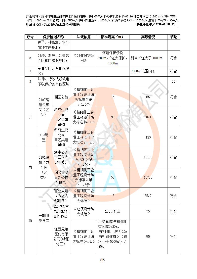 評價報告名稱 | 江西貝特利新材料有限公司年產(chǎn)水性涂料油墨、特種導電材料及有 機硅材料85110噸二期項目(1260t/a特種導電材料、1500t/a苯基硅烷系列、5500t/a特種硅油系列、1800t/a苯基硅氧烷系列、12000t/a混凝土早強劑、300t/a鉑金催化劑)安全設施竣工驗收評價報告 | |||||