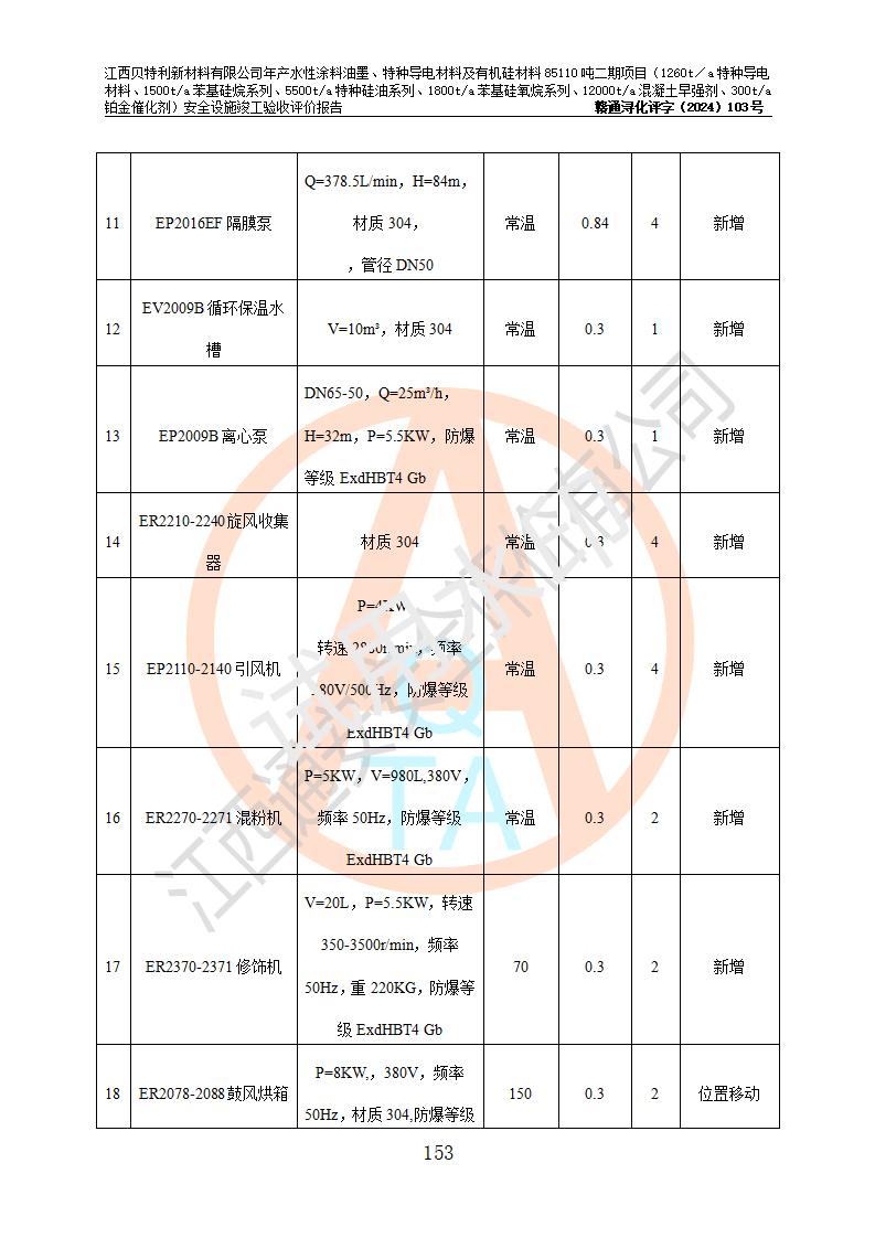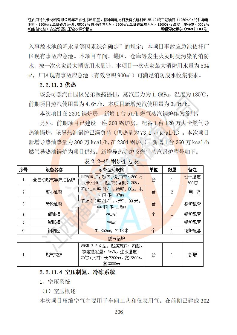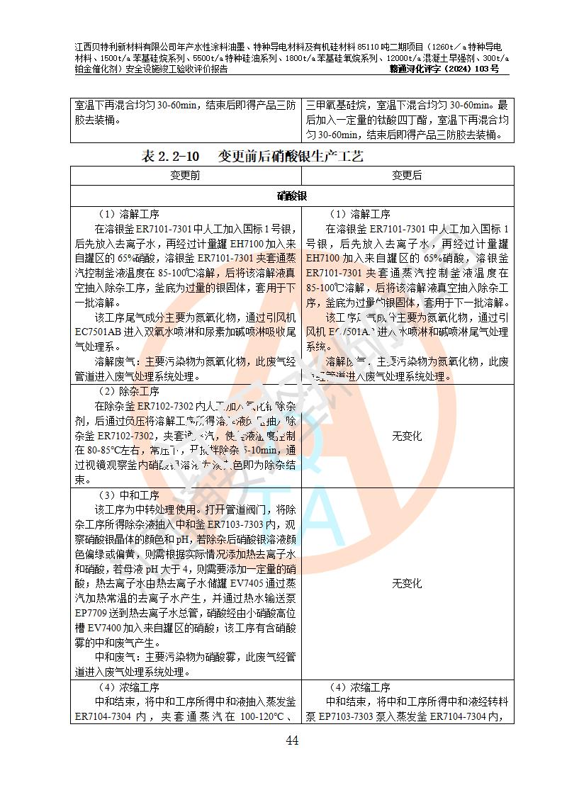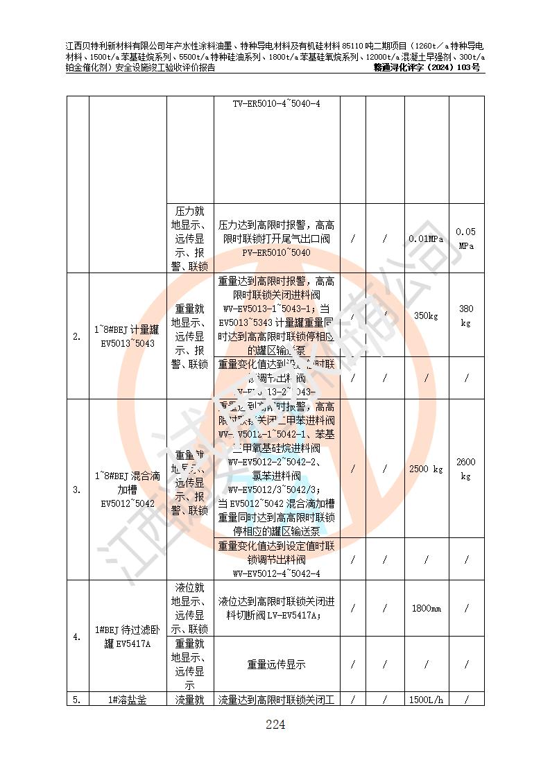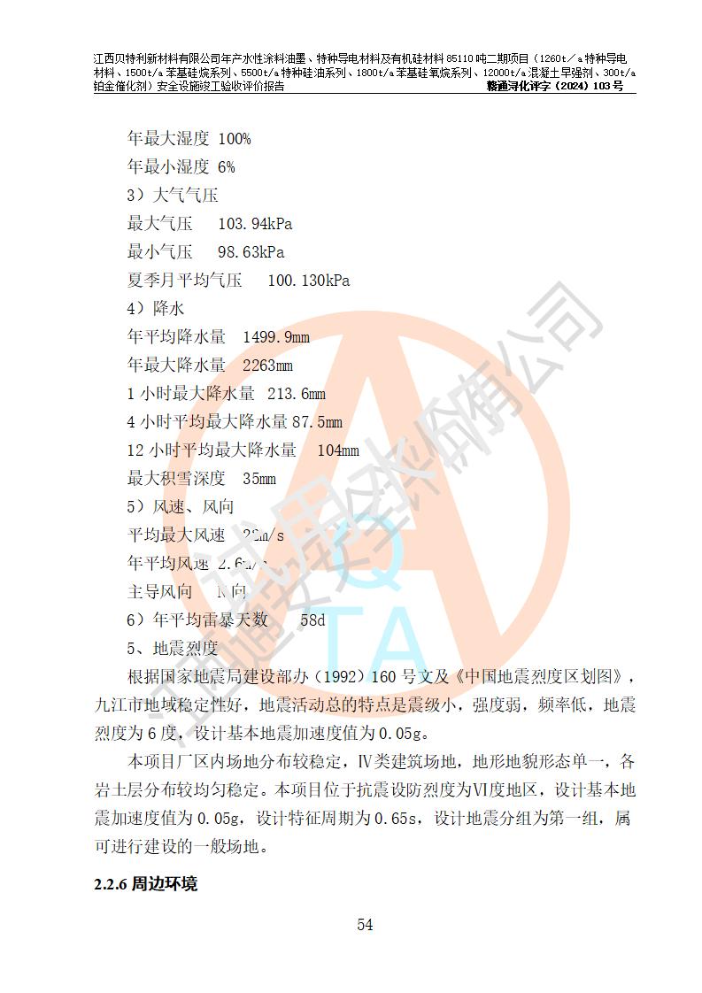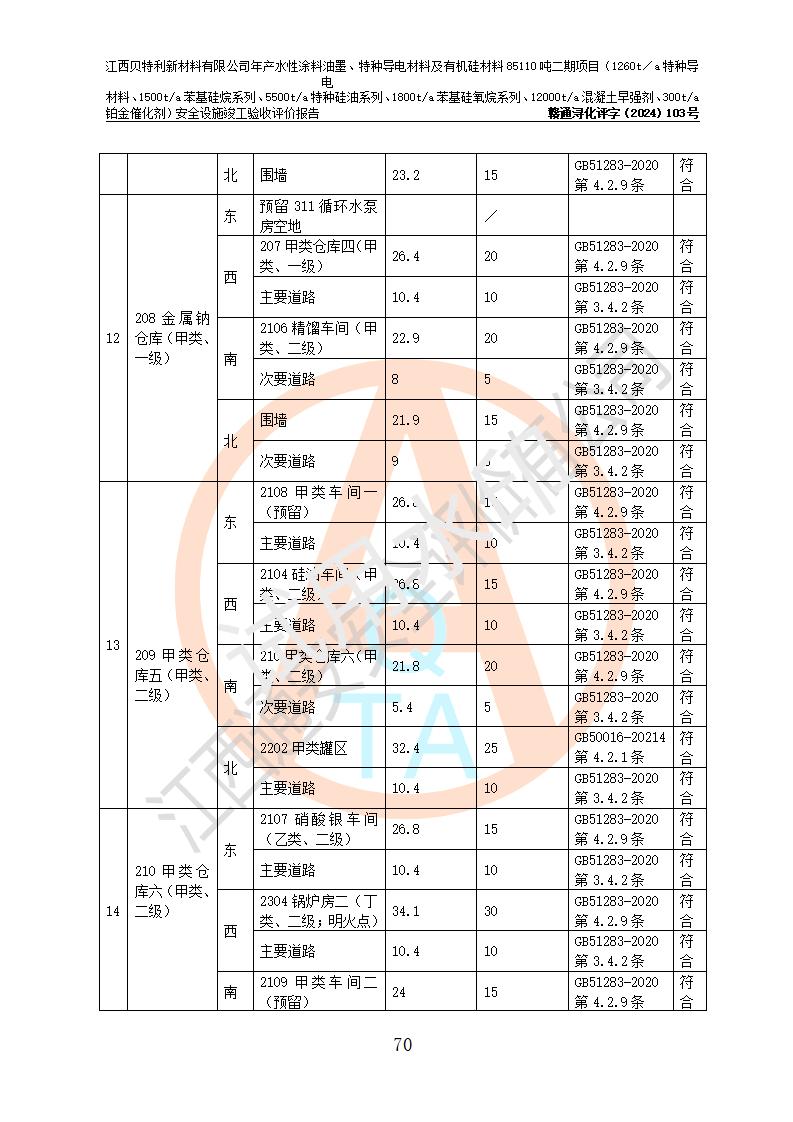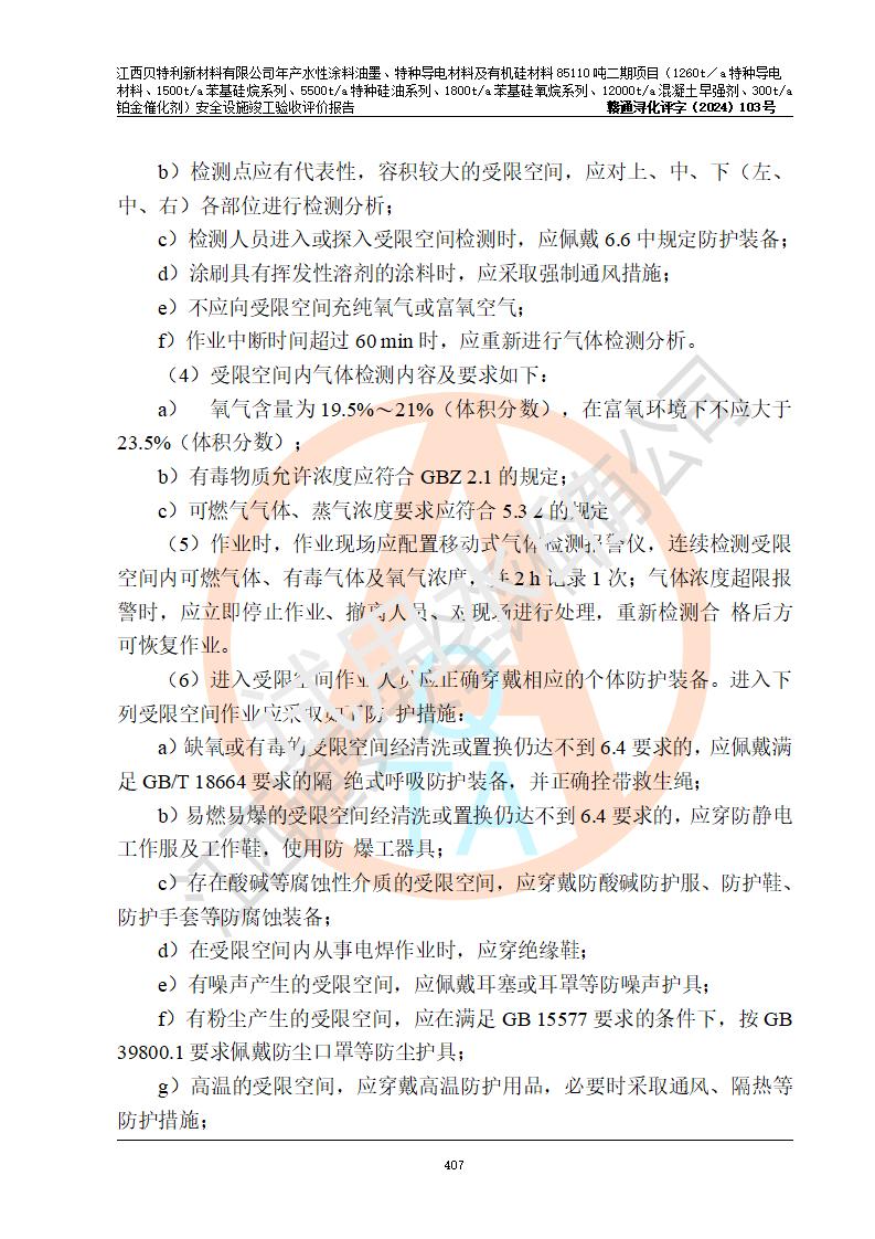 評價報告名稱 | 江西貝特利新材料有限公司年產(chǎn)水性涂料油墨、特種導電材料及有 機硅材料85110噸二期項目(1260t/a特種導電材料、1500t/a苯基硅烷系列、5500t/a特種硅油系列、1800t/a苯基硅氧烷系列、12000t/a混凝土早強劑、300t/a鉑金催化劑)安全設施竣工驗收評價報告 | |||||