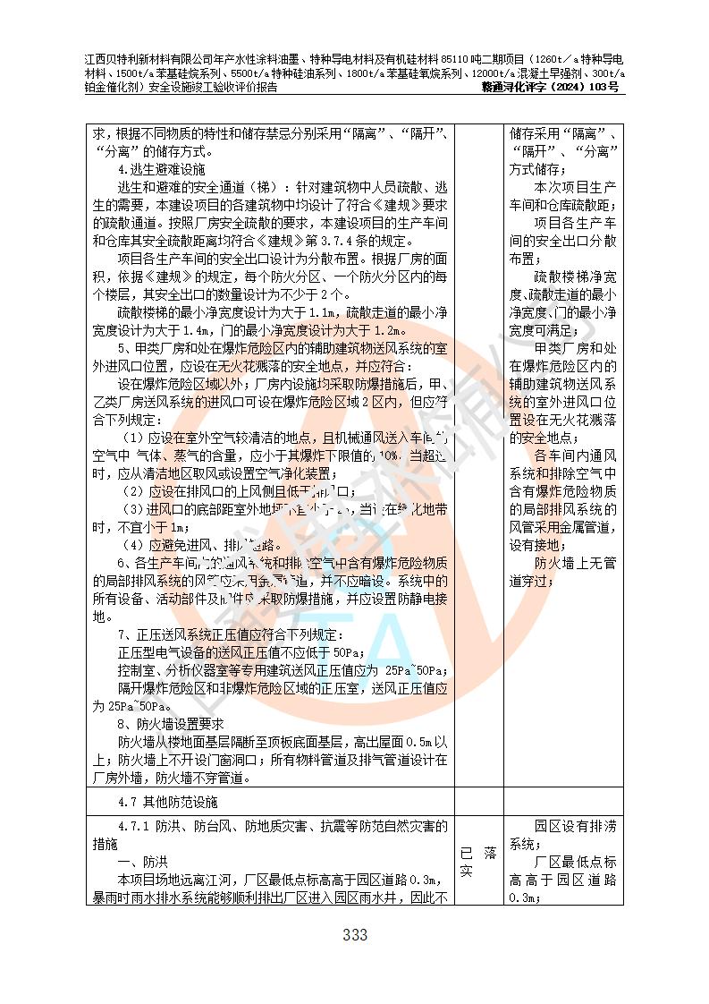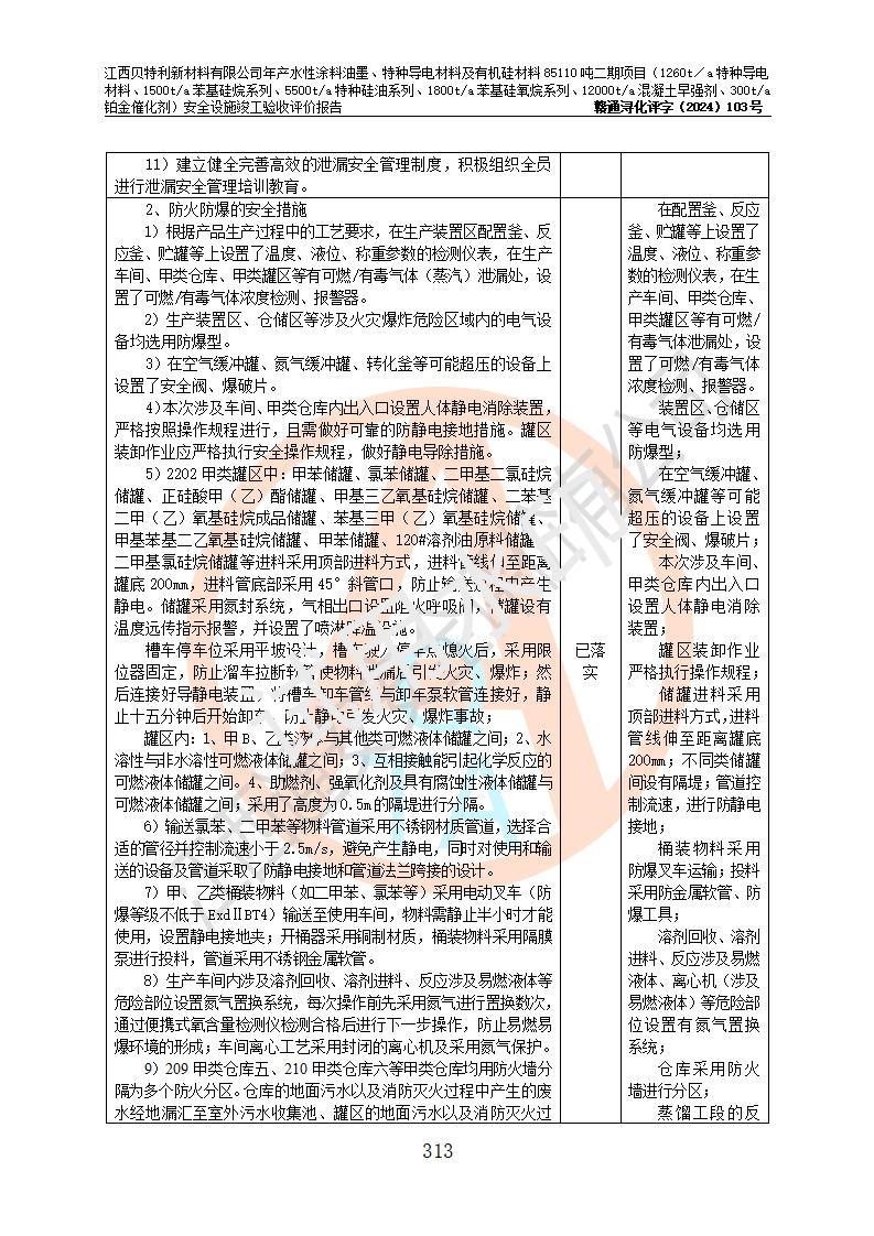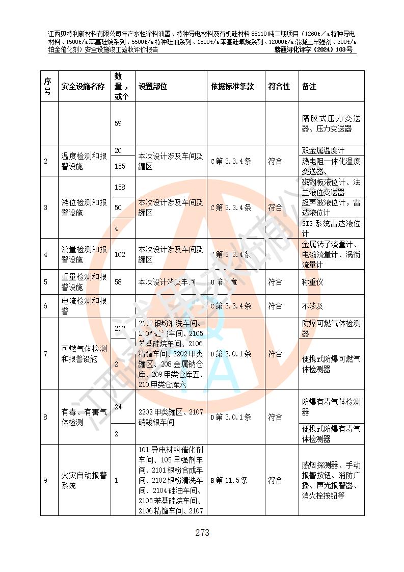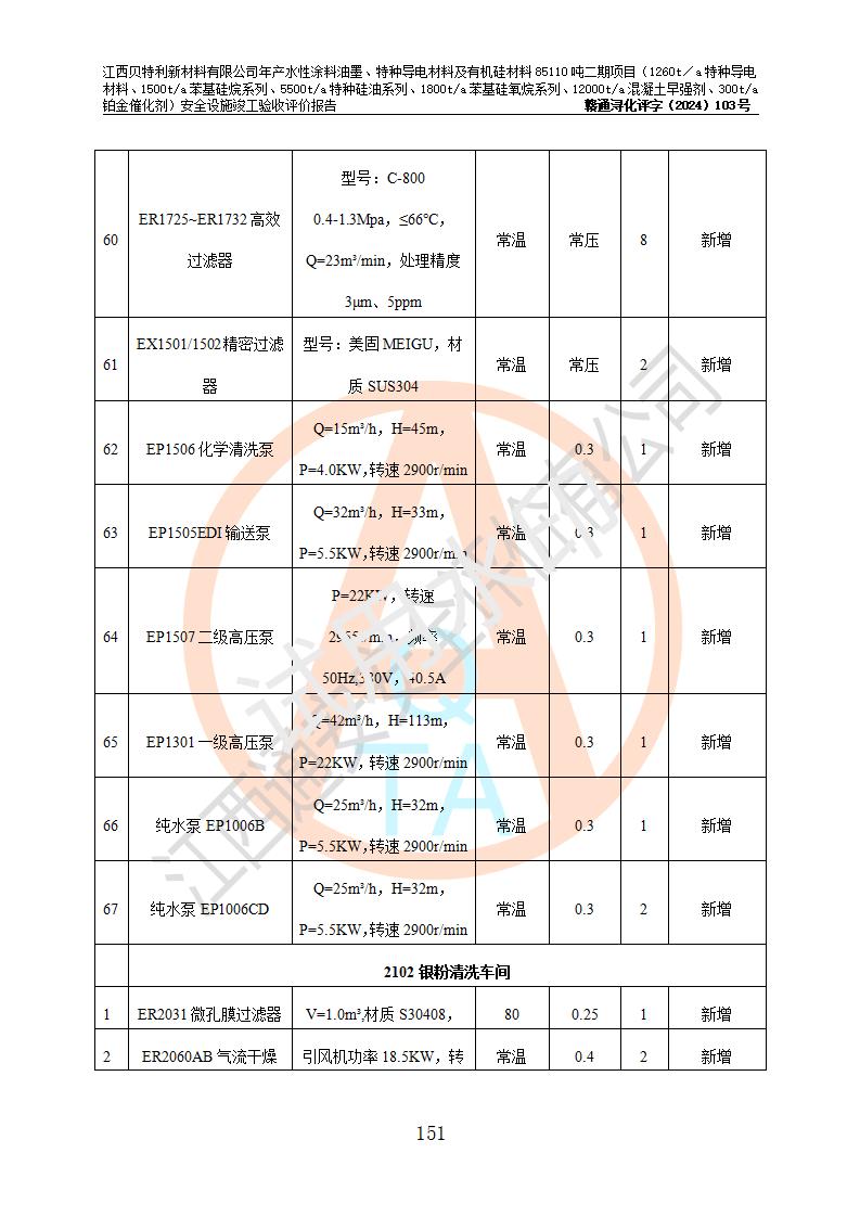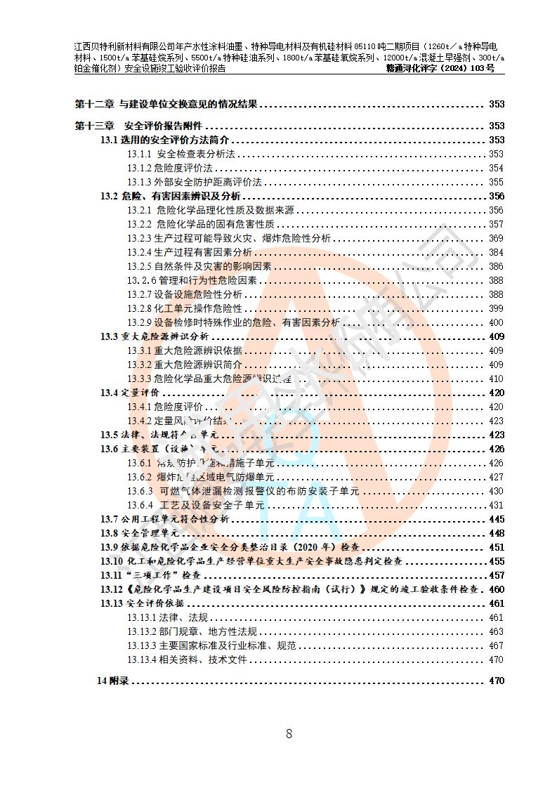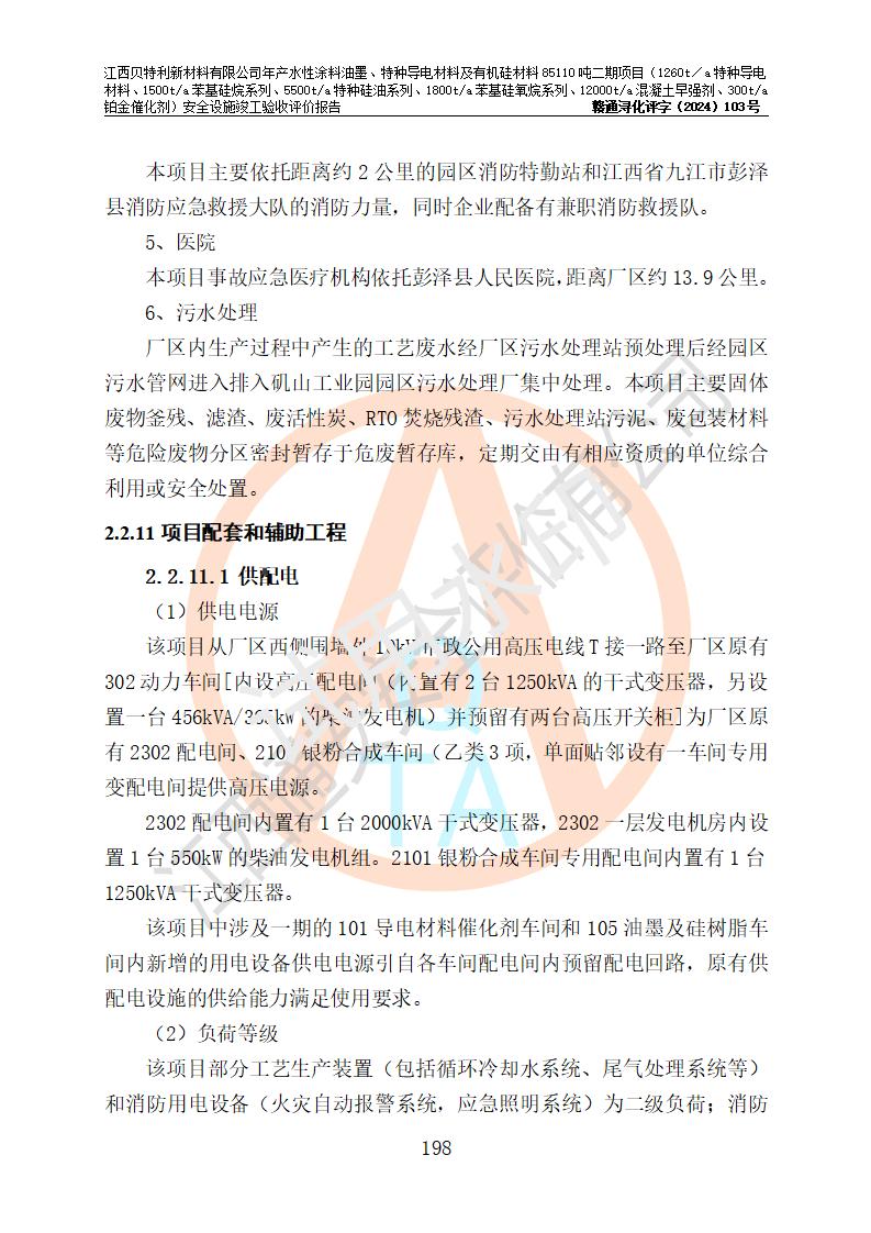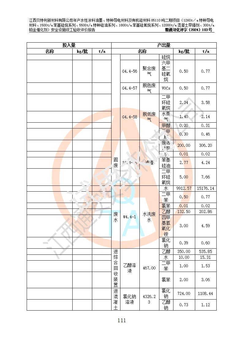 評價報告名稱 | 江西貝特利新材料有限公司年產(chǎn)水性涂料油墨、特種導電材料及有 機硅材料85110噸二期項目(1260t/a特種導電材料、1500t/a苯基硅烷系列、5500t/a特種硅油系列、1800t/a苯基硅氧烷系列、12000t/a混凝土早強劑、300t/a鉑金催化劑)安全設施竣工驗收評價報告 | |||||