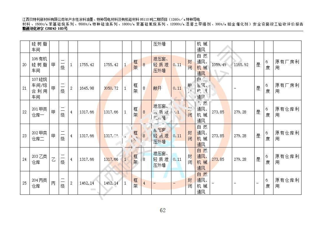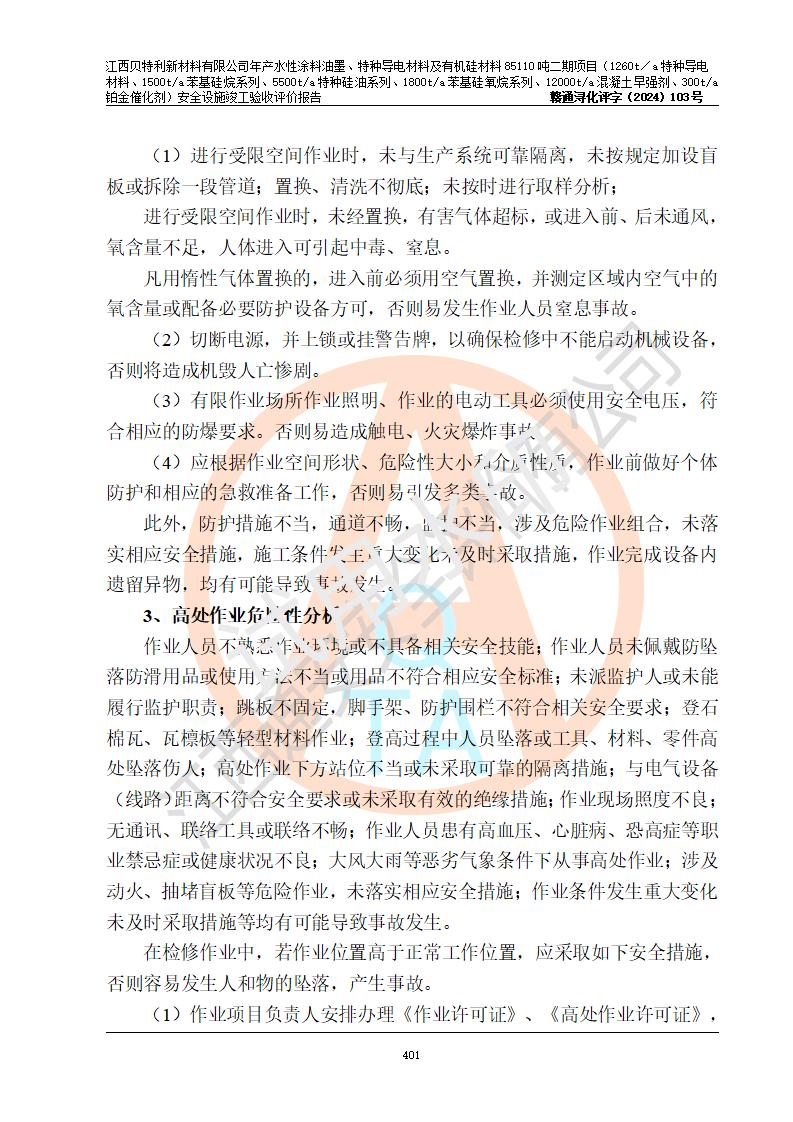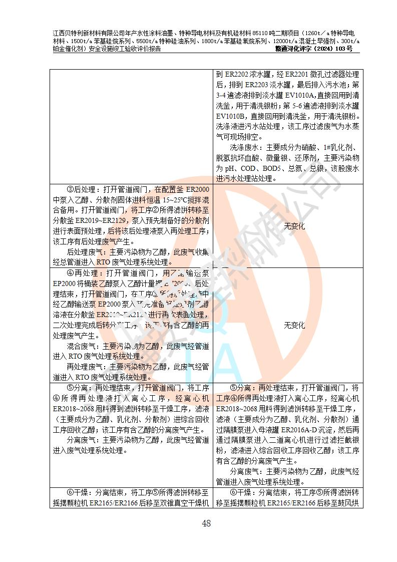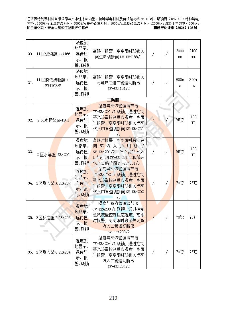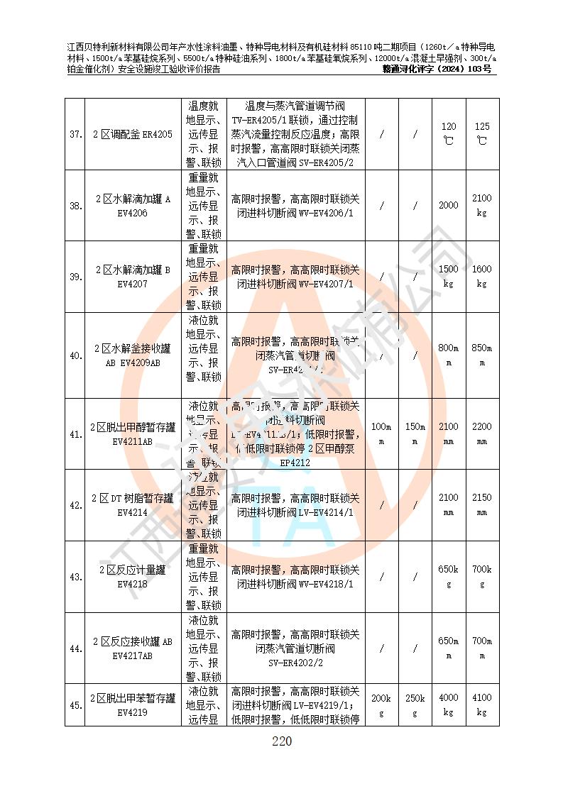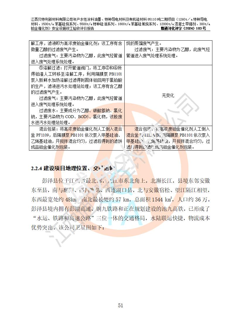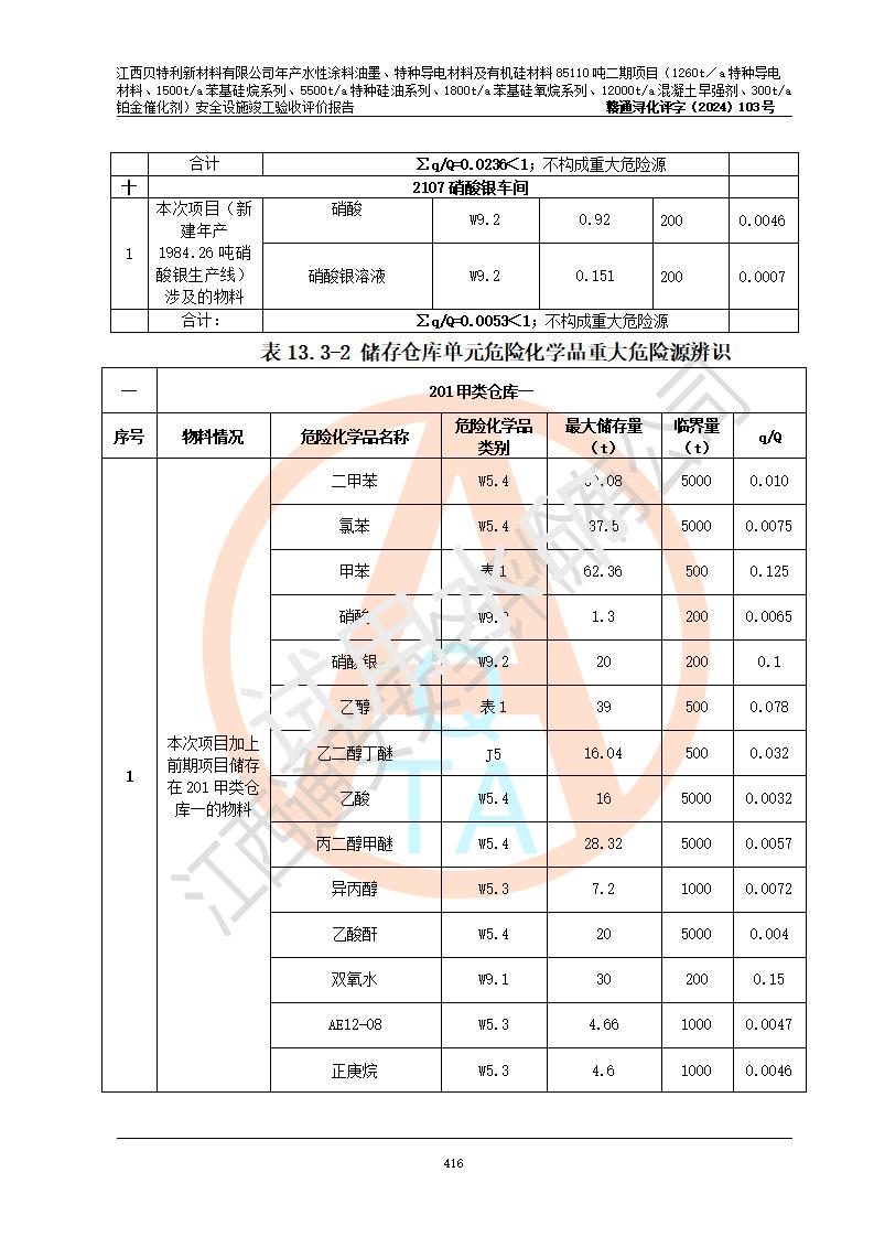 評價報告名稱 | 江西貝特利新材料有限公司年產(chǎn)水性涂料油墨、特種導電材料及有 機硅材料85110噸二期項目(1260t/a特種導電材料、1500t/a苯基硅烷系列、5500t/a特種硅油系列、1800t/a苯基硅氧烷系列、12000t/a混凝土早強劑、300t/a鉑金催化劑)安全設施竣工驗收評價報告 | |||||