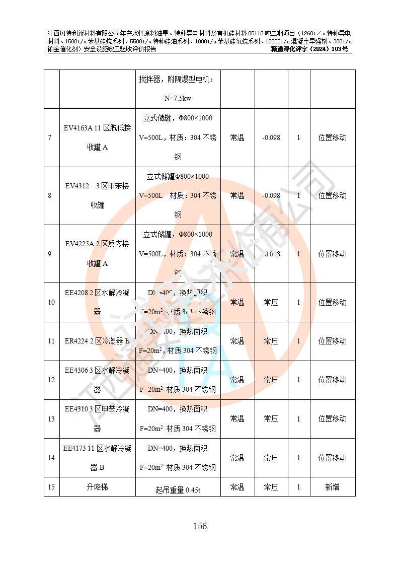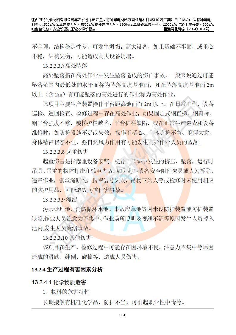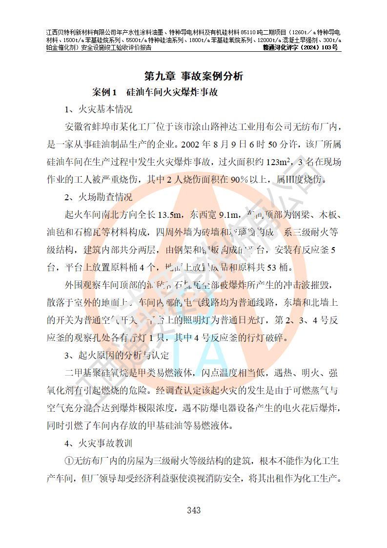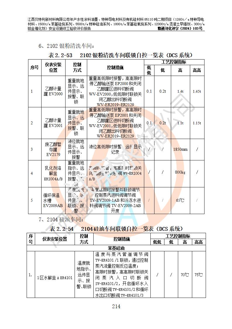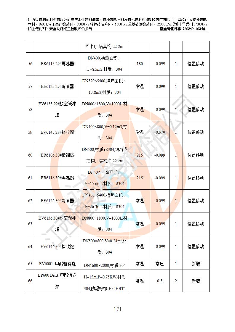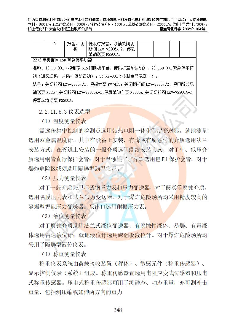 評價報告名稱 | 江西貝特利新材料有限公司年產(chǎn)水性涂料油墨、特種導電材料及有 機硅材料85110噸二期項目(1260t/a特種導電材料、1500t/a苯基硅烷系列、5500t/a特種硅油系列、1800t/a苯基硅氧烷系列、12000t/a混凝土早強劑、300t/a鉑金催化劑)安全設施竣工驗收評價報告 | |||||