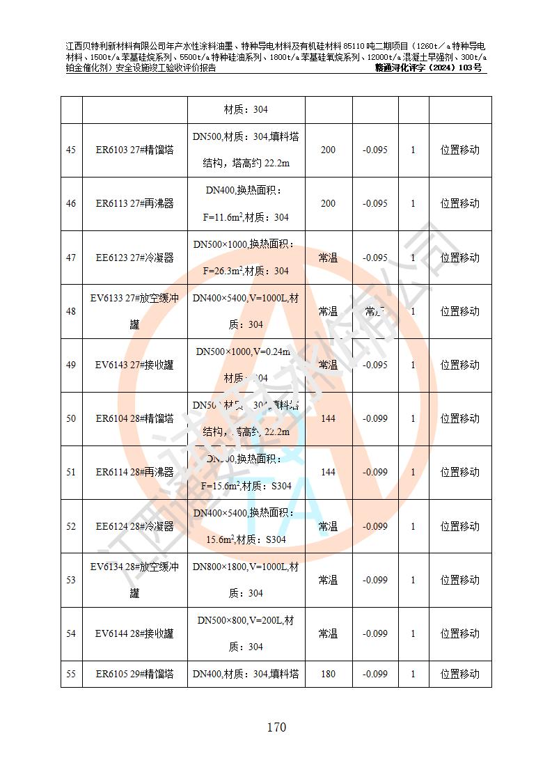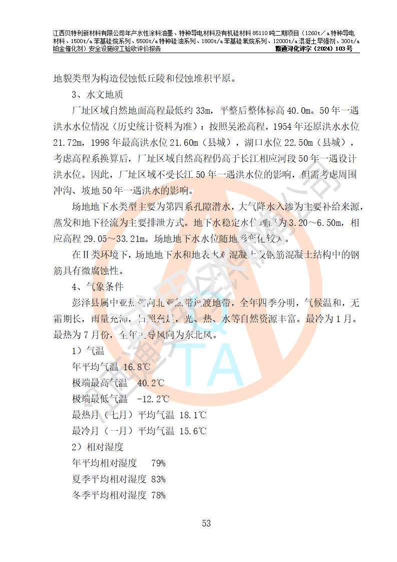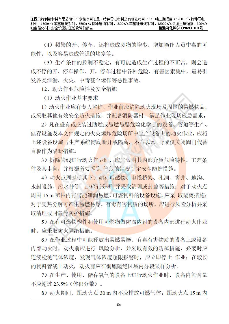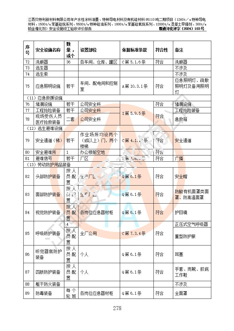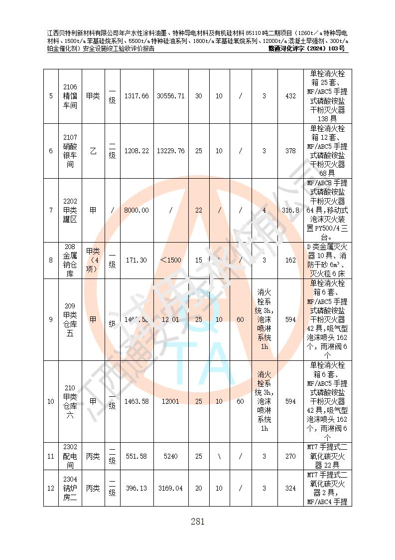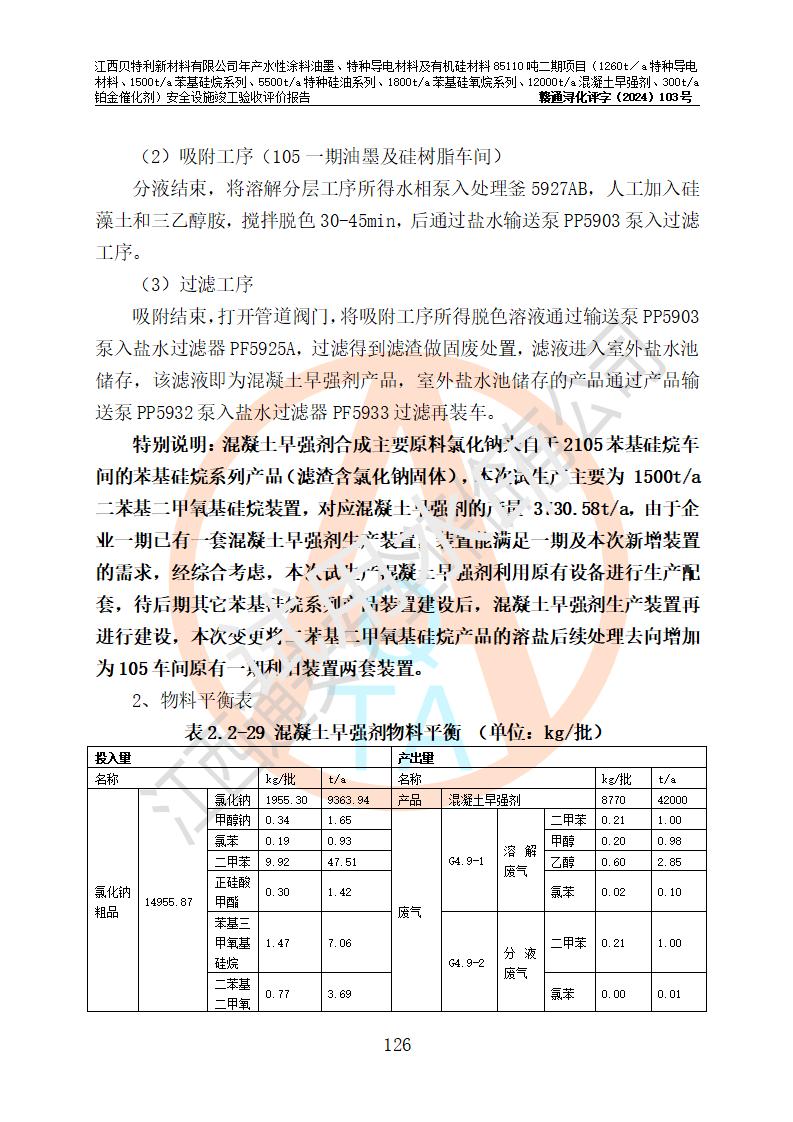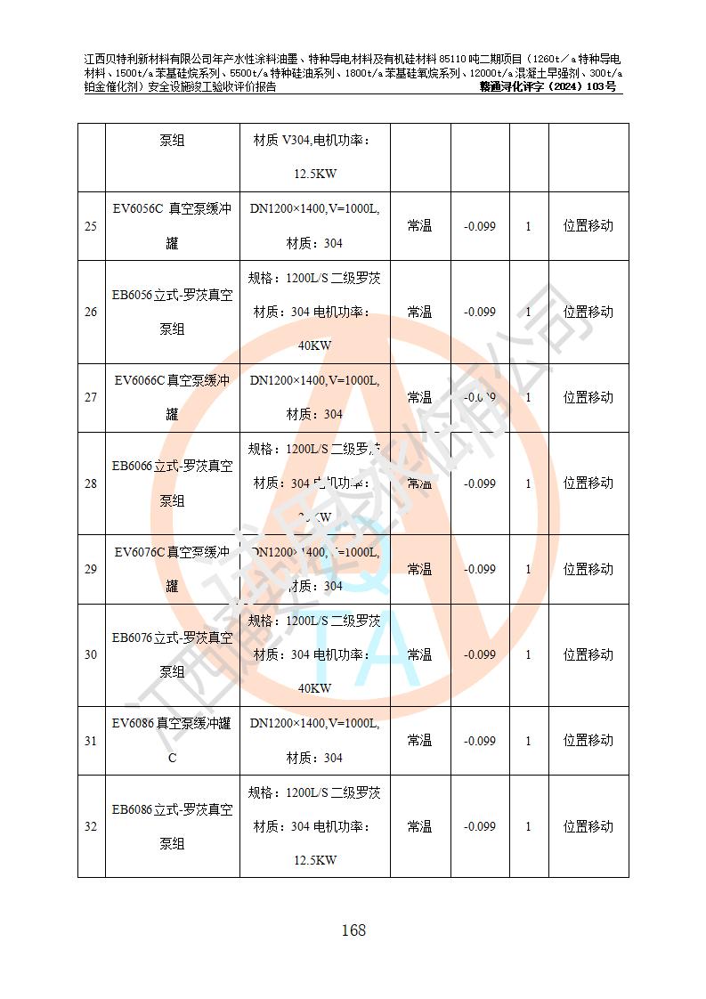評價報告名稱 | 江西貝特利新材料有限公司年產(chǎn)水性涂料油墨、特種導電材料及有 機硅材料85110噸二期項目(1260t/a特種導電材料、1500t/a苯基硅烷系列、5500t/a特種硅油系列、1800t/a苯基硅氧烷系列、12000t/a混凝土早強劑、300t/a鉑金催化劑)安全設施竣工驗收評價報告 | |||||
