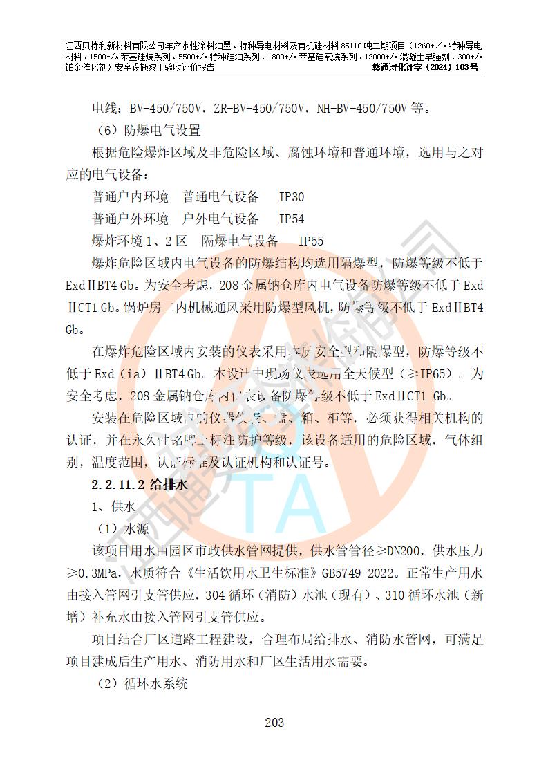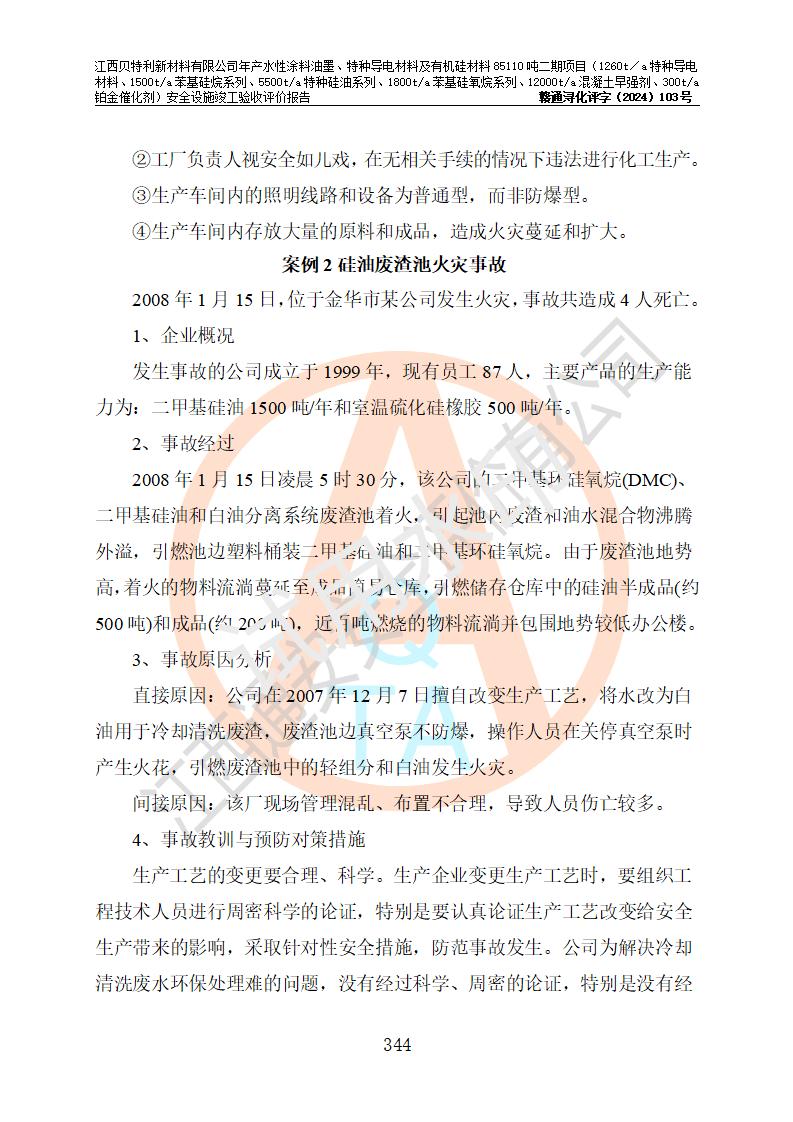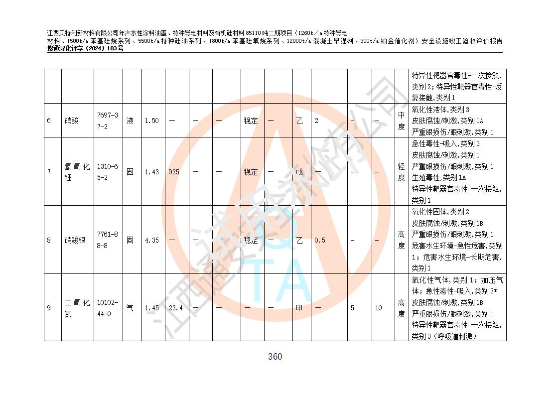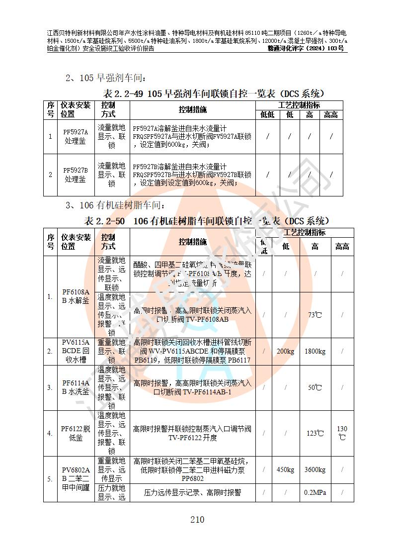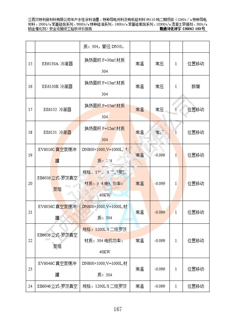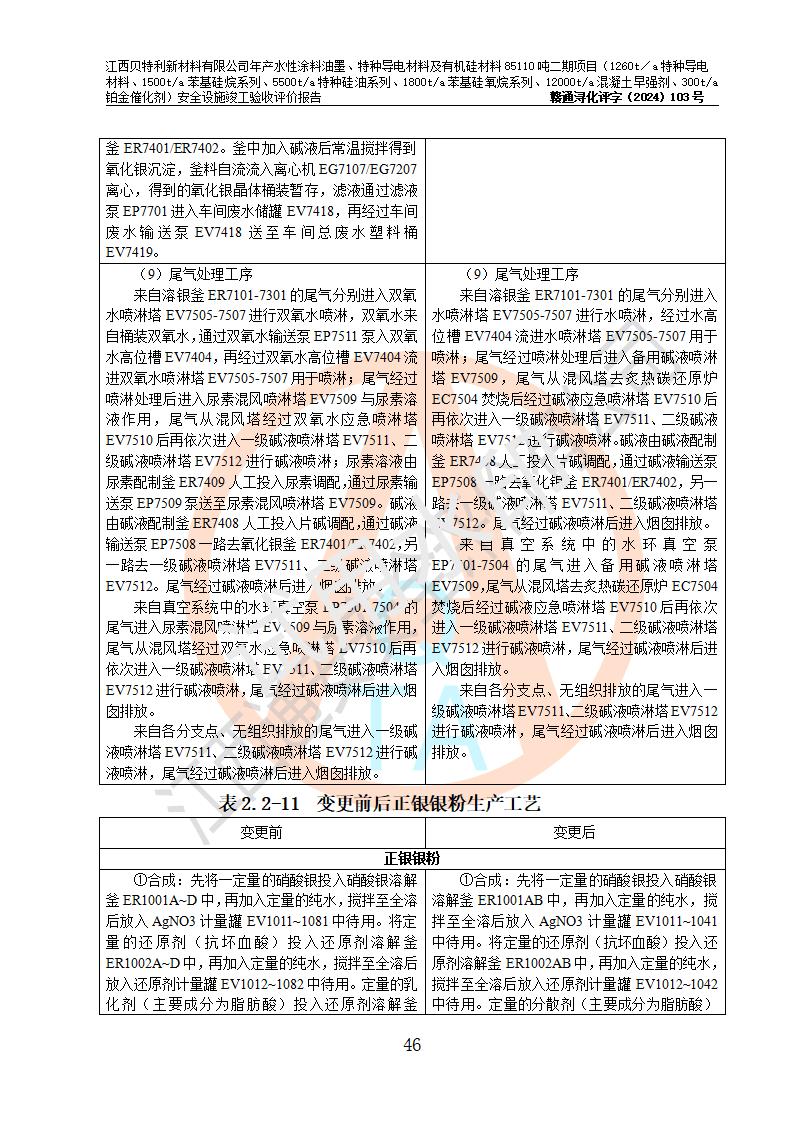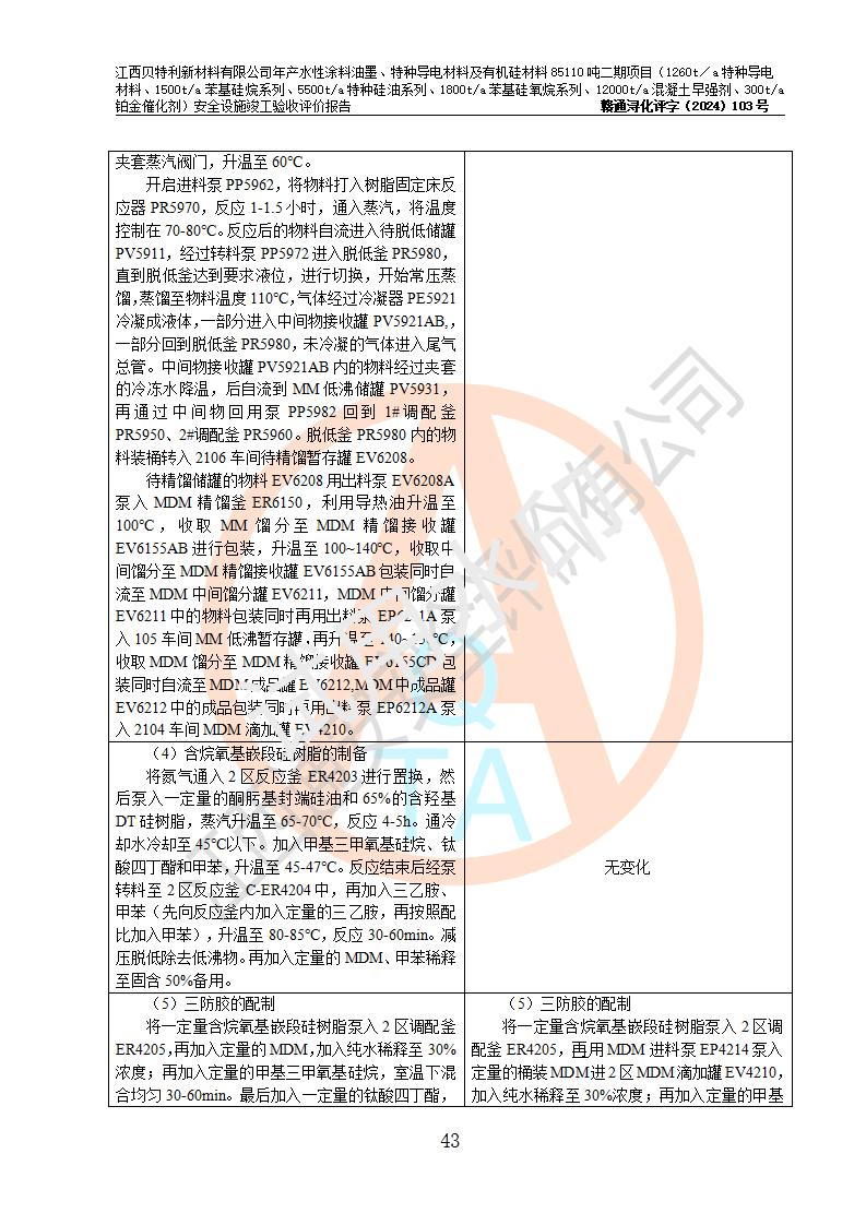 評價報告名稱 | 江西貝特利新材料有限公司年產(chǎn)水性涂料油墨、特種導電材料及有 機硅材料85110噸二期項目(1260t/a特種導電材料、1500t/a苯基硅烷系列、5500t/a特種硅油系列、1800t/a苯基硅氧烷系列、12000t/a混凝土早強劑、300t/a鉑金催化劑)安全設施竣工驗收評價報告 | |||||