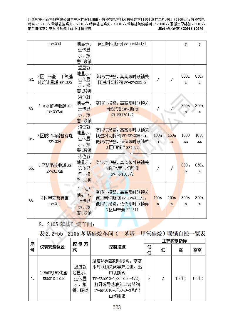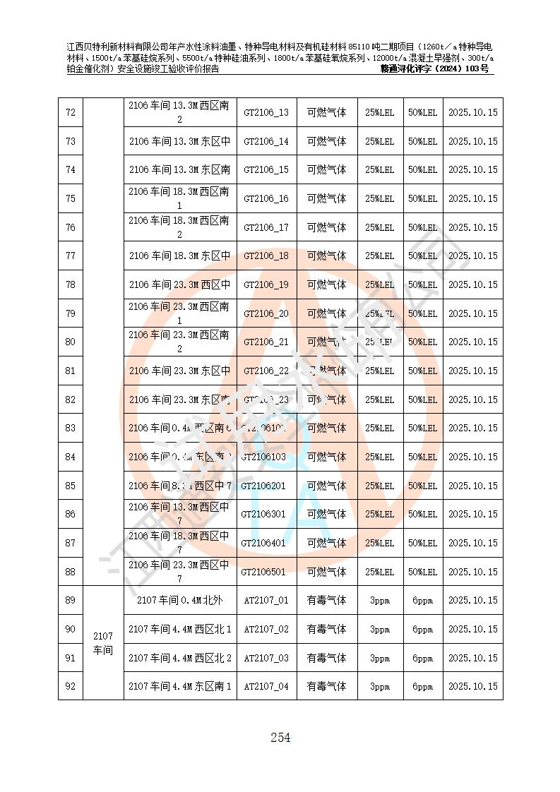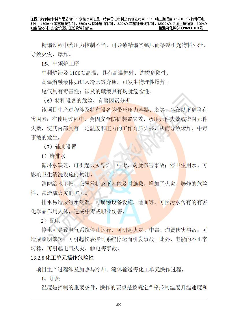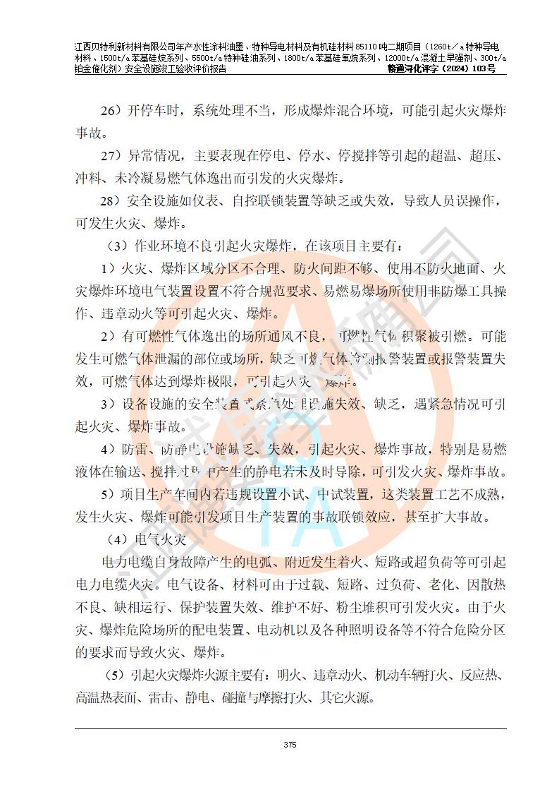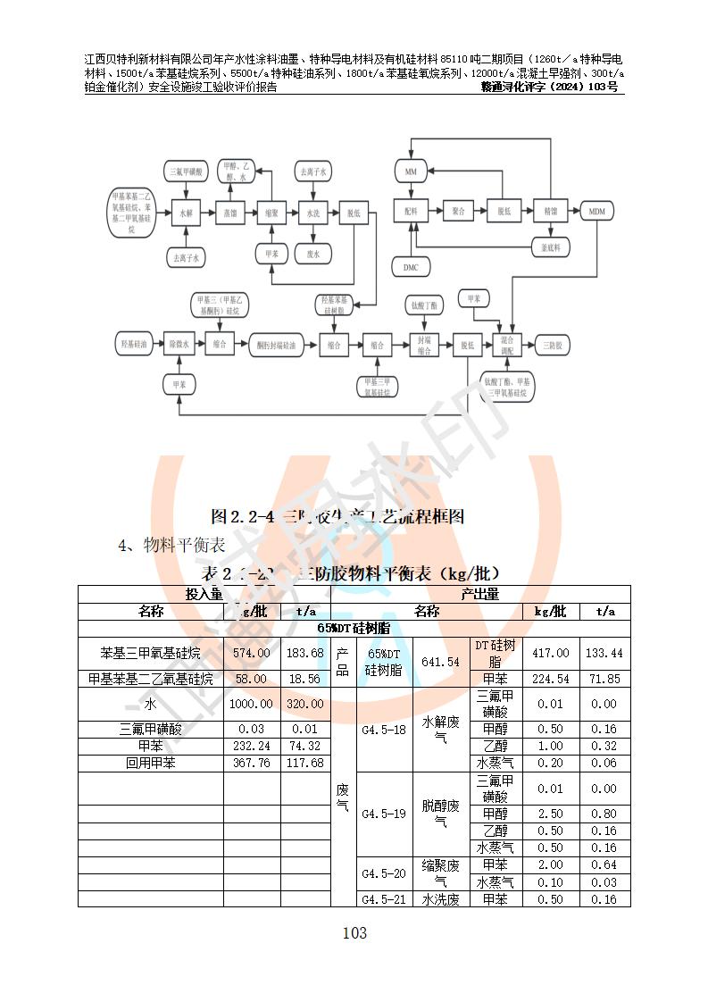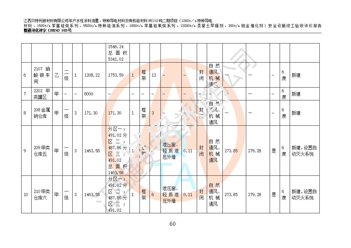 評價報告名稱 | 江西貝特利新材料有限公司年產(chǎn)水性涂料油墨、特種導電材料及有 機硅材料85110噸二期項目(1260t/a特種導電材料、1500t/a苯基硅烷系列、5500t/a特種硅油系列、1800t/a苯基硅氧烷系列、12000t/a混凝土早強劑、300t/a鉑金催化劑)安全設施竣工驗收評價報告 | |||||