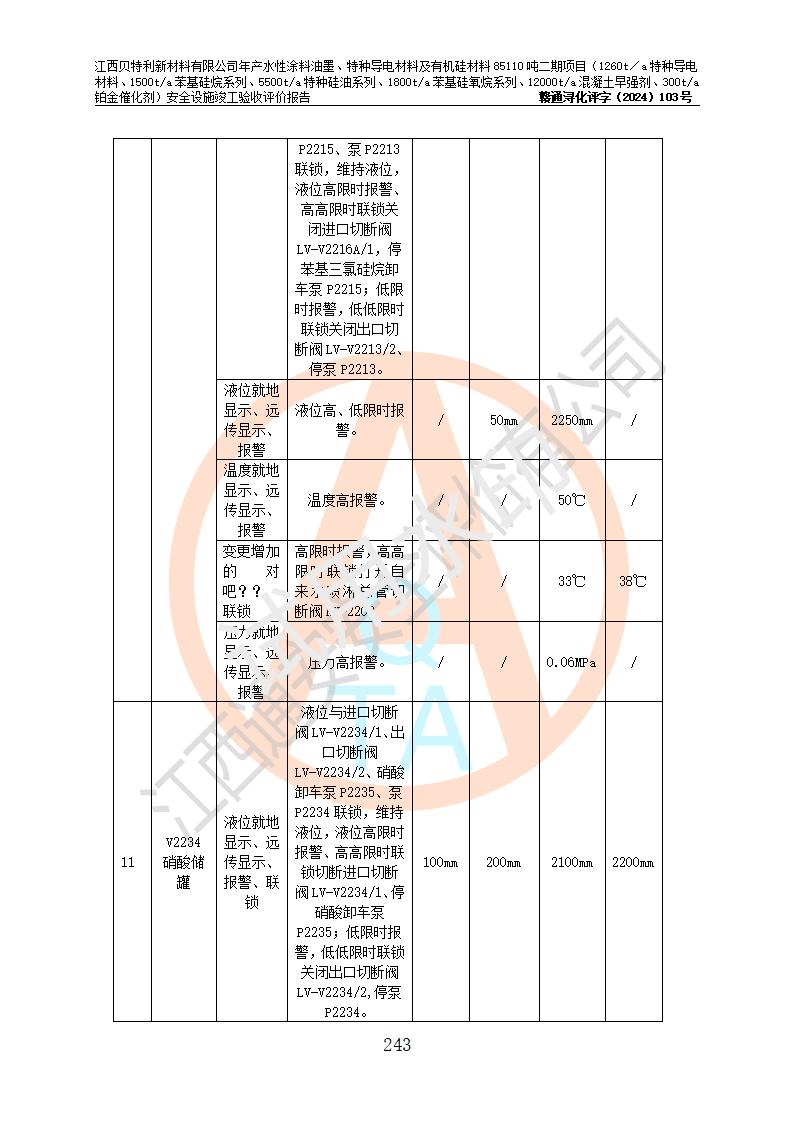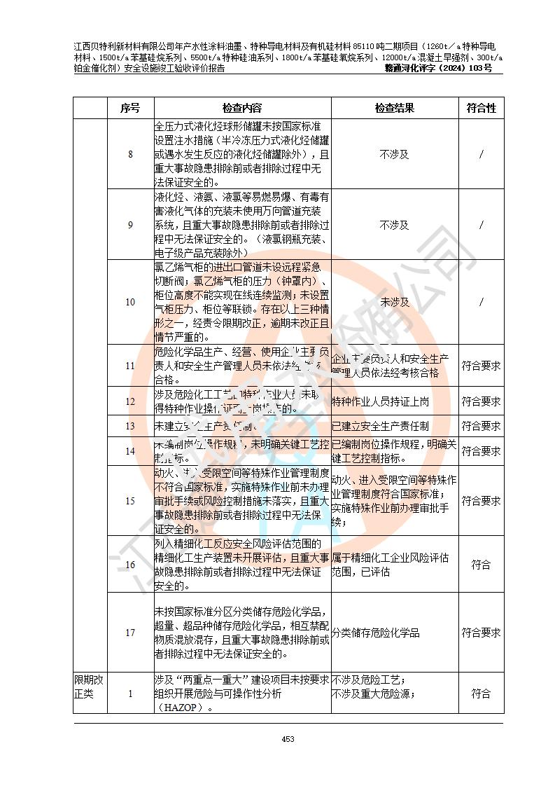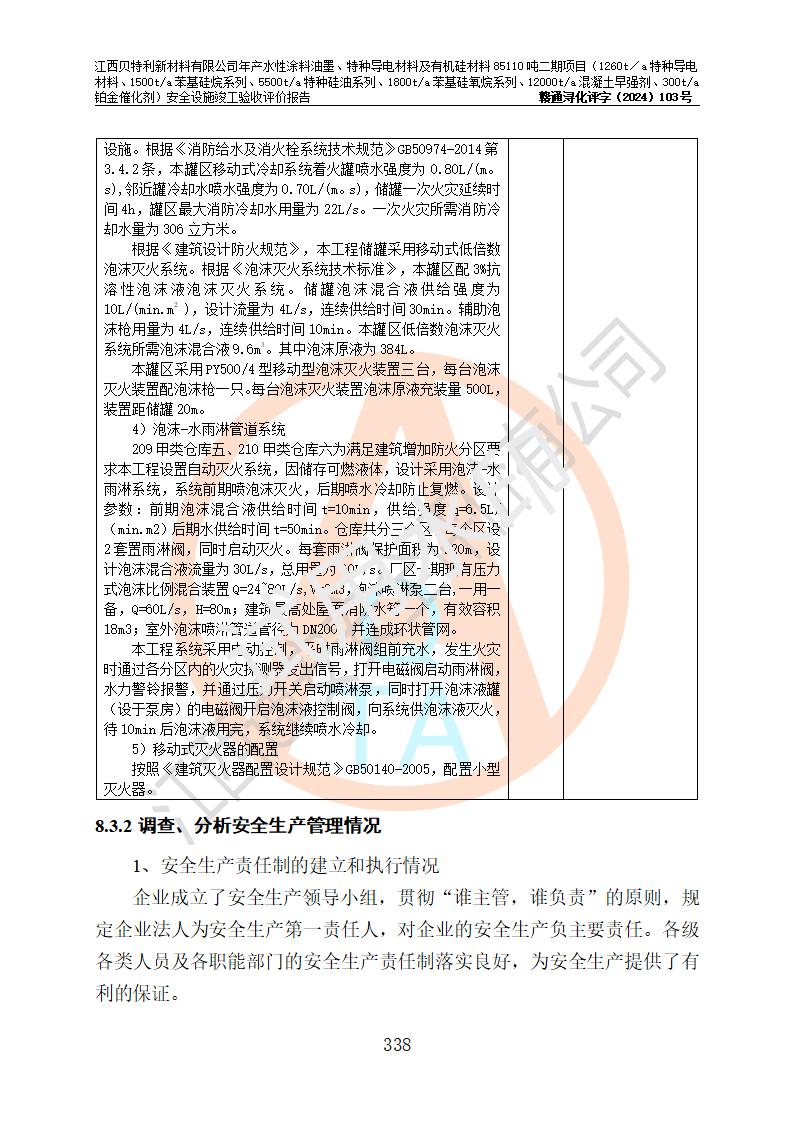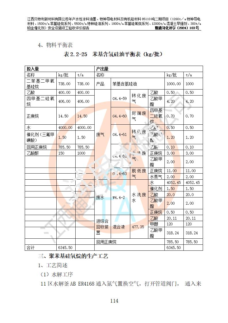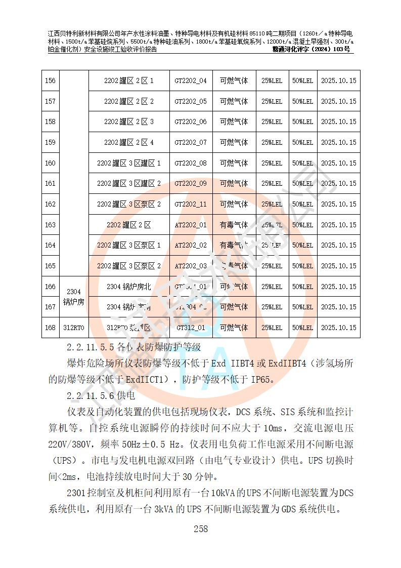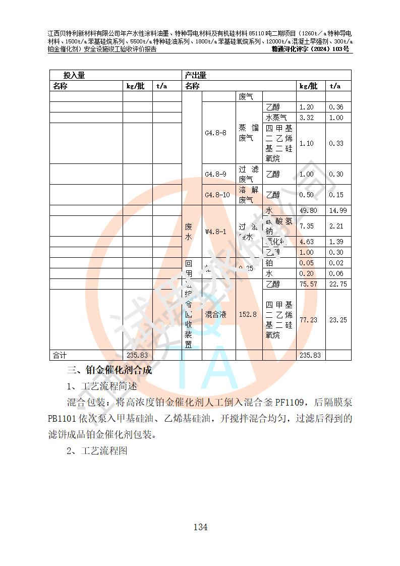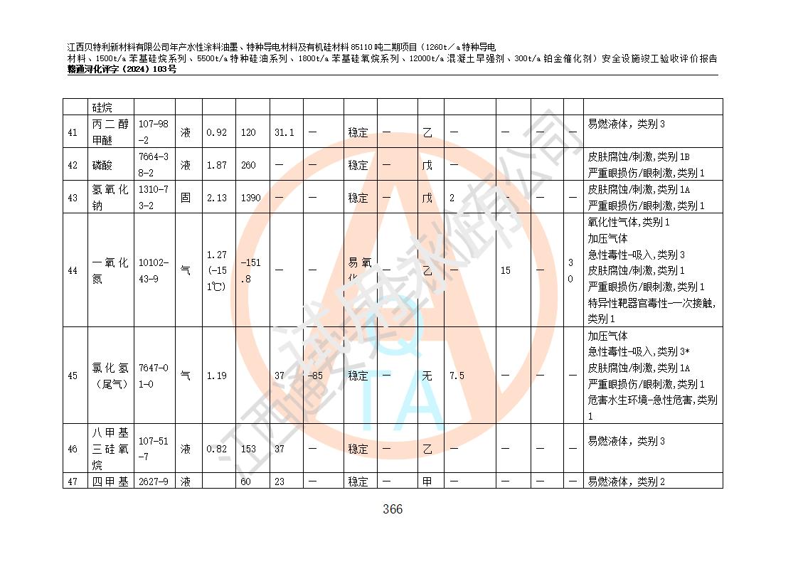 評價報告名稱 | 江西貝特利新材料有限公司年產(chǎn)水性涂料油墨、特種導電材料及有 機硅材料85110噸二期項目(1260t/a特種導電材料、1500t/a苯基硅烷系列、5500t/a特種硅油系列、1800t/a苯基硅氧烷系列、12000t/a混凝土早強劑、300t/a鉑金催化劑)安全設施竣工驗收評價報告 | |||||
