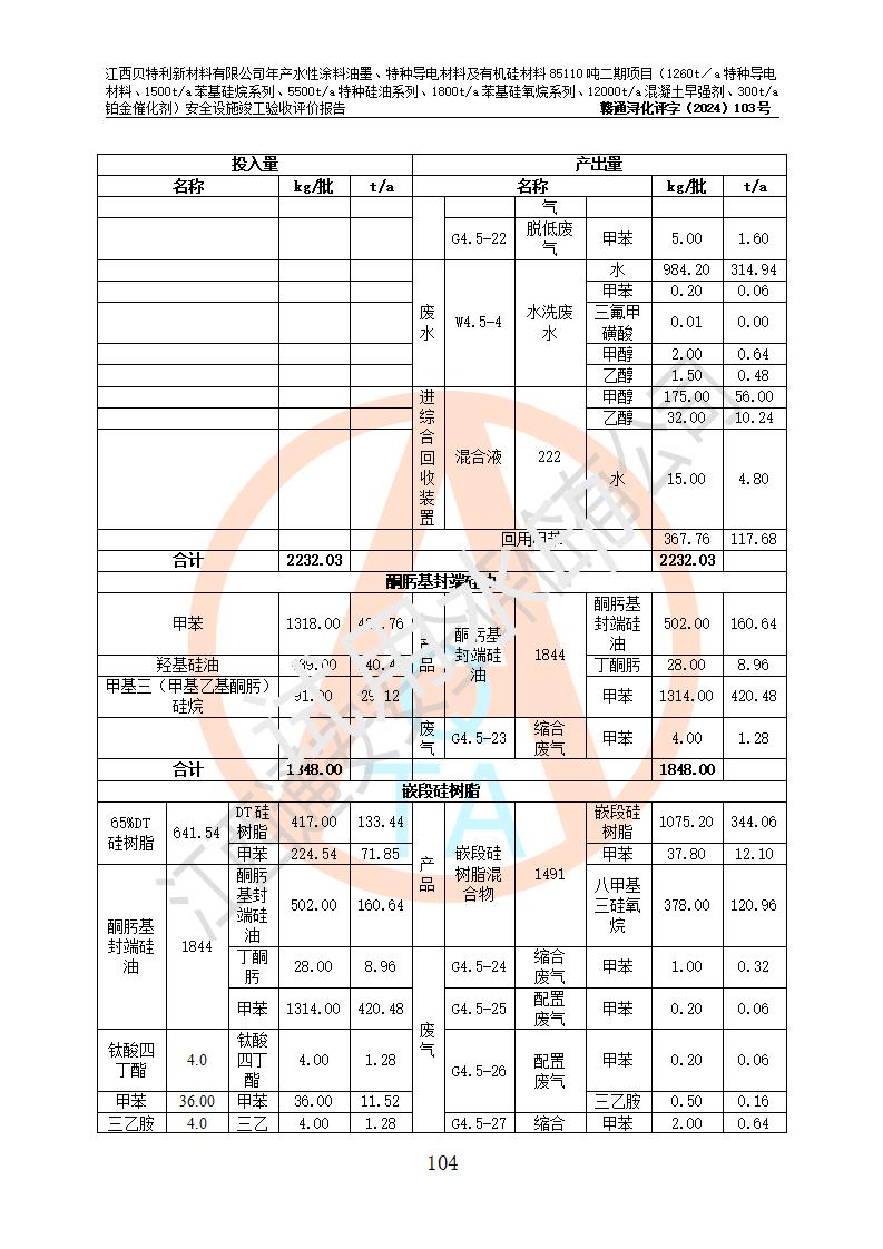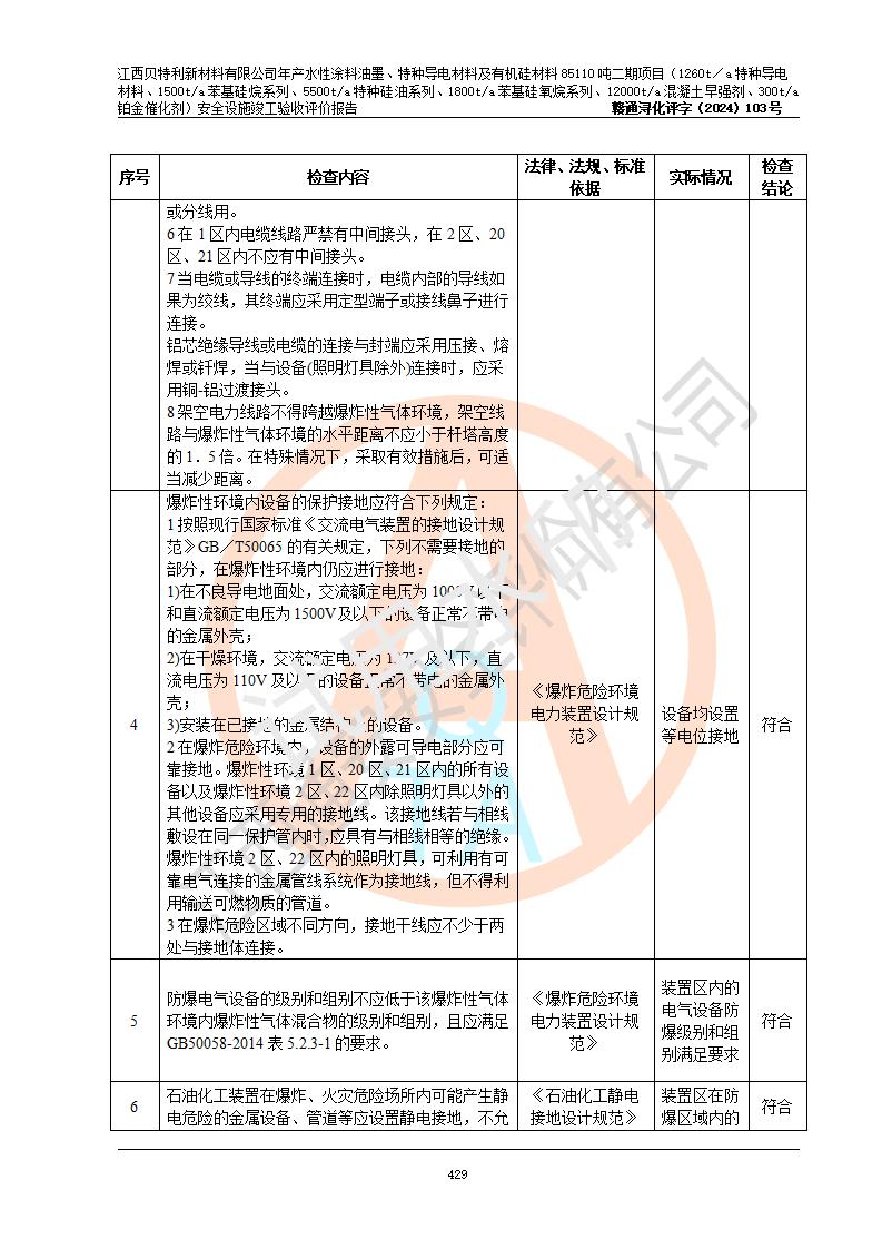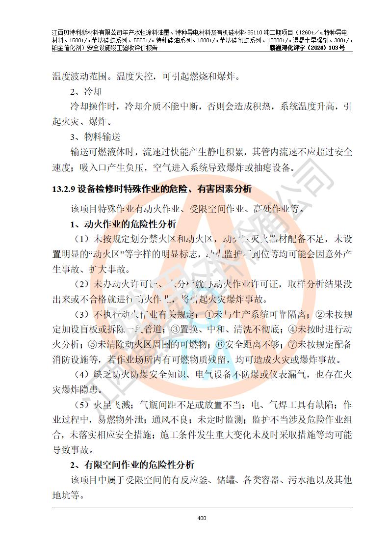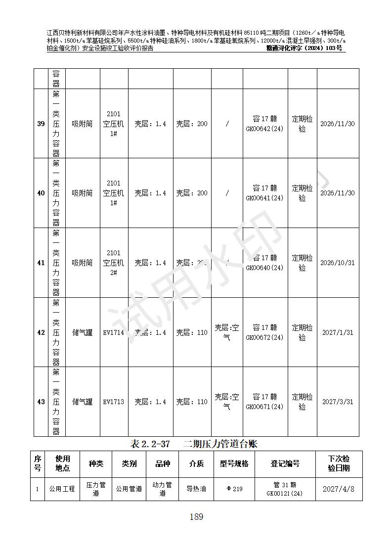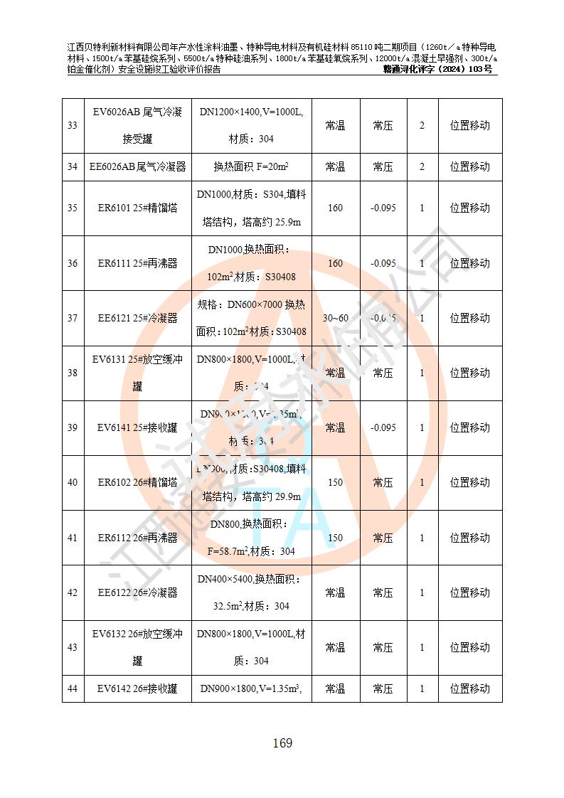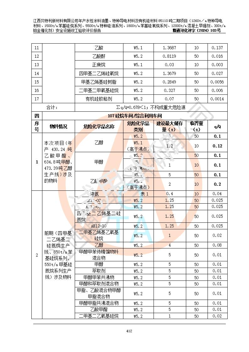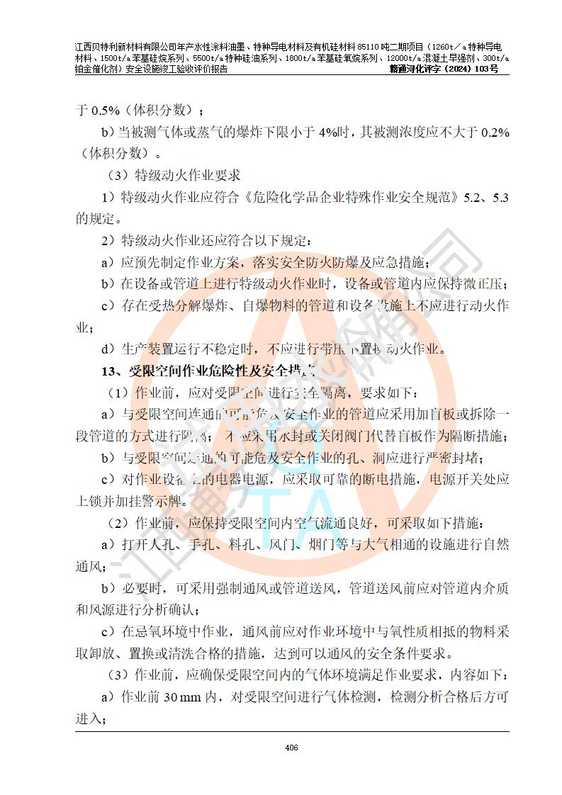 評價報告名稱 | 江西貝特利新材料有限公司年產(chǎn)水性涂料油墨、特種導電材料及有 機硅材料85110噸二期項目(1260t/a特種導電材料、1500t/a苯基硅烷系列、5500t/a特種硅油系列、1800t/a苯基硅氧烷系列、12000t/a混凝土早強劑、300t/a鉑金催化劑)安全設施竣工驗收評價報告 | |||||