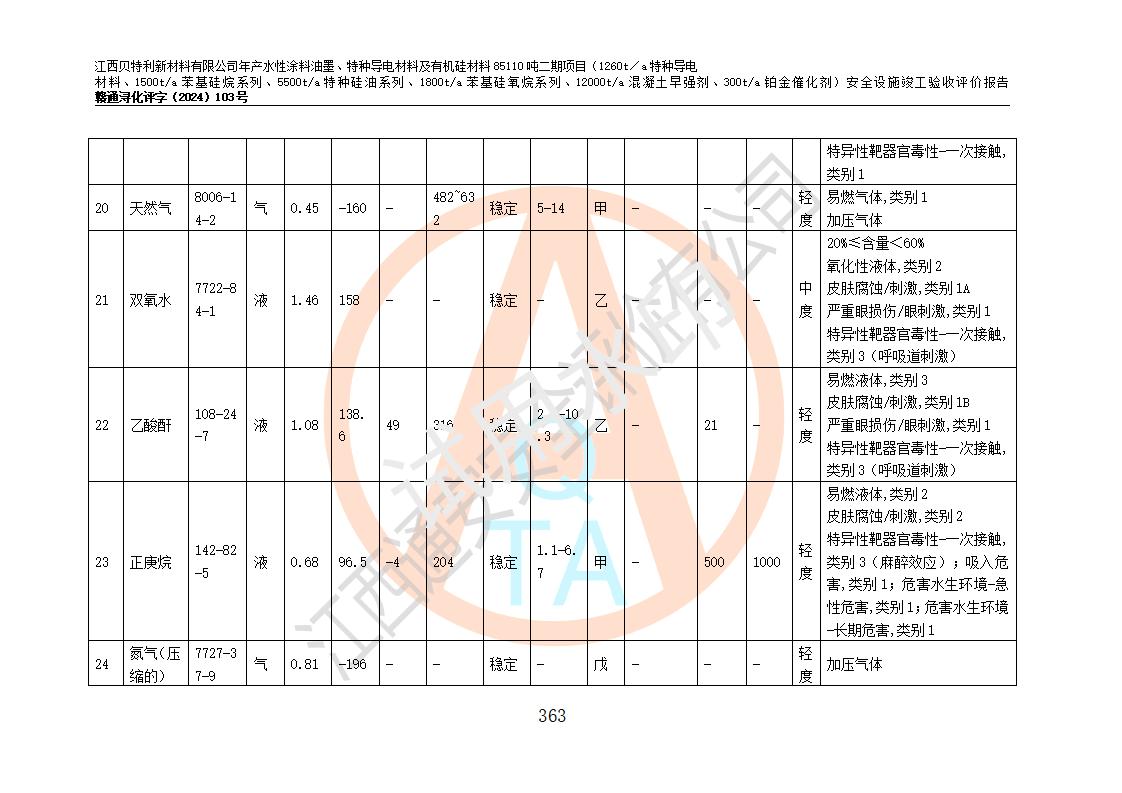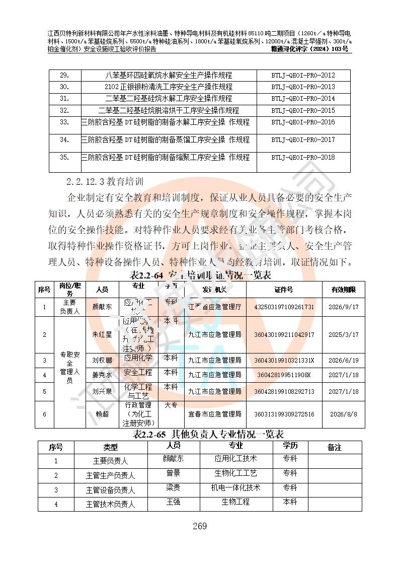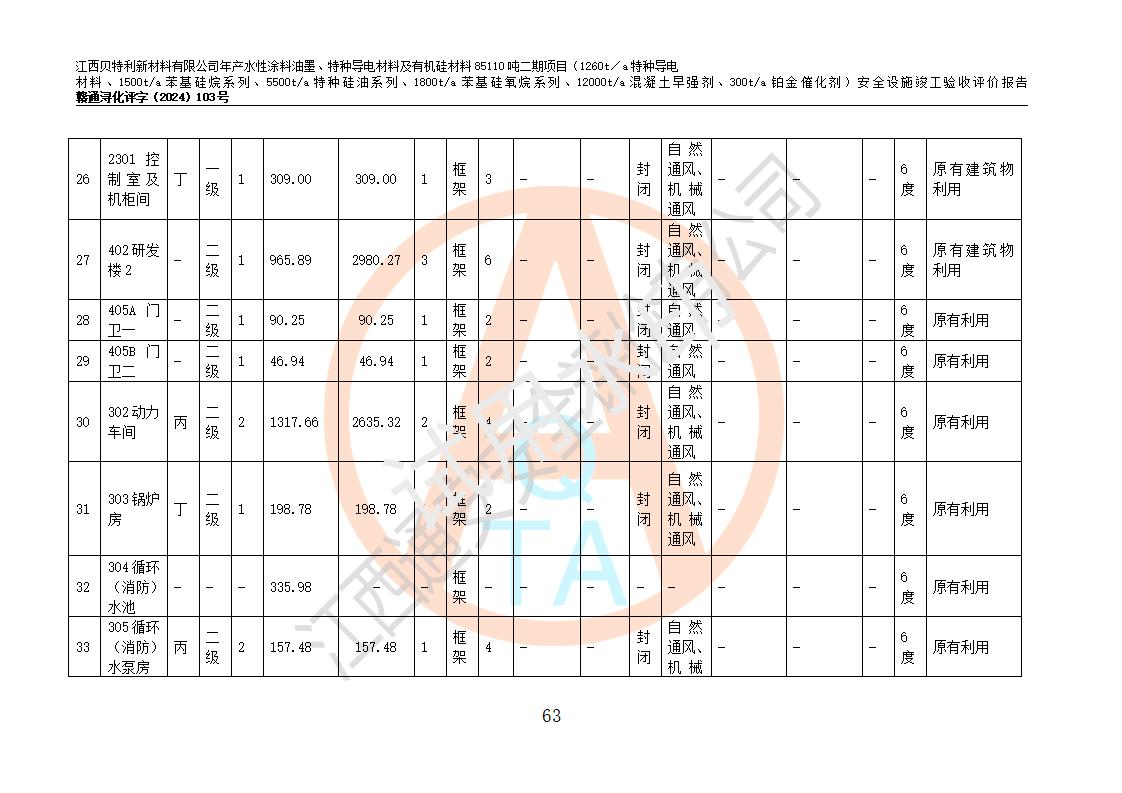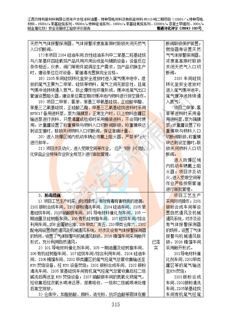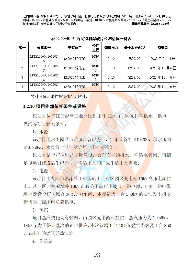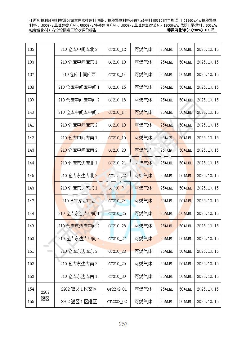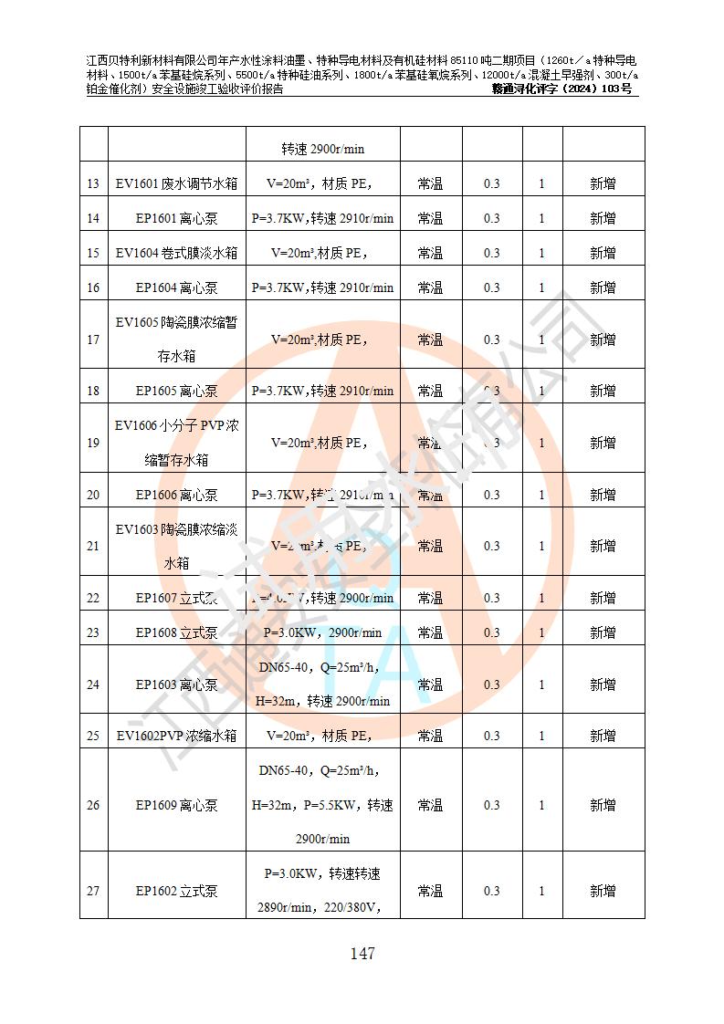 評價報告名稱 | 江西貝特利新材料有限公司年產(chǎn)水性涂料油墨、特種導電材料及有 機硅材料85110噸二期項目(1260t/a特種導電材料、1500t/a苯基硅烷系列、5500t/a特種硅油系列、1800t/a苯基硅氧烷系列、12000t/a混凝土早強劑、300t/a鉑金催化劑)安全設施竣工驗收評價報告 | |||||
