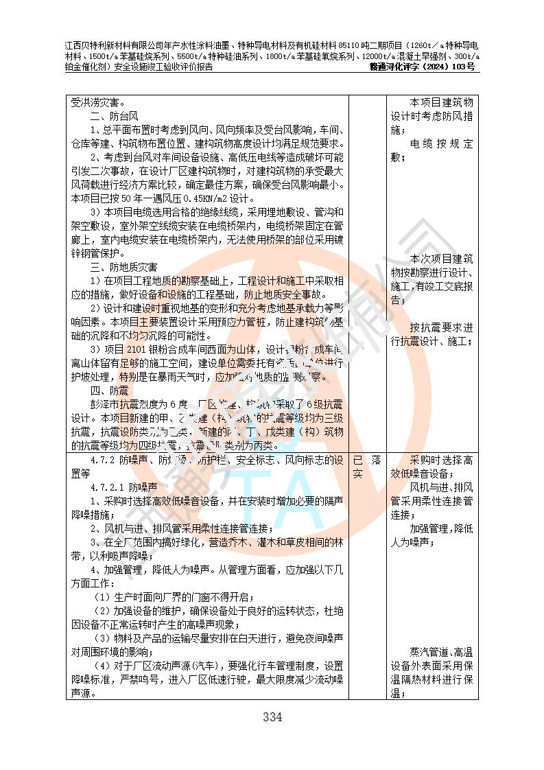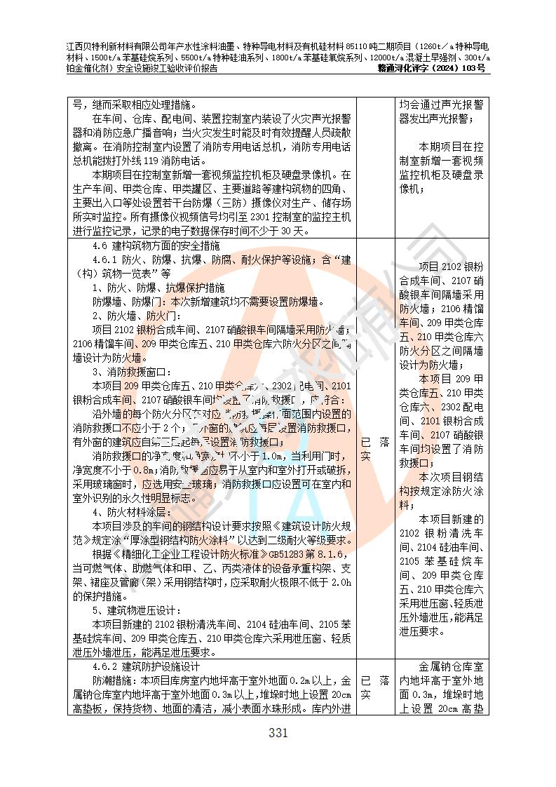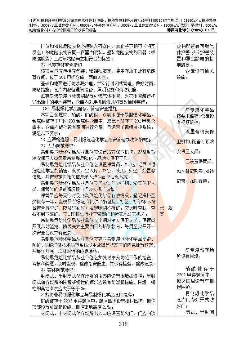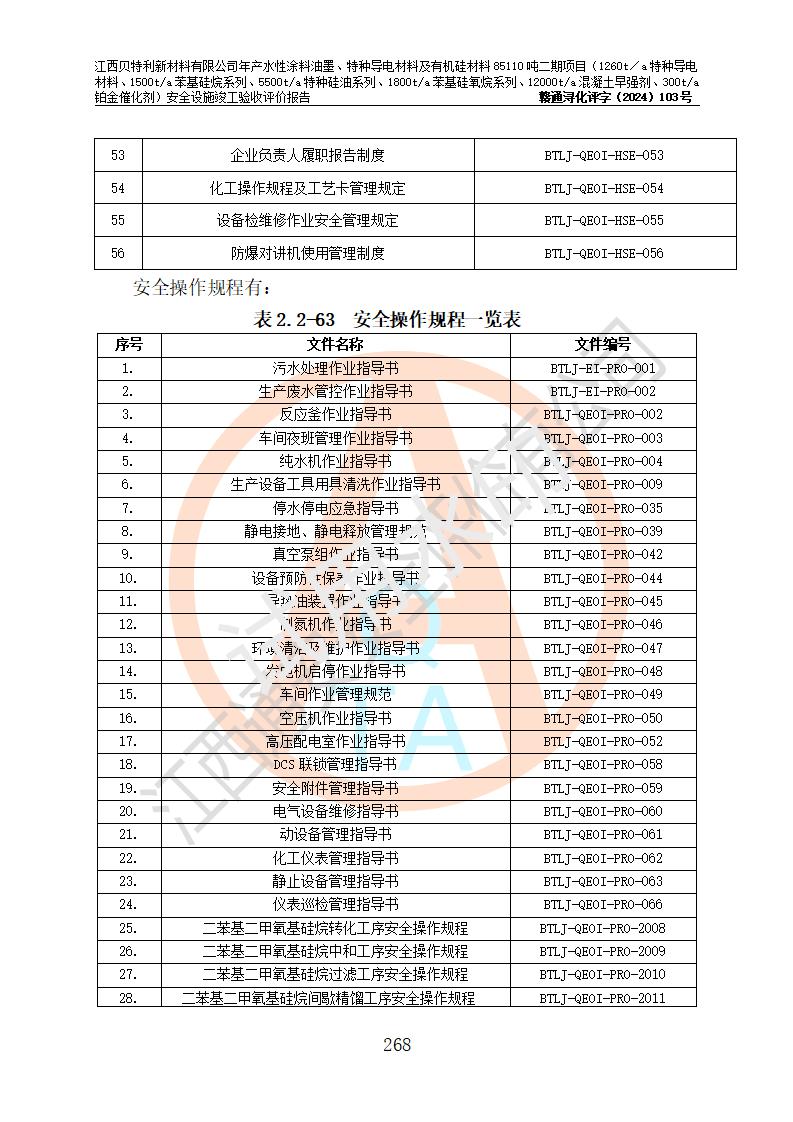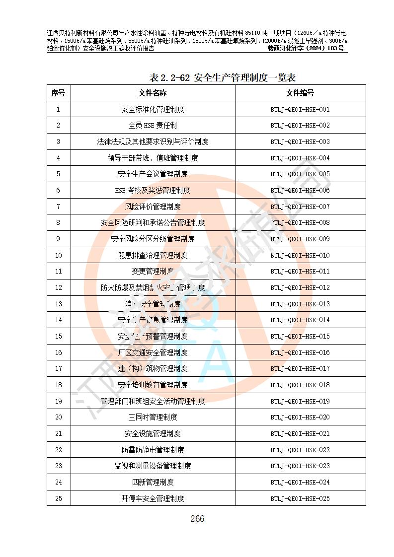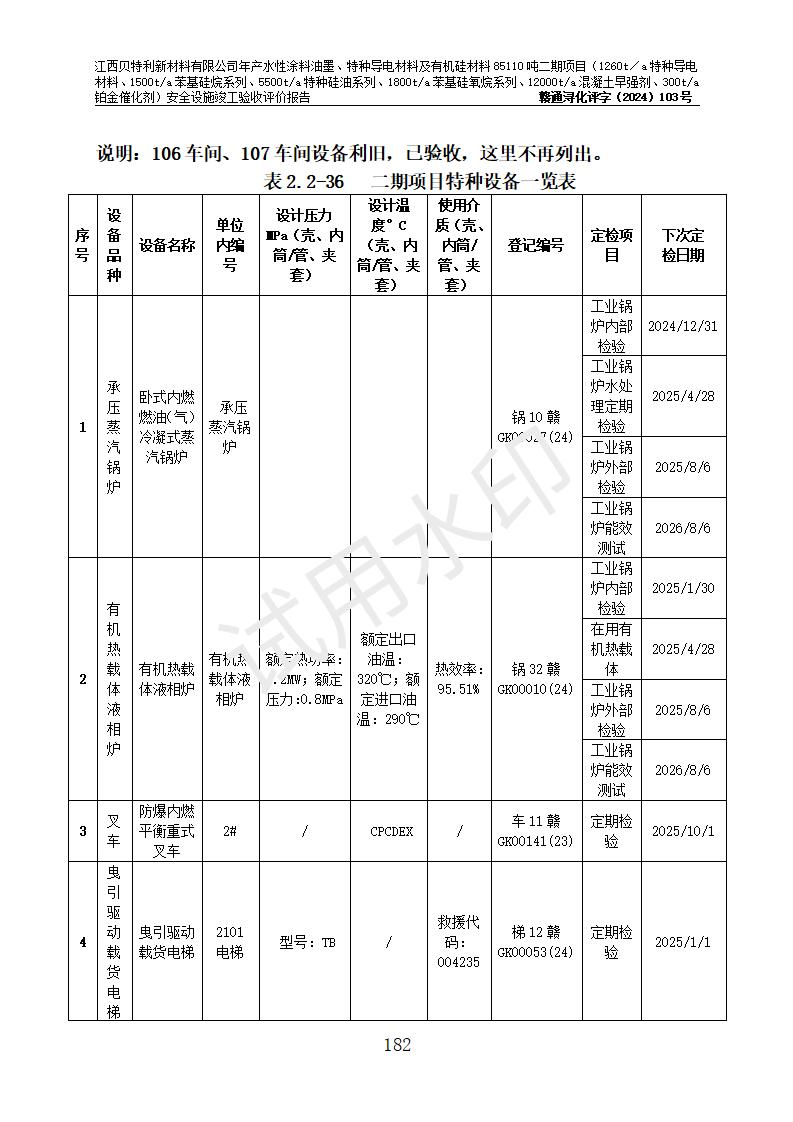 評價報告名稱 | 江西貝特利新材料有限公司年產(chǎn)水性涂料油墨、特種導電材料及有 機硅材料85110噸二期項目(1260t/a特種導電材料、1500t/a苯基硅烷系列、5500t/a特種硅油系列、1800t/a苯基硅氧烷系列、12000t/a混凝土早強劑、300t/a鉑金催化劑)安全設施竣工驗收評價報告 | |||||