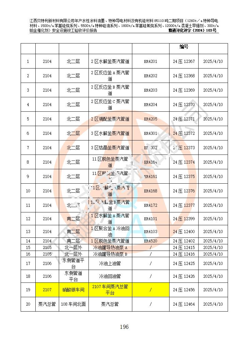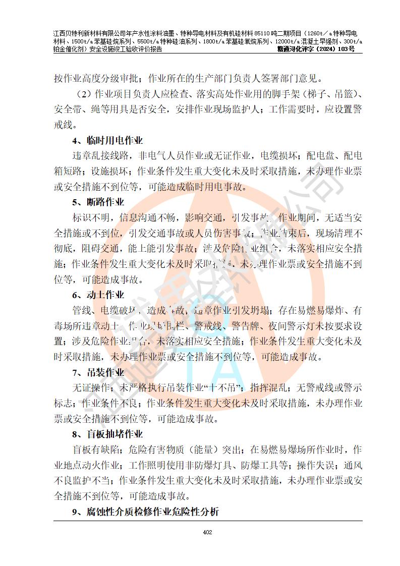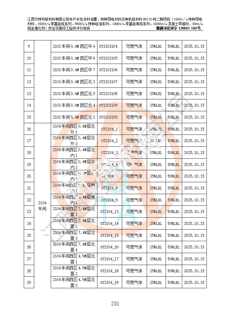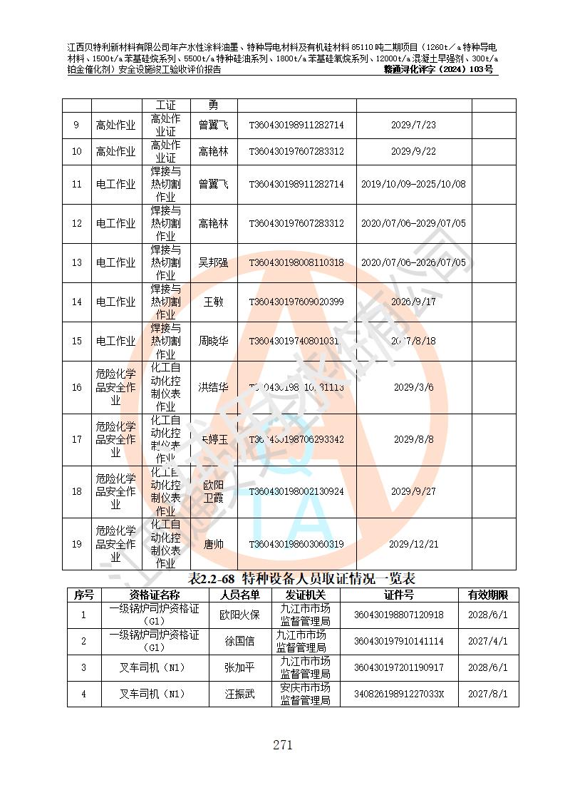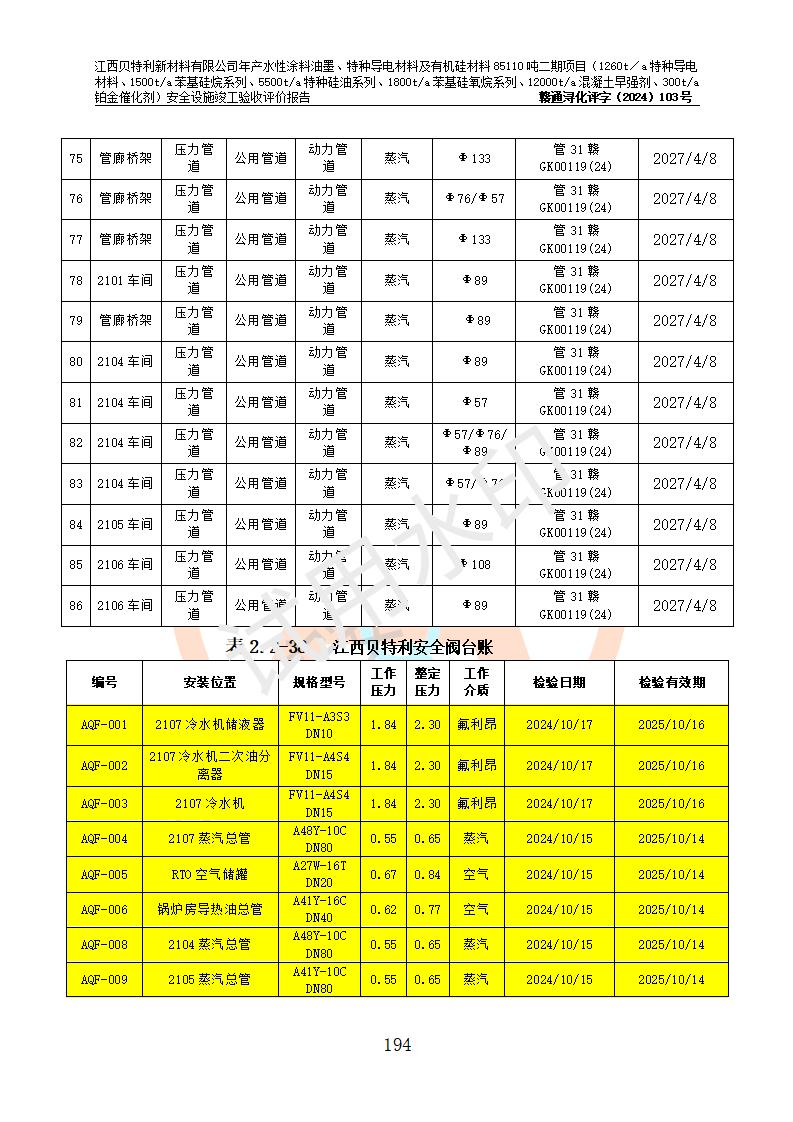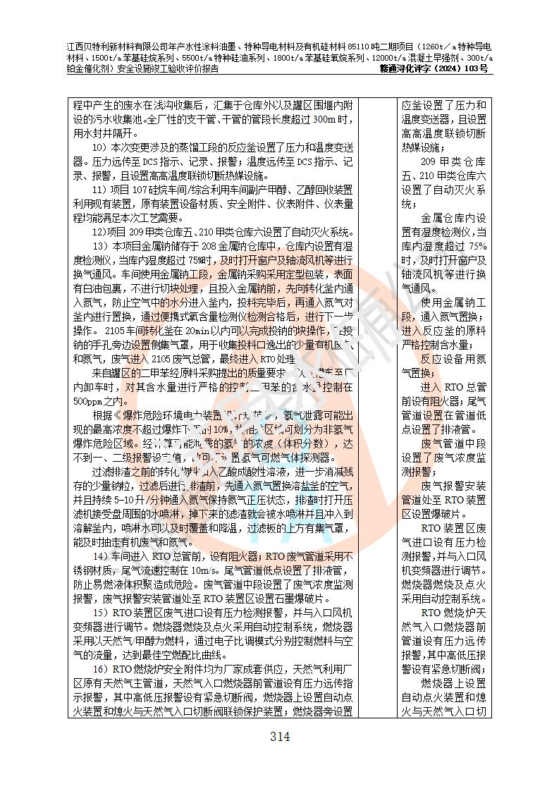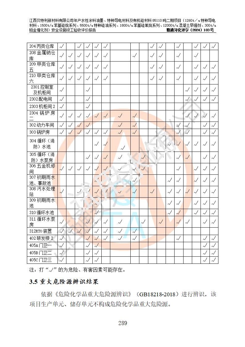 評價報告名稱 | 江西貝特利新材料有限公司年產(chǎn)水性涂料油墨、特種導電材料及有 機硅材料85110噸二期項目(1260t/a特種導電材料、1500t/a苯基硅烷系列、5500t/a特種硅油系列、1800t/a苯基硅氧烷系列、12000t/a混凝土早強劑、300t/a鉑金催化劑)安全設施竣工驗收評價報告 | |||||