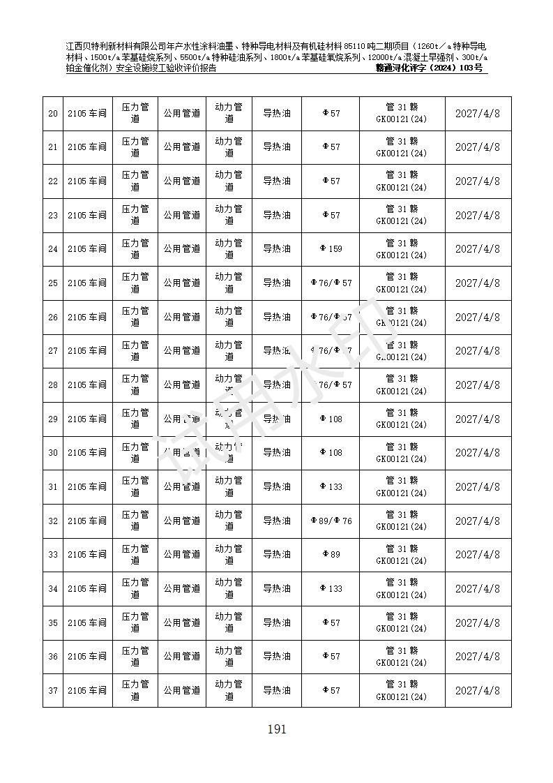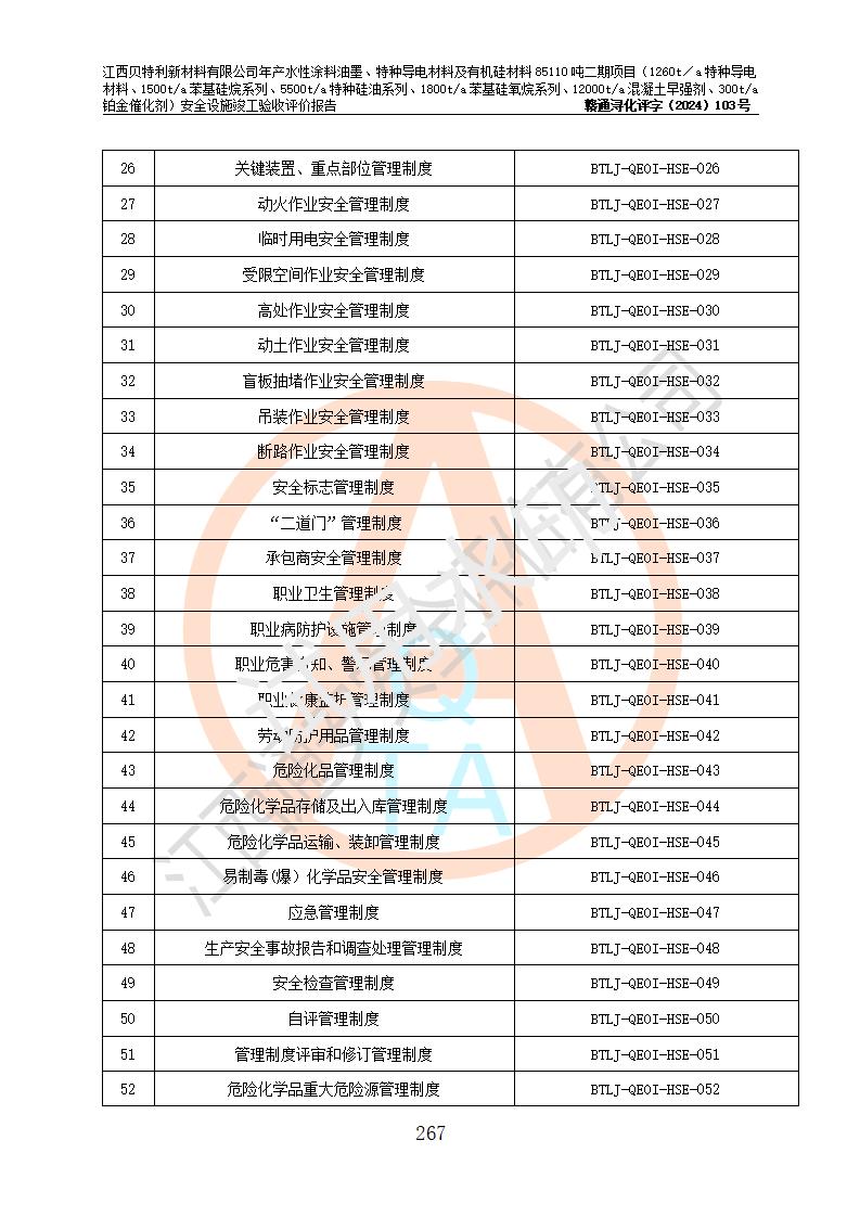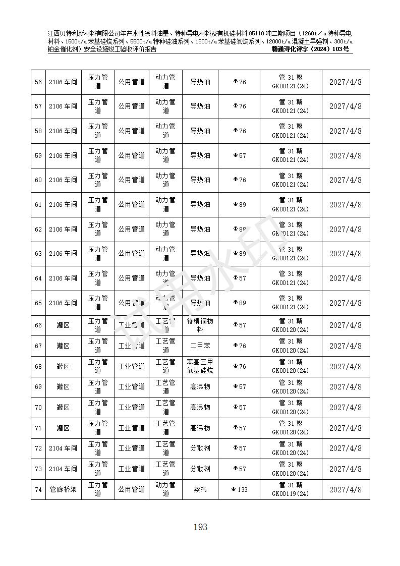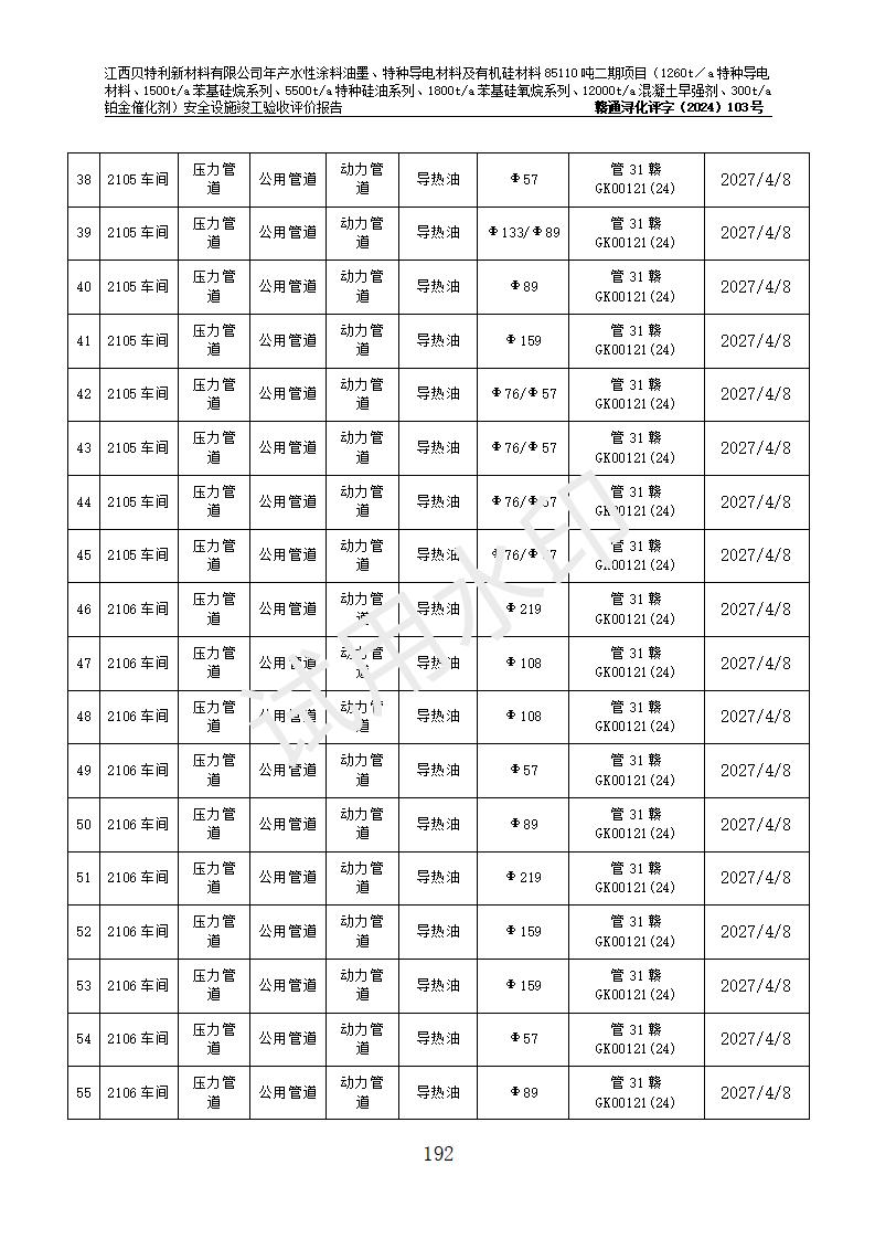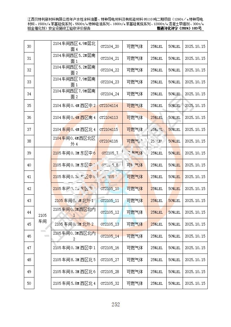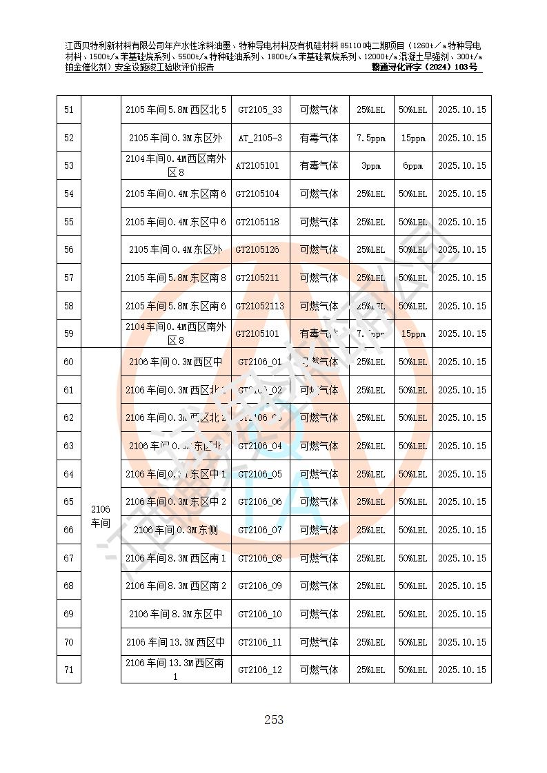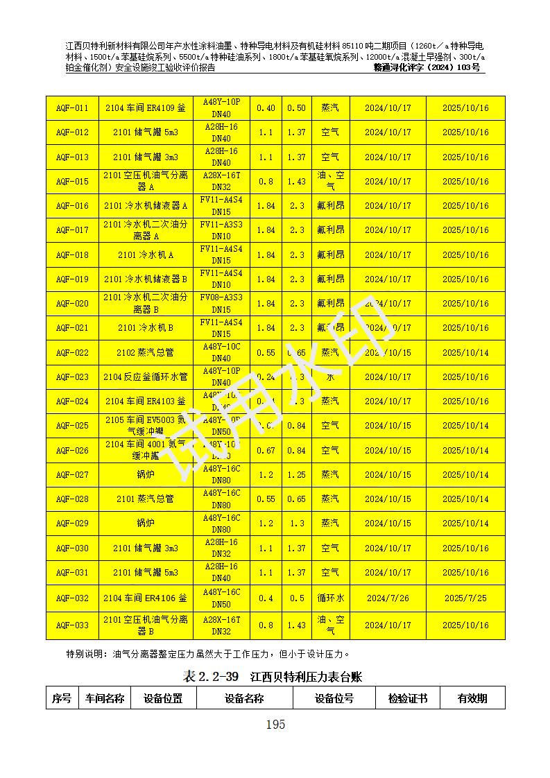 評價報告名稱 | 江西貝特利新材料有限公司年產(chǎn)水性涂料油墨、特種導電材料及有 機硅材料85110噸二期項目(1260t/a特種導電材料、1500t/a苯基硅烷系列、5500t/a特種硅油系列、1800t/a苯基硅氧烷系列、12000t/a混凝土早強劑、300t/a鉑金催化劑)安全設施竣工驗收評價報告 | |||||