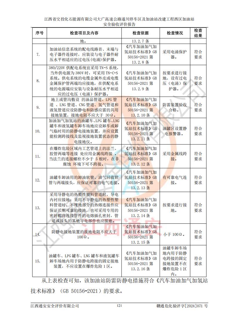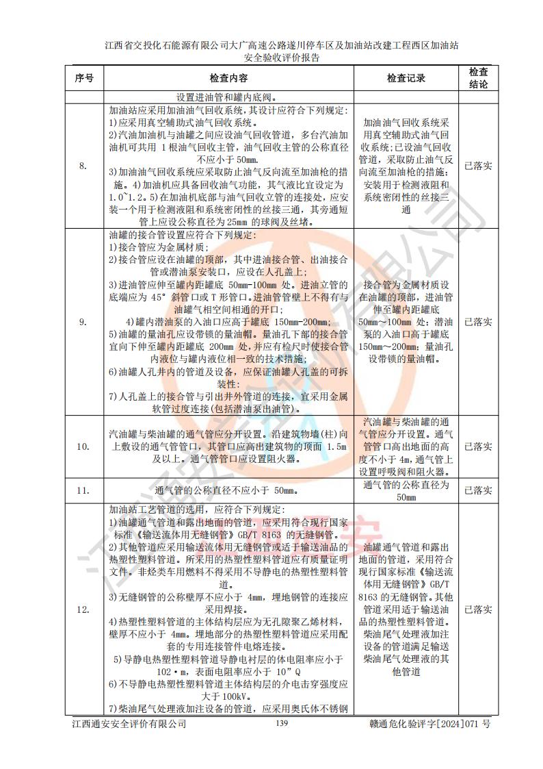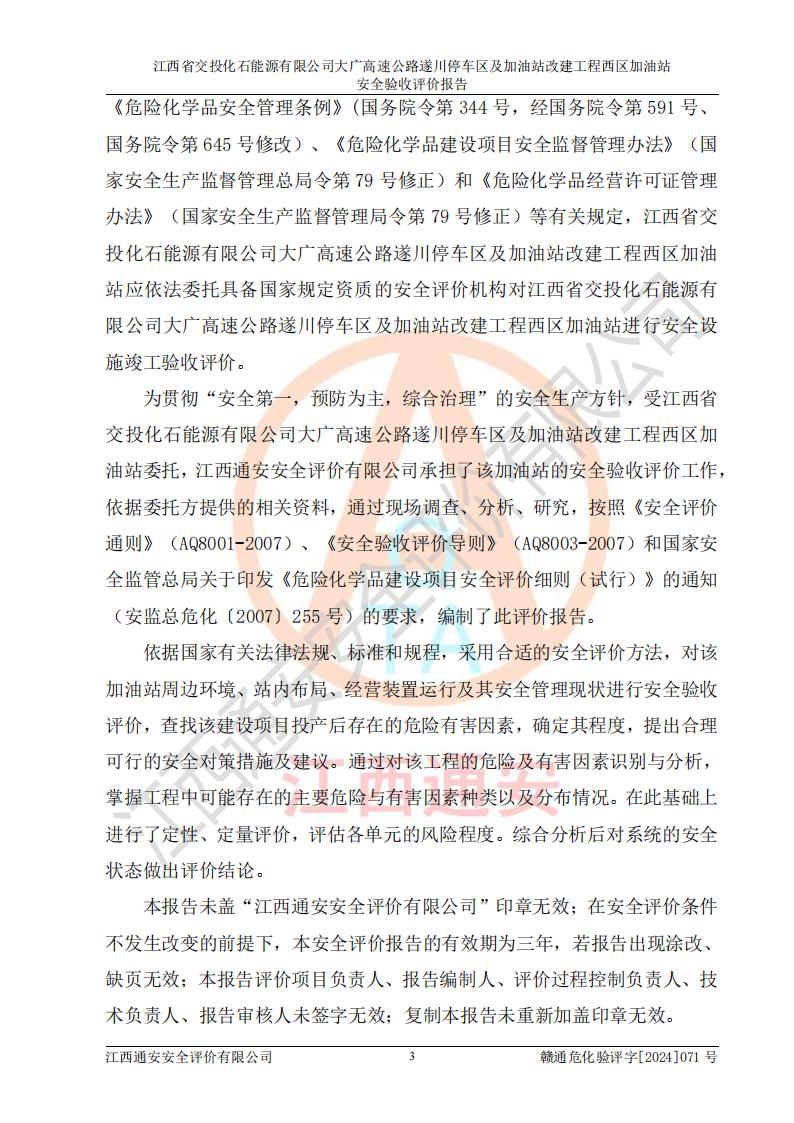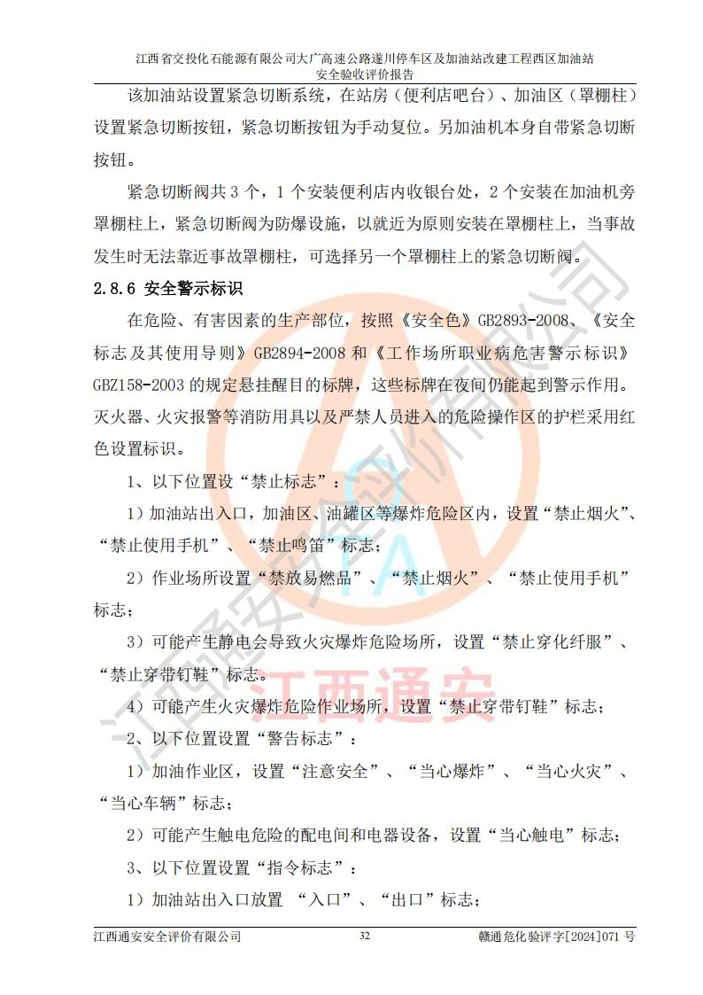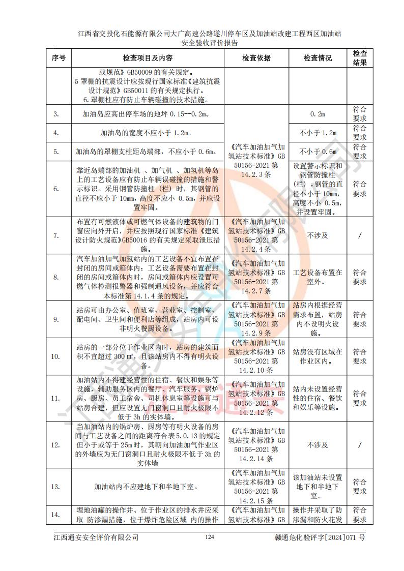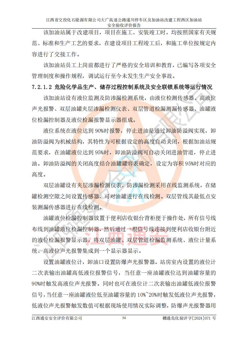 評(píng)價(jià)報(bào)告名稱 | 江西省交投化石能源有限公司大廣高速公路遂川停車區(qū)及加油站改建工程西區(qū)加油站安全驗(yàn)收評(píng)價(jià)報(bào)告 | |||