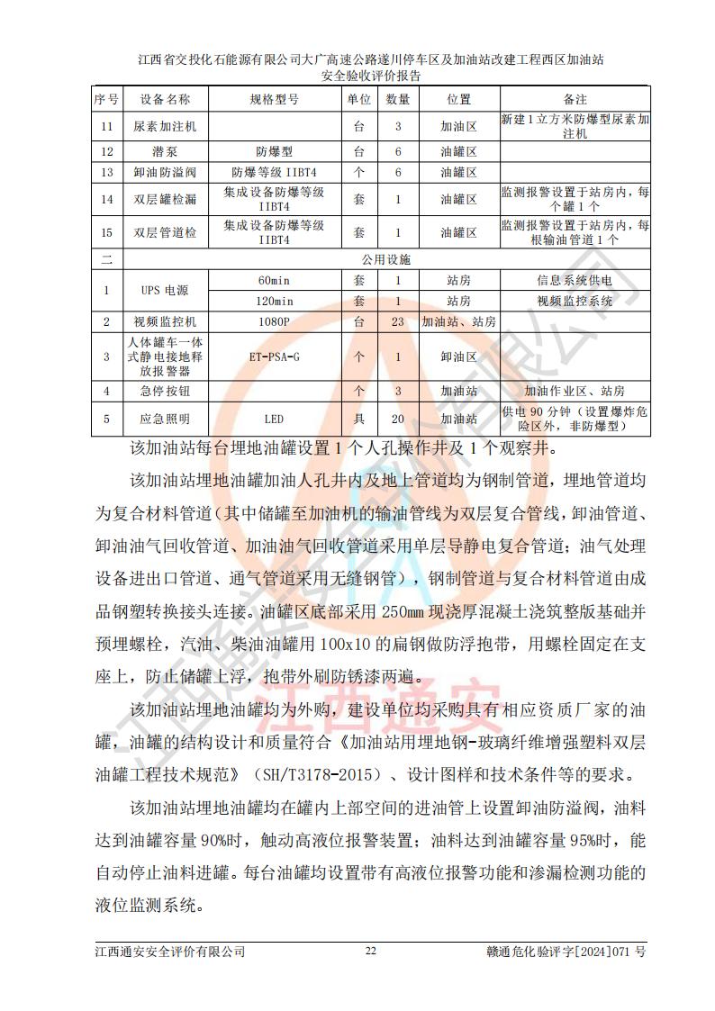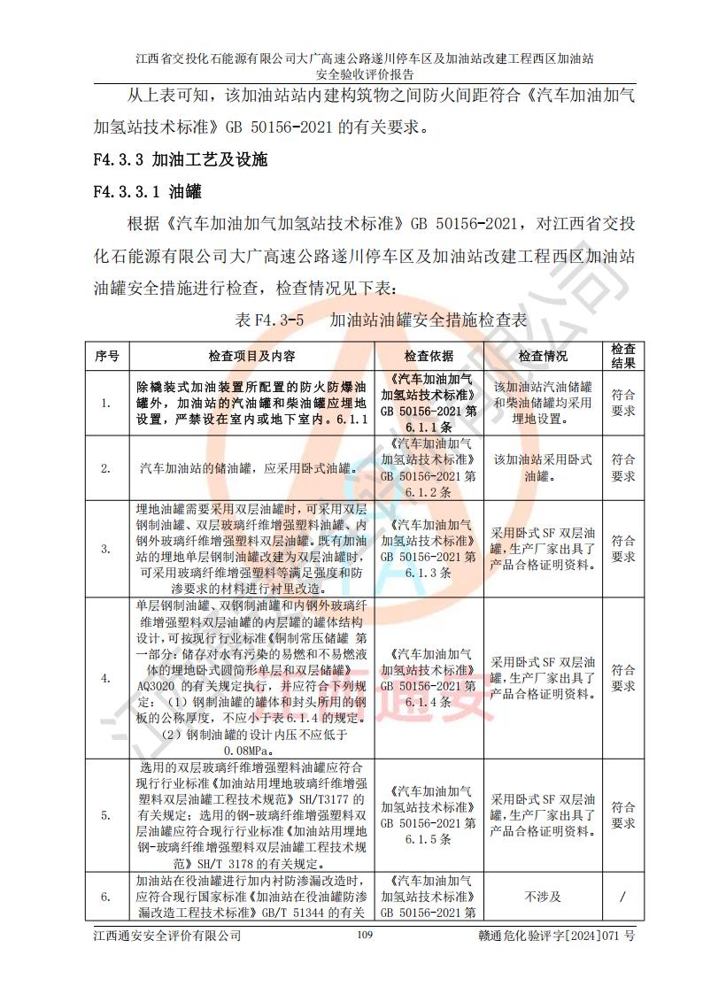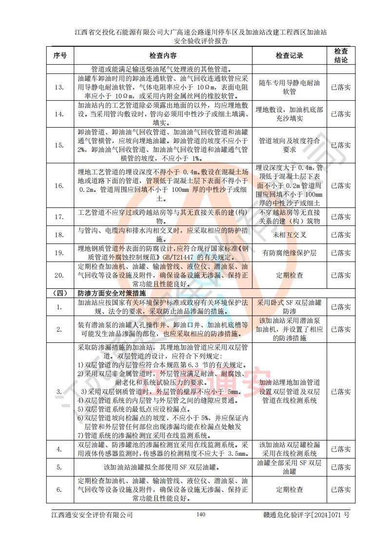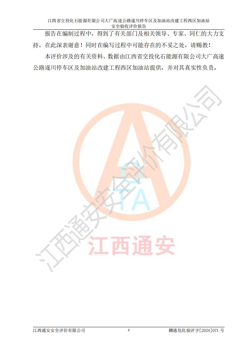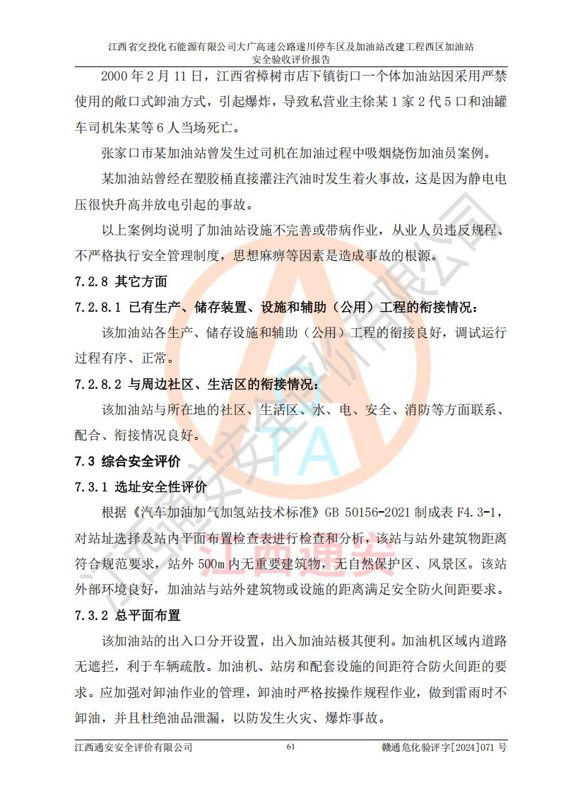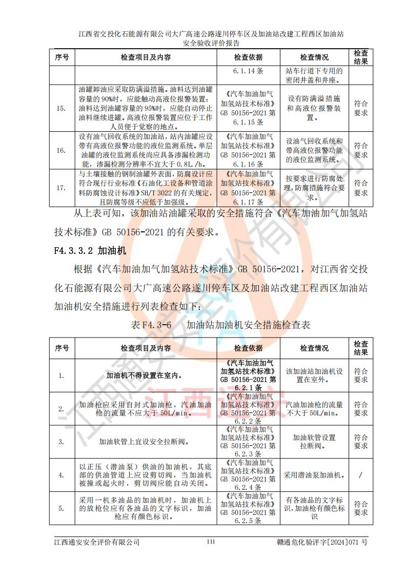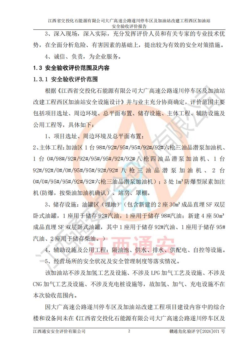 評(píng)價(jià)報(bào)告名稱 | 江西省交投化石能源有限公司大廣高速公路遂川停車區(qū)及加油站改建工程西區(qū)加油站安全驗(yàn)收評(píng)價(jià)報(bào)告 | |||