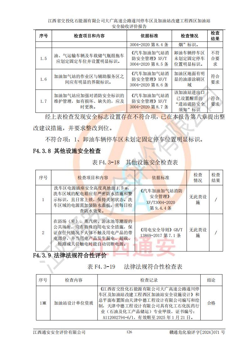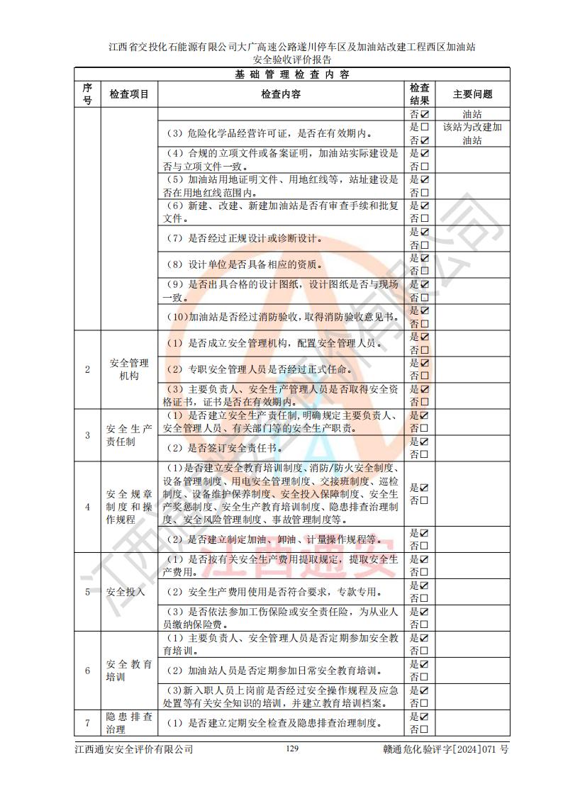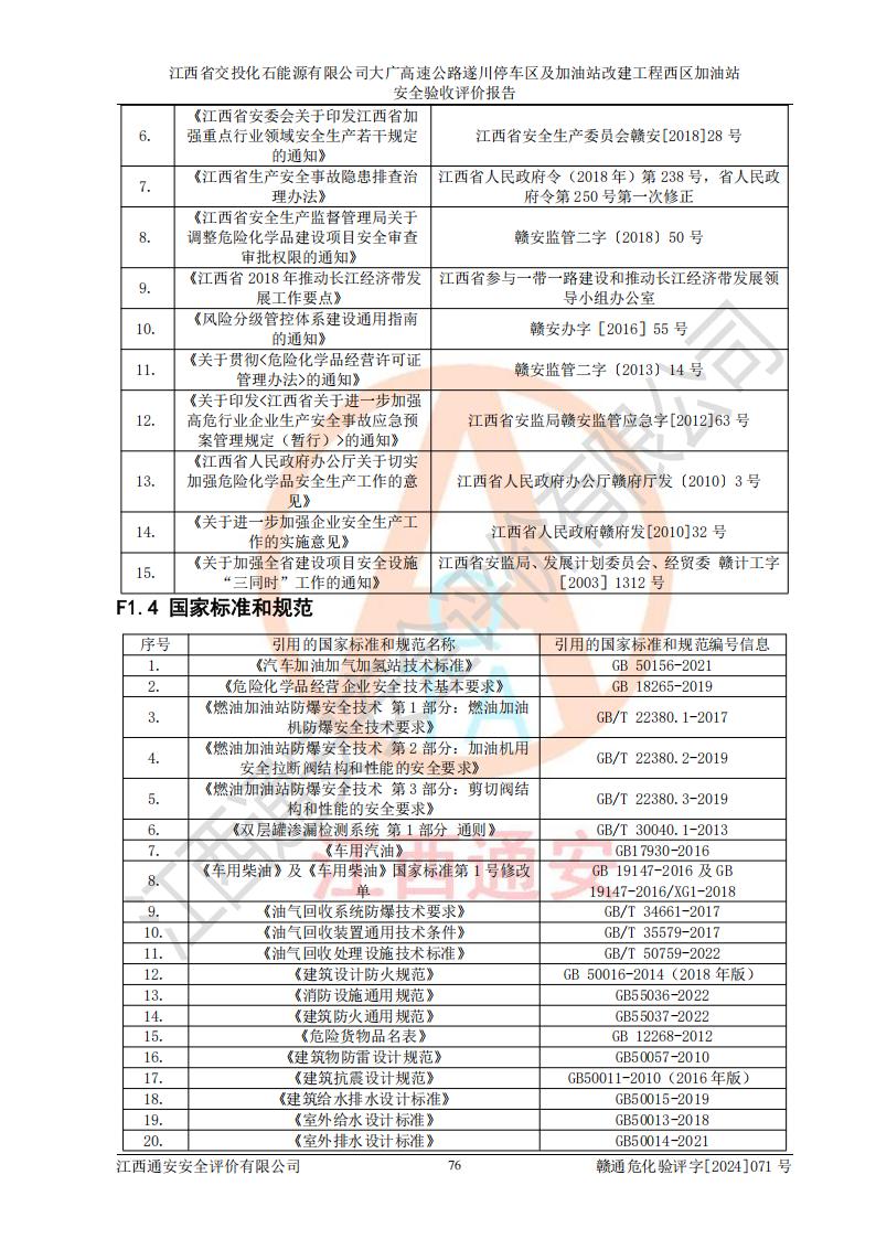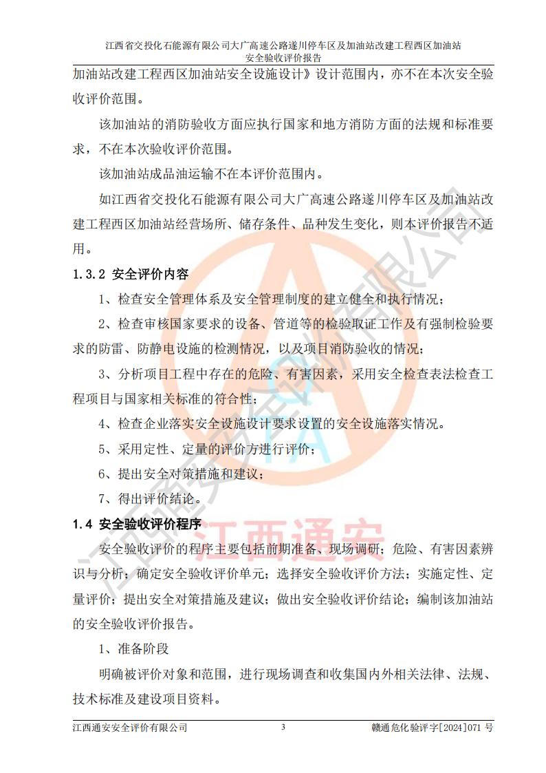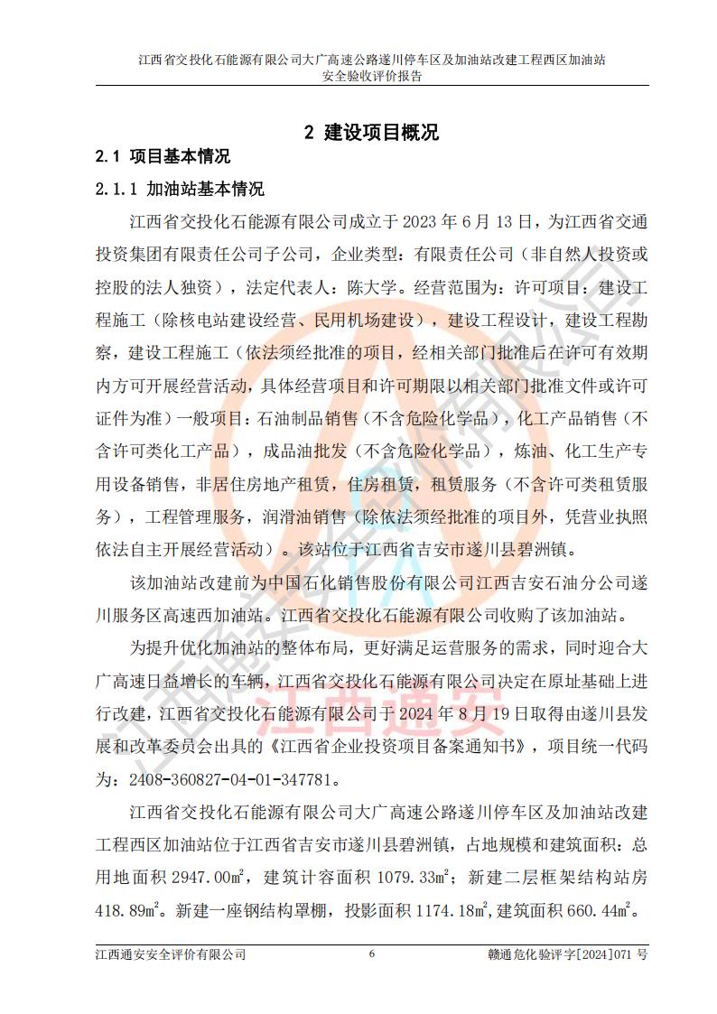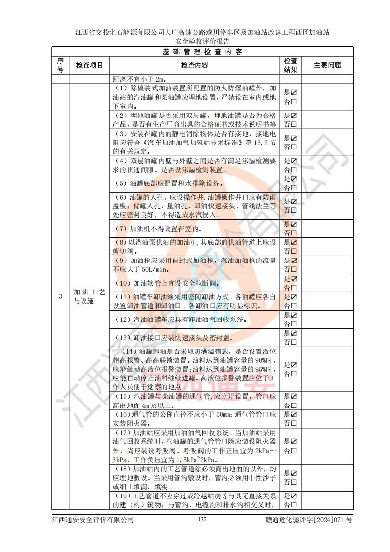 評(píng)價(jià)報(bào)告名稱 | 江西省交投化石能源有限公司大廣高速公路遂川停車區(qū)及加油站改建工程西區(qū)加油站安全驗(yàn)收評(píng)價(jià)報(bào)告 | |||