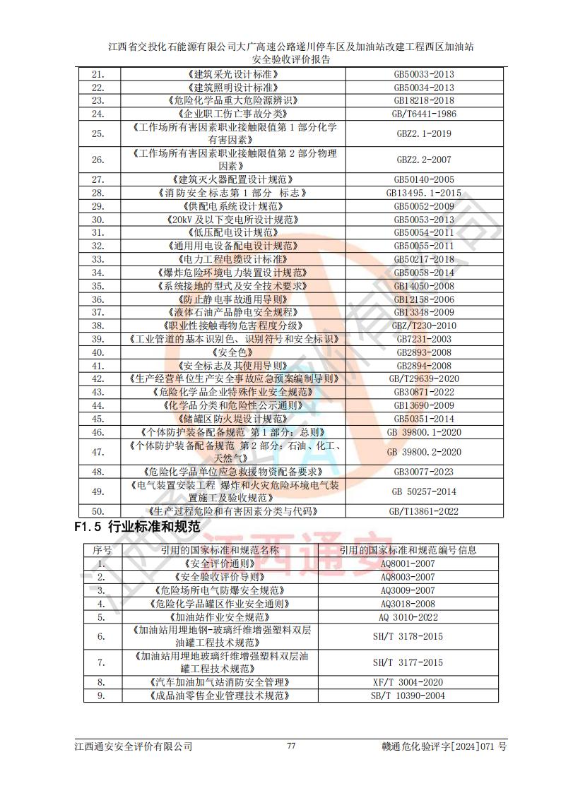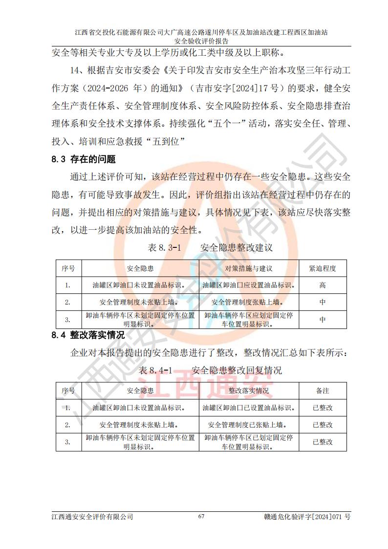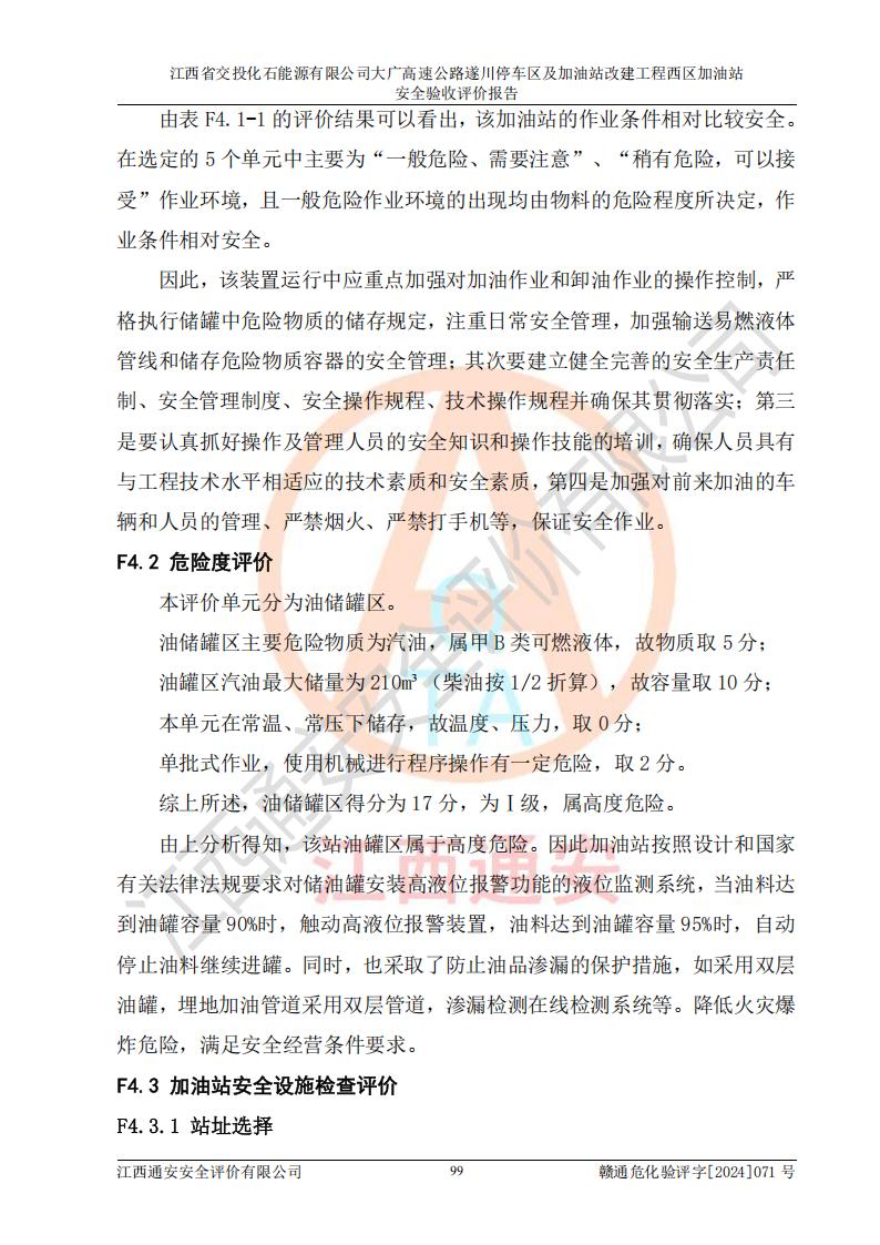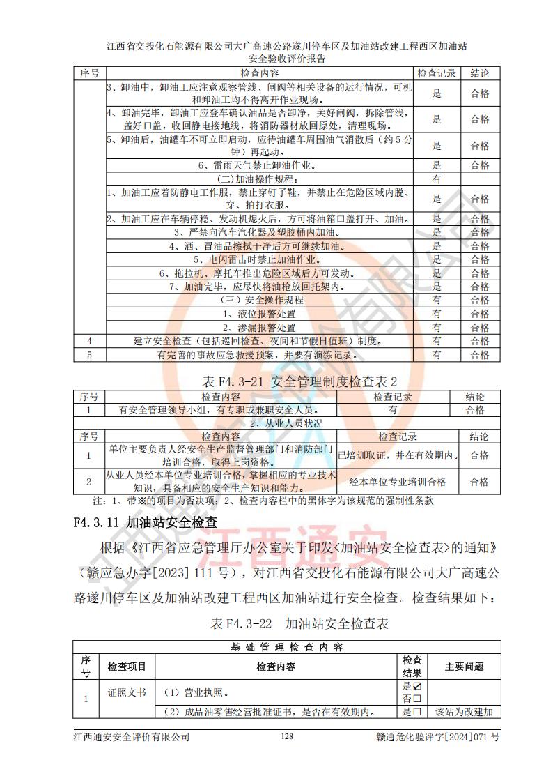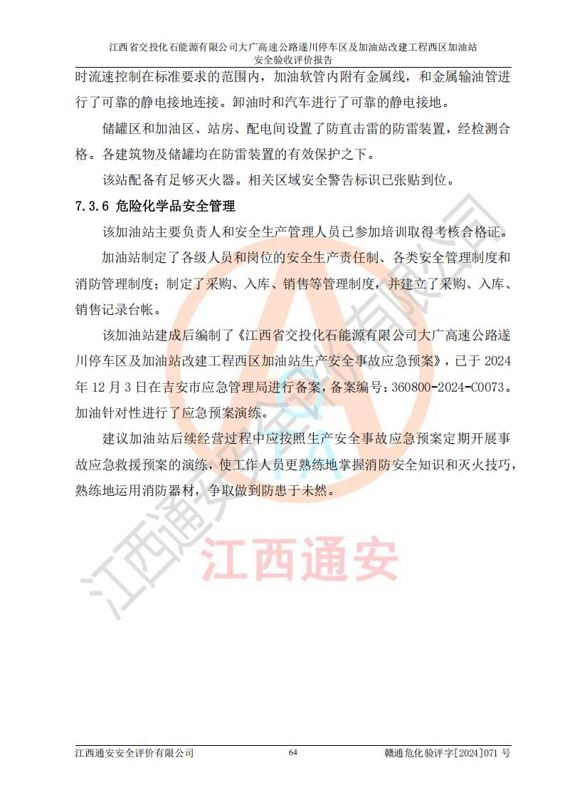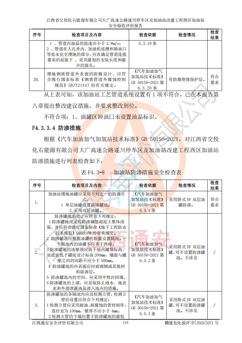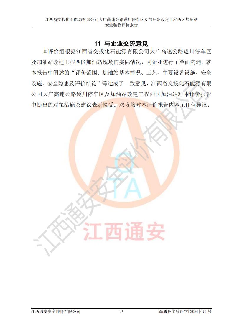 評(píng)價(jià)報(bào)告名稱 | 江西省交投化石能源有限公司大廣高速公路遂川停車區(qū)及加油站改建工程西區(qū)加油站安全驗(yàn)收評(píng)價(jià)報(bào)告 | |||