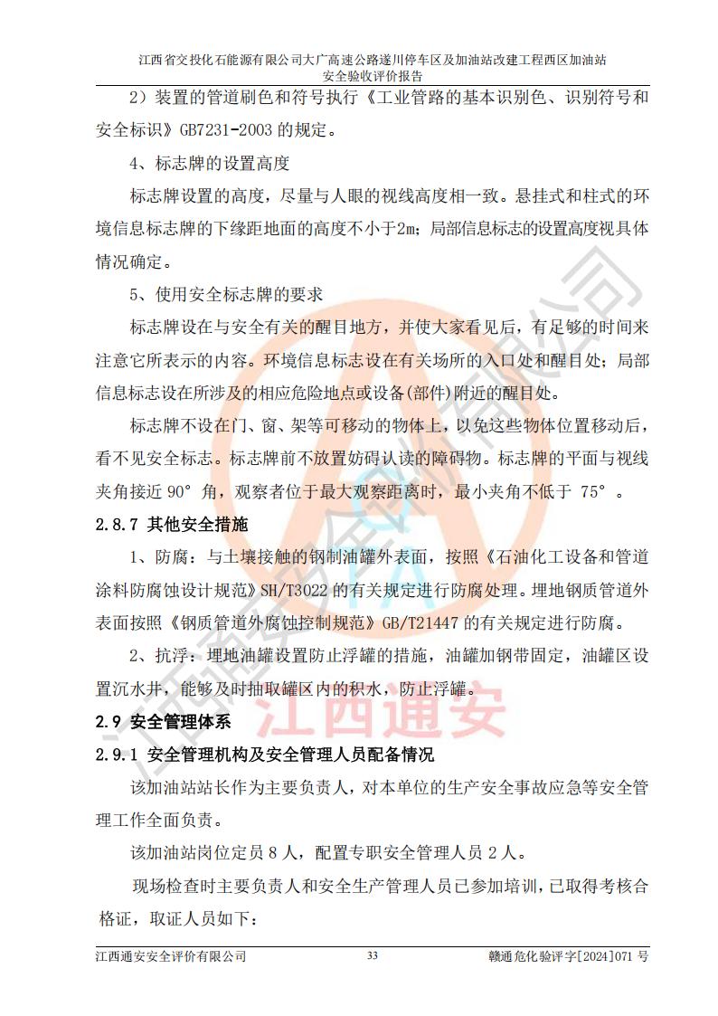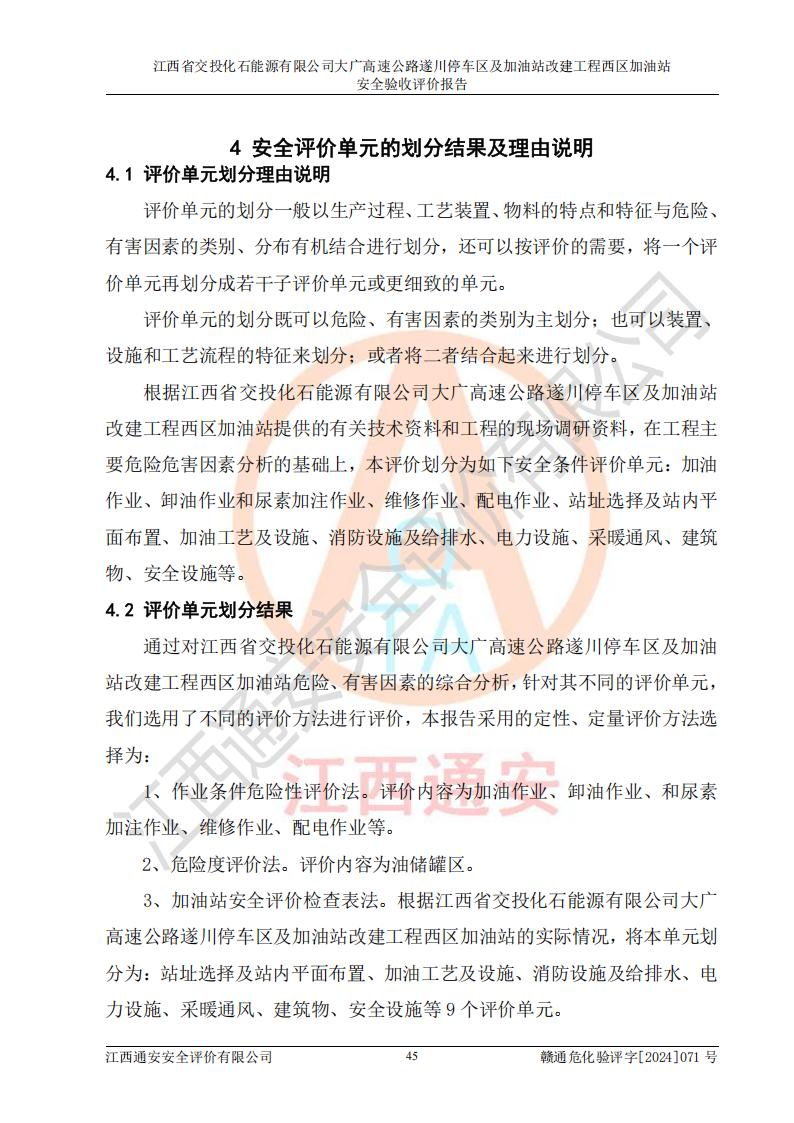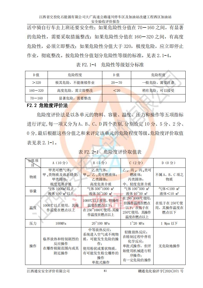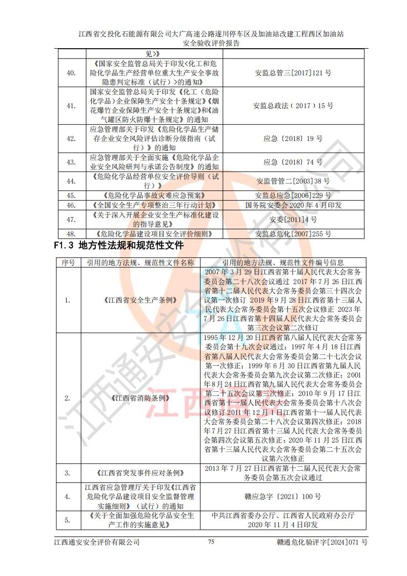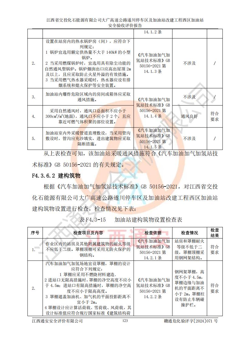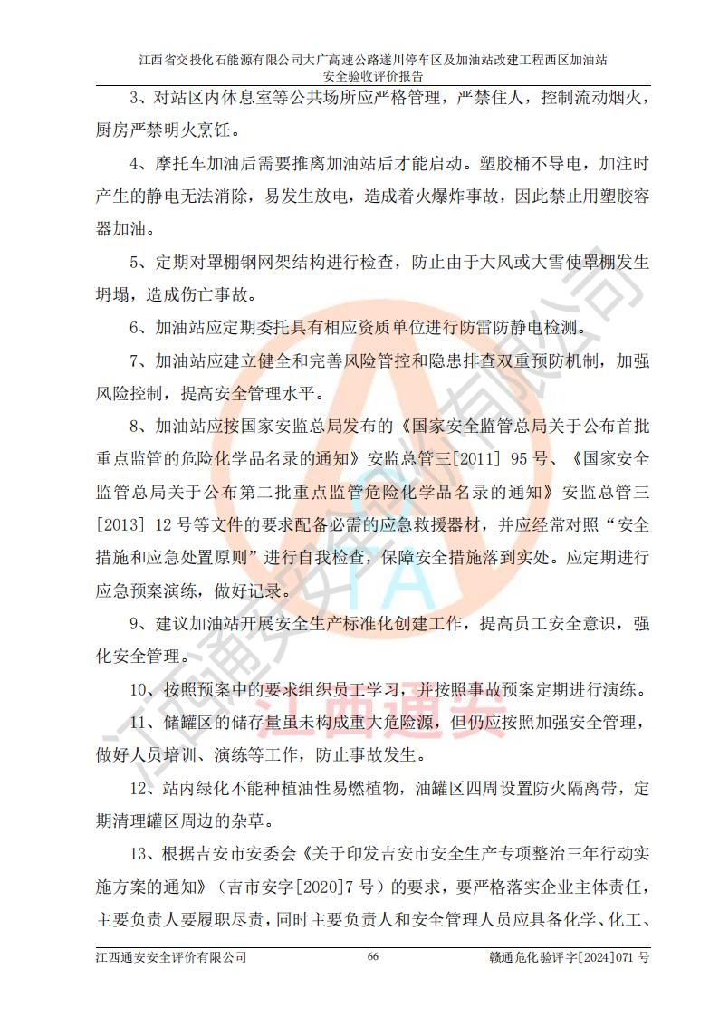 評(píng)價(jià)報(bào)告名稱 | 江西省交投化石能源有限公司大廣高速公路遂川停車區(qū)及加油站改建工程西區(qū)加油站安全驗(yàn)收評(píng)價(jià)報(bào)告 | |||